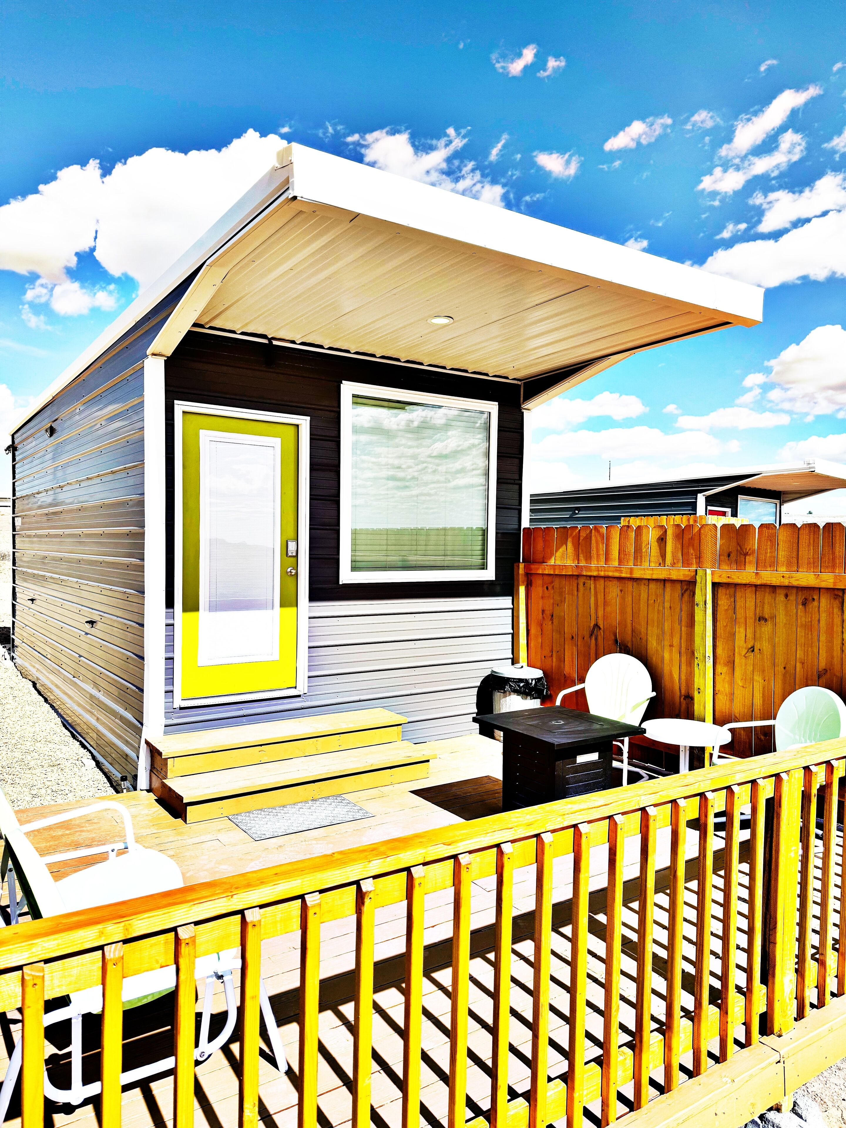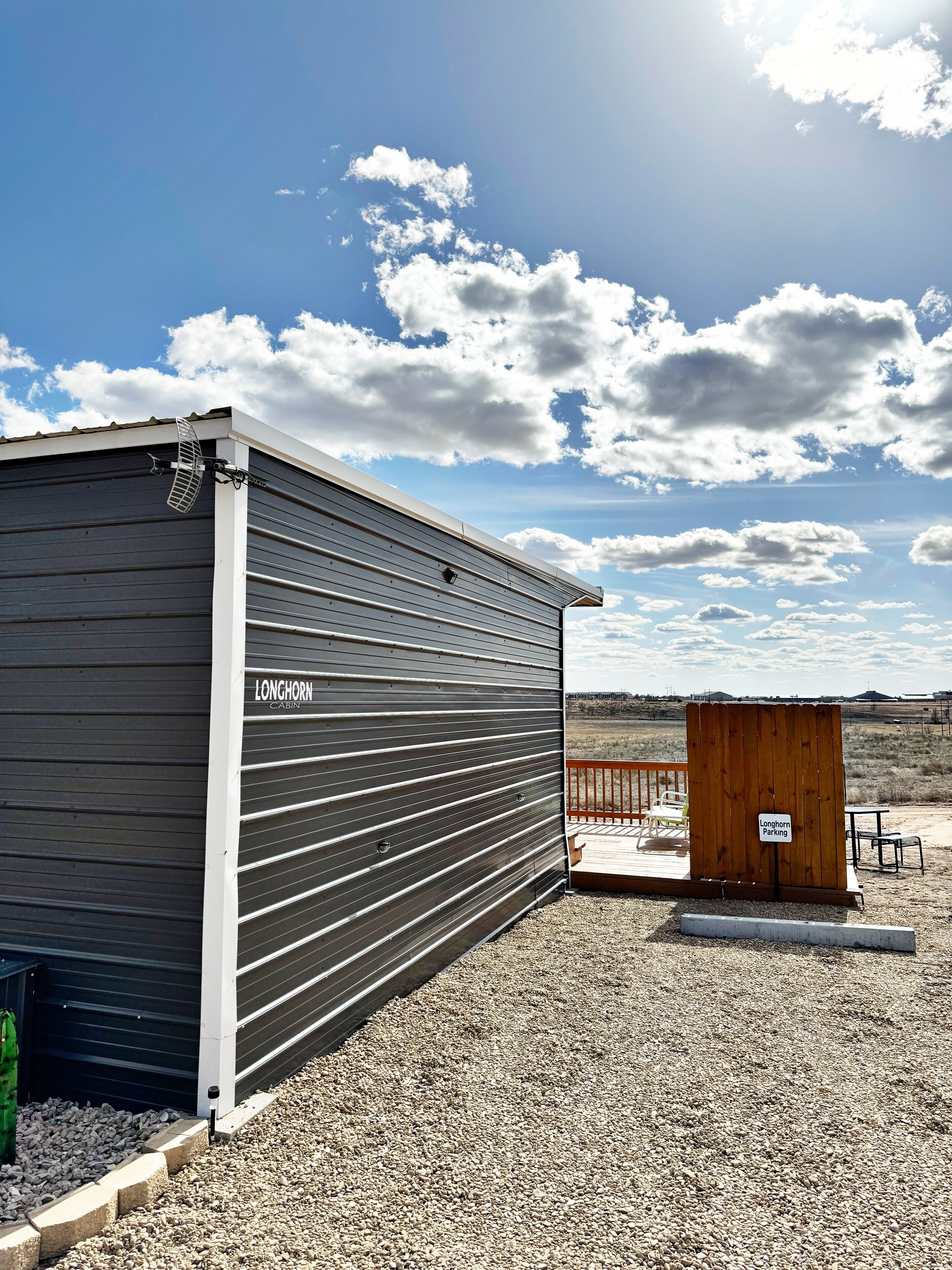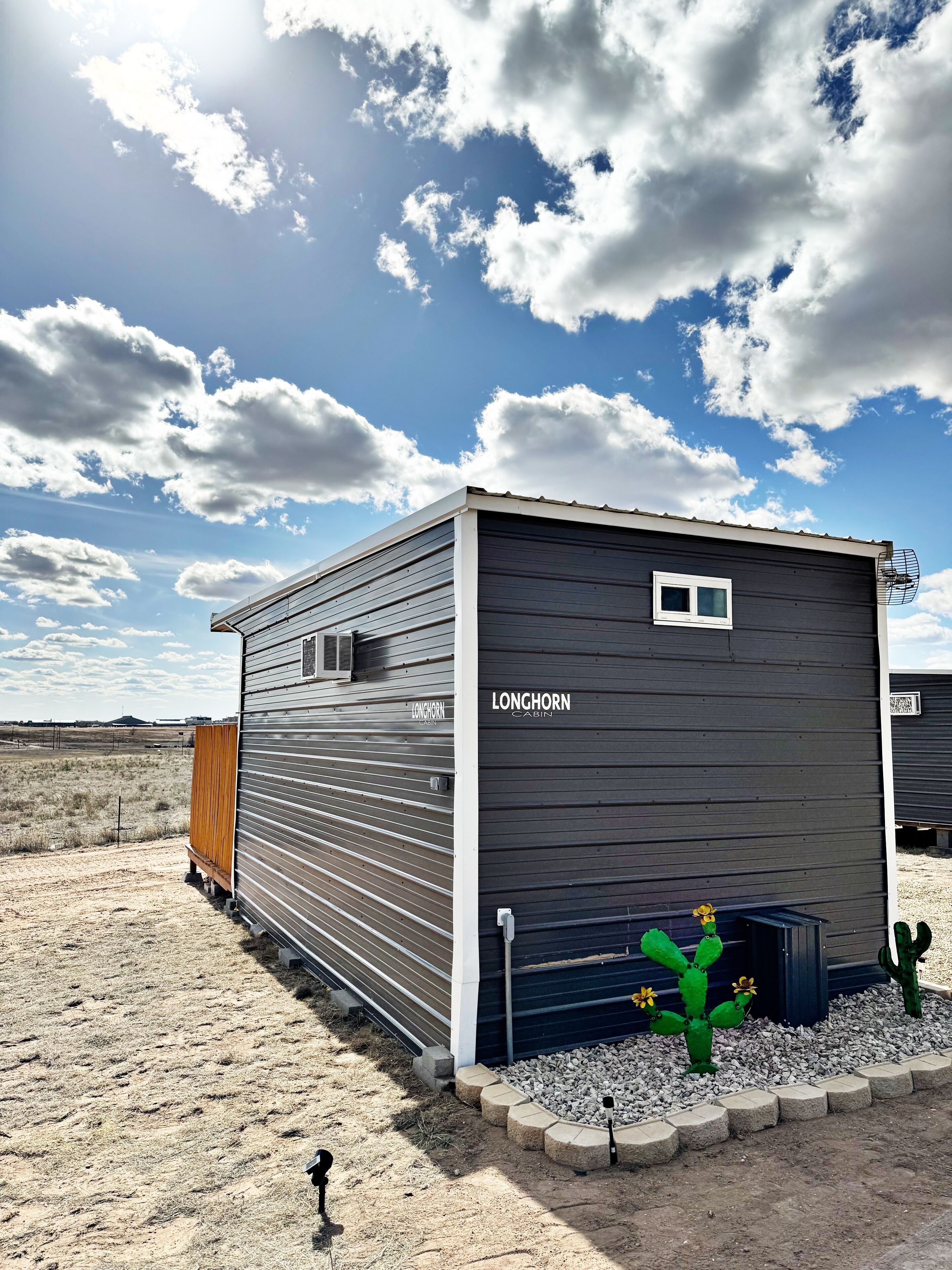 Longhorn Mini Cabin at the Edge of Canyon Nestled on the outskirts of Canyon, The Longhorn Cabin offers a tranquil escape with convenient access to both city amenities and the awe-inspiring beauty of Palo Duro Canyon. Although a tiny home, this cozy retreat accommodates up to four guests and provides all the comforts of home. So, come check out the picturesque views of the City of Canyon, stunning sunsets, and the natural splendor that envelops the area.Known as the Longhorn, our Mini Cabin is located North East of Canyon & sits on the edge rim of the City of Canyon and faces towards Southwest with views of the Tierra Blanca Creek, City Lights, WTAMU and beautiful Panhandle Sunrise & Sunset. Known as the Longhorn cabin, this space is 200sq ft featuring a comfy Queen Size Tuft & Needle bed, Queen Size Serta Pull out Futon, bathroom, kitchenette- that includes small fridge, microwave, sink & coffee maker. Bathroom is spacious with a walk-in shower and small closet. The large bay window floods the entire space with natural light throughout the day. The expansive deck has a propane grill with burner to enjoy a quick simple outdoor cooked meal if you chose. The Longhorn Mini Cabin is nestled second in a row of cabins and is the ideal location for those days after spending time in Canyon, Amarillo & Palo Duro Canyon. A great place to relax after a day visiting, shopping, hiking or biking. Our mini cabin is perfect for 2 people, snug with 4:). The Longhorn Cabin is located on the edge of the City of Canyon at the Corner of I-27 and Hunsley Road. Check-in time is 3pm or later. Access is through a keyless lock for which you'll be provided a code prior to arrival, so late night check-ins are not a problem. Check-out time is 11am. No one should start their day without caffeine - so you'll find a selection of tea, coffee, and creamer to get you powered up, along with some breakfast snacks. We encourage you to make use of the deck, where we provide two chairs, lounger, grill and wind fence block for those gusty panhandle days. A metal picnic table is provided outside to eat or play cards on. Bug spray and sunscreen is available in the closet. A Smart WIFI TV is provided so that you can access your personal Netflix, Prime, Hulu(etc) account(s). Cool & Heat the space with a Window Unit heating & Air Conditioner & ceiling fan. The bathroom is fully decked out with clean towels, some basic toiletries- shampoo, conditioner & body wash. If you need more towels we keep spares in the closet, along with a hair dryer, and iron. ** Please note that our cabins have been relocated closer to the City of Canyon when reading previous reviews** Even though we are located in the “Country”, we are on the corner of I 27/Hunsley Road so Highway noise can be heard. Please be advised-Currently adding other cabins for guests to enjoy so there is possibility of construction noise. Our cabins are located 10 minutes from Palo Duro Canyon State Park, 3 Minutes to Walmart, 7 Minutes to Downtown to Canyon, 3 Minutes to WTAMU, 15 minutes to Amarillo. We are just a txt or phone call away & can be there in about 10 mins with anything that might need attention. The Longhorn cabin also is the perfect place to view the Panhandle skies from inside or outdoor space as well. Relax & Enjoy your stay in Canyon.