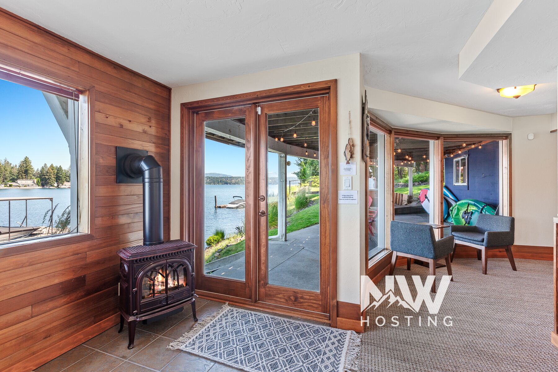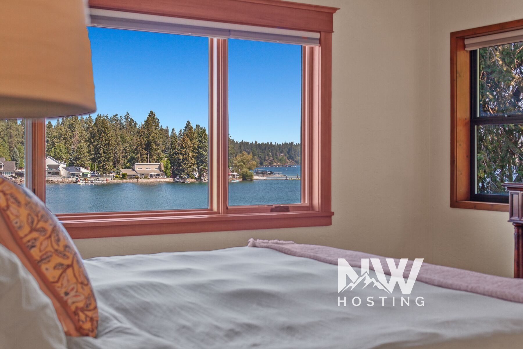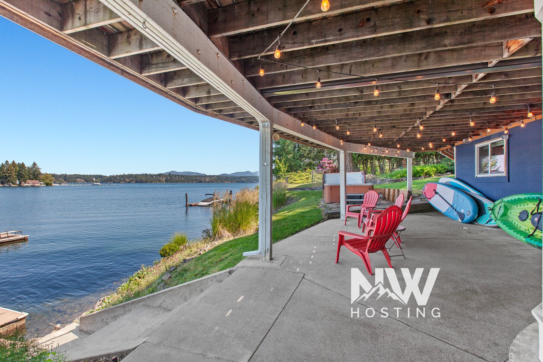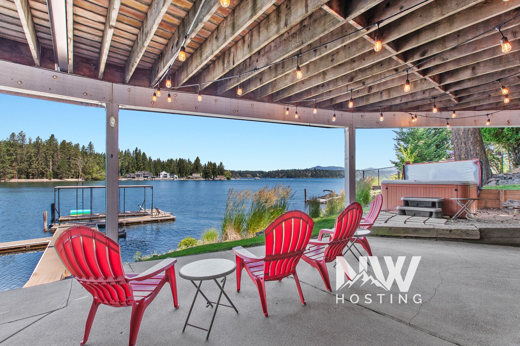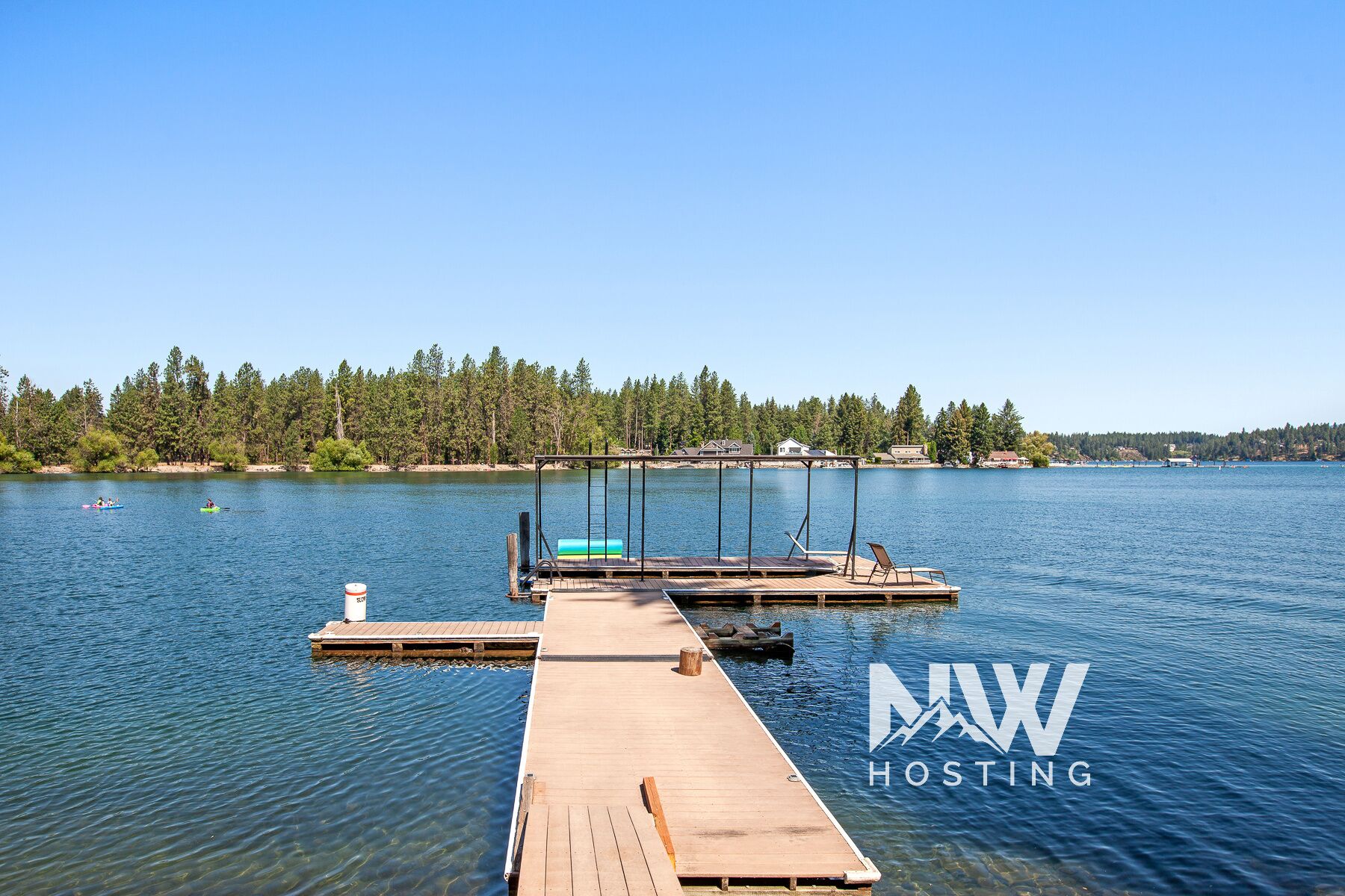 Hayden Lake | Waterfront & Hot tub | Sleeps 10 Welcome to your dream vacation home on the shores of Hayden Lake! Experience the ultimate lakeside retreat at this luxurious property, perfect for families and friends looking to create unforgettable memories. This spacious home offers a blend of relaxation and adventure with breathtaking lake views and top-notch amenities. With 4 bedrooms and 3 bathrooms, and spanning 3,416 sq. ft., there's ample space for everyone.The Space:Entry: Master Suite with a king bed, access to patio, and a bathroom with a standing shower. Washer and dryer are located in the first closet when entering the bedroom. Life jackets are kept in a double-door hallway closet, organized by size.Bay Window: Large dining table with seating for 6.Living Area: Large stone fireplace.Kitchen: Marble countertops and island.Dining Area: Seating for six.Upper Level:Master Suite: King bed, TV, sitting area, and bathroom with a standing shower. The master suite occupies the entire upper level and is open to the stairs.Lower Level:Living Room: Ample seating, access to lower-level patio, TV, and gas-burning fireplace.Guest Bedroom #3: Queen bed.Guest Bedroom #4: Bunk room with two twin bunk beds.Guest Bathroom: Standing shower.Outside:Plenty of parking and room for your boat trailer.Enjoy a pickleball net that easily moves from the garage to the driveway, along with cornhole and giant Jenga sets.Two kayaks, three paddle boards, a lily pad, and life jackets are provided for endless fun on the water.Direct access to the lake with your own private dock and boat slip.Hot tub.Fire table.BBQ.This Hayden Lake home is designed for comfort and enjoyment, ensuring a perfect getaway. Whether you're lounging on the dock, exploring the lake, or engaging in friendly competition with the provided games, there's something for everyone.Important Information: Upon booking, you'll receive an email with your stay agreement. Please review and sign it, as it contains important details about your reservation.Cancellation Policy: In the event of a canceled reservation, a credit card processing cancellation fee equivalent to 4% of the total reservation amount will apply. This fee will be charged to the credit card used for the initial booking and will be deducted from any refund issued.