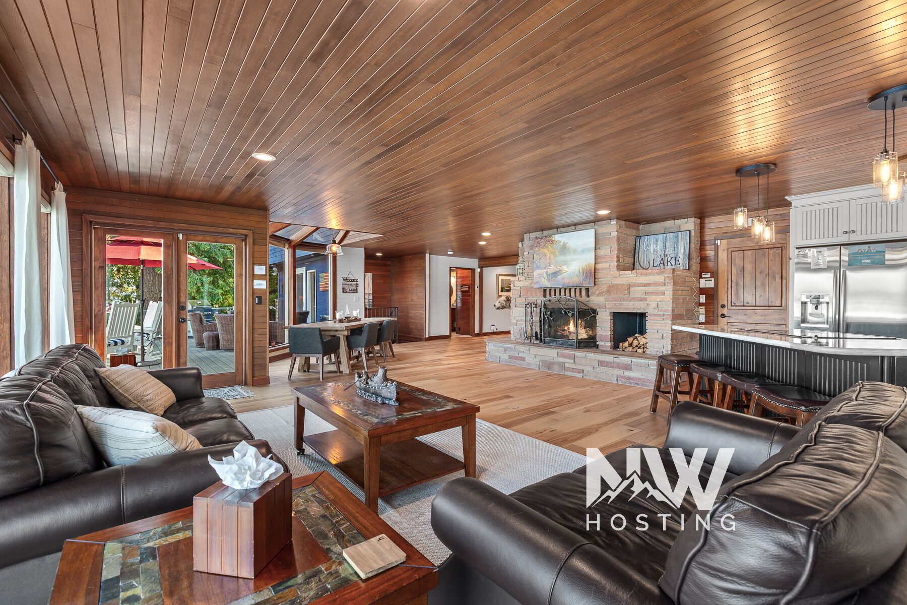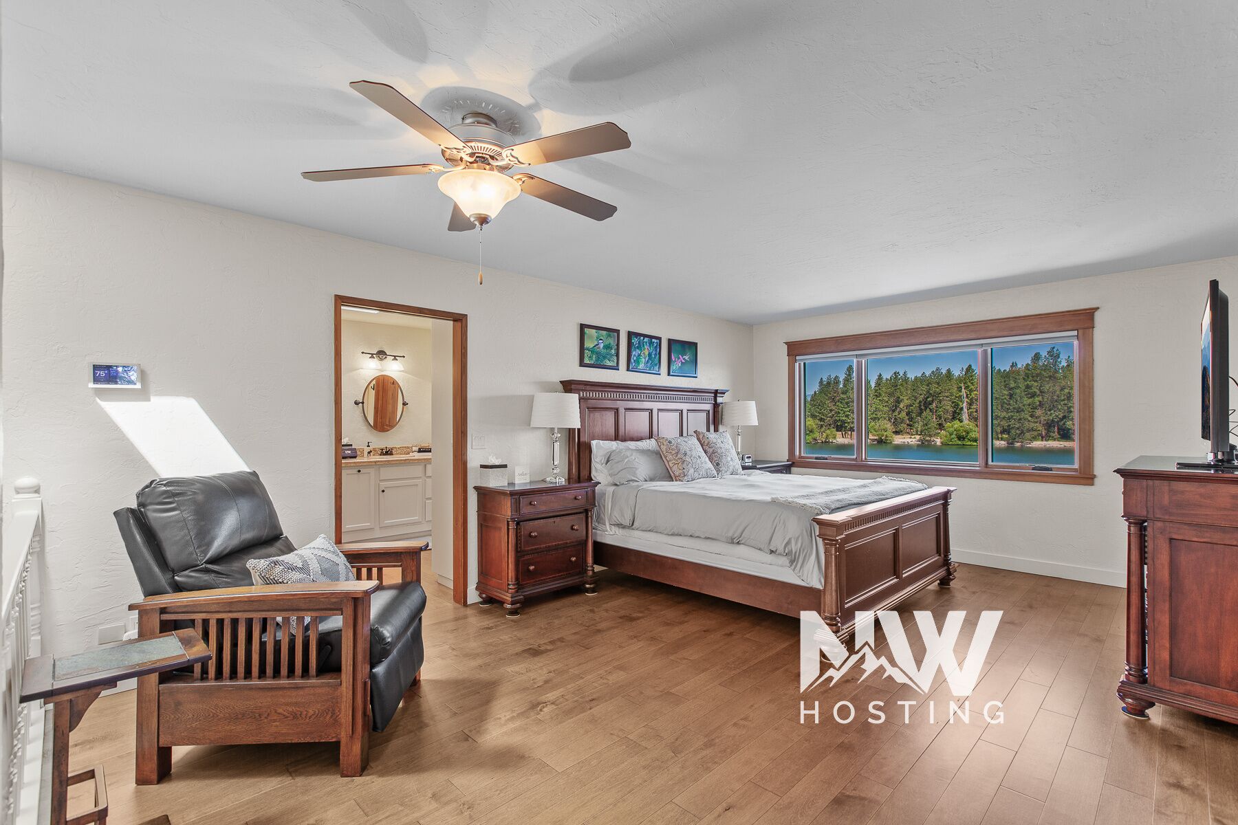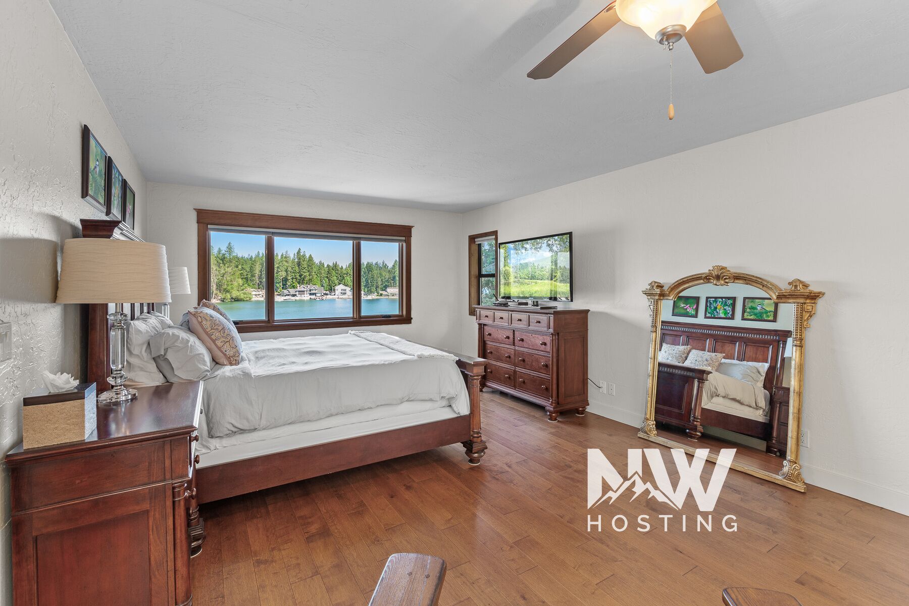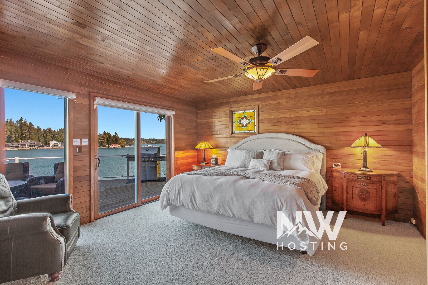 Hayden Lake | Waterfront & Hot tub | Sleeps 10 Welcome to your dream vacation home on the shores of Hayden Lake! Experience the ultimate lakeside retreat at this luxurious property, perfect for families and friends looking to create unforgettable memories. This spacious home offers a blend of relaxation and adventure with breathtaking lake views and top-notch amenities. With 4 bedrooms and 3 bathrooms, and spanning 3,416 sq. ft., there's ample space for everyone.The Space:Entry: Master Suite with a king bed, access to patio, and a bathroom with a standing shower. Washer and dryer are located in the first closet when entering the bedroom. Life jackets are kept in a double-door hallway closet, organized by size.Bay Window: Large dining table with seating for 6.Living Area: Large stone fireplace.Kitchen: Marble countertops and island.Dining Area: Seating for six.Upper Level:Master Suite: King bed, TV, sitting area, and bathroom with a standing shower. The master suite occupies the entire upper level and is open to the stairs.Lower Level:Living Room: Ample seating, access to lower-level patio, TV, and gas-burning fireplace.Guest Bedroom #3: Queen bed.Guest Bedroom #4: Bunk room with two twin bunk beds.Guest Bathroom: Standing shower.Outside:Plenty of parking and room for your boat trailer.Enjoy a pickleball net that easily moves from the garage to the driveway, along with cornhole and giant Jenga sets.Two kayaks, three paddle boards, a lily pad, and life jackets are provided for endless fun on the water.Direct access to the lake with your own private dock and boat slip.Hot tub.Fire table.BBQ.This Hayden Lake home is designed for comfort and enjoyment, ensuring a perfect getaway. Whether you're lounging on the dock, exploring the lake, or engaging in friendly competition with the provided games, there's something for everyone.Important Information: Upon booking, you'll receive an email with your stay agreement. Please review and sign it, as it contains important details about your reservation.Cancellation Policy: In the event of a canceled reservation, a credit card processing cancellation fee equivalent to 4% of the total reservation amount will apply. This fee will be charged to the credit card used for the initial booking and will be deducted from any refund issued.