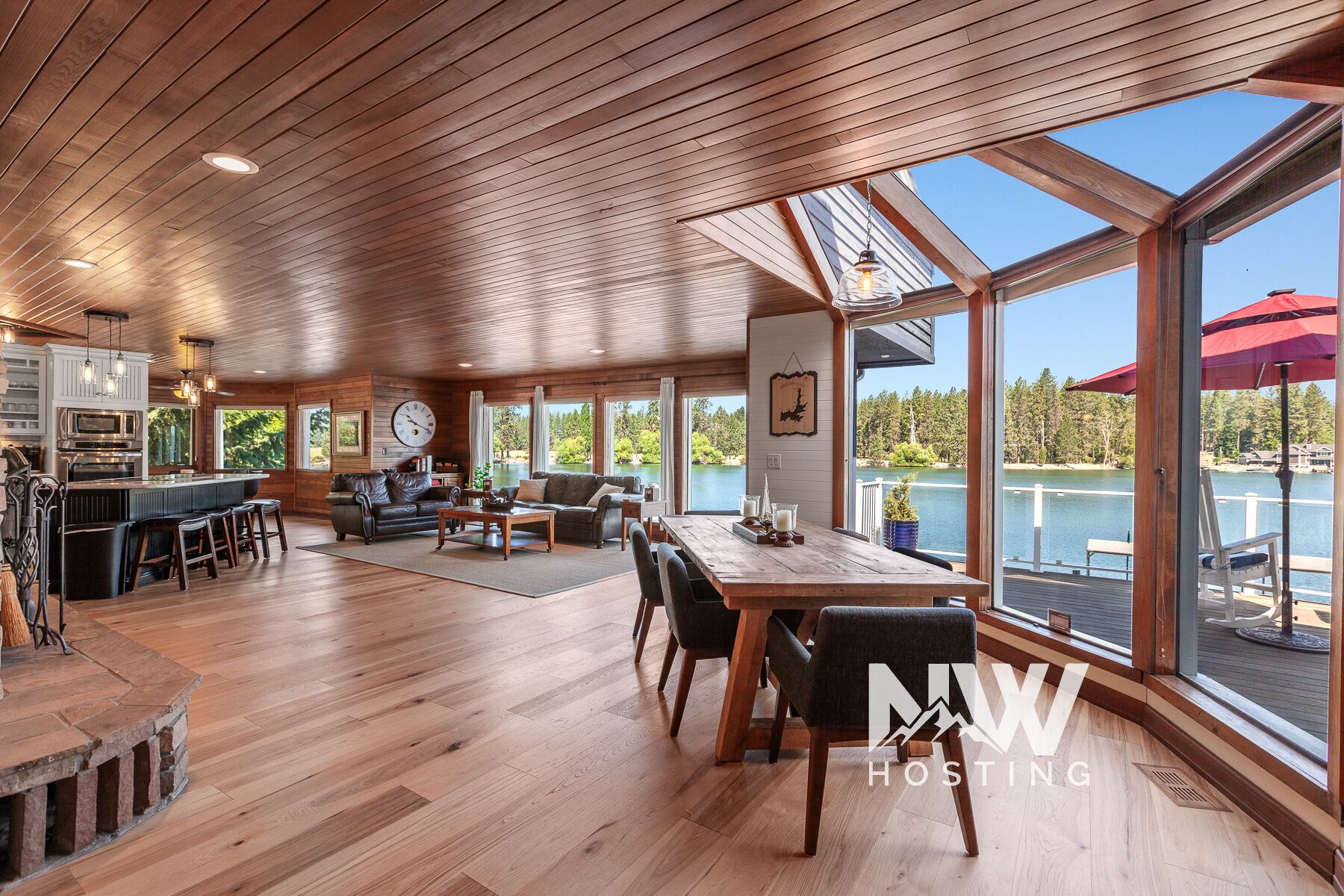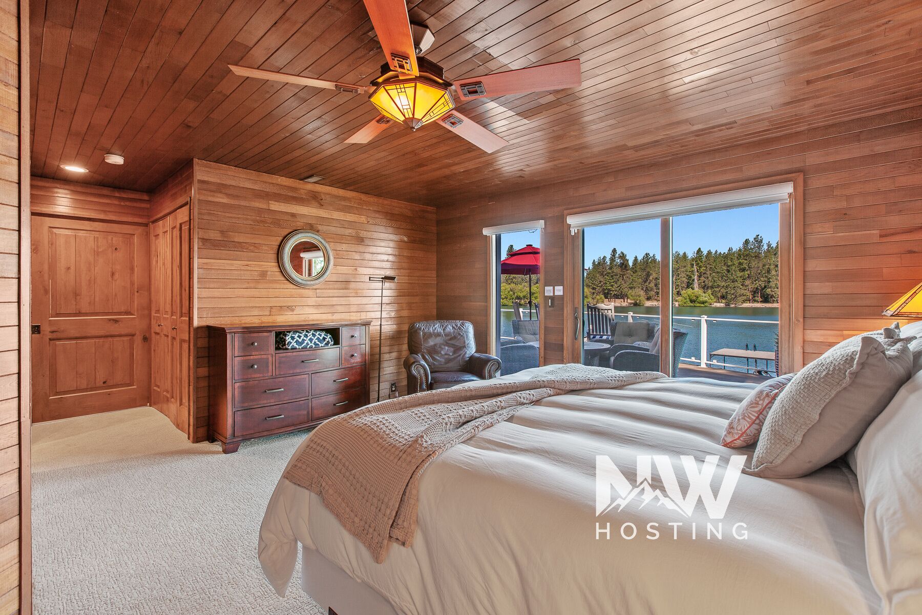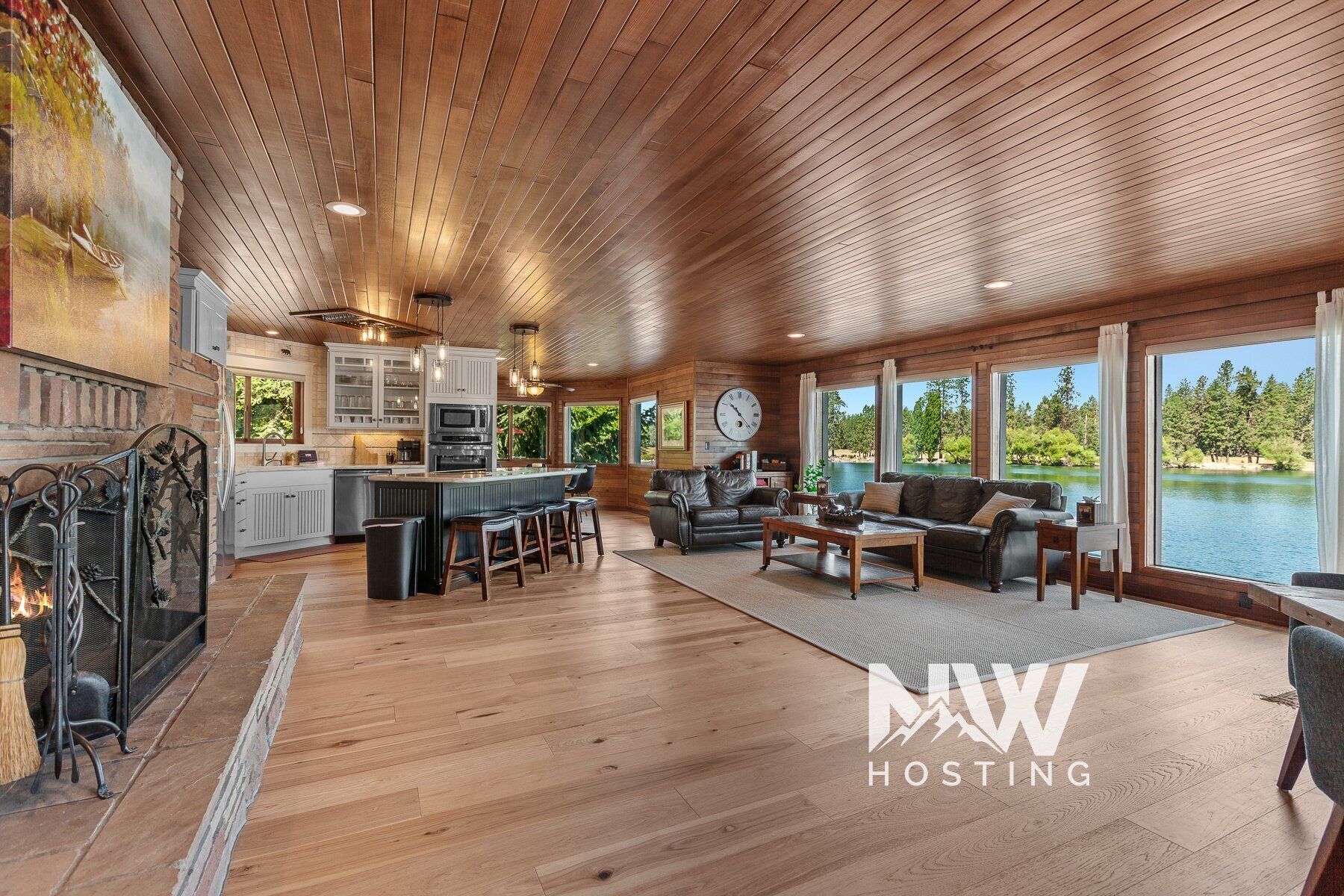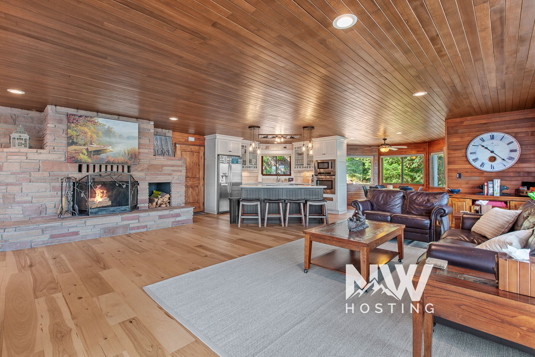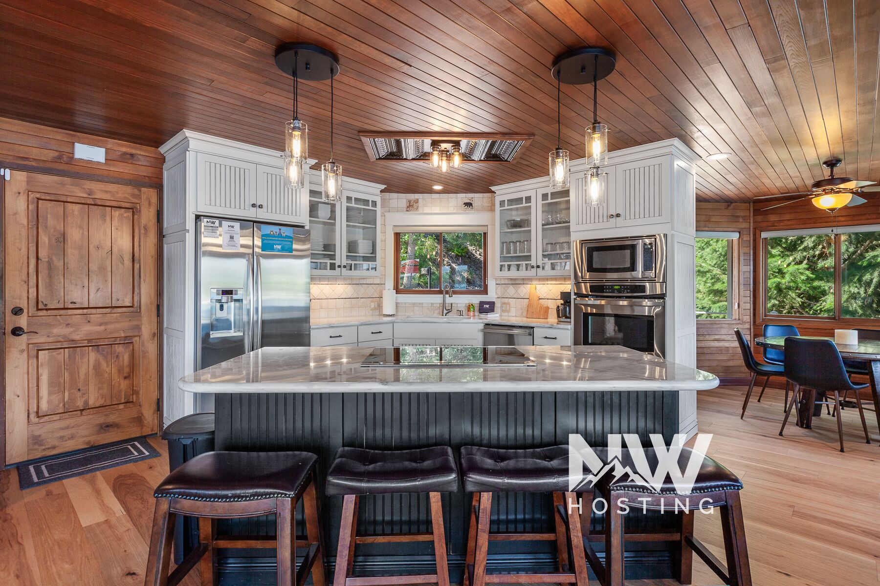 Hayden Lake | Waterfront & Hot tub | Sleeps 10 Welcome to your dream vacation home on the shores of Hayden Lake! Experience the ultimate lakeside retreat at this luxurious property, perfect for families and friends looking to create unforgettable memories. This spacious home offers a blend of relaxation and adventure with breathtaking lake views and top-notch amenities. With 4 bedrooms and 3 bathrooms, and spanning 3,416 sq. ft., there's ample space for everyone.The Space:Entry: Master Suite with a king bed, access to patio, and a bathroom with a standing shower. Washer and dryer are located in the first closet when entering the bedroom. Life jackets are kept in a double-door hallway closet, organized by size.Bay Window: Large dining table with seating for 6.Living Area: Large stone fireplace.Kitchen: Marble countertops and island.Dining Area: Seating for six.Upper Level:Master Suite: King bed, TV, sitting area, and bathroom with a standing shower. The master suite occupies the entire upper level and is open to the stairs.Lower Level:Living Room: Ample seating, access to lower-level patio, TV, and gas-burning fireplace.Guest Bedroom #3: Queen bed.Guest Bedroom #4: Bunk room with two twin bunk beds.Guest Bathroom: Standing shower.Outside:Plenty of parking and room for your boat trailer.Enjoy a pickleball net that easily moves from the garage to the driveway, along with cornhole and giant Jenga sets.Two kayaks, three paddle boards, a lily pad, and life jackets are provided for endless fun on the water.Direct access to the lake with your own private dock and boat slip.Hot tub.Fire table.BBQ.This Hayden Lake home is designed for comfort and enjoyment, ensuring a perfect getaway. Whether you're lounging on the dock, exploring the lake, or engaging in friendly competition with the provided games, there's something for everyone.Important Information: Upon booking, you'll receive an email with your stay agreement. Please review and sign it, as it contains important details about your reservation.Cancellation Policy: In the event of a canceled reservation, a credit card processing cancellation fee equivalent to 4% of the total reservation amount will apply. This fee will be charged to the credit card used for the initial booking and will be deducted from any refund issued.
