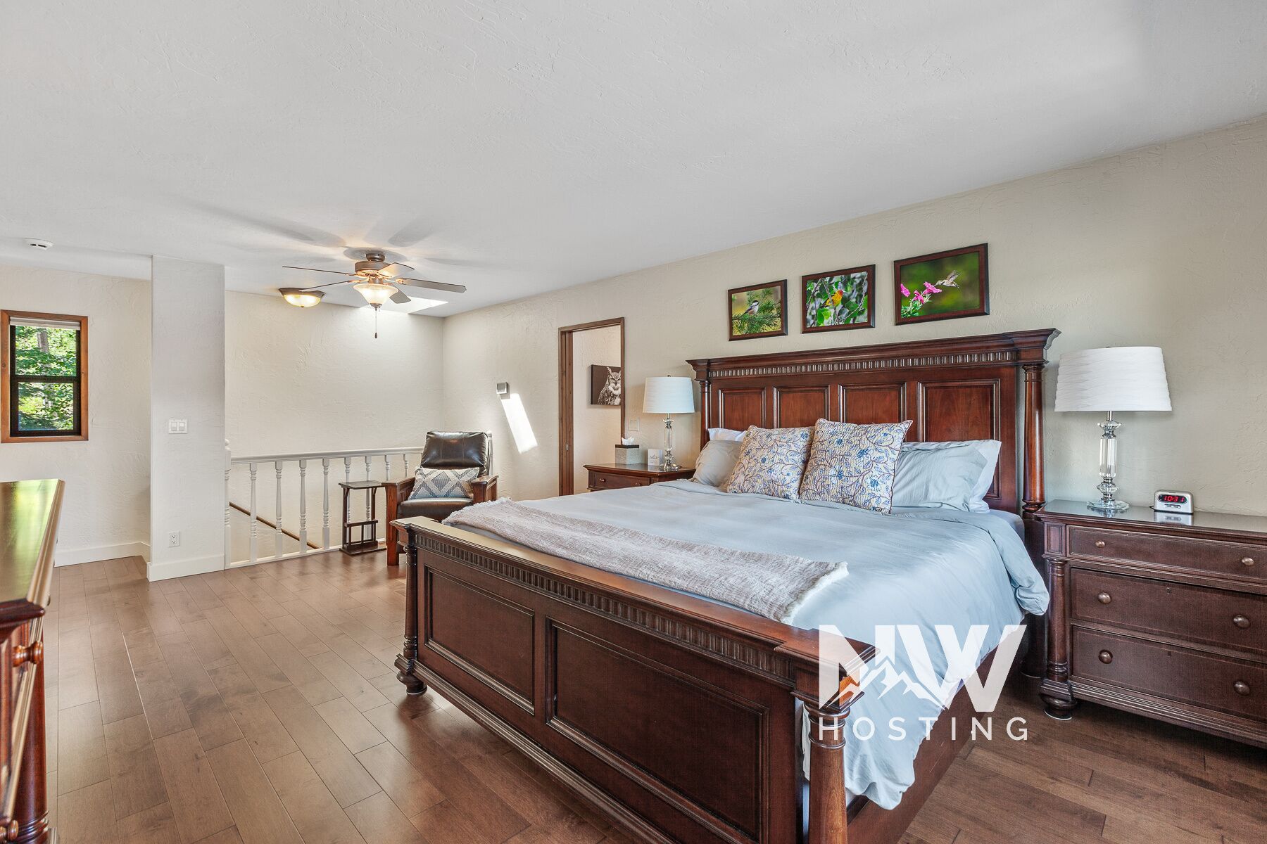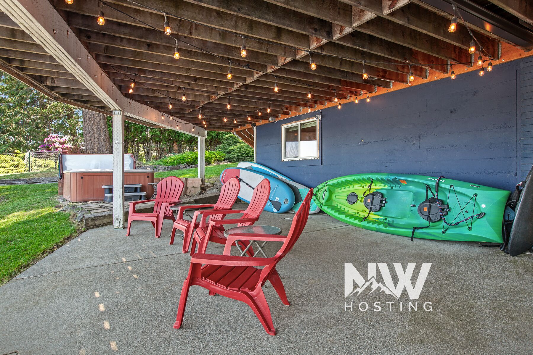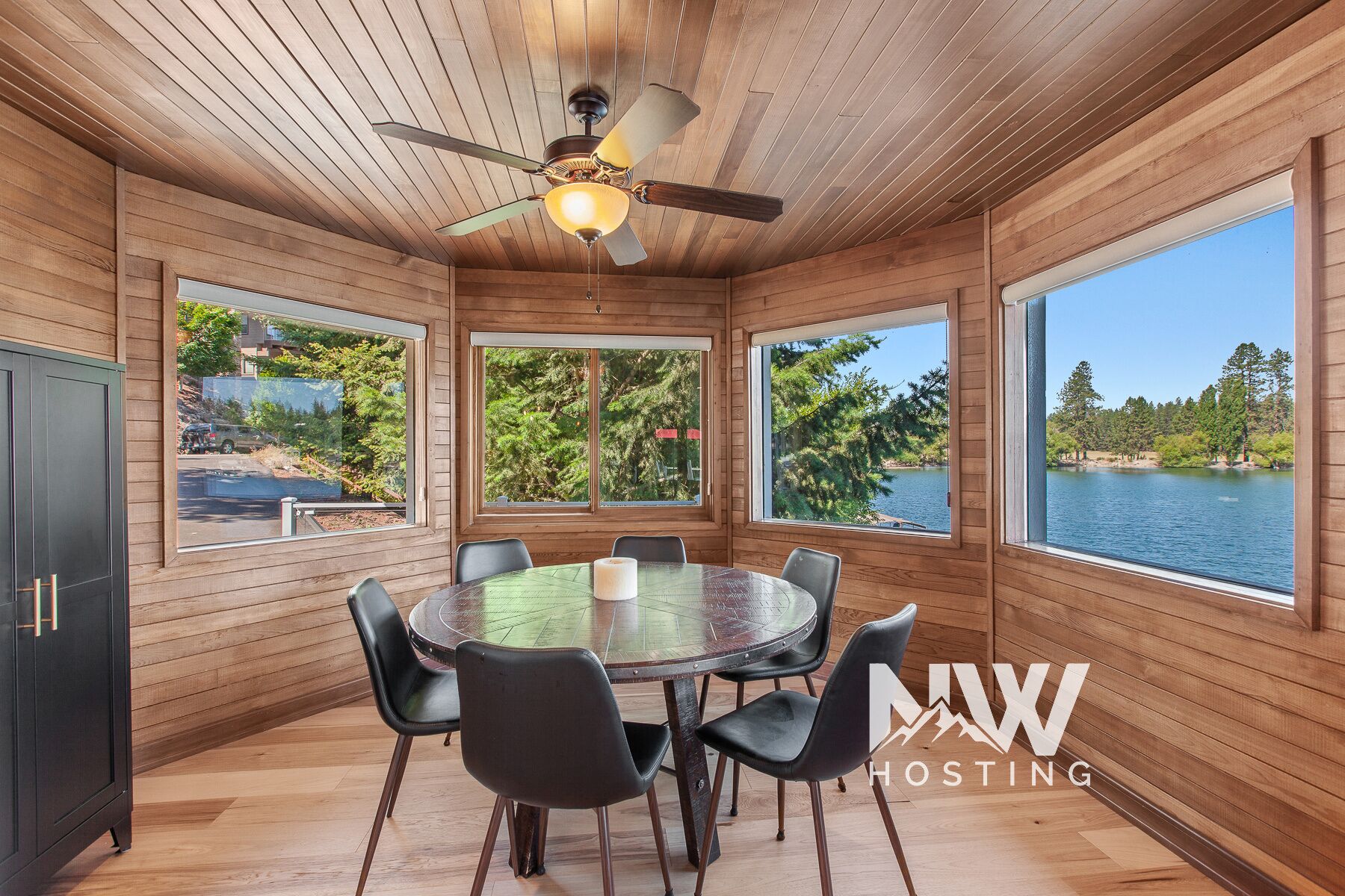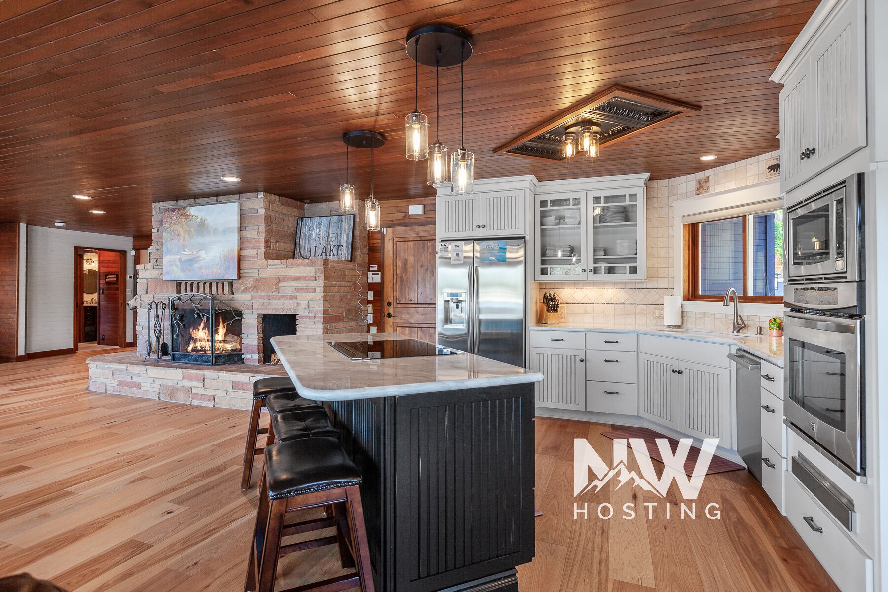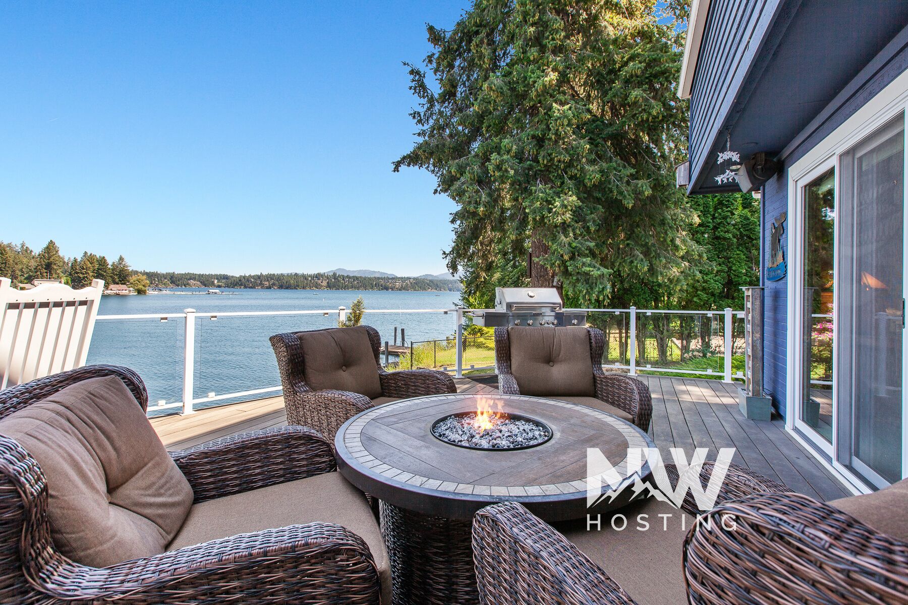 Hayden Lake | Waterfront & Hot tub | Sleeps 10 Welcome to your dream vacation home on the shores of Hayden Lake! Experience the ultimate lakeside retreat at this luxurious property, perfect for families and friends looking to create unforgettable memories. This spacious home offers a blend of relaxation and adventure with breathtaking lake views and top-notch amenities. With 4 bedrooms and 3 bathrooms, and spanning 3,416 sq. ft., there's ample space for everyone.The Space:Entry: Master Suite with a king bed, access to patio, and a bathroom with a standing shower. Washer and dryer are located in the first closet when entering the bedroom. Life jackets are kept in a double-door hallway closet, organized by size.Bay Window: Large dining table with seating for 6.Living Area: Large stone fireplace.Kitchen: Marble countertops and island.Dining Area: Seating for six.Upper Level:Master Suite: King bed, TV, sitting area, and bathroom with a standing shower. The master suite occupies the entire upper level and is open to the stairs.Lower Level:Living Room: Ample seating, access to lower-level patio, TV, and gas-burning fireplace.Guest Bedroom #3: Queen bed.Guest Bedroom #4: Bunk room with two twin bunk beds.Guest Bathroom: Standing shower.Outside:Plenty of parking and room for your boat trailer.Enjoy a pickleball net that easily moves from the garage to the driveway, along with cornhole and giant Jenga sets.Two kayaks, three paddle boards, a lily pad, and life jackets are provided for endless fun on the water.Direct access to the lake with your own private dock and boat slip.Hot tub.Fire table.BBQ.This Hayden Lake home is designed for comfort and enjoyment, ensuring a perfect getaway. Whether you're lounging on the dock, exploring the lake, or engaging in friendly competition with the provided games, there's something for everyone.Important Information: Upon booking, you'll receive an email with your stay agreement. Please review and sign it, as it contains important details about your reservation.Cancellation Policy: In the event of a canceled reservation, a credit card processing cancellation fee equivalent to 4% of the total reservation amount will apply. This fee will be charged to the credit card used for the initial booking and will be deducted from any refund issued.