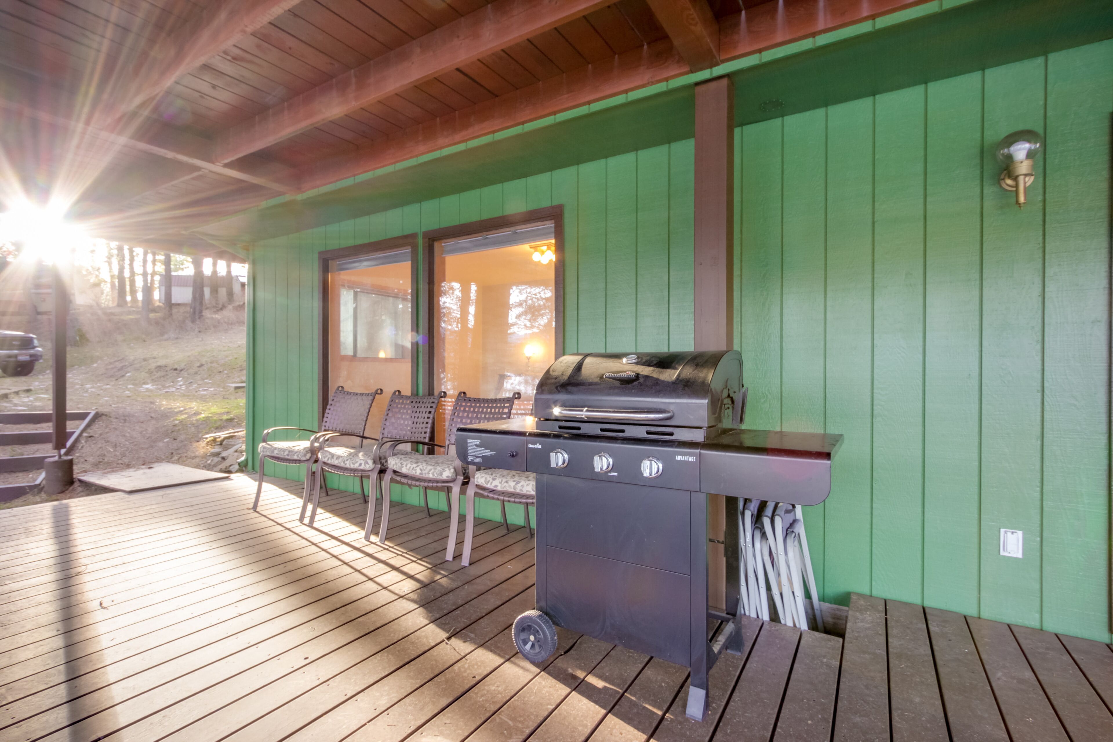Secluded akefront home with private dock, two-level deck, & BBQ area Sandbar PointOur calendar is updated in real-time & our nightly rates are accurately displayed. Simply enter your desired dates and click 'Book Now!'Your next northern Idaho vacation could be spent at this boater's paradise, a waterfront retreat on the shores of Hayden Lake with magnificent views of the water, forest, and mountains. You'll enjoy a tranquil location with plenty of privacy, as well as direct access to Hayden Lake with all sorts of waterfront perks. Park your boat at the private dock, relax on the spacious two-level deck, and enjoy a prime view of the sandbar - a favorite spot for boaters!Spend memorable evenings on the extensive waterfront deck grilling delicious treats, sunbathing, admiring the views, or dining alfresco. Inside, the welcoming living room invites you to spread out comfortably on any of the sofas as you watch a favorite show on the TV. When mealtime comes, prepare delicious homemade treats in the well-appointed kitchen, complete with all the essentials. Additional perks include a washer/dryer. A wonderful place for fishing, hiking, swimming, and boating, this home sits directly on the eastern shores of Hayden Lake. Hayden Lake Marina is just 10 miles away, offering the perfect spot to watch boats come and go. Just a little bit farther at 11 miles west are Honeysuckle Beach, Hayden Lake Country Club, and other attractions in the town of Hayden Lake. You can also head 11 miles west to find the Avondale Golf Course. If you want to shop, dine, or explore public beaches and hiking trails, you can make the 19-mile journey to Coeur d'Alene with its charming city center and floating golf course. The kids will delight in a trip to Silverwood Theme Park (19 miles north) and skiers will relish in a visit to Silver Mountain Resort (55 miles east) for some of Idaho's best snow. Additionally, you can find some very good huckleberry picking in the readily accessible mountains just to the east of the lake cabin!House RulesCheck-in time: 4:00 PM.Check-out time: 10:00 AM.All guests shall abide by Vacasa’s good neighbor policy and shall not engage in illegal activity. Quiet hours are from 10:00 PM to 8:00 AM.No smoking is permitted anywhere on the premises.Cell service may be limited at this home (although Verizon does work).Parking notes: There is free parking available for 3 vehicles.Dock details: Dock with slipDamage waiver: The total cost of your reservation for this Property includes a nightly damage waiver fee, plus tax if applicable (the “Damage Waiver”). (A discount may be applied for stays of 28 nights or longer, if permitted.) The Damage Waiver covers you for up to $3,000 of accidental damage to the Property or its contents (such as furniture, fixtures, and appliances) as long as you report the incident to the host prior to checking out. The Damage Waiver fee eliminates the need for a traditional security deposit.More information can be downloaded from the "Rental Agreement" on the checkout page.Due to local laws or HOA requirements, guests must be at least 21 years of age to book. Guests under 21 must be accompanied by a parent or legal guardian for the duration of the reservation.