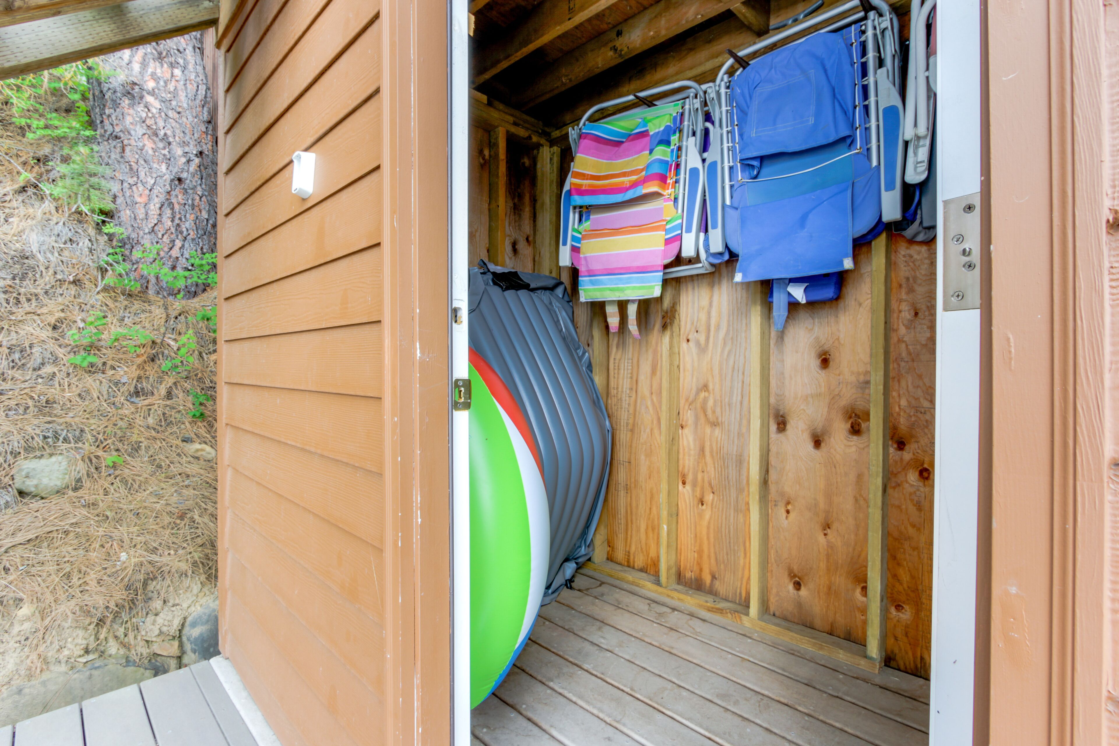 Dog-friendly waterfront cabin w/dock, boat slip, patio, deck & mountain views Cozy Hayden Idaho Lake CabinOur calendar is updated in real-time & our nightly rates are accurately displayed. Simply enter your desired dates and click 'Book Now!'Quiet, peaceful, and partially secluded, this two-level, Idaho cabin features beautiful lake and mountain views and great fishing from a private dock and boat slip! Savor that first cup of morning coffee as you gaze out over the sparkling waters of Hayden Lake from the private deck. The free WiFi makes planning new daily lake adventures a breeze. After spending an afternoon out on the water, rinse off in the outdoor shower and cook up your fresh catch in the full kitchen. Choose some great titles from the cinema library, host a family movie night on the 30-inch smart TV, and snuggle up in the casual sofa and armchairs while the air conditioning and heating keep the home nice and comfortable.WHAT’S NEARBYThis home is ideally located in an area celebrated for its boating, fishing, swimming, hiking, and cycling, just eight miles north of the shopping and dining of downtown Coeur d'Alene. You'll be less than half a mile from the Hayden Lake Marina, three miles east of central Hayden, and 16 miles south of Silverwood Theme Park. Spend day after day out on the water, easily accessed from your private dock and boat slip or from the Hayden Lake Marina. Tee off at the Hayden Lake Country Club or play the fairways at one of Coeur d'Alene's many golf courses.THINGS TO KNOWA private dock and boat slip are available.There is now a second half-bath (with a toilet and sink) located in an outbuilding directly next to the home.Outdoor fires are not allowed on the property. Thank you.If you are bringing a dog on your trip, the pet fee is already included in your quote when selecting ‘Yes’ to pets. No more dogs are allowed.Parking notes: There is free parking available for 3 vehicles.Dock details: Damage waiver: The total cost of your reservation for this Property includes a nightly damage waiver fee, plus tax if applicable (the “Damage Waiver”). (A discount may be applied for stays of 28 nights or longer, if permitted.) The Damage Waiver covers you for up to $3,000 of accidental damage to the Property or its contents (such as furniture, fixtures, and appliances) as long as you report the incident to the host prior to checking out. The Damage Waiver fee eliminates the need for a traditional security deposit.More information can be downloaded from the "Rental Agreement" on the checkout page.Due to local laws or HOA requirements, guests must be at least 21 years of age to book. Guests under 21 must be accompanied by a parent or legal guardian for the duration of the reservation.