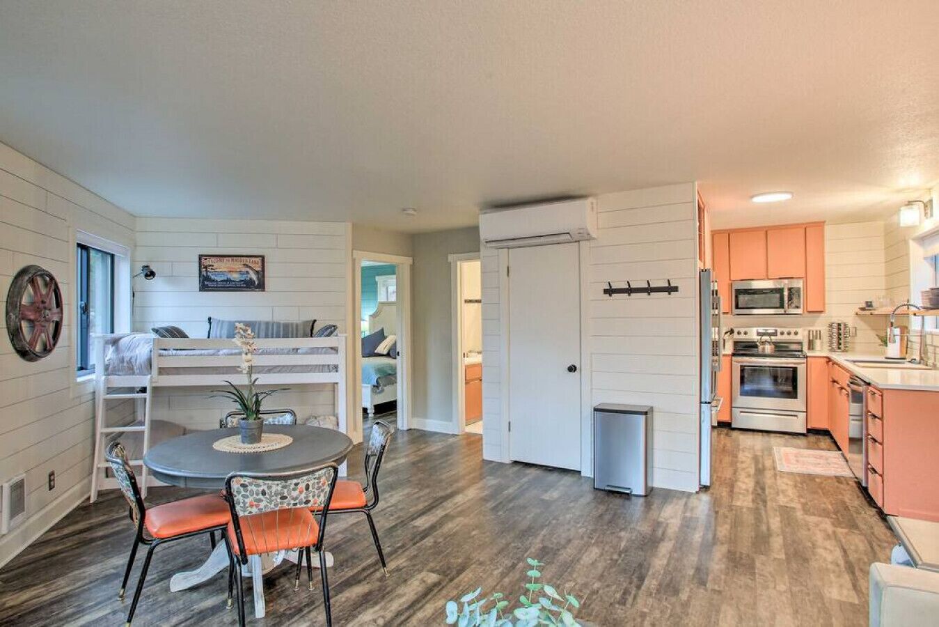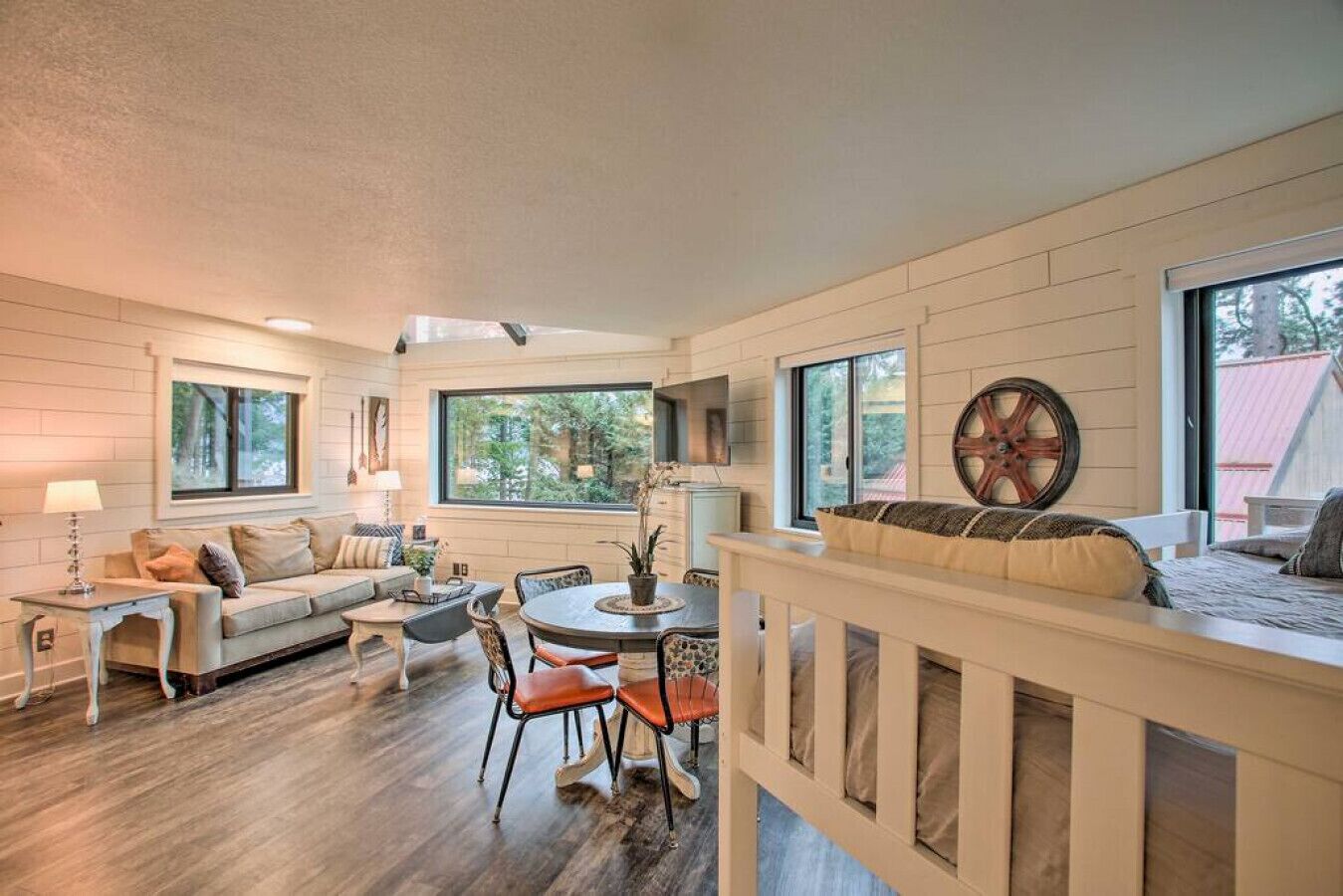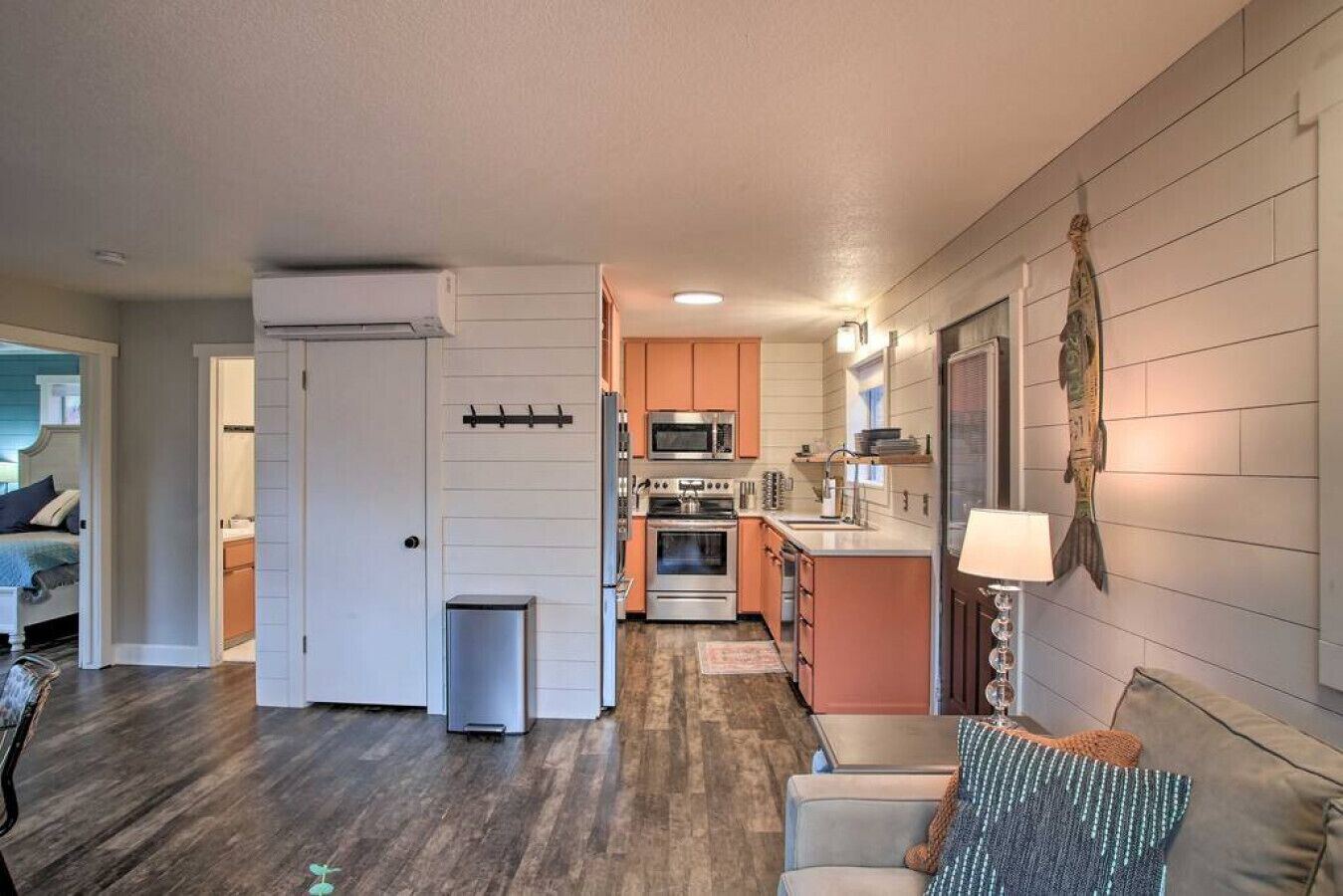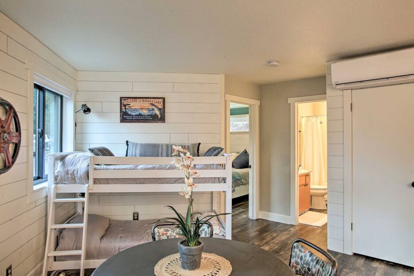 The Cottage · Relaxing Hayden Lake Cottage with Water Access Escape reality and make your way to Hayden Lake and stay at this 1-bedroom, 1-bathroom cabin. With its proximity to the water and cozy interior, this vacation rental gives you all the essentials to live life at the lake. Stroll down to your private dock where you can fish, swim, or rent a kayak, paddleboard or jet skis! The dock just next door provides a fun wake surfing lessons excursion! Head home to watch movies or shows on your Smart TV, then call it a night before another action-packed day.No parties, smoking, pets and please have fun!ADDITIONAL INFORMATION:-Please note that a boat slip can be rented- Please note that 4-wheel drive or all-wheel drive is necessary in the winter months to access the property- Please note that the homeowner lives on-site, in a completely separate unit, and may be present during your stay- Please note that there is another vacation rental unit on the premises, and there may be other travelers present during your stayFree WiFi | Walk to Lake | Full Kitchen | Kayaks, SUP Paddleboard and Jet Ski Rentals On-SitePerfect for small groups wanting to get away for a quick-but-enjoyable lake trip, 'The Cottage,' loaded with complimentary towels and toiletries, a full kitchen, and sleeping for 6, has it all.Bedroom: California King Bed | Living Room: Full Sleeper Sofa, 2 Twin BedsINDOOR LIVING: Flat-screen Smart TV, ceiling fan, dining table, hardwood floors, laptop-friendly workspaceKITCHEN: Fully equipped w/ stainless steel appliances, glass-top stove, oven, dishwasher, blender, microwave, toaster, drip coffee maker, dishware & flatware, cooking essentialsOUTDOOR LIVING: Private deck w/ furniture, propane grillGENERAL: Mini split A/C and heat, washer/dryer, linens/towels provided, complimentary toiletriesPARKING:- 2 vehicles can be parked in the drivewayNEARBY:- Grocery: Super 1 - 240 W. Hayden Avenue, Hayden, ID 83835, (208) 772-5722- Medical Clinic: WALK-IN CLINIC - 265 W Prairie Shopping Center, Hayden, ID 83835, (208) 772-7850- Airport: Spokane International Airport (47.9 miles)