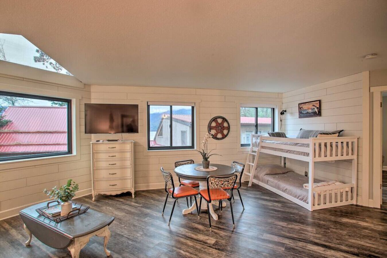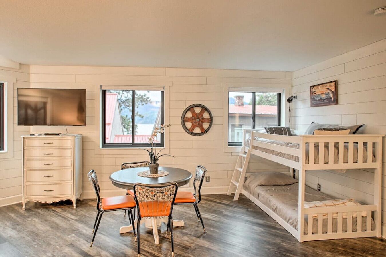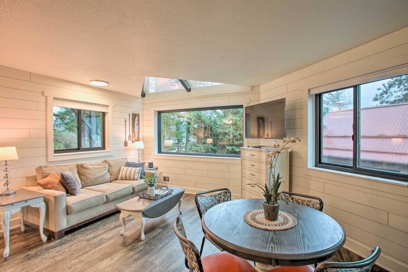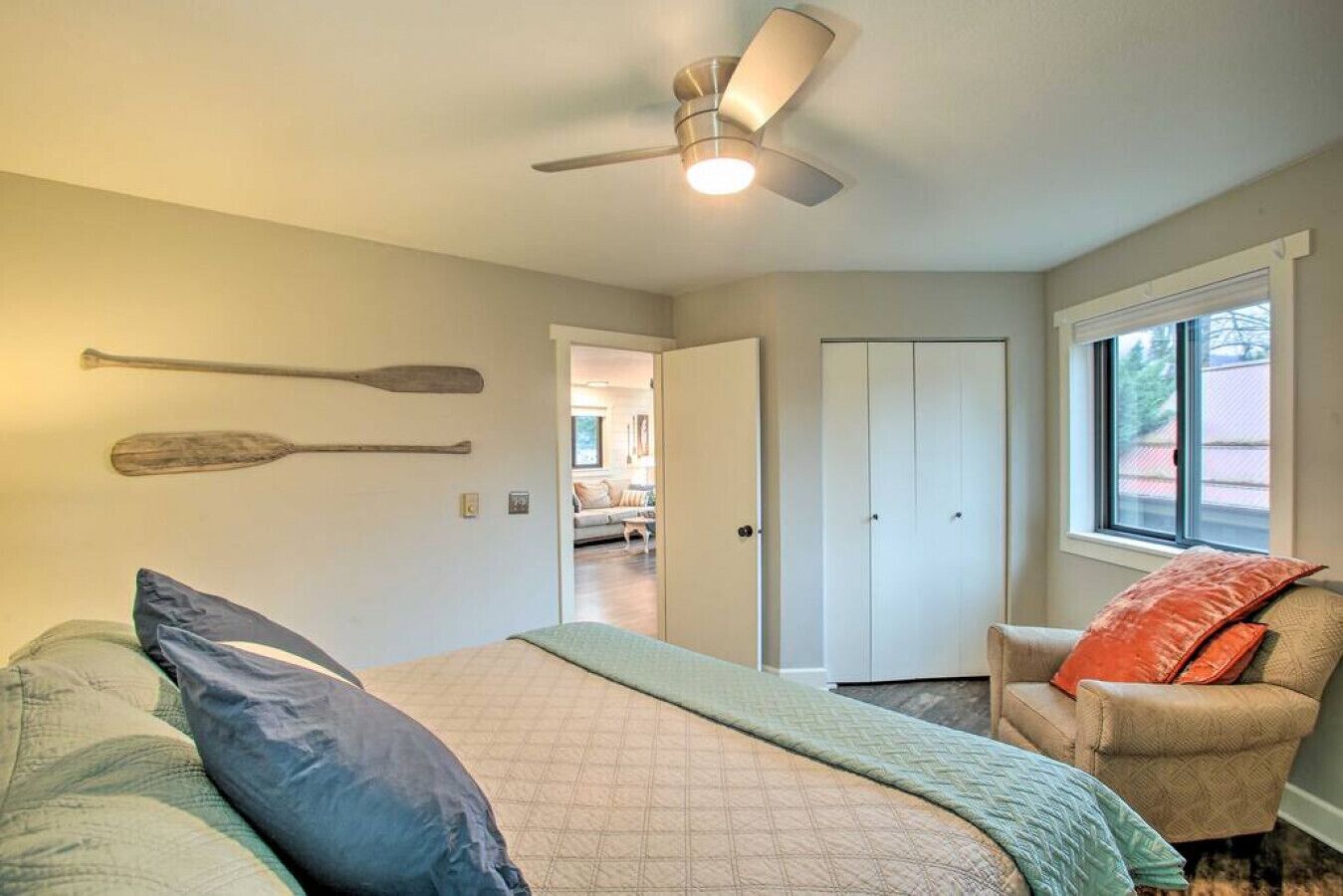 The Cottage · Relaxing Hayden Lake Cottage with Water Access Escape reality and make your way to Hayden Lake and stay at this 1-bedroom, 1-bathroom cabin. With its proximity to the water and cozy interior, this vacation rental gives you all the essentials to live life at the lake. Stroll down to your private dock where you can fish, swim, or rent a kayak, paddleboard or jet skis! The dock just next door provides a fun wake surfing lessons excursion! Head home to watch movies or shows on your Smart TV, then call it a night before another action-packed day.No parties, smoking, pets and please have fun!ADDITIONAL INFORMATION:-Please note that a boat slip can be rented- Please note that 4-wheel drive or all-wheel drive is necessary in the winter months to access the property- Please note that the homeowner lives on-site, in a completely separate unit, and may be present during your stay- Please note that there is another vacation rental unit on the premises, and there may be other travelers present during your stayFree WiFi | Walk to Lake | Full Kitchen | Kayaks, SUP Paddleboard and Jet Ski Rentals On-SitePerfect for small groups wanting to get away for a quick-but-enjoyable lake trip, 'The Cottage,' loaded with complimentary towels and toiletries, a full kitchen, and sleeping for 6, has it all.Bedroom: California King Bed | Living Room: Full Sleeper Sofa, 2 Twin BedsINDOOR LIVING: Flat-screen Smart TV, ceiling fan, dining table, hardwood floors, laptop-friendly workspaceKITCHEN: Fully equipped w/ stainless steel appliances, glass-top stove, oven, dishwasher, blender, microwave, toaster, drip coffee maker, dishware & flatware, cooking essentialsOUTDOOR LIVING: Private deck w/ furniture, propane grillGENERAL: Mini split A/C and heat, washer/dryer, linens/towels provided, complimentary toiletriesPARKING:- 2 vehicles can be parked in the drivewayNEARBY:- Grocery: Super 1 - 240 W. Hayden Avenue, Hayden, ID 83835, (208) 772-5722- Medical Clinic: WALK-IN CLINIC - 265 W Prairie Shopping Center, Hayden, ID 83835, (208) 772-7850- Airport: Spokane International Airport (47.9 miles)