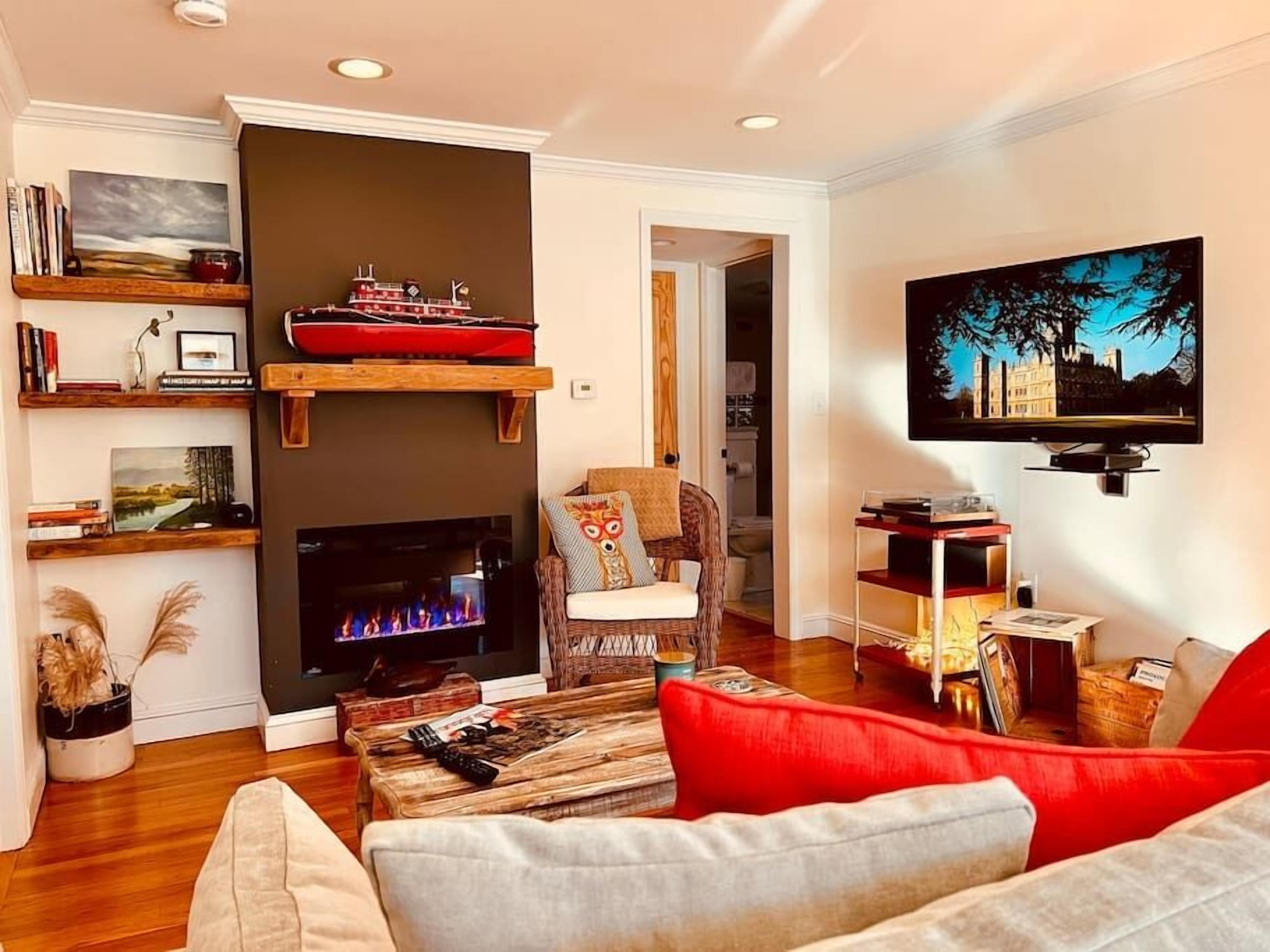 The Carriage House-Cozy Hide-Away near West Point Situated in a park-like setting 60 minutes north of NYC and a10 minute drive from West Point, the Cornwall Carriage House is a custom designed escape featuring a fully stocked gourmet kitchen, sitting room with fireplace and a large bedroom.The cottage features a large TV, Electric Fireplace and High Speed Wifi and a designated work space just in case you need to do a little work during your stay.Our property is walking distance to Charming Cornwall's Coffee shops, restaurants and shops.The space is cozy and complete. You will find everything you need. The bedroom is spacious with room for a sofa and working space. In the evening, you can enjoy a good movie in front of a toasty modern fire or cook a nice meal in the newly designed kitchen.The Carriage House is located on the same property as the 1907 Cornwall House.We are always available to answer questions by text or phone!Cornwall is a charming town featuring many great restaurants, coffee shops and boutiques.We are also close to many great hiking trails, the Hudson River and Storm King Art Center.