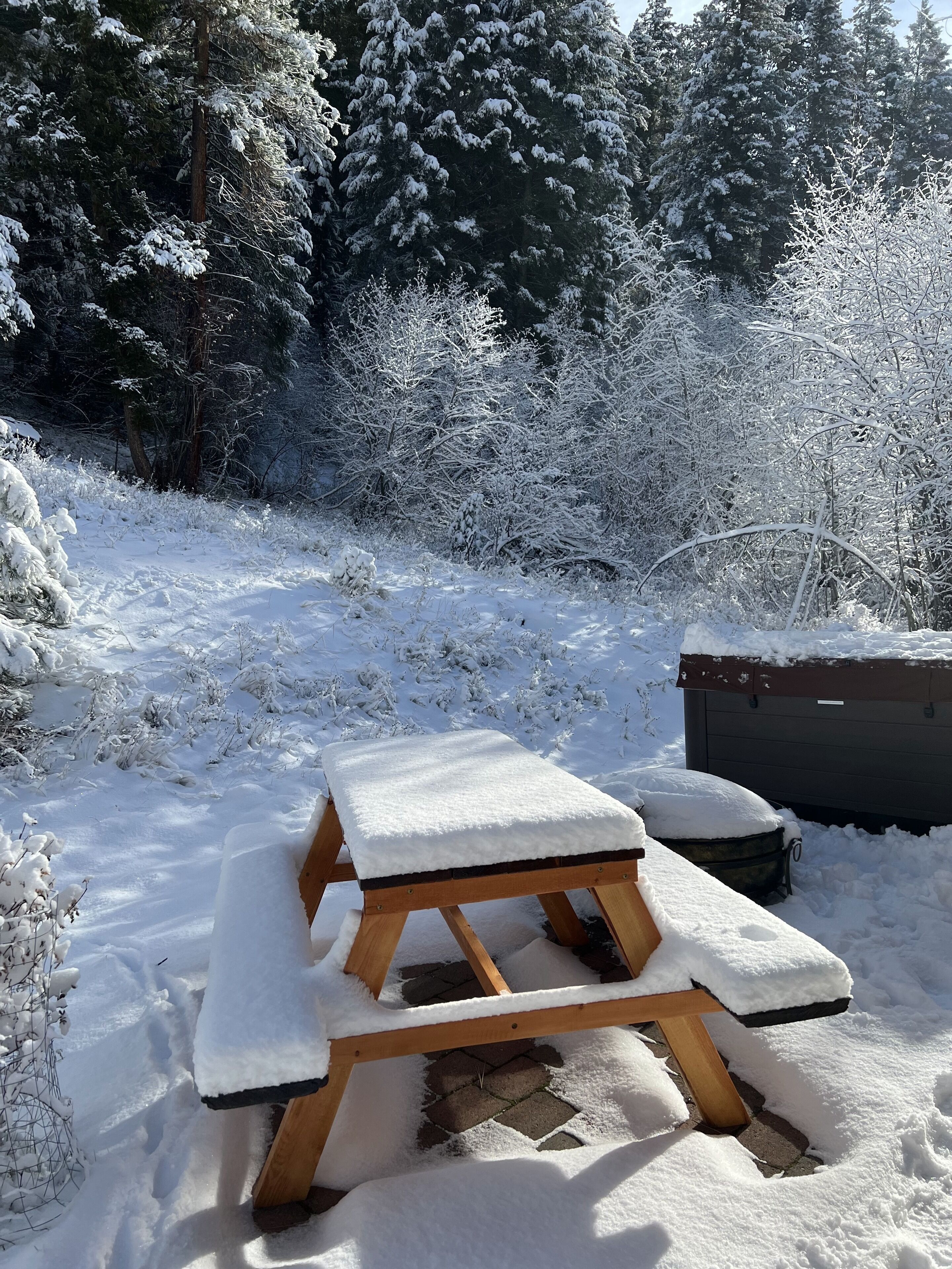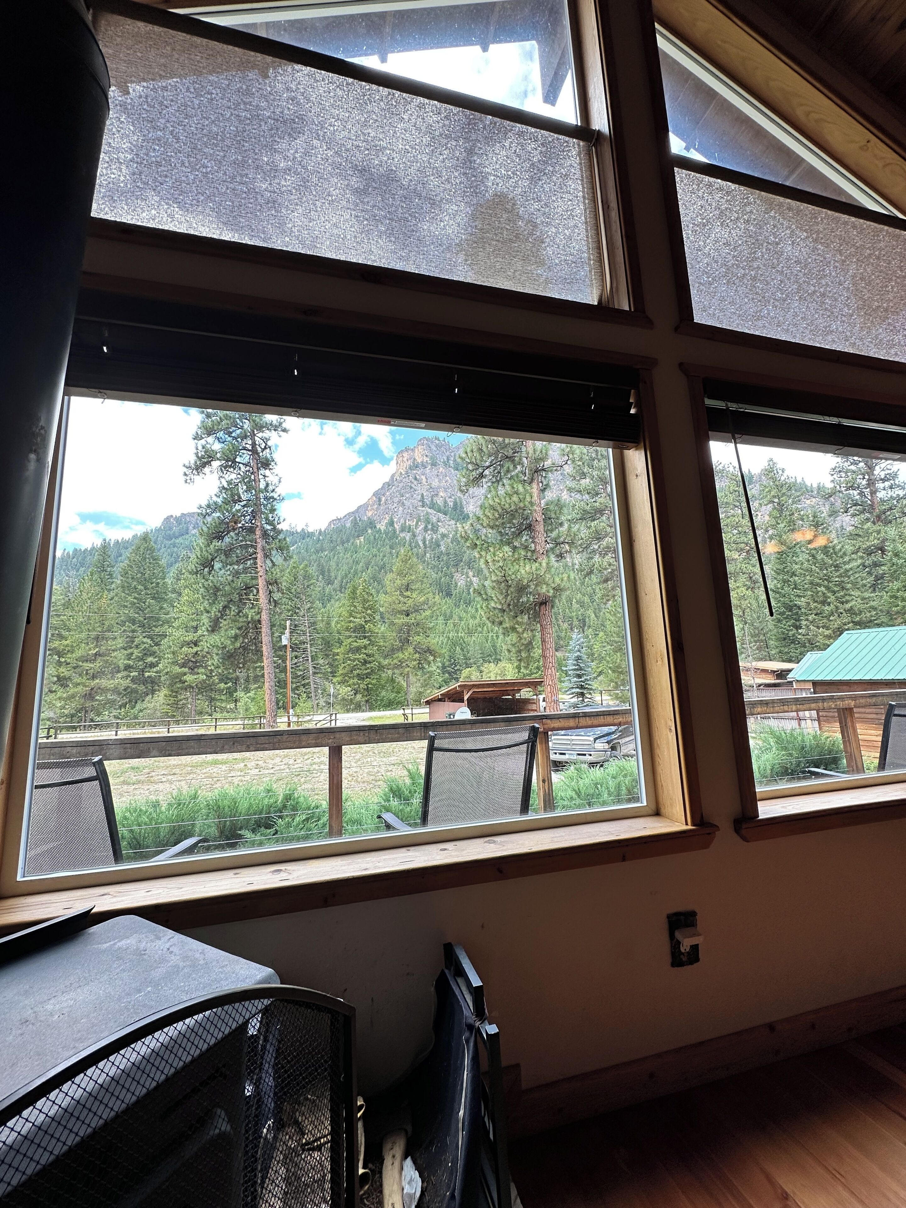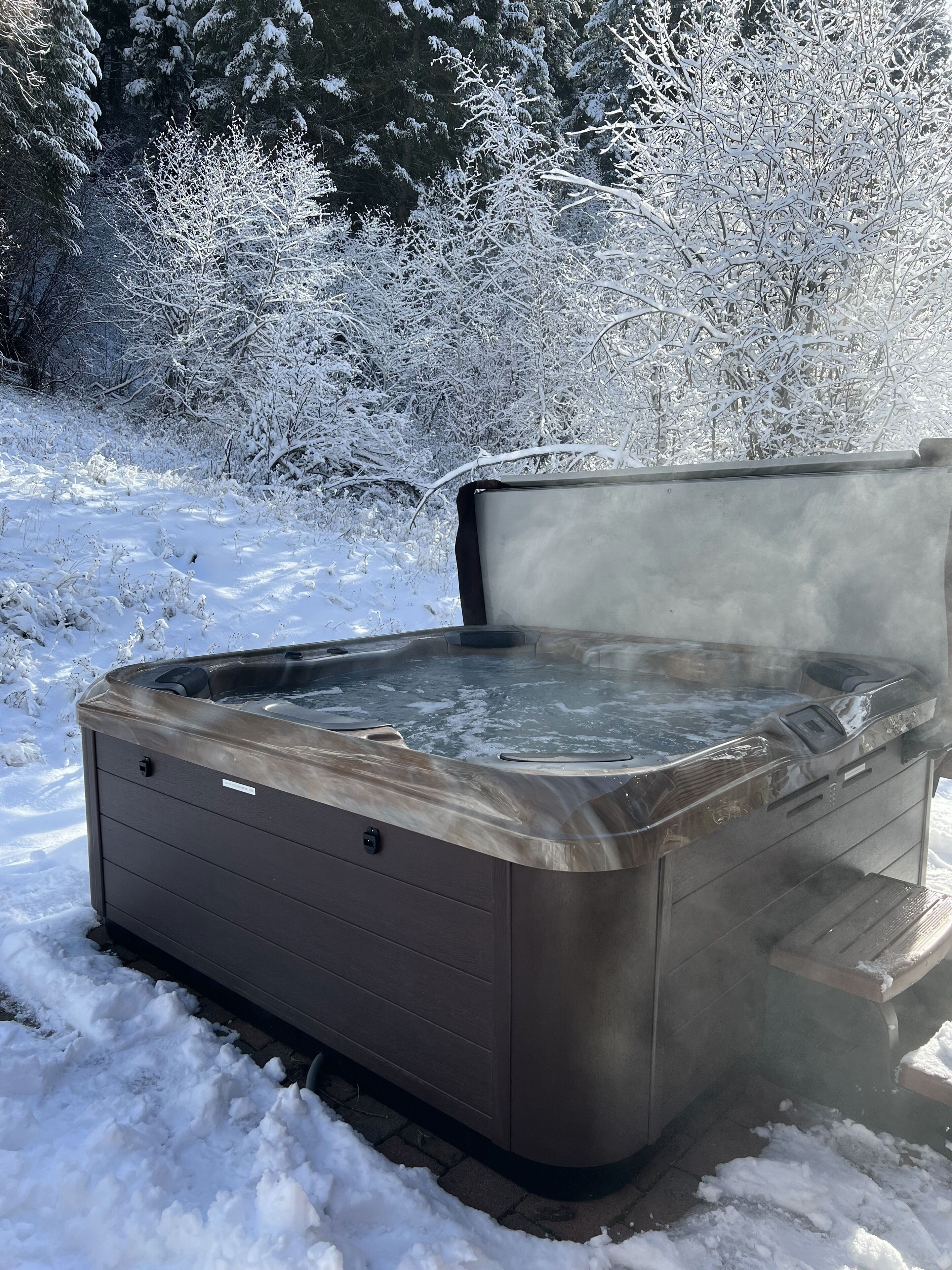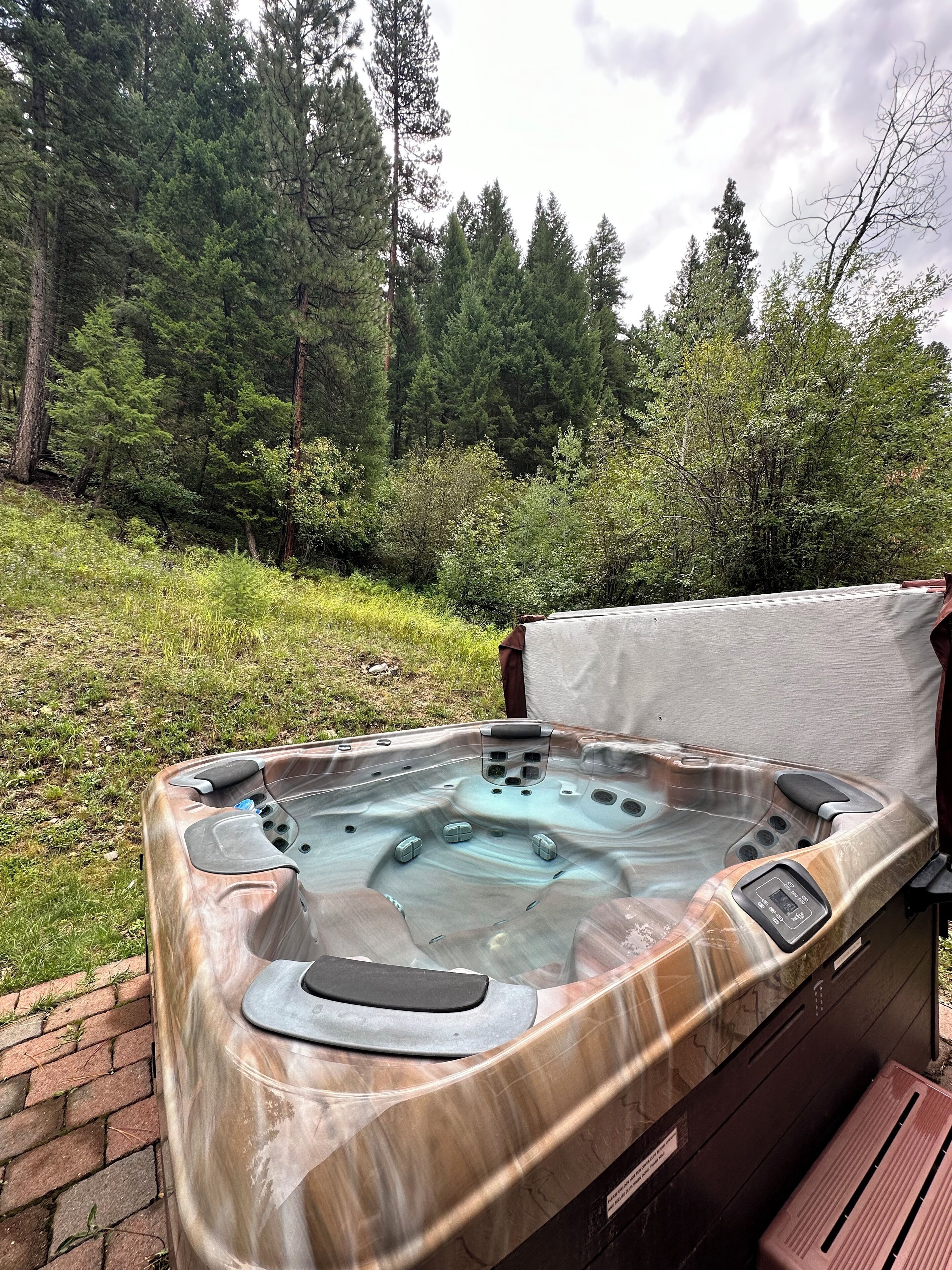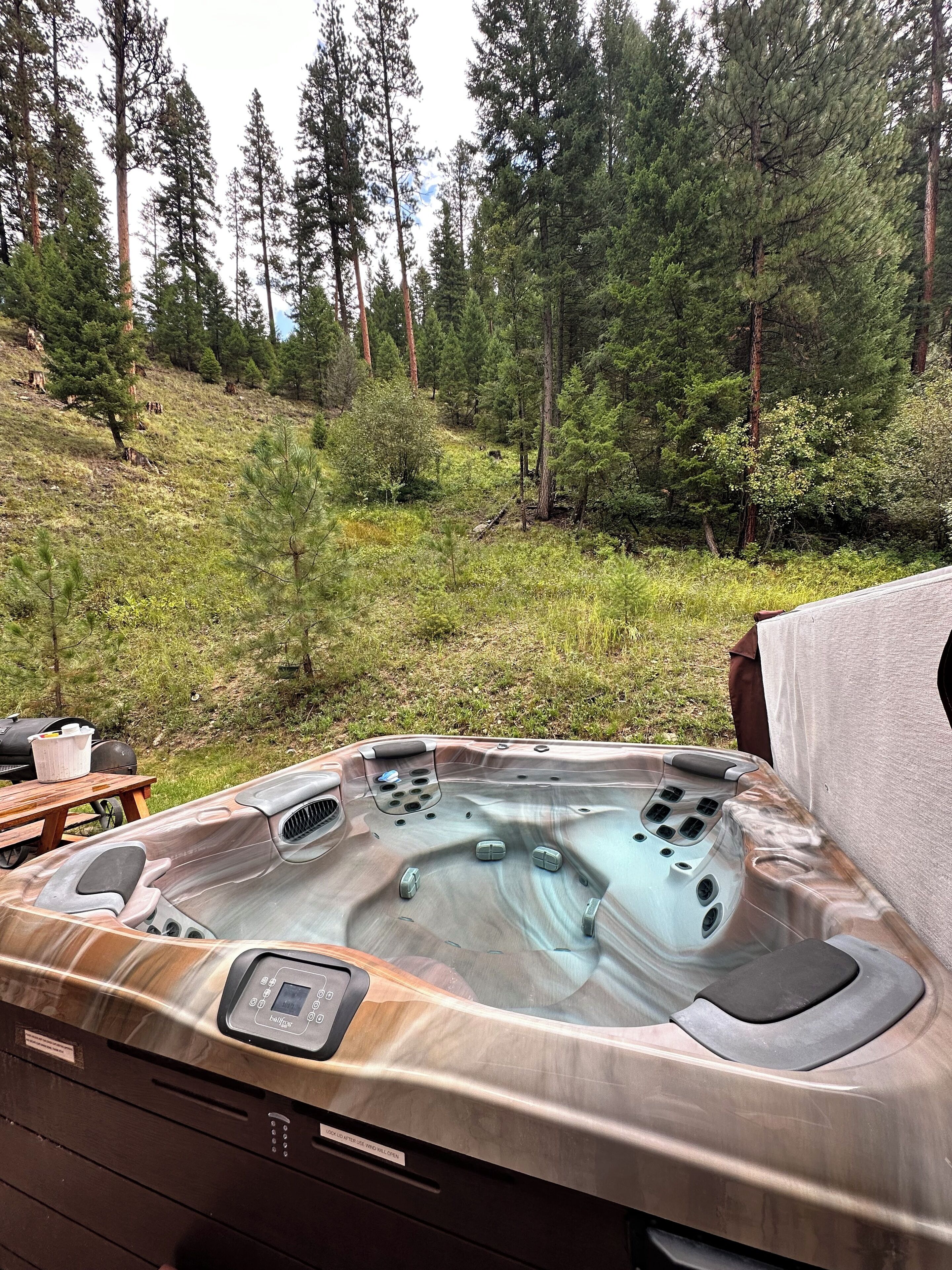 Cozy & Peaceful Painted Rocks Lake Cabin w/Hot Tub adjacent to West Fork River Outdoor person’s paradise & great location for the family 1/2 mile from Painted Rocks Lake State Park and a short walking distance to fishing access on the West Fork River. Lost Trail Powder Mountain is approx 55 minutes drive. This private cozy cabin is nestled up against the woods where there is an abundance of wildlife. Enjoy your coffee & breakfast on the front deck while listening to the West Fork River or relax on the back patio in the hot tub or eat dinner at the picnic table near the fire pit in the evening. Incredible views of the Painted Rocks cliffs create a perfect setting and a relaxed atmosphere. Bring your special wood for smoking your meat on the smoker BBQ grill on the South deck - NOTE: Please do not touch the right side of the hot tub control panel which is programming and temperature. There are exterior cameras facing the front, at the garage, facing the front door and facing the back of the property. We have the new Elon Musk Starlink unlimited Internet and the download speeds are fast. Upload speeds are similar to what we get at our home
