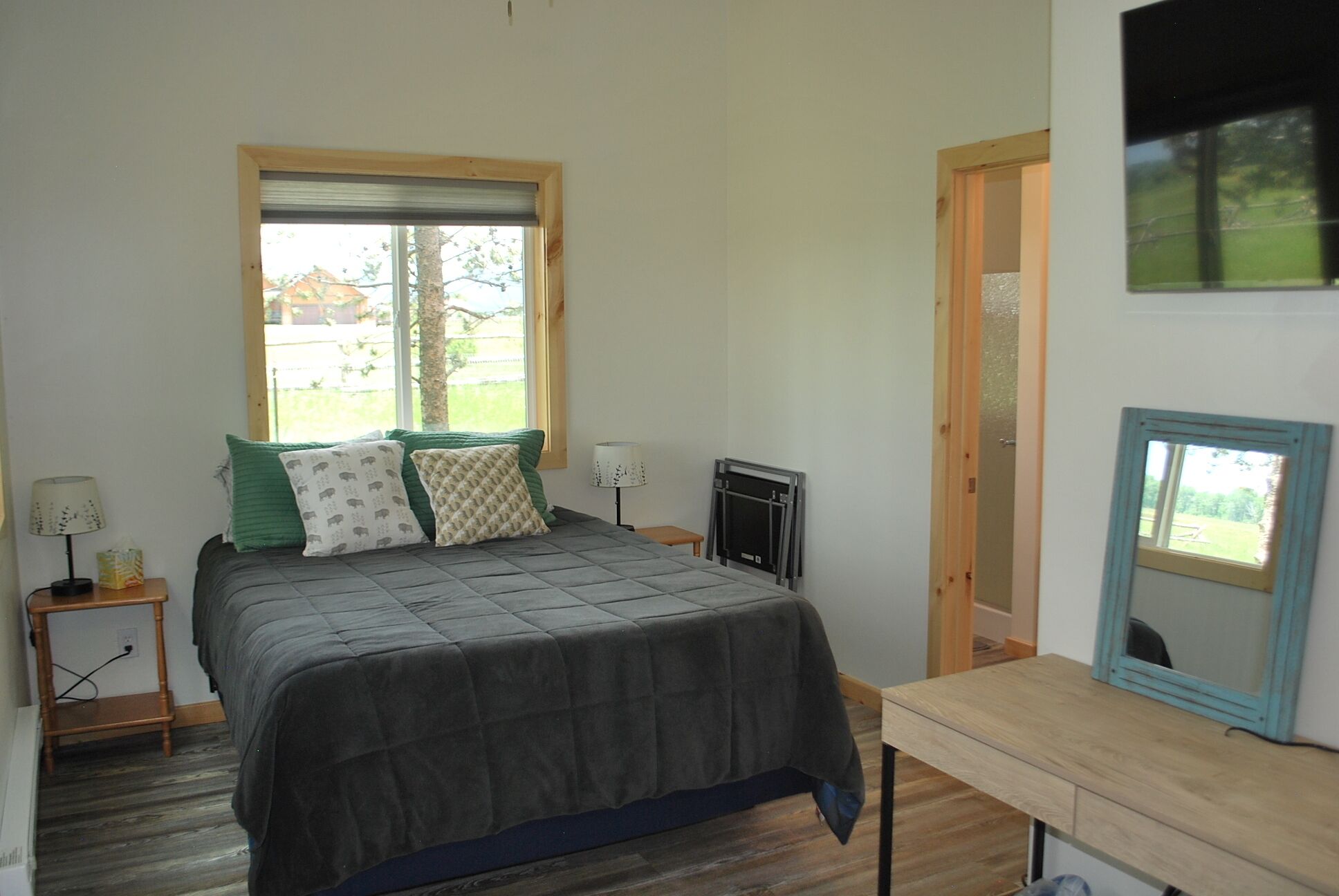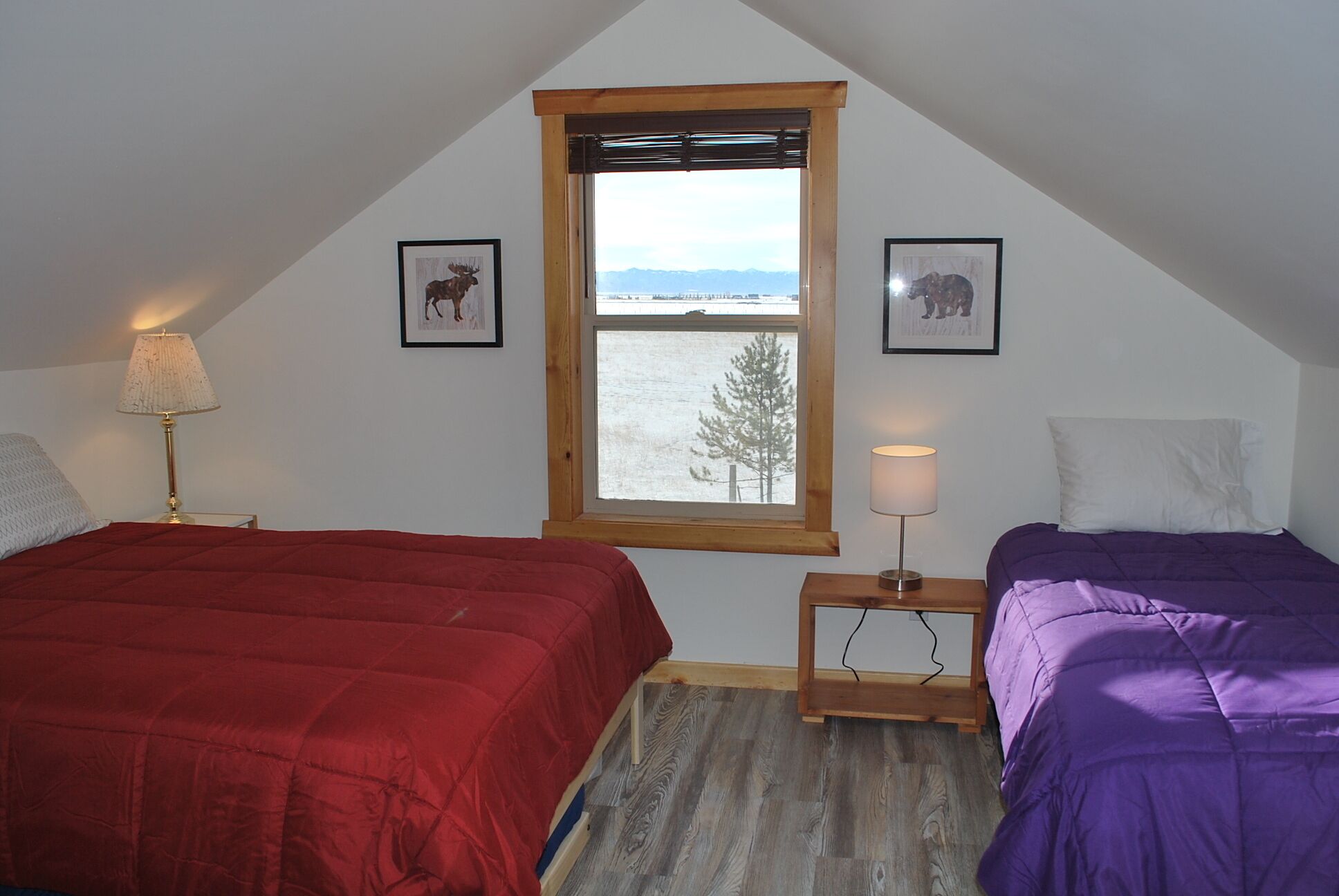Irish Eyes on the Tetons in Teton Valley Welcome to Irish Eyes Cabin, a charming and cozy retreat in the heart of Teton Valley, Idaho, offering stunning views of the majestic Tetons from the Idaho side. This delightful cabin, along with its private guest cabin, provides a perfect haven for your getaway. A gorgeous place to visit!The living room/dining room is a great place to relax and unwind. The master bedroom features a wonderful king-sized bed, accompanied by an office area and a spiral staircase leading to a spacious sleeping loft, making it ideal for accommodating larger families. The galley-style kitchen is fully equipped, making it a breeze to prepare delicious home-cooked meals.The main cabin features one restroom, while the guest cabin is equipped with a new bathroom and a laundry room, ensuring privacy for all guests. Additionally, the private guest cabin offers a comfortable queen-sized bed and a separate work area, all with a reliable and convenient WIFI that extends to both cabins.Explore nearby Grand Teton National Park or West Yellowstone Park which is only an hour and a half away. If you're craving more, take a short drive to Jackson Hole, Wyoming, just an hour away, where an array of attractions and activities await. Or spend the day on the slopes at Grand Targhee Ski resort, only 30 minutes away. Embrace the small-town charm of Teton Valley while embarking on big adventures. From hiking and biking to skiing, snowmobiling, fishing, and river sports, there's no shortage of adventures. As the day winds down, return to Irish Eyes Cabin, where you can relax and soak in the surrounding natural beauty. Whether you seek a peaceful escape or an action-packed adventure, Irish Eyes Cabin invites you to stay and savor the magic of Teton Valley.Please keep in mind that you are in a rural area, and you may come across unpaved gravel roads.