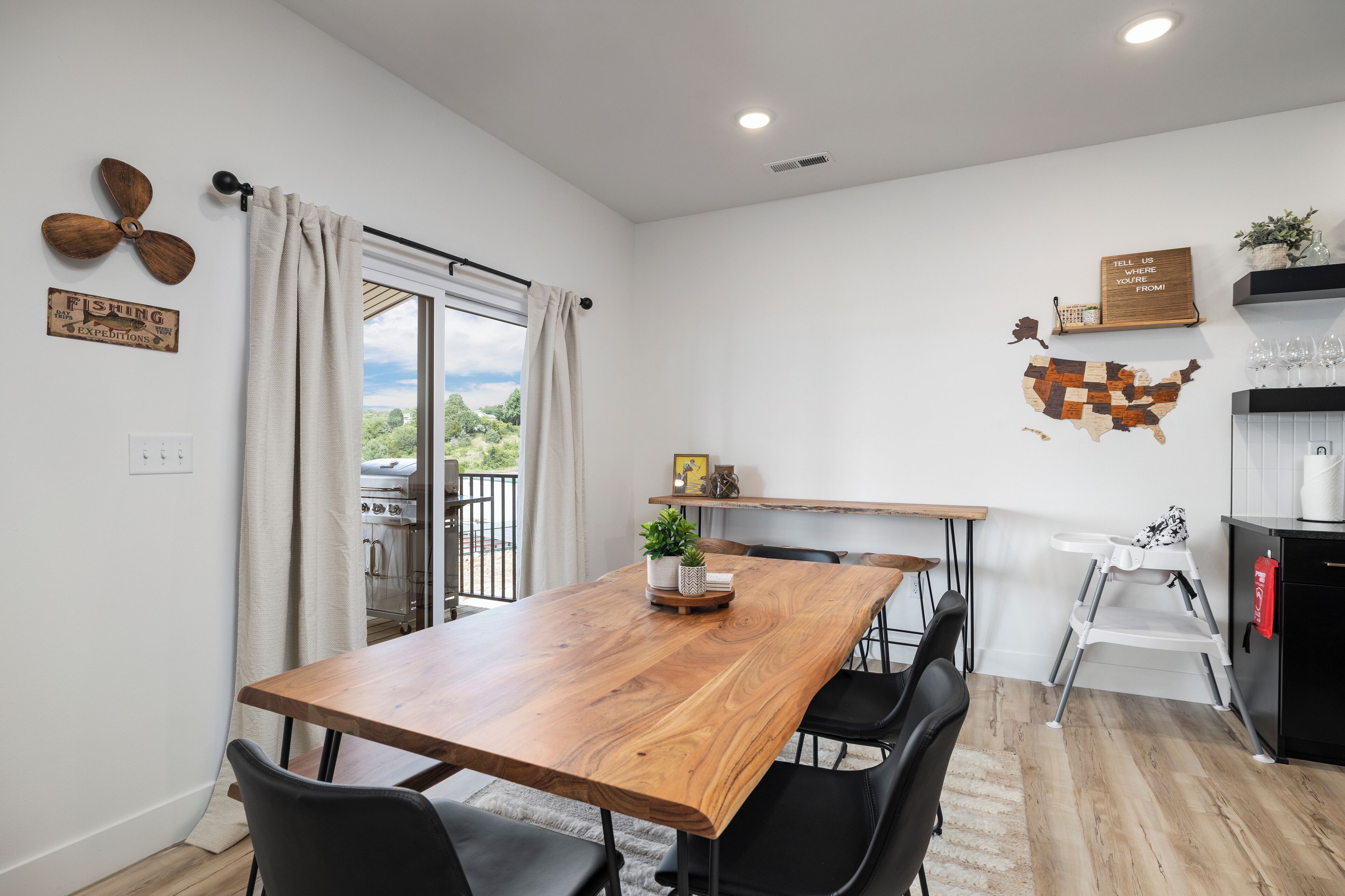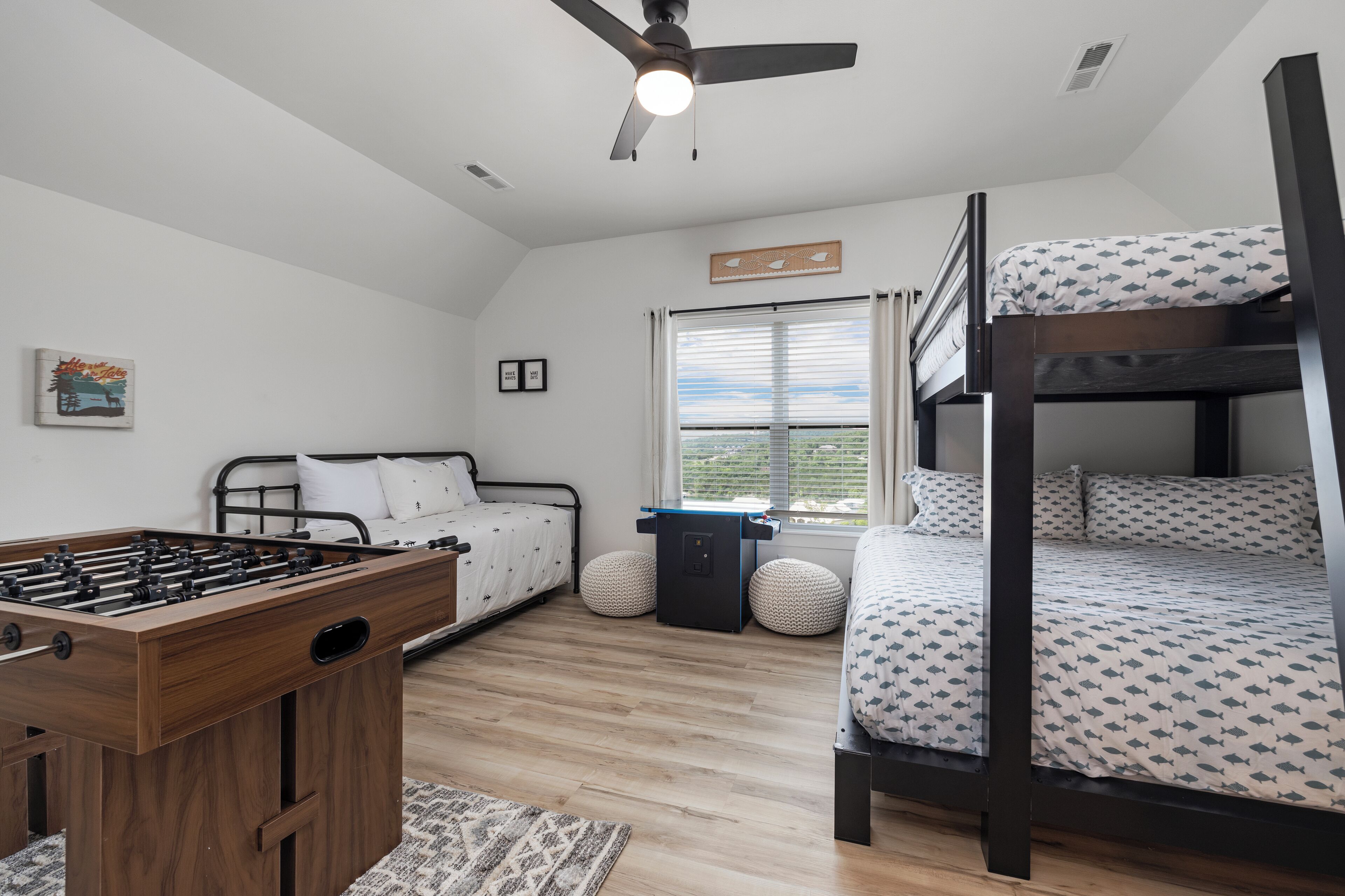 Lakeview, Hot Tub, Indoor/Outdoor Pool, Arcade, Sleeps 14 Welcome to Bubba's Bunkhouse! Explore all Branson and Table Rock Lake have to offer! Relax & take in the view. Nestled close to Table Rock Lake, Big Cedar, golfing, downtown Branson, shopping, and Silver Dollar City, and more! 4 Bedrooms with Ensuite Bathrooms. Sleeps 14! Fun Bunkroom with arcade and foosball. Enjoy the relaxing 7-person hot tub on the main level deck with beautiful lakeviews.Main Level:- 2 King Bedrooms with ensuite bathrooms and big screen smart TV's- Full Kitchen with island seating- Dining room with sliders leading to deck - Living Room with lakeview and electric fireplace- Washer and Dryer- Sliding glass doors leading to deck with hot tub, grill, and seating with a lakeviewUpper Level:- Queen over King Bunkroom (made for adults and kids) and a daybed with a trundle with gaming and big screen smart TV and ensuite bathroom. This bedroom also has lake and mountain views.- 2 Queen beds with an ensuite bathroom. This bedroom also has lake and mountain views.Bubba's Bunkhouse sleeps 14 comfortably in beds with NO SLEEPER SOFAS. Great location in community to indoor and outdoor pool.We provide pack n play, high chair, baby gates, toilet paper, papertowels, laundry soap, hand soap, body wash, shampoo, conditioner, and coffee.Pet policy: Allow maximum of 2 low shedding dogs. Pets must be pre-approved. $25.00 per night, per dog is required. Do not book with a pet until you have pre-approval. If you have been approved to bring your dog(s):• Must be completely house trained and potty outside (no puppy pads)• Never allowed on furniture or beds.• Must be leashed when going outside.• Pick up their waste outside and dispose of properly• Must be kenneled in a crate while away and cannot bark or whine while away.• Current on flea and tick treatment.• $25.00 per night, per pet fee required