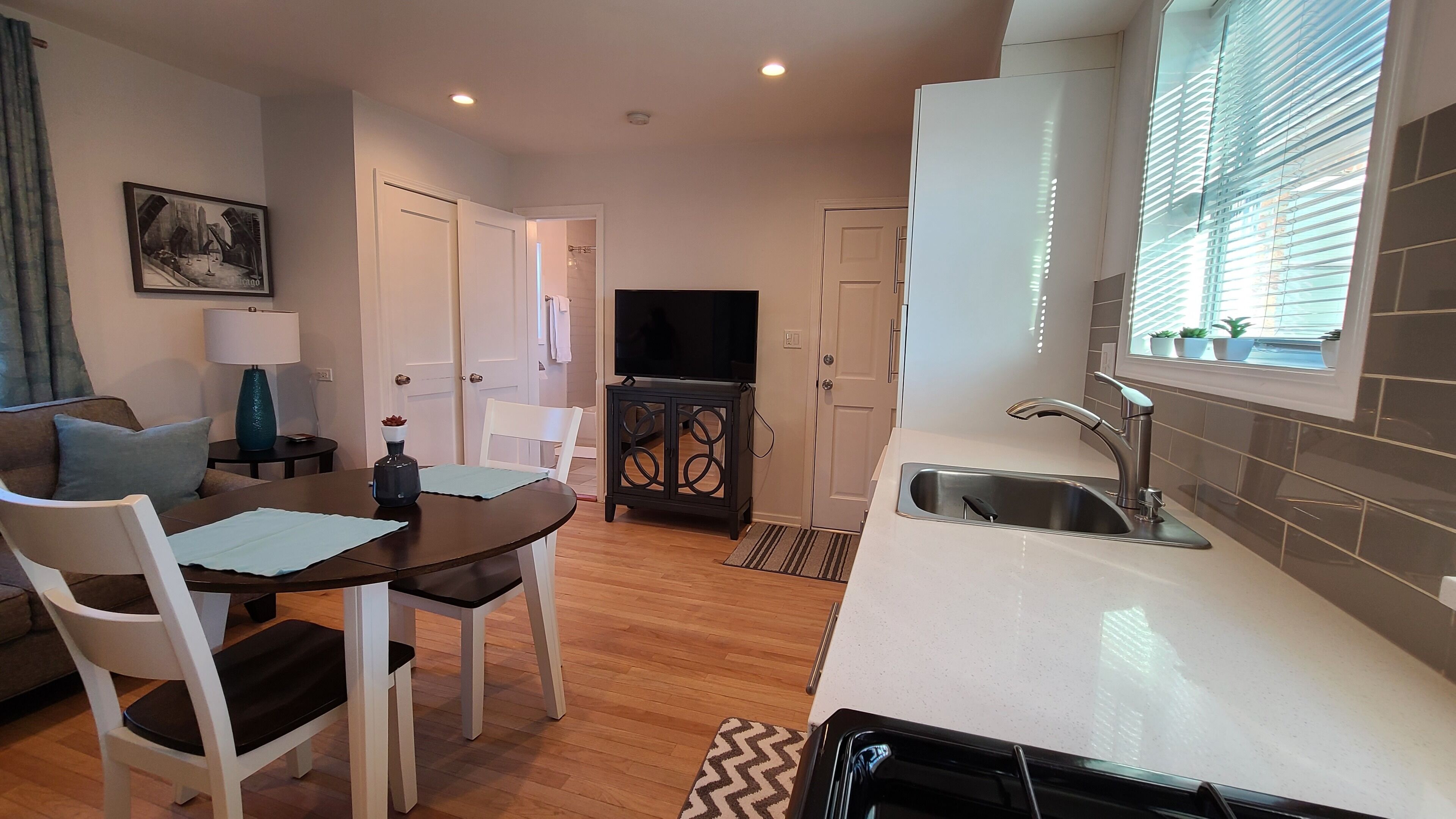 Modern 1 bedroom apartment in very convenient location. A beautifully renovated apartment in a safe neighborhood with a fully equipped kitchen and modern bathroom, all located less than a block away from Metra train station. Great for groups, family retreats, business trips, or vacations. This property has 1 bedrooms and 1 bathroom.The kitchen is outfitted with appliances and almost every tool you will need to cook your favorite meals! This includes a gas stove, refrigerator, microwave, and coffee maker.This place has free private parking and additional free street parking. Within walking distance, there are bars and restaurants. The public library is only a couple of blocks away. Grocery stores like Marianos, Jewel Osco, Walmart, Sam's Club, Costco, and Fresh Market as well as improvements stores like Lowes, Home Depot, and Menards are in close proximity. Hospitals like Northwest Community Hospital and Lutheran General Hospital are 5 to 8 miles away. The O'hare airport is 20 minutes from the apartment and 35-40 min to Chicago Downtown. To the southwest, there is Busse Forest with accessibility to fishing, walking, biking, and picnic. Woodfield Mall and Fashion Outlets of Chicago are both a 15-minute drive. River Casino in Des Plaines is also a 15 min drive, and a little further Grand Victoria Casino in Elgin is 40 minutes away to the West. If this is not enough, Great America is 40 minutes to the North. Do you like animals? Brookfield Zoo and Lincoln Zoo are good options to visit.You don't have to worry about food, entertainment, or adventure all within reach.