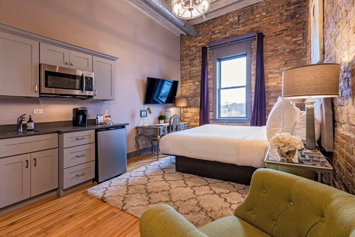 Hip Urban Loft - Small Town Charm -124 LOFTS #3 Summary:Luxury one-bedroom loft in the heart of downtown Dundee. Newly renovated 125-year-old building with timber ceilings, exposed brick walls and beautifully restored hardwood floors. Tastefully decorated and features a king-size Beautyrest mattress, luxury bed linen, private bathroom, kitchenette with under counter refrigerator, Kuerig coffee maker and lightning fast Wi-Fi for streaming your favorite shows on the 60” LED smart TV. 124 LOFTS offers 4 separate luxury lofts. Book one Loft or all four.The Space:The building was built in 1893 and over the years has housed a department store, men’s clothing store and photography studio. In 2018 the property was completely rehabbed and now offers a charming coffee and donut shop on the first floor and boutique hotel on the second floor. Free parking is offered in nearby municipal parking lots. 124 LOFTS offers the freedom and convenience of self-check-in with key-less entry. Please note that due to the age and historic nature of the property there is no elevator and access requires walking up a flight of stairs. 124 LOFTS is perfect for couples, solo adventurers and business travelersGuest Access:Entrance is on Main Street. Our remote lock system allows the convenience of a contactless check-in and check-out.The Neighborhood:124 LOFTS is centrally located in historic downtown Dundee. The entire downtown district is listed on the National Register of Historic Places. You’re just steps away from plenty of dining options and nightlife. Stop next door to Emmett’s Brewing Co. and enjoy a bite to eat and one of their award-winning brews, or catch a live show a few doors down at the RocHaus. We are also just a 2 minute drive from "The BRIX on the Fox" wedding reception venue. Downtown Dundee also offers a pleasant riverwalk and the Fox River bike trail which both wind their way alongside the Fox River. 124 LOFTS is a perfect home base for exploring all that the Fox River Valley has to offer.Getting Around:Our location is conveniently located 3 miles north of Interstate 90 and 5 miles to the closest Metra Train station. Uber, Lyft, and PACE public busses are all available. We are a quick 30 minutes from Chicago's O-Hare International Airport. Free parking is offered steps away in one of many municipal parking lots. 124 LOFTS offers the convenience of self-check-in with keyless entry. 124 LOFTS is perfect for couples, solo adventurers and business travelers.Other Things to Note:Each individual loft offers a kitchenette with a microwave, sink, Keurig machine and an undercounter refrigerator. It does not have an oven or a stovetop. We offer a 10% discount for 7 night stays and 20% discount for 30+ night stays.Interaction with Guests:We only live a few blocks away. If you encounter any problems or if there’s anything you need we’re a text or phone call away.