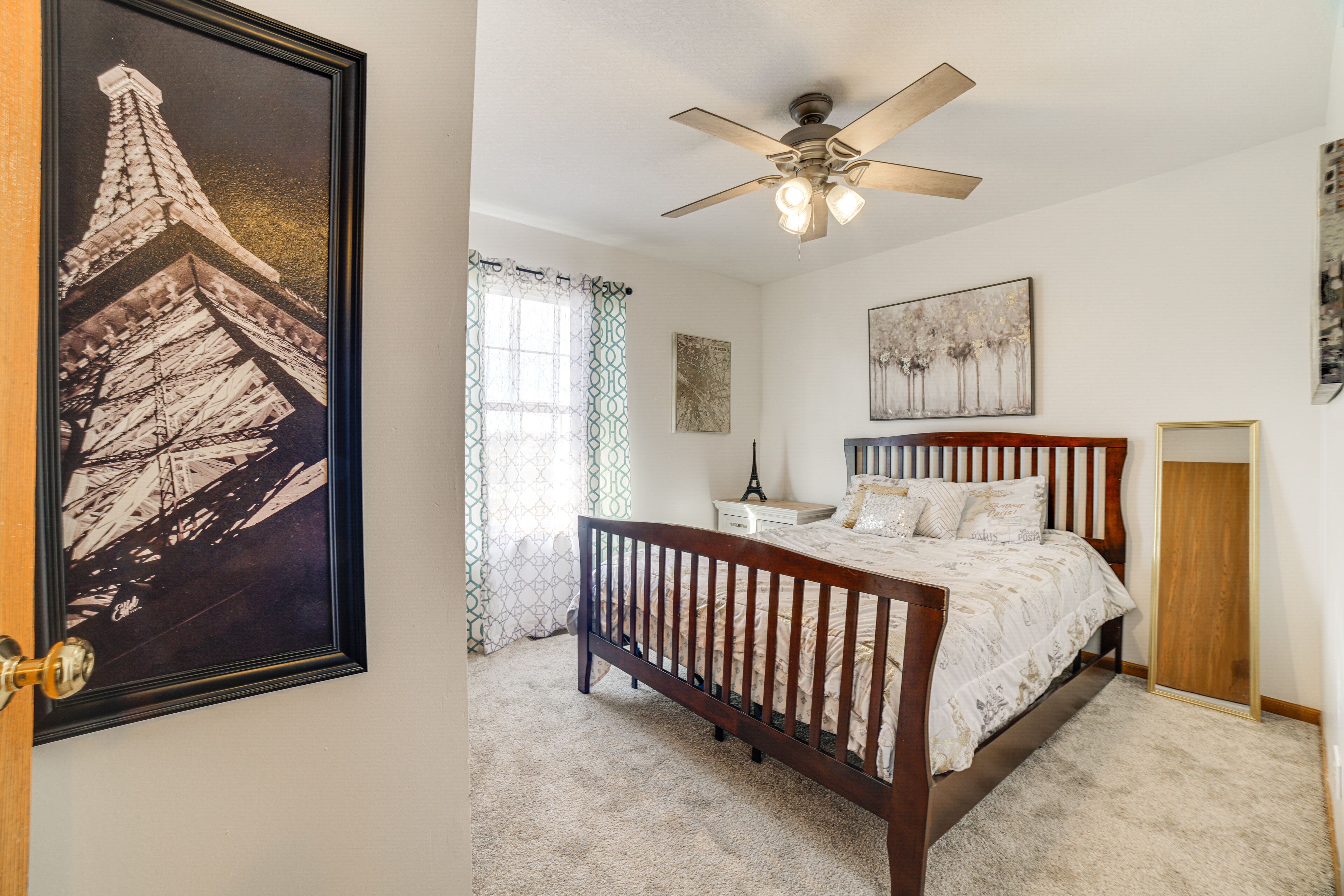 Bourbonnais Townhome ~ 3 Mi to ONU Campus! Explore the heart of the Kankakee River Valley from this Bourbonnais, IL, vacation rental! Nestled just 3 miles from I-57 and Olivet Nazarene University, the 3-bed, 1.5-bath townhome provides the ideal base for groups and families. Live like a local during the 5-day summer Friendship Festival, or opt outside with a trip to Kankakee River State Park. Outdoor pursuits abound in this charming town, from fishing and hiking to cross-country skiing and snowmobiling. Book now and see it all!-- THE PROPERTY --Smart TV | Furnished Patio | Free WiFiBedroom 1: Queen Bed | Bedroom 2: Queen Bed | Bedroom 3: Twin/Full Bunk BedMAIN FEATURES: Dining table, workspace, ceiling fans, wood-burning fire pitKITCHEN: Dishwasher, Keurig coffee maker (coffee provided), toaster, ice maker, fridge, stove & oven, microwave, dishware/flatware, trash bags/paper towels, cooking basicsGENERAL: Central A/C & heat, washer & dryer, starter detergent, towels/linens, complimentary toiletries, iron & board, hair dryerACCESSIBILITY: 2-story home, 2 steps to enter, bedrooms on 2nd floorPARKING: Driveway (2 vehicles), free street parking (first-come, first-served)-- THE LOCATION --THINGS TO DO: Indian Oaks Antique Mall (1 mile), Olivet Nazarene University (3 miles), Strickler Planetarium (3 miles), Bourbonnais Grove Historical (4 miles), Exploration Station (4 miles)PARKS & REC: Perry Farm Park (4 miles), Diamond Point Park (6 miles), Kankakee River State Park (9 miles)CHICAGO (~57 miles): The Art Institute of Chicago, Millenium Park, Field Museum, Lincoln Park Zoo, Museum of Science and Industry, Wrigley Field, Cloud Gate, RiverwalkAIRPORTS: Chicago Midway International Airport (50 miles), O'Hare International Airport (70 miles)-- REST EASY WITH US --Evolve makes it easy to find and book properties you’ll never want to leave. You can relax knowing that our properties will always be ready for you and that we’ll answer the phone 24/7. Even better, if anything is off about your stay, we’ll make it right. You can count on our homes and our people to make you feel welcome--because we know what vacation means to you.-- POLICIES --- No smoking- No pets allowed- No events, parties, or large gatherings- Must be at least 25 years old to book- Additional fees and taxes may apply- Photo ID may be required upon check-in- NOTES: This 2-story home requires 2 steps to enter. All bedrooms are located on the 2nd floor and require stairs