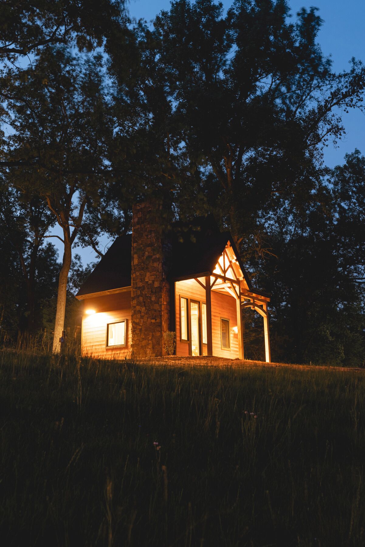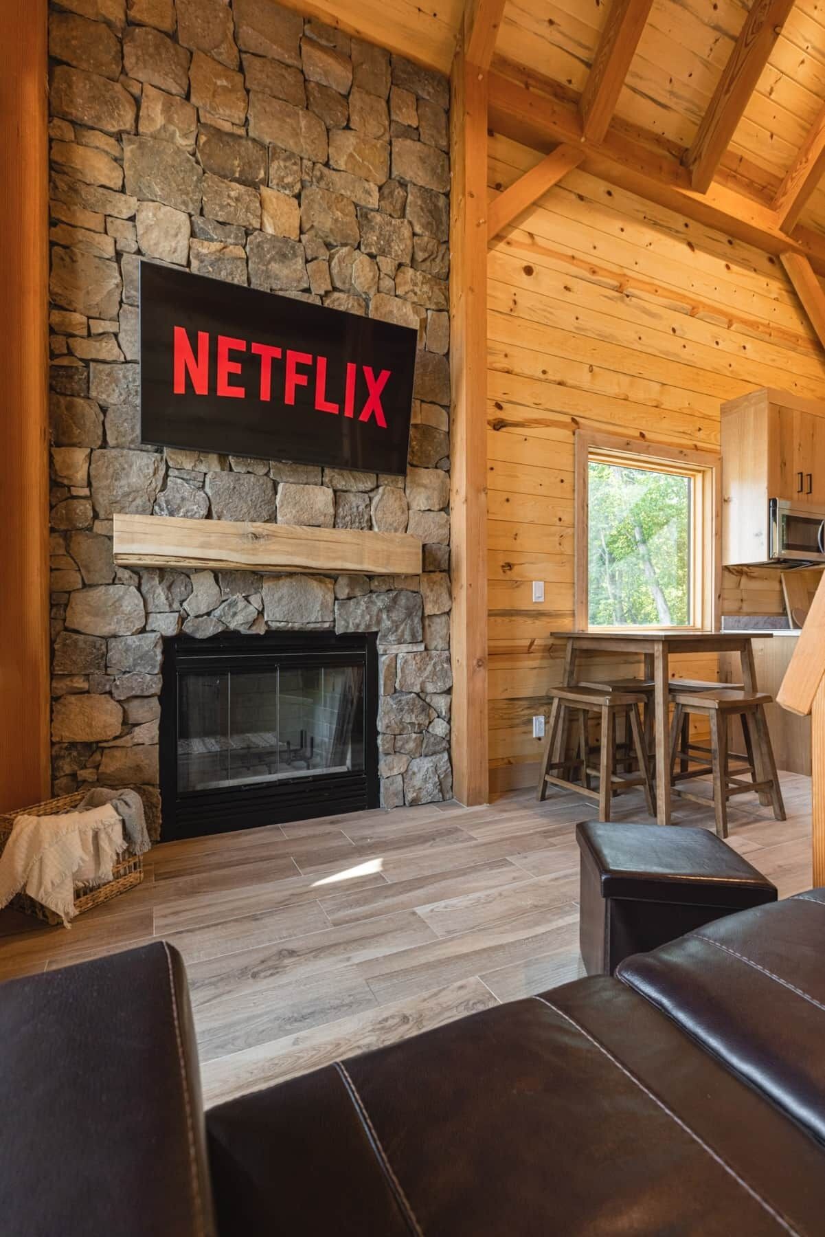#19 Raccoon Retreat Discover peace in nature in this enchanting timber frame cabin surrounded by mature oak trees and peaceful lake views. 400 acres of hiking trails, two stocked lakes, and nearby attractions, this cabin will take your next vacation to a new level. Our two-bedroom cabin has the amenities you need including High Speed Internet and a wood burning fireplace. The Cabin comes equipped with a fully stocked kitchen. PETS WELCOME