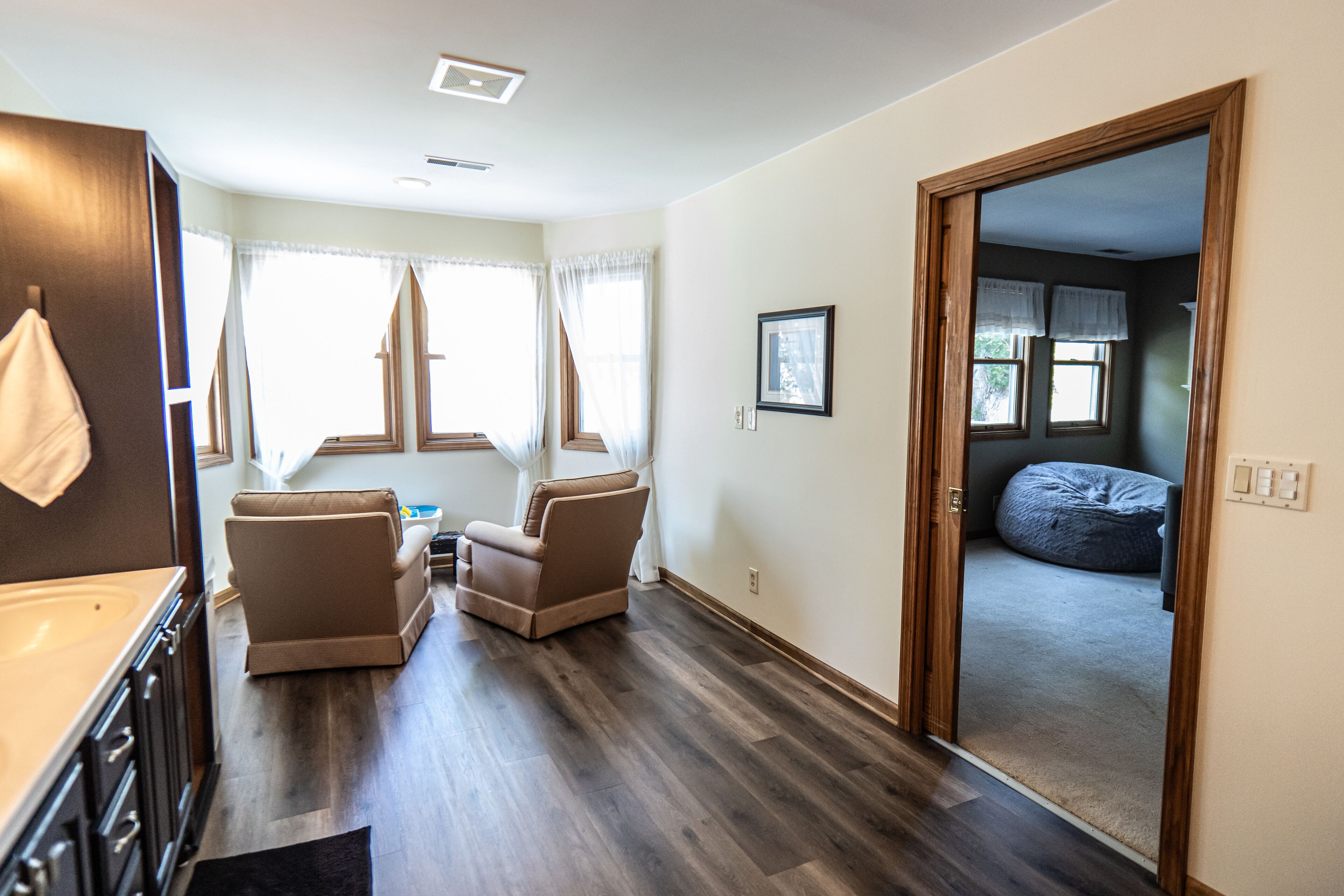 Beautiful Huge Lakefront Remodeled Home with Incredible Views This amazing property is huge and ready to host your large family get together but also cozy for a couples get away. Enjoy the stunning lake views from the back deck or from high above the water on the master bedroom deck. Enormous back yard, deck and paver patio to barbecue, roast marshmallows over the fire pit, to play bags, relax and enjoy the sun. Private lake has public beach and playground 1/2 block away. Kayaks, Paddle board and fishing gear available for Lake enjoyment! Inside the home are TV's with streaming devices with thousands of tv stations available, board games or just relax around the super comfy couch. Close to Six Flags Great America, Gurnee Outlet Mall and the Great Lakes Naval Station. Additional 5 bedroom home (same owner) on the lake available 1 block away for family events