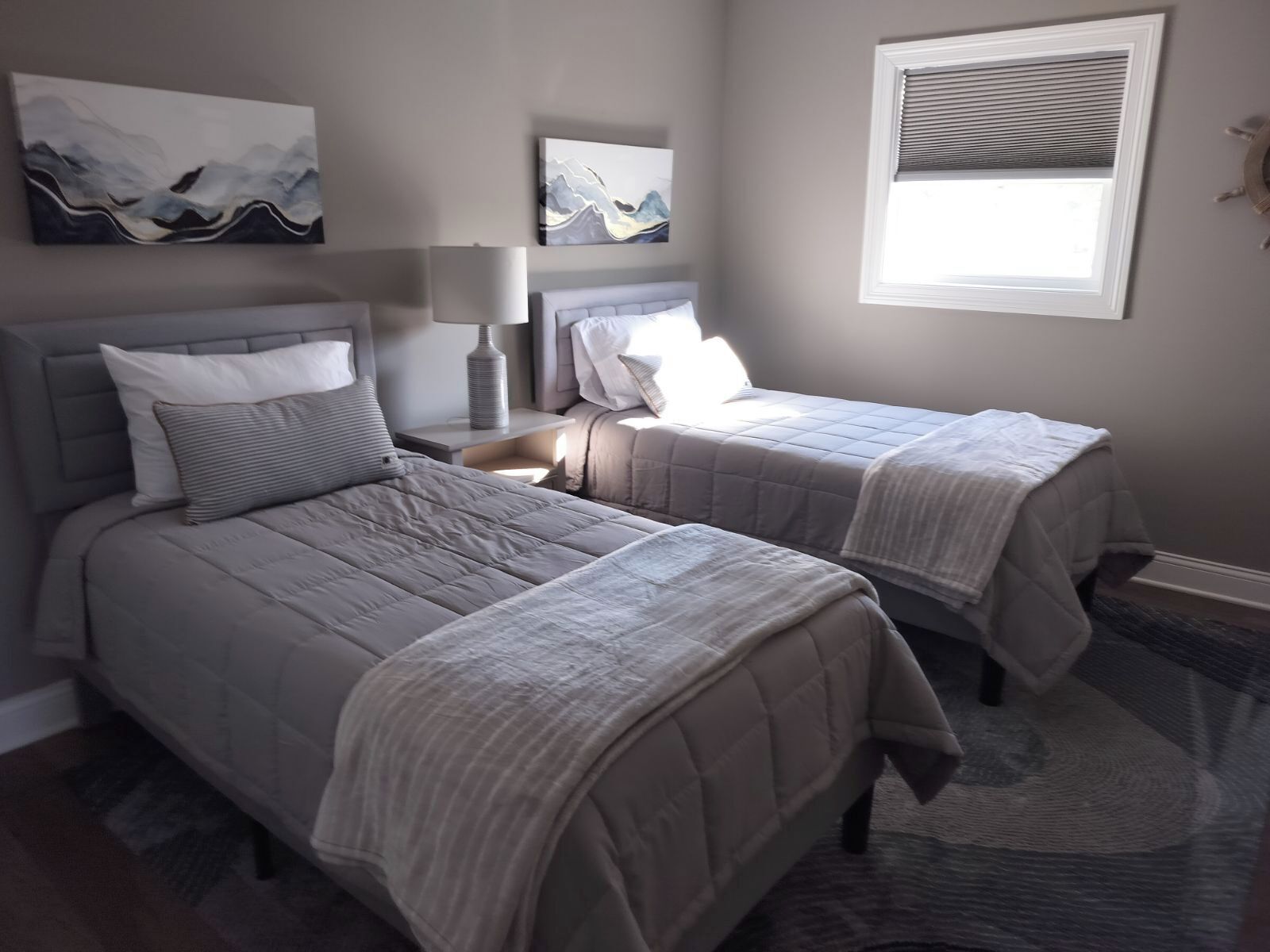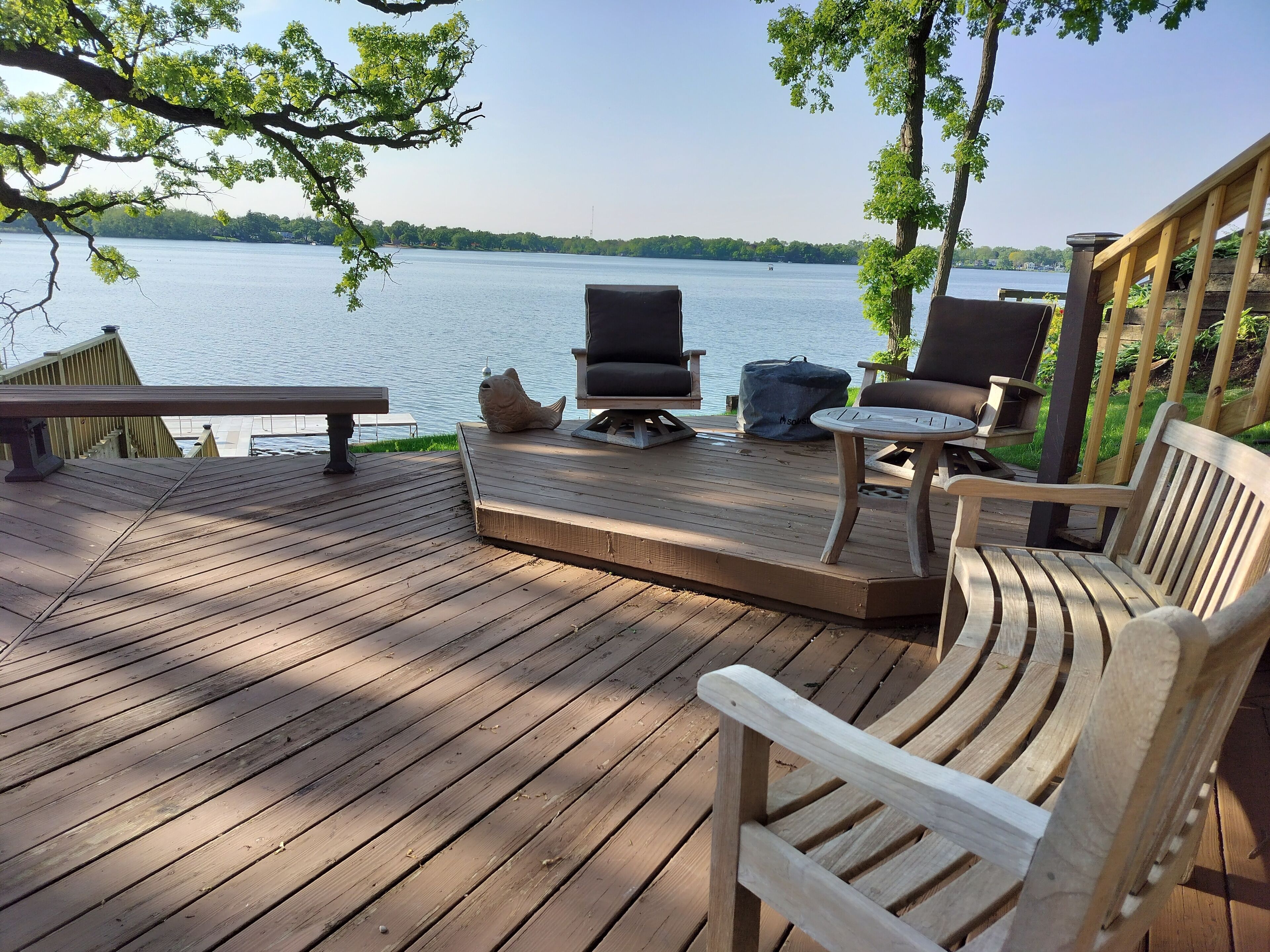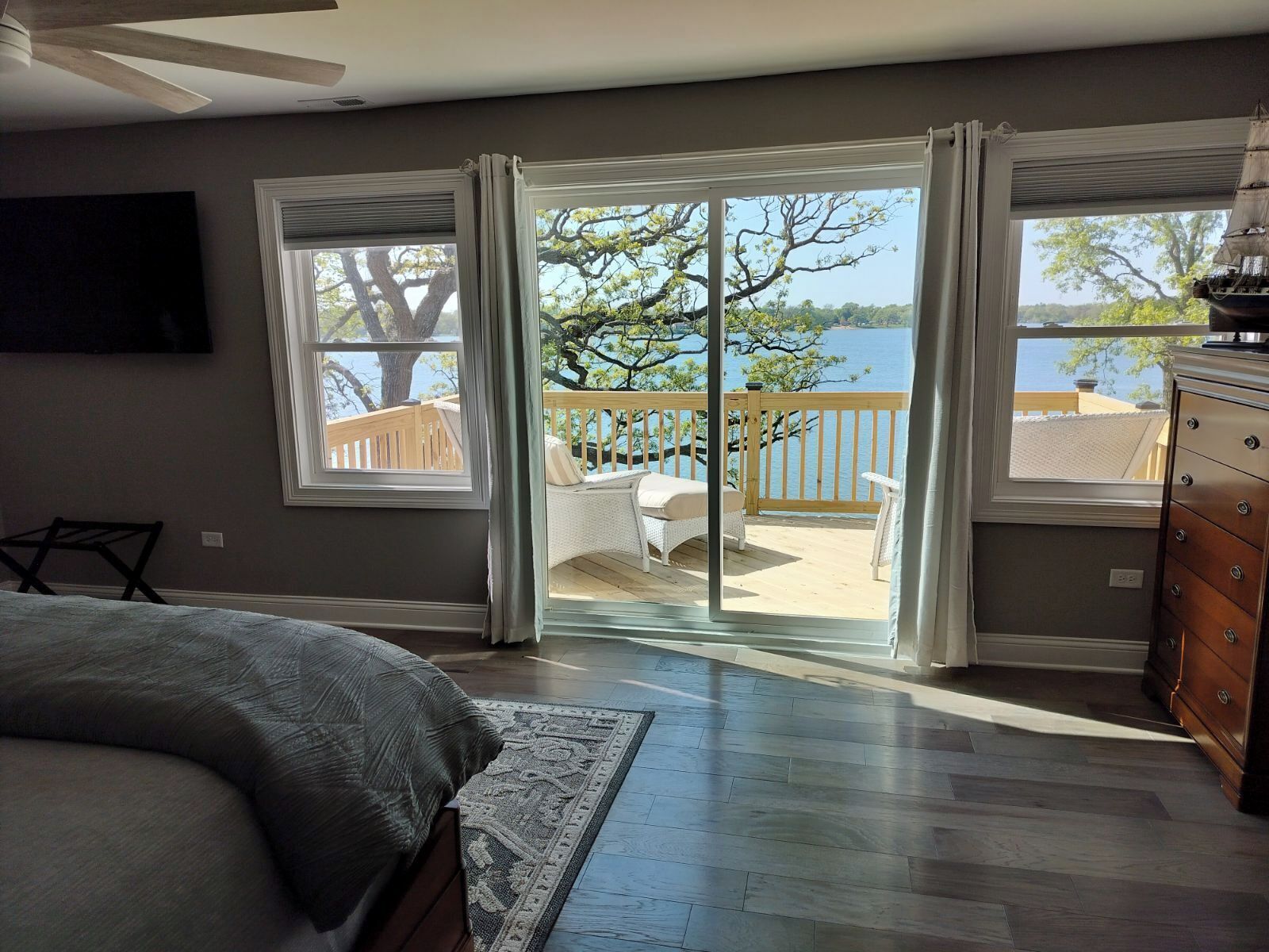 Brand new from the studs to the pillows! The Lakeshore House.. Come enjoy an outstanding getaway at our beautiful remodeled (2024) Lake home situated high upon a bluff overlooking beautiful motorized Round Lake. This lovely home offers five bedrooms and three and a half baths, including a spectacular primary ensuite with king size bed and 55in smart TV and private deck. The beautifully appointed gourmet kitchen features built in Jenn-Air refrigerator and stove, Bosch dishwasher, marble countertops, pantry and tons of cabinets. Enjoy a latte or cappuccino with your espresso machine. This stylish home is perfect for group trips or family get togethers. Enjoy three Lake facing decks and large dock. One hour from Chicago and Milwaukee, half hour from Great lakes naval base and 10 minutes to Gurnee Mills and six flags Great america. Bring your boat and tie up at your own pier or just float in the lake and relax! Enjoy the private beach and playground area just a half a block from our property. The lake is stocked with 13 different types of fish so bring your fishing poles!