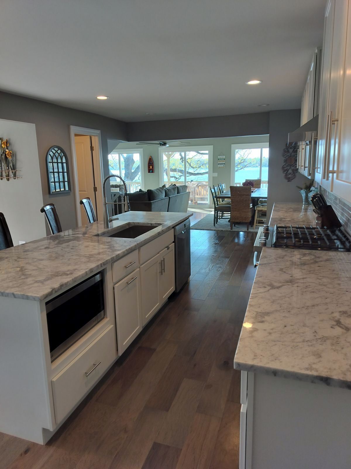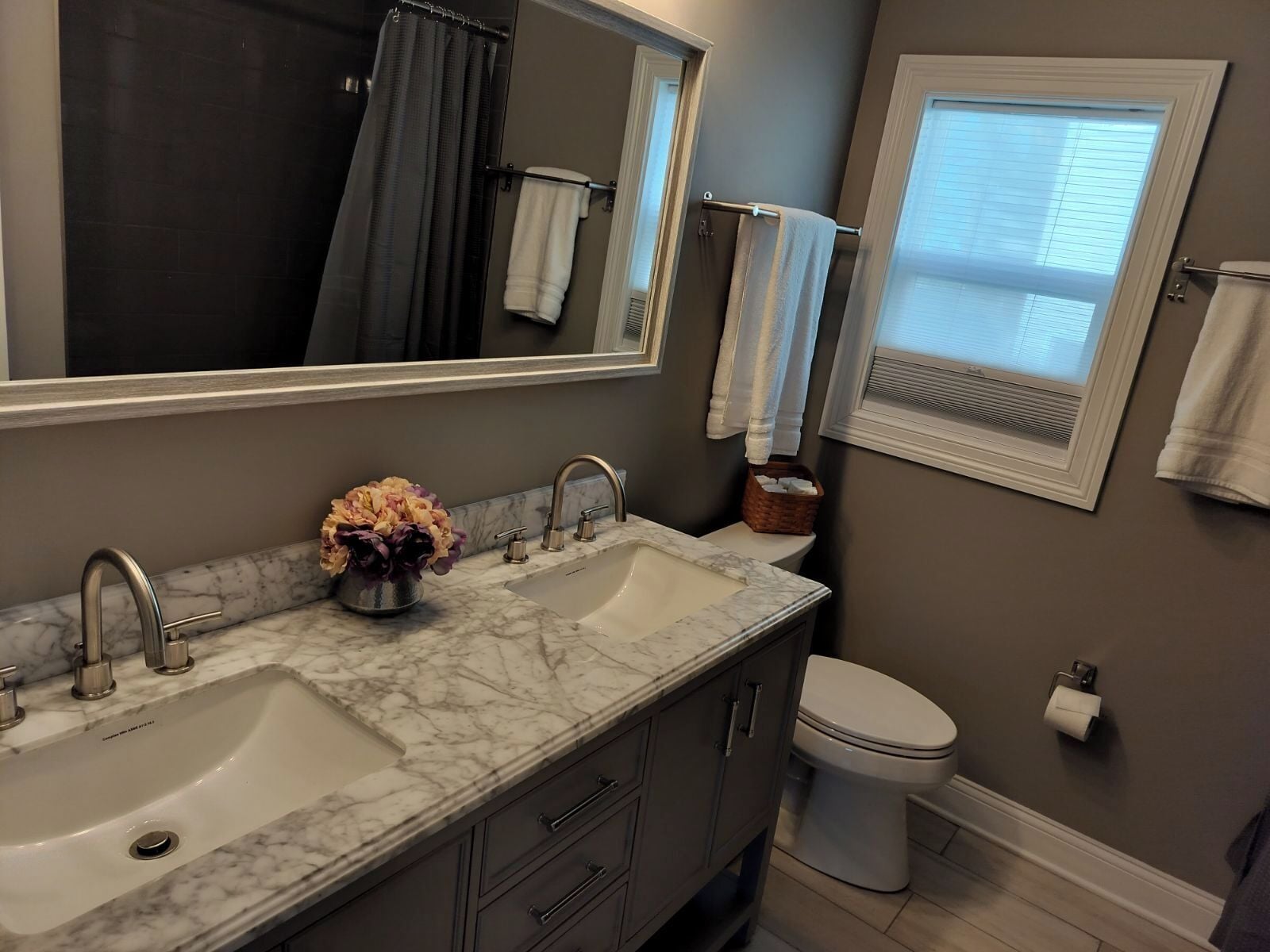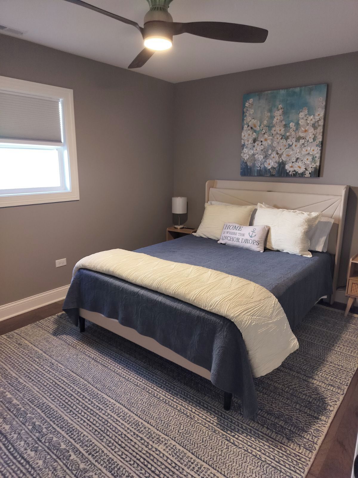 Brand new from the studs to the pillows! The Lakeshore House.. Come enjoy an outstanding getaway at our beautiful remodeled (2024) Lake home situated high upon a bluff overlooking beautiful motorized Round Lake. This lovely home offers five bedrooms and three and a half baths, including a spectacular primary ensuite with king size bed and 55in smart TV and private deck. The beautifully appointed gourmet kitchen features built in Jenn-Air refrigerator and stove, Bosch dishwasher, marble countertops, pantry and tons of cabinets. Enjoy a latte or cappuccino with your espresso machine. This stylish home is perfect for group trips or family get togethers. Enjoy three Lake facing decks and large dock. One hour from Chicago and Milwaukee, half hour from Great lakes naval base and 10 minutes to Gurnee Mills and six flags Great america. Bring your boat and tie up at your own pier or just float in the lake and relax! Enjoy the private beach and playground area just a half a block from our property. The lake is stocked with 13 different types of fish so bring your fishing poles!