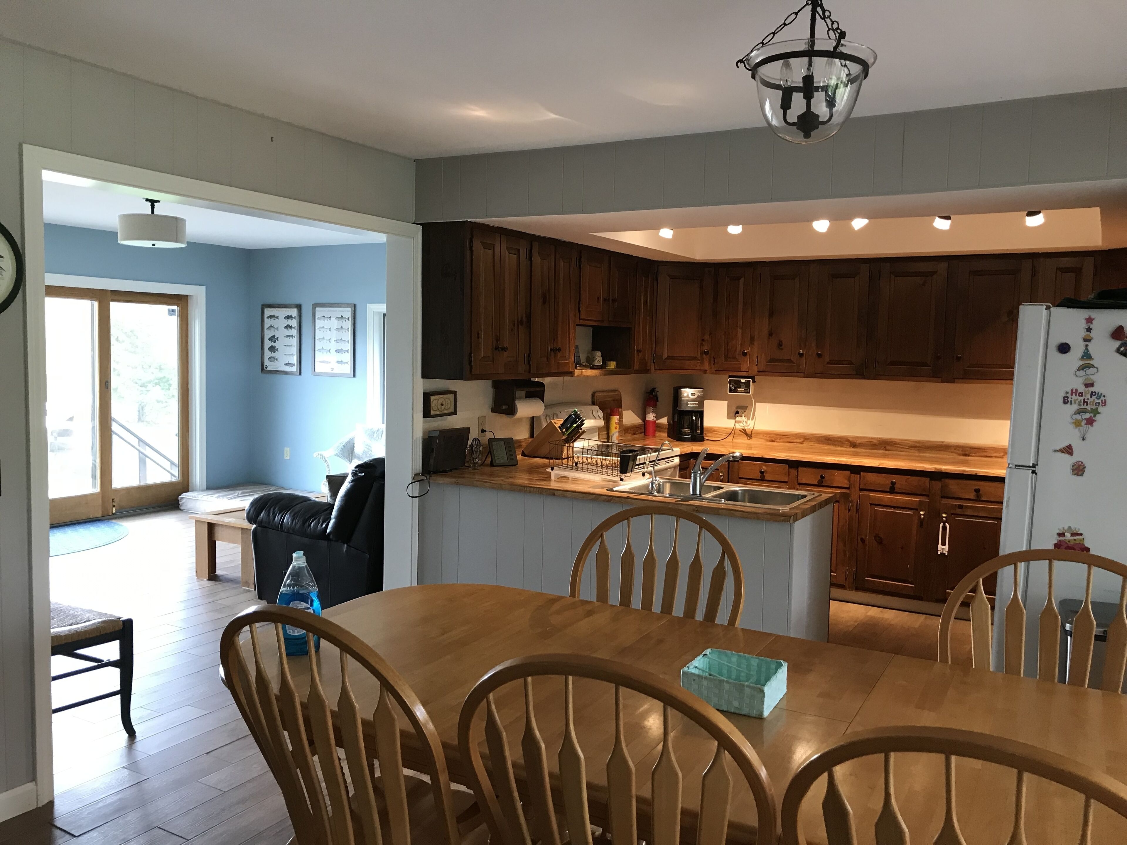 Piper Pond Waterfront- Relax, Swim, Kayak, Hike, Fish, Hunt, ATV, Snowmobile Piper Pond property features a two story, 3 bedroom, 1.5 bath, 1,600 sq ft, waterfront home for rent. Spacious deck with propane grill facing an unobstructed view of the water, recently upgraded to 3 climate space for relaxing during any time of day in all seasons - open deck, covered porch, and screen / sun room.High Speed Internet w/Wi Fi.Private dock with easy access to the public boat launch and adjacent to public beach. 25 miles south of Greenville and Moosehead Lake. Easy nearby access to Appalachian Trail as well as many other hiking options.Comfortably sleeps eight (1st floor bedroom with full bed and water view, 2nd floor bedroom with queen bed and attached 1/2 bath, 2nd floor bedroom with 2 twin beds, futon and crib)Two living rooms and large dining table. The kitchen features a full size refrigerator, glass top electric range, coffee maker and toaster oven.Kid friendly home with pack and play, crib, kids toys and infant/child life vests available for use upon request. Fully furnished with linens and bath towels included, bring your own beach towels. Adult life-jackets and kayaks available for use. Fishing opportunities in the regularly stocked Piper Pond.Endless sunfish opportunity for the kids right from the dock.Direct ATV & Snowmobile local trail access. Ample parking for multiple trucks and trailers. 2 miles to ITS 85.
