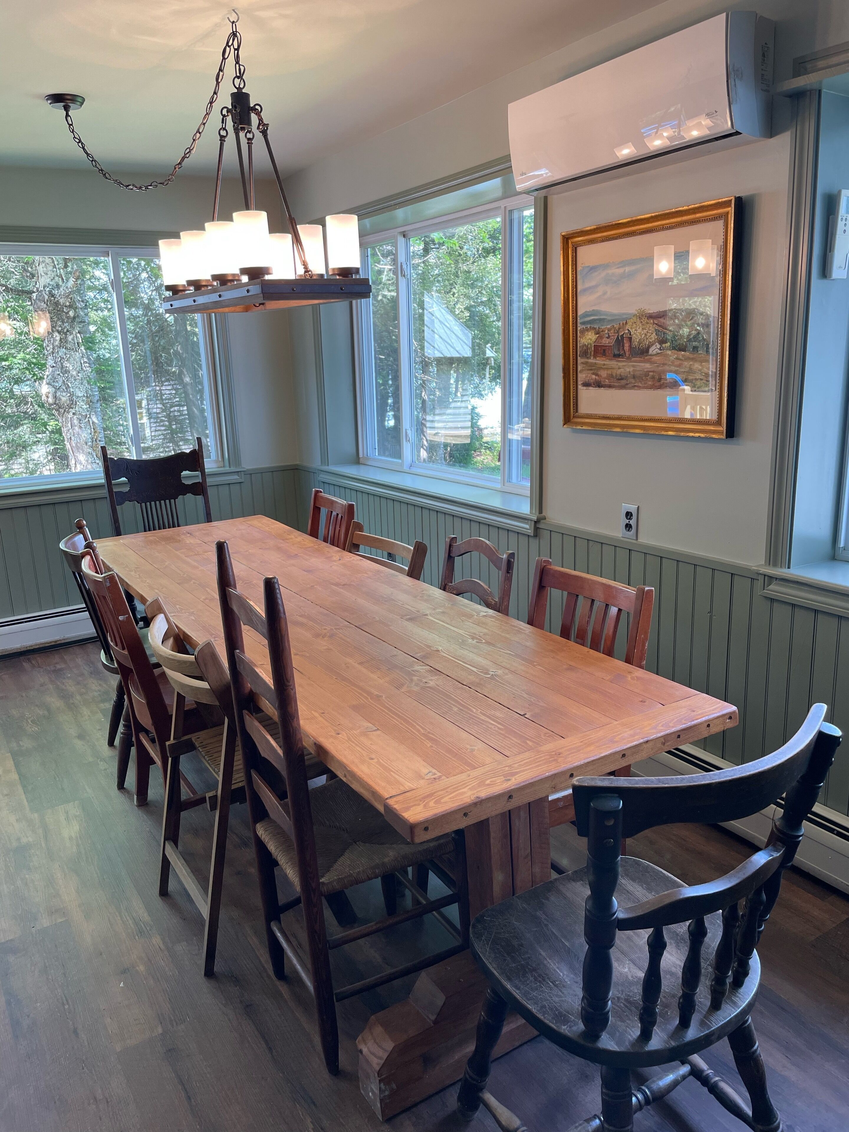Enjoy beautiful Maine with direct access to Snowmobile trails on Piper Pond Beautiful ALL season home in the Maine woods. Direct access to ATV trails and Maines Interconnected Trail System for snowmobiles (ITS). Great location on Piper Pond for swimming, fishing and kayaking! Private home with plenty of room for the whole family. 7 beds in 4 bedrooms, with 2 separate spaces. Easy access to hiking and Moosehead Lake region. House comes with 5 kayaks, one canoe, paddles and life jackets.Unique A-frame home with all the wood charm you could ask for. Outfitted with games and puzzles to entertain the kids when they are taking a break from swimming and kayaking. Flat, level lot with easy entry into the lake for the whole family. 30 foot dock with stairs into the water installed from June through September. Live edge picnic table outside to enjoy the firepit in the evening. Relax in Adirondack chairs overlooking the lake while you listen to the loons. Two office spaces provided including monitors, keyboards and mice. BYOL (bring your own laptop.)Free parking on site. Access to the house on a well maintained dirt road. Self check in through code provided on day of check in. You should expect quite a bit of privacy as there are only a handful of properties past this house on the same road. Parking for 4-6 cars available.This home runs on lake water year round. We have a great pump and filter that allows us to use the lake water for the washing machine, doing dishes and taking showers. We recommend using bottled water for cooking and drinking. Drinking water will provided in the refrigerator to get you started.