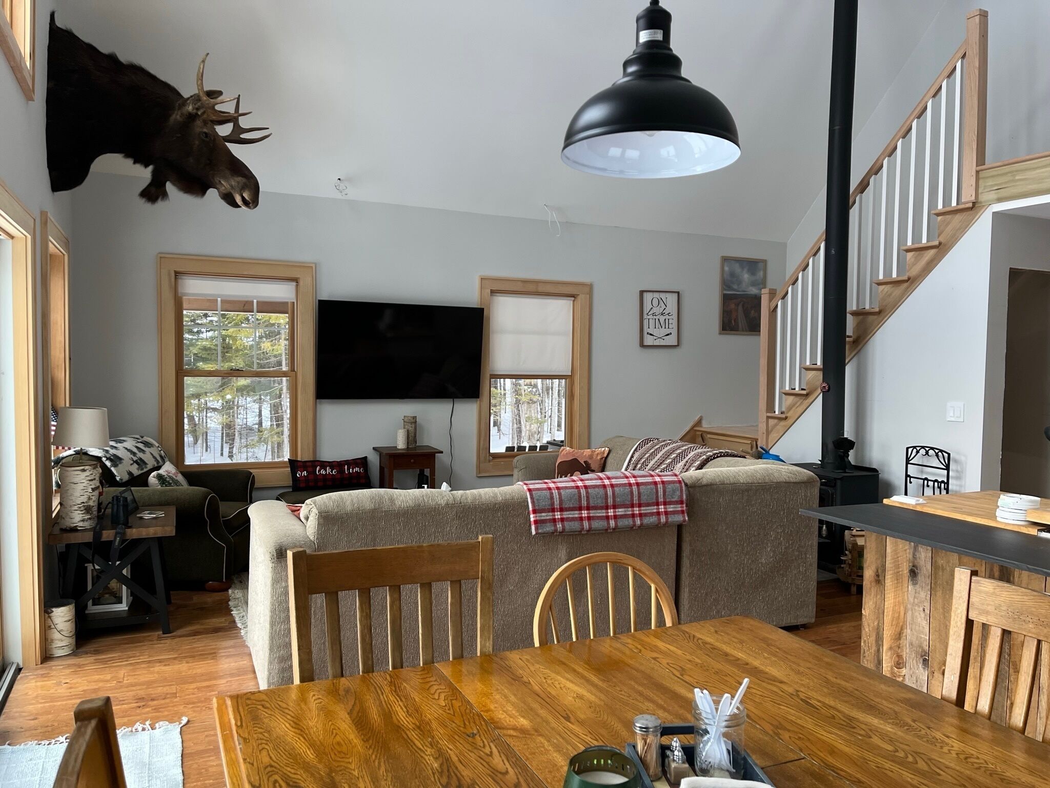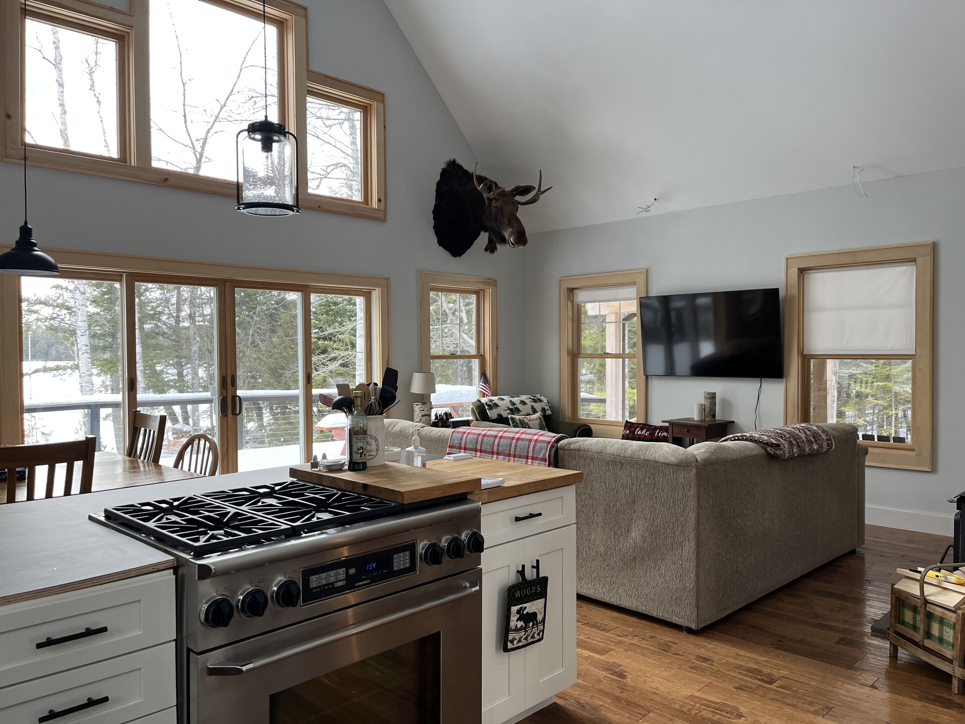 Lake front cabin Direct access to Snowmobile Trails. Hiking & Local shops! Newly constructed lake front cabin with large deck overlooking lake and beautiful sunsets! Gas fire pit on the deck to cozy up at evenings and glance at the open sky full of amazing stars. Open kitchen living room with vaulted ceilings with a wood stove for comfort or just click the thermostat for heat or air condition on warm summer days. Oversized glass door to deck for unobstructed view of the lake from kitchen/living area. There’s a private covered porch for enjoying an afternoon social or just relaxing with one of your favorite books.Large level waterfront yard to gather for playing games with family and friends and relaxing by the lake with the crackle of the fire pit at the shoreline. Cabin is fully functional and still a work in progress.The lake is perfect for fishing, family boating or just taking an evening tour around the shoreline. There are 2 kayaks and a canoe to take a morning paddle. There’s a public boat launch and sandy beach for you to use as well. Bring your bikes and enjoy a ride along the neighborhood dirt roads and view the different cottages.Access to ATV & snowmobile trails right from the driveway or lake access in the winter with the ice-covered lake. Great hiking nearby, Borestone Mountain, Kineo Mountain, Appalachian Trail just to name a few. Enjoy local artist gallery to shop for crafts, pottery, and photos or visit the Appalachian Museum in only a 15 minute drive to the Town of Monson. Greenville and Moosehead Lake is just a 30 minutes away.