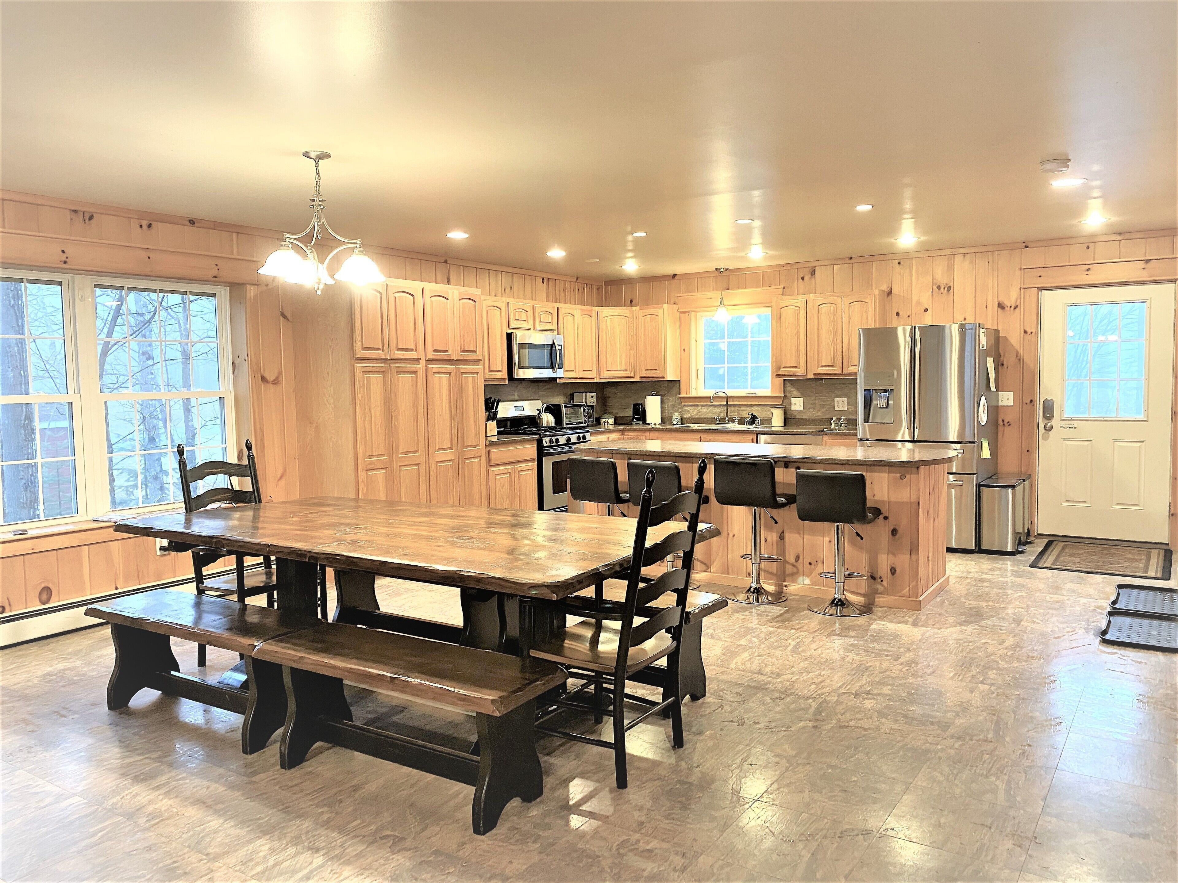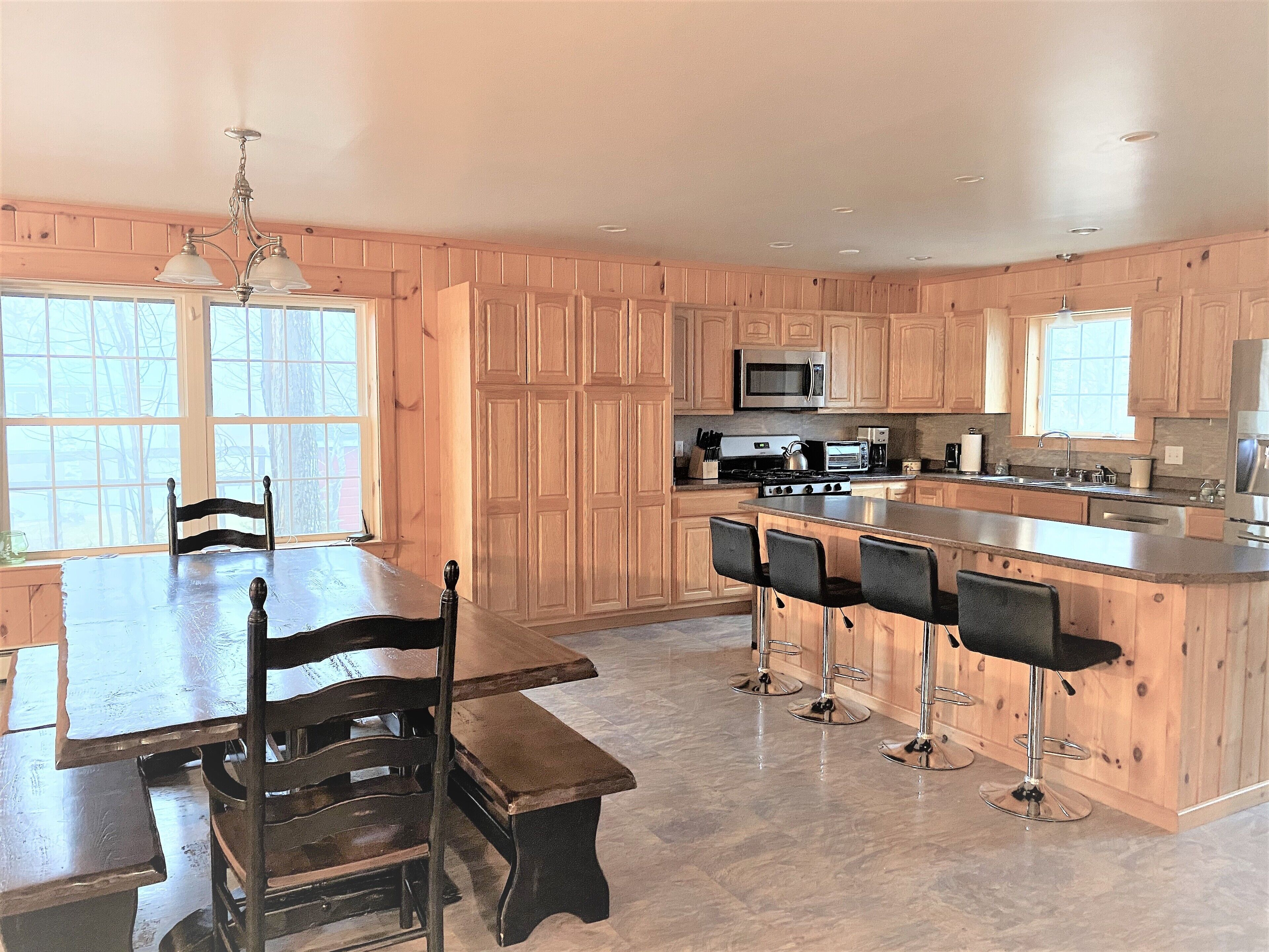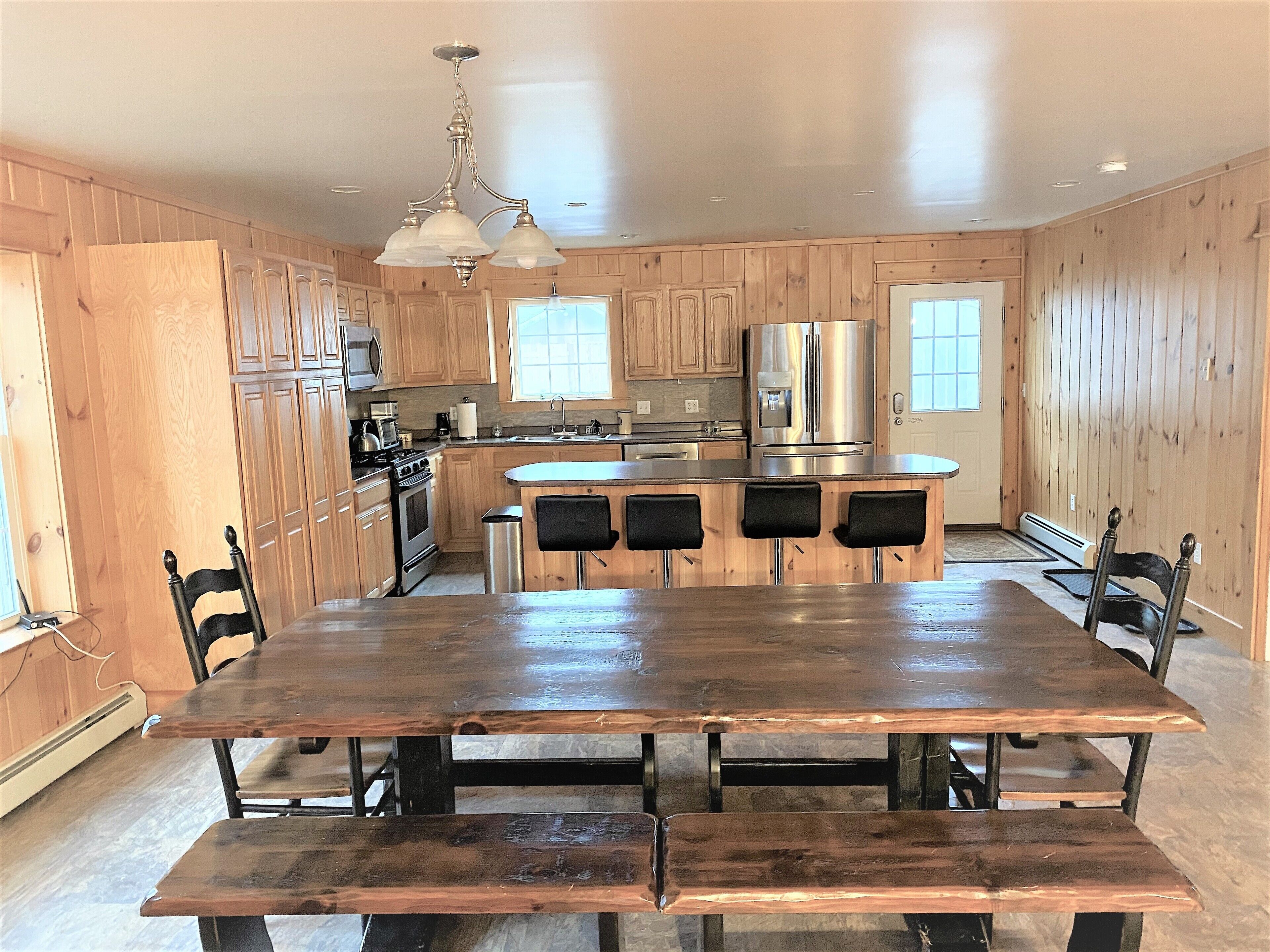 Heavenly Lakefront Retreat,Amazing sunsets,Direct Access ATV/Snowmobile Trails 207 Heaven is a peaceful year-round waterfront retreat with stunning sunset views of Whetstone Pond, bright windows, spacious rooms, and a screened in porch overlooking the water. There is no better place for family & friends to gather to enjoy all Maine has to offer as it has 6 bedrooms and an open concept fully-equipped kitchen, dining, and living area. This home is in a perfect location allowing you to enjoy the solitude of Maine while also being close enough to the Greenville/Moosehead Lake Region to enjoy numerous outdoor activities such as white water rafting, hiking, and guided tours. If you enjoy ATVing and snowmobiling the boat ramp and major snowmobile and ATV trails are located within walking distance from the property. Or finally, just stay in and relish waking up to breathtaking views, quiet mornings while sipping your coffee on the screened in porch, listening to the call of the loons, swimming and kayaking in the crystal clear lake with sandy bottom, and barbequing in the yard. This home is sure to offer a memorable vacation for you and your guests!Please note this home is not infant/toddler proof! Whetstone pond does not allow ice fishing, but the neighboring ponds close by do. There is plenty of room in the driveway for parking your trailers, trucks and snowmobiles. There are heat pumps providing A/C and heat to home in addition to a pellet stove which may be used in winters. A fire pit is outside and available for use on the property.No pets allowed at this property. If pets are brought to the property you will be asked to leave the property immediately. No more guests allowed then the number of guests approved during your booking unless owner is informed or there will be additional charges incurred. No parties or events allowed on the property. Smoking is prohibited anywhere on the property.***There are 5 single person kayaks, 1 tandem kayak, and 3 paddle boards for renters to use at their own risk. 6 adult life jackets, 4 youth and 8 kids life jackets also available for renters to use. There is no cable TV, but you may stream movies and/or TV shows via apps like Netflix, Hulu etc. Renters will be responsible for paying for any damages to the property and/or lost/stolen items from the property incurred during their stay. By booking this reservation you are agreeing to our House Rules & Vacation Rental Liability Waiver posted in the Rental Agreements section.