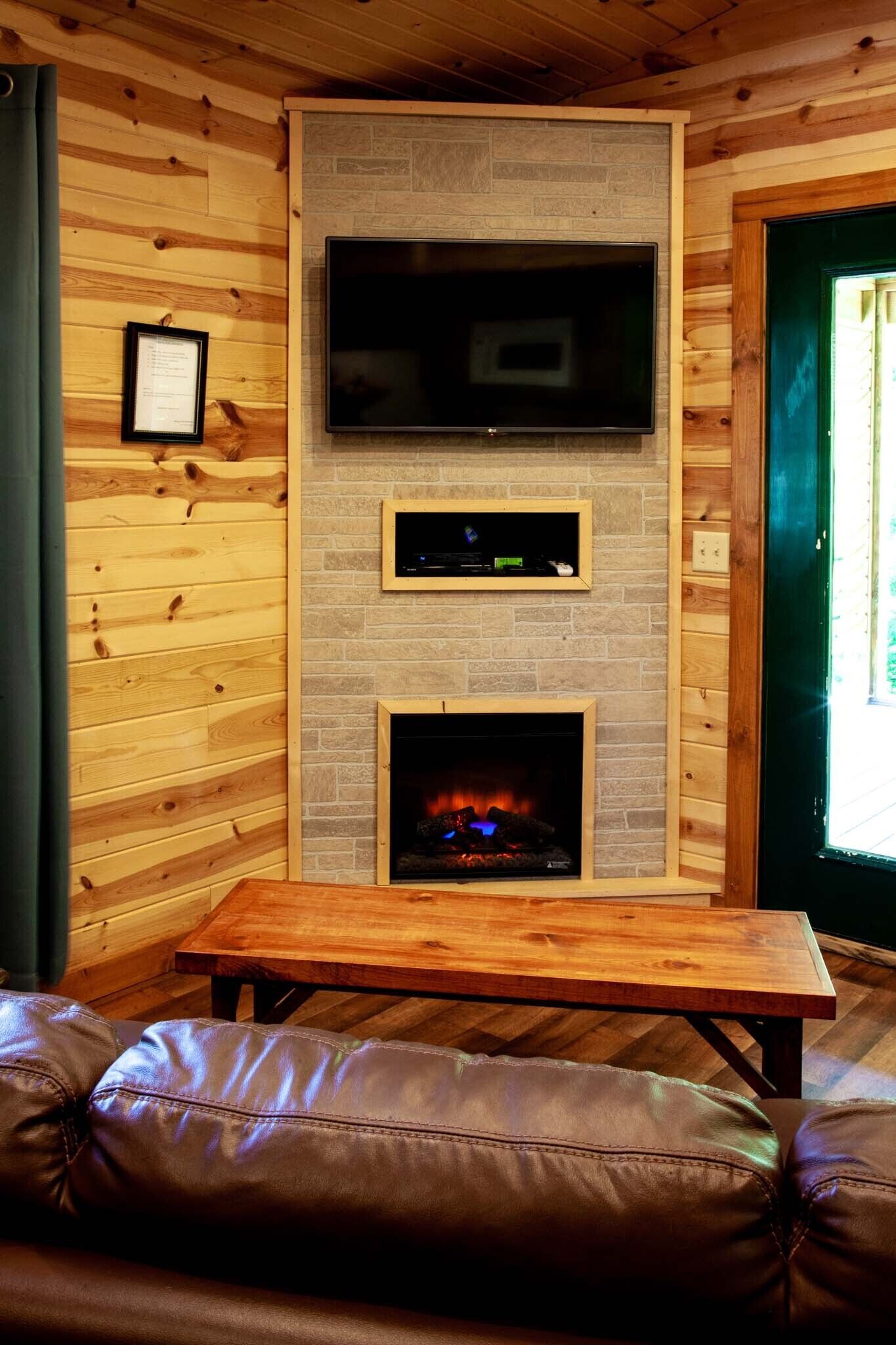 1 BR Hot Tub Cabin- Closest Cabins to Garden of the Gods-Shawnee National Forest Cabin 6 at Shawnee Forest Cabins: The closest cabins to the God of the Gods at the Shawnee National Forest in Herod, IL. Our one-bedroom hot tub cabins are perfect for a romantic couple's getaway or for small families. This one-bedroom cabin has a private hot tub, a fireplace, WiFi, satellite TV, an EV charger, a full kitchen for simple cooking, a queen-size bed, and a leather queen-size sleeper sofa, which is ideal for up to two children.