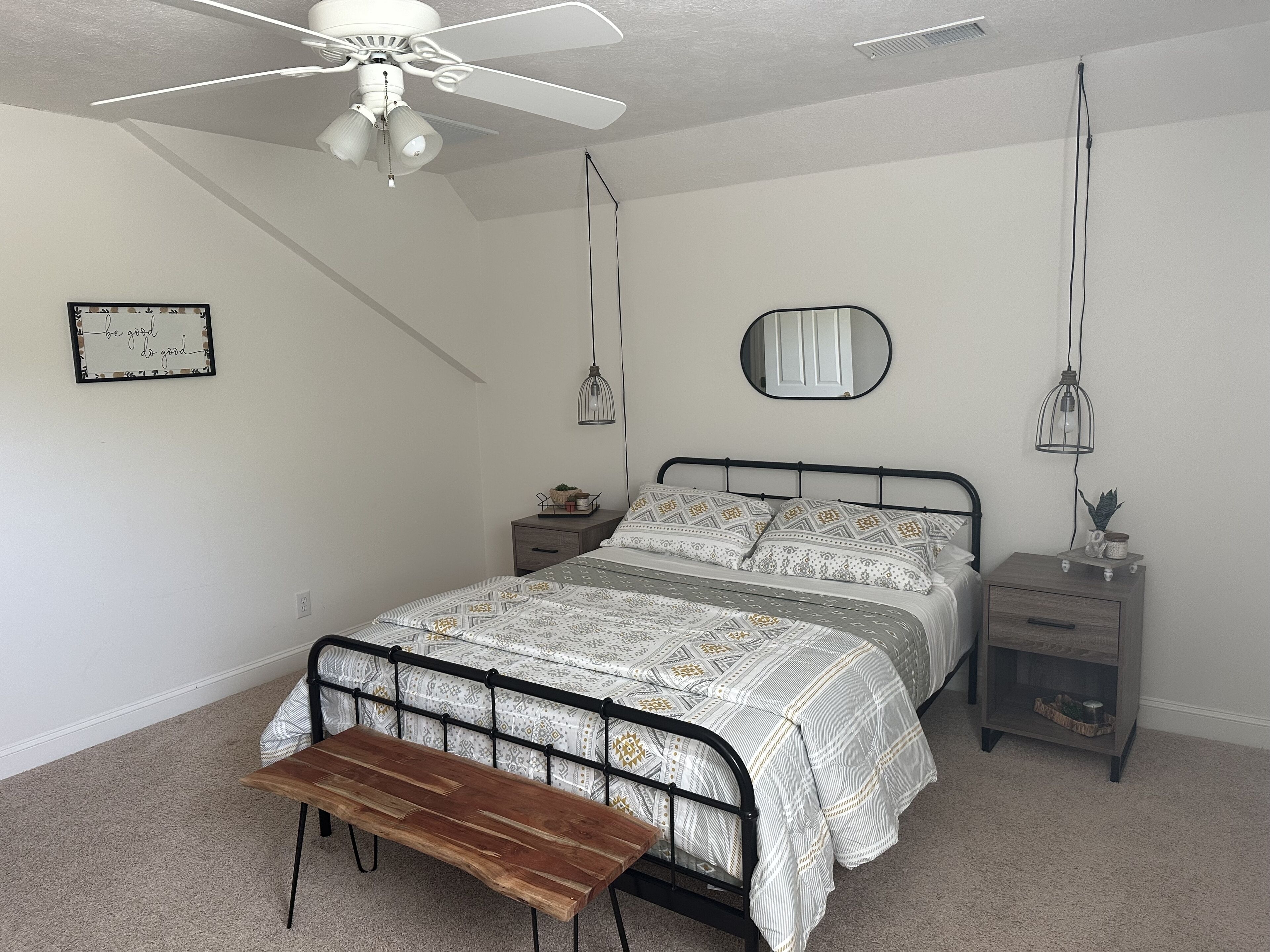 Cozy Farmhouse with 4 Bedrooms and 3 Baths Beautiful Secluded Farm off the beaten path with modern spacious private rooms and bathrooms. Beautifully decorated and stocked for minimum packing. Less than 10 Minutes to beautiful hiking trails at the Gods and Rim Rock area. 97 private acres to explore with a small private pond.