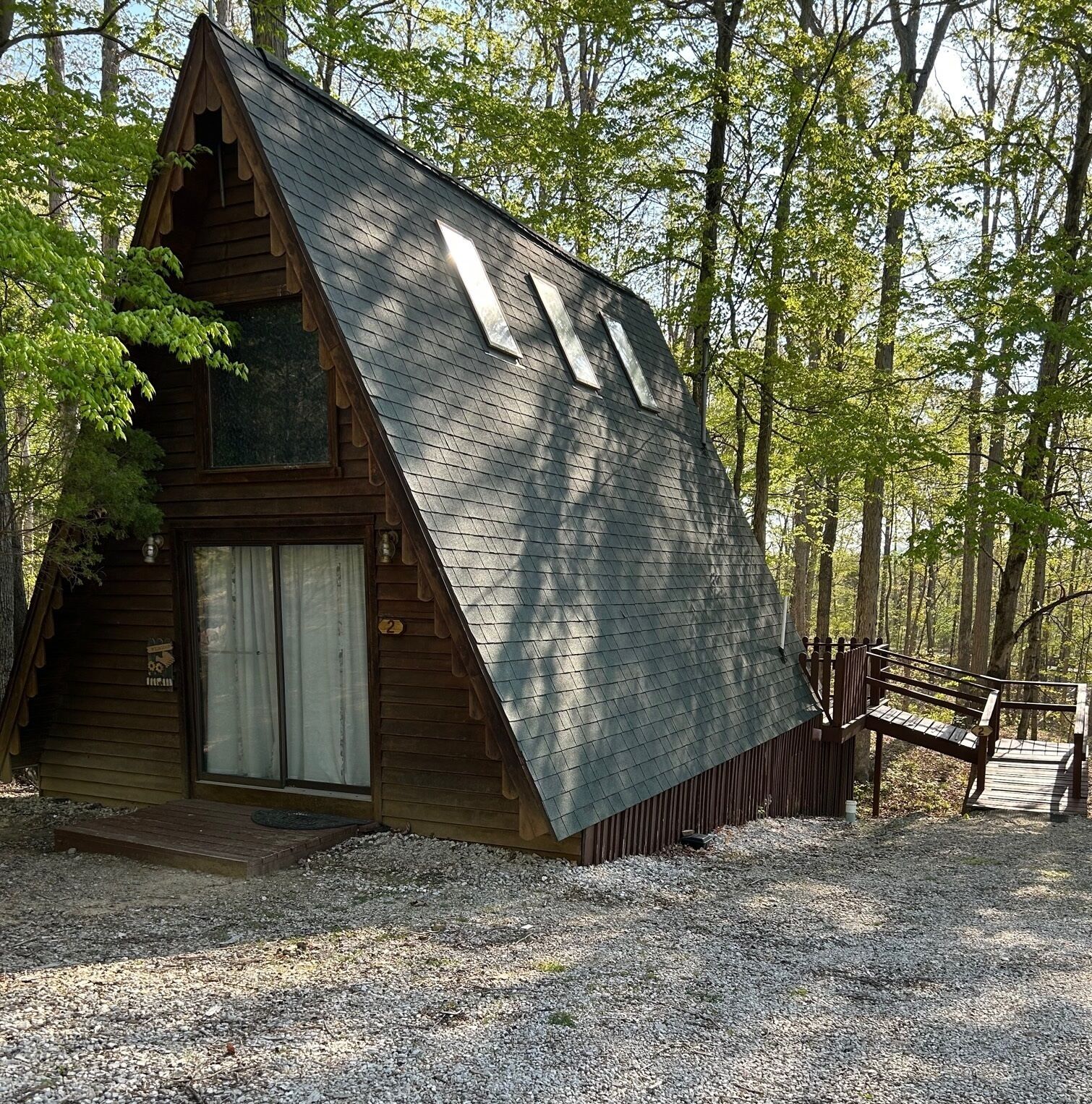 Cedar A Frame Cabin 2 located on Patoka Lake in Southern Indiana One Story Cabin w/ Open Loft sleeps 4One bed queen upstairs and a twin bed w/ a trundle bed downstairs. Spiral staircase leading upstairs.The kitchenette includes a 4-burner range top, a microwave, coffee maker, toaster oven, dishes, pots, and pans.Full Bathroom includes a nice shower only, not a tub.The living area has a flat panel TV and DVD player.This cabin is complete with large beams and an all-wood interior, spiral staircase, cedar cabinets and skylights.Cabin has outside uncovered deck, picnic table with a private fire ring.A charcoal grill is available equipped with grilling utensils.This cabin has WIFI available.Maximum number of people allowed in cabin is 4.*Cabin is NOT pet friendly.Please see our rental agreement for information on damage deposits and cancellation policyNotes: We supply all linens, including bath towels. We also supply toiletries. Our cabins are smoke free, however we do permit smoking outside and we do supply the ashtrays. Must be 23 years of age to reserve.Patoka 4 Seasons Resort, nestled in the serene landscape of Eckerty, Indiana, offers a delightful escape for nature enthusiasts and relaxation seekers. Here’s what you can expect at this charming resort:Resort Amenities:• Inground Pool: Take a refreshing dip in the resort’s inviting pool.• Clubhouse with Arcade: Enjoy some friendly competition or unwind with arcade games.• Sports Field: Engage in sand volleyball, horseshoes, and corn toss games.• Fish Cleaning Station• Walking Trails: Explore scenic trails leading to the tranquil shores of Patoka Lake.Nearby Attractions:• Patoka Lake: The resort’s proximity to the lake ensures easy access for fishing, boating, and enjoying water activities.o Hoosier Hills Marina• Restaurantso Idle Zone Restaurant and Baro Schwartz Family Restaurant• Hoosier National Forest: Immerse yourself in the lush greenery of this nearby forest, perfect for hiking and wildlife spotting.o Patoka Lake Park Hikingo Birdseye Trail 1 and Trail 2o Hemlock Cliffs Trailo Celina Interpretive Trailo Two Lakes Trail 1 and Trail 2• French Lick: Just a short drive away, explore the historic town of French Lick, known for its mineral springs, casino, and scenic railway.o French Lick West Baden Museum:o French Lick Casino:o Stables At French Lick:o Big Splash Adventure Indoor Waterpark & Resort:o Bear Hollow Wood Carvers:o The Pete Dye Course at French Lick:o Indiana Railway Museum:o The Donald Ross Course at French Lick:o Bliss Spa & Boutique:o Spa at French Lick:o The Spa at West Badeno Fox Hollow Galleryo French Lick West Baden Indoor Kartingo Lark Valley Zip Lines• Scenic Beauty: The rolling hills, dense forests, and sparkling waters create a picturesque backdrop for your stay.• Wineryo French Lick Wineryo Winzerwald o Monkey Hollow WineryWhether you’re seeking adventure, relaxation, or a bit of both, Patoka 4 Seasons Resort provides a tranquil haven in the heart of Southern Indiana. 🌿🏞️