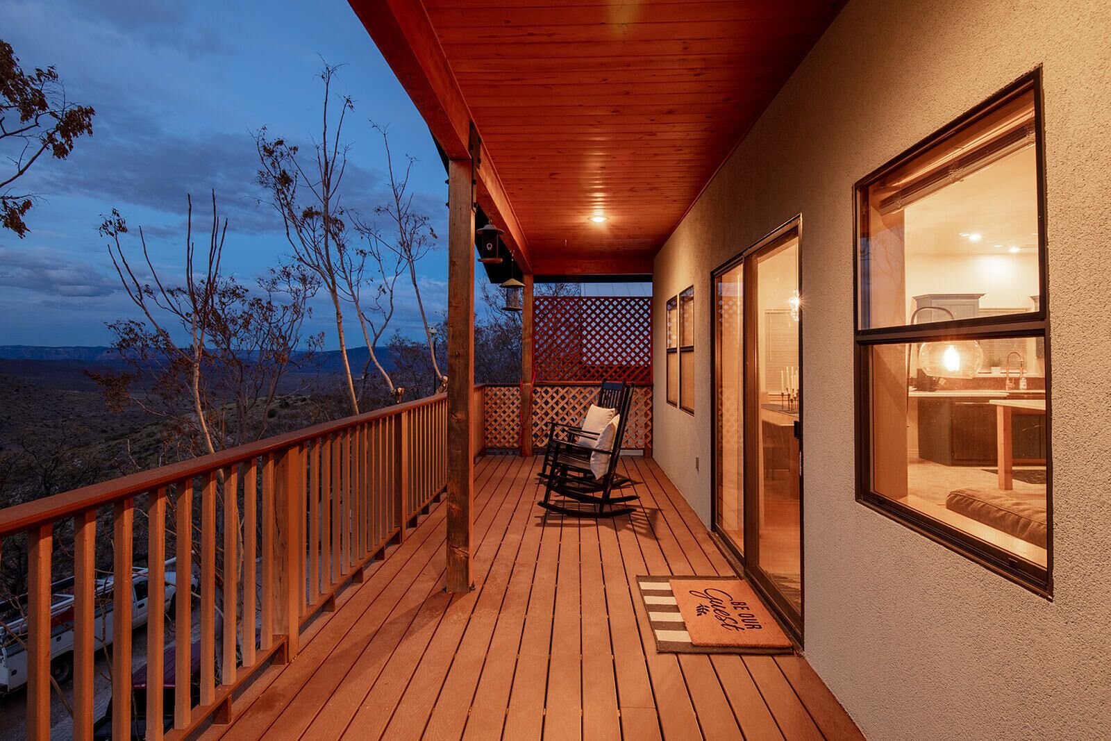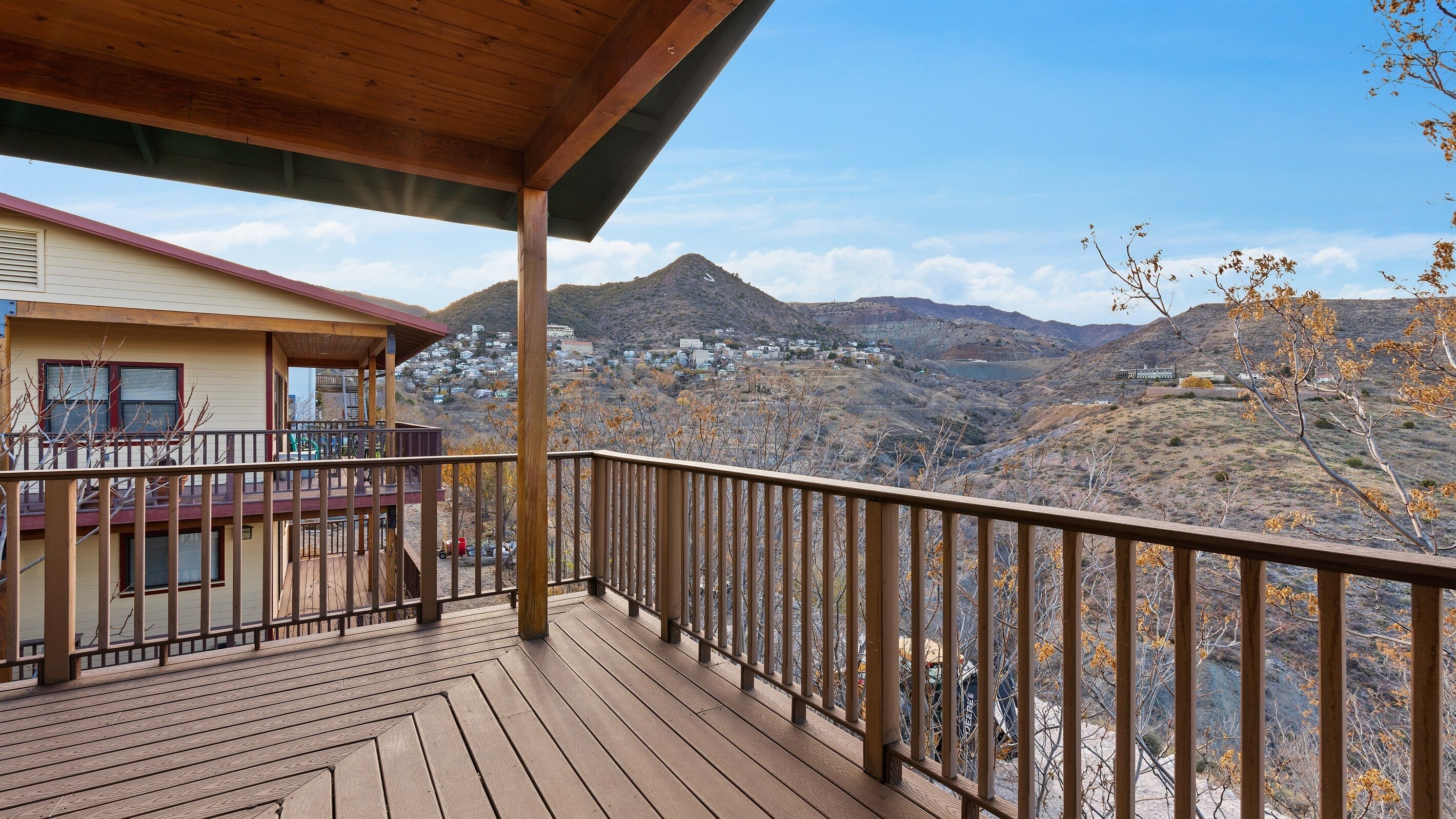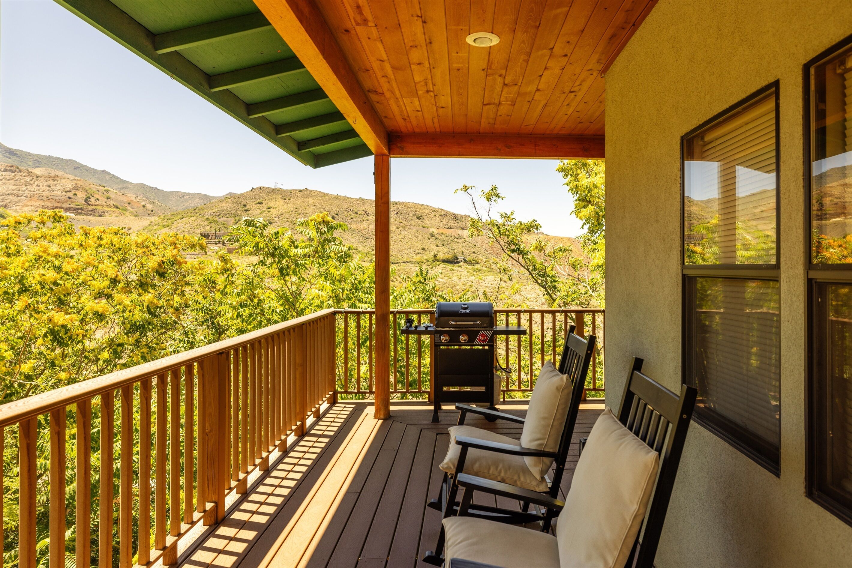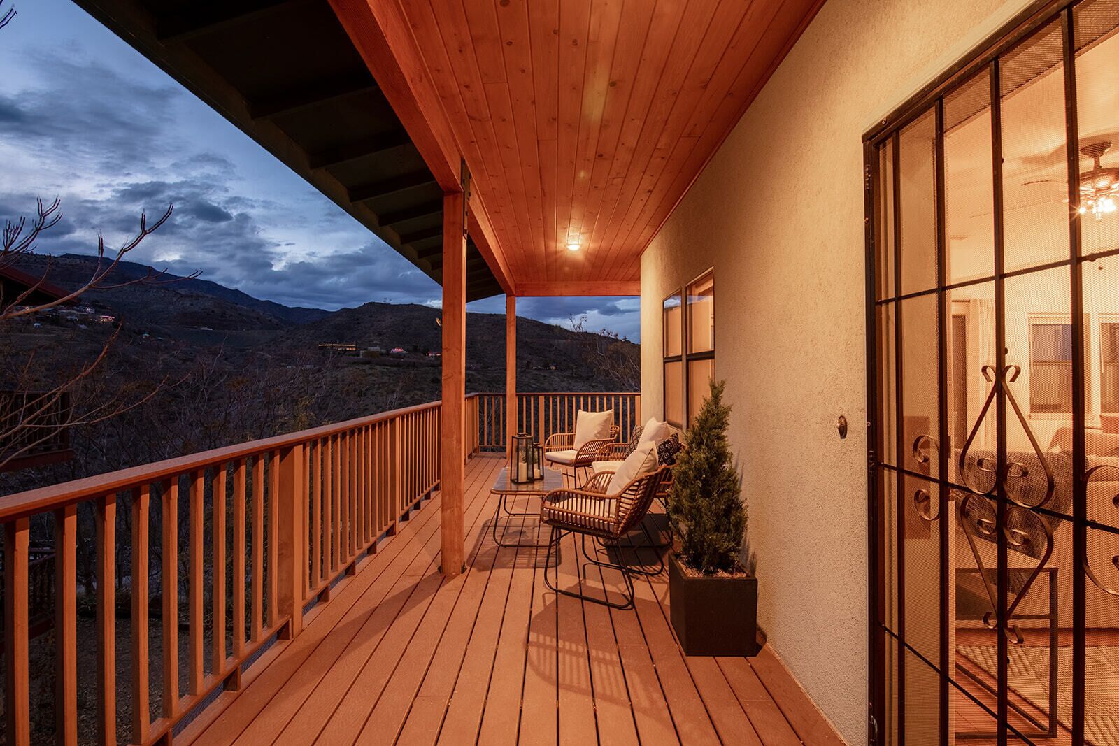 Fully Stocked Kitchen in AZ's Fav Mining Town, Shopping, Dining & Fun VIEWS! Stay with us in this brand new, 2-bedroom, 2 bath unit. Enjoy your cup of coffee in a rocking chair on a large deck overlooking the gorgeous panoramic views of the beautiful city on a hill (beautiful day and night), Verde Valley and Sedona red rocks in the distance. The bright, upscale and modern rustic design offers luxu...