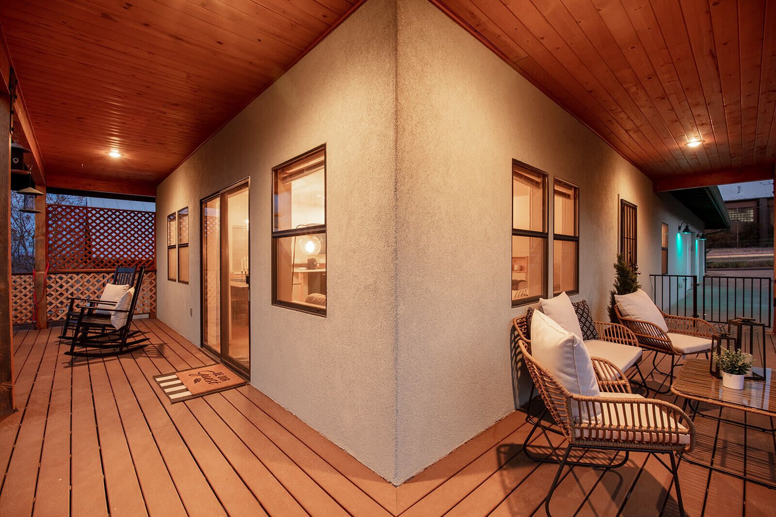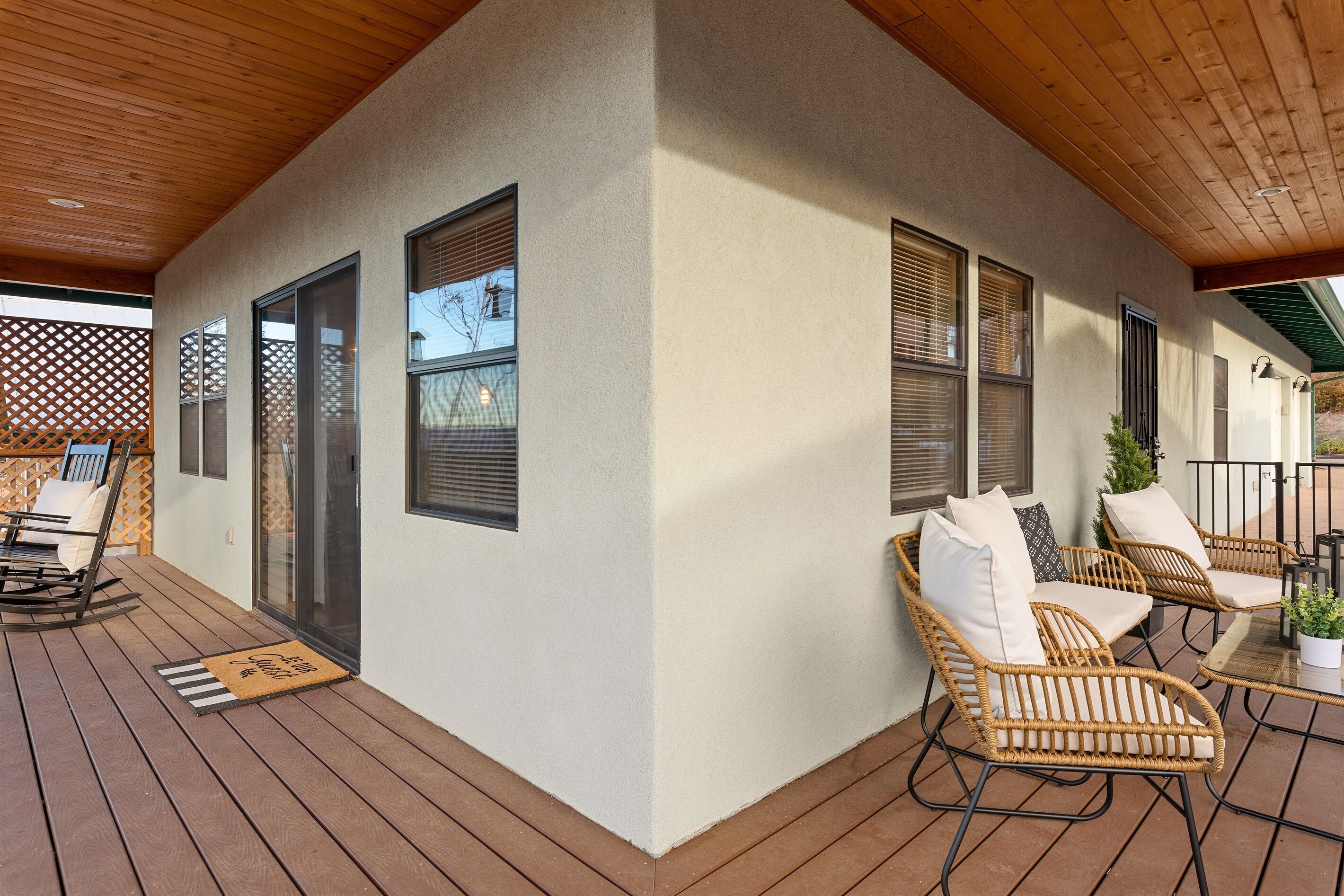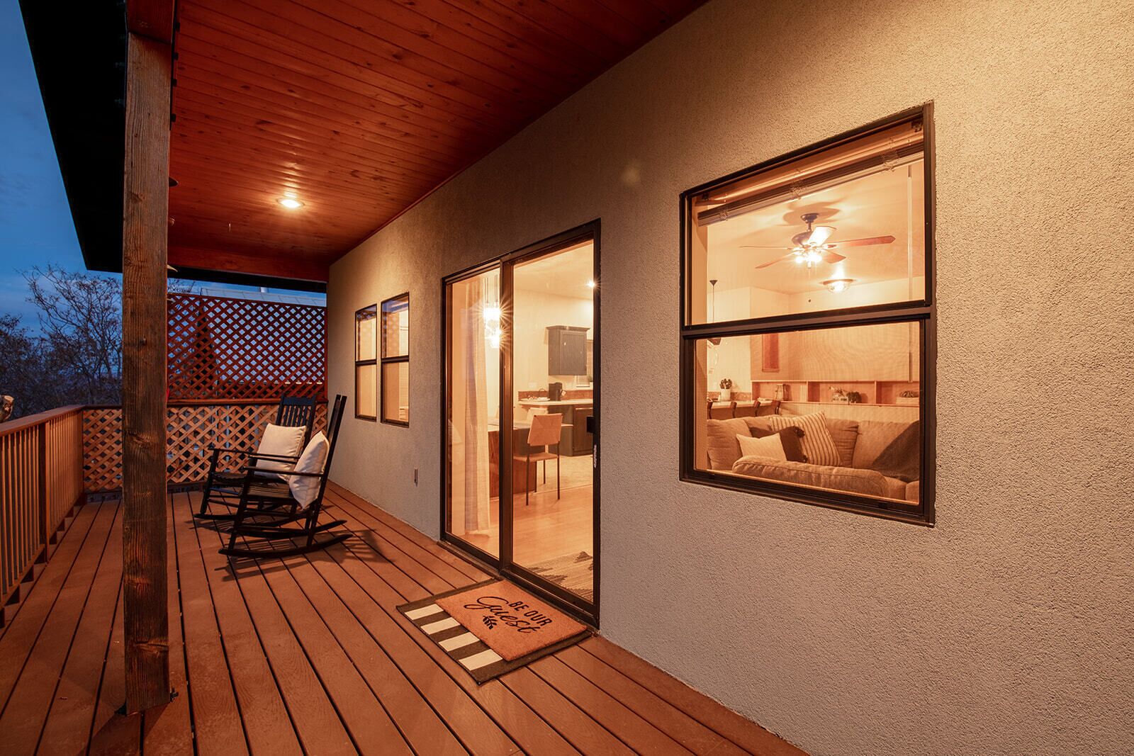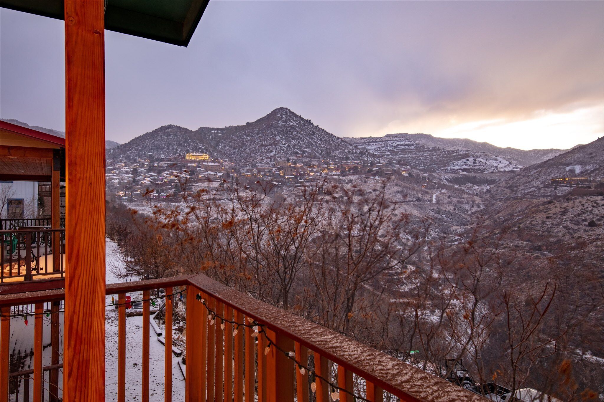 Fully Stocked Kitchen in AZ's Fav Mining Town, Shopping, Dining & Fun VIEWS! Stay with us in this brand new, 2-bedroom, 2 bath unit. Enjoy your cup of coffee in a rocking chair on a large deck overlooking the gorgeous panoramic views of the beautiful city on a hill (beautiful day and night), Verde Valley and Sedona red rocks in the distance. The bright, upscale and modern rustic design offers luxu...