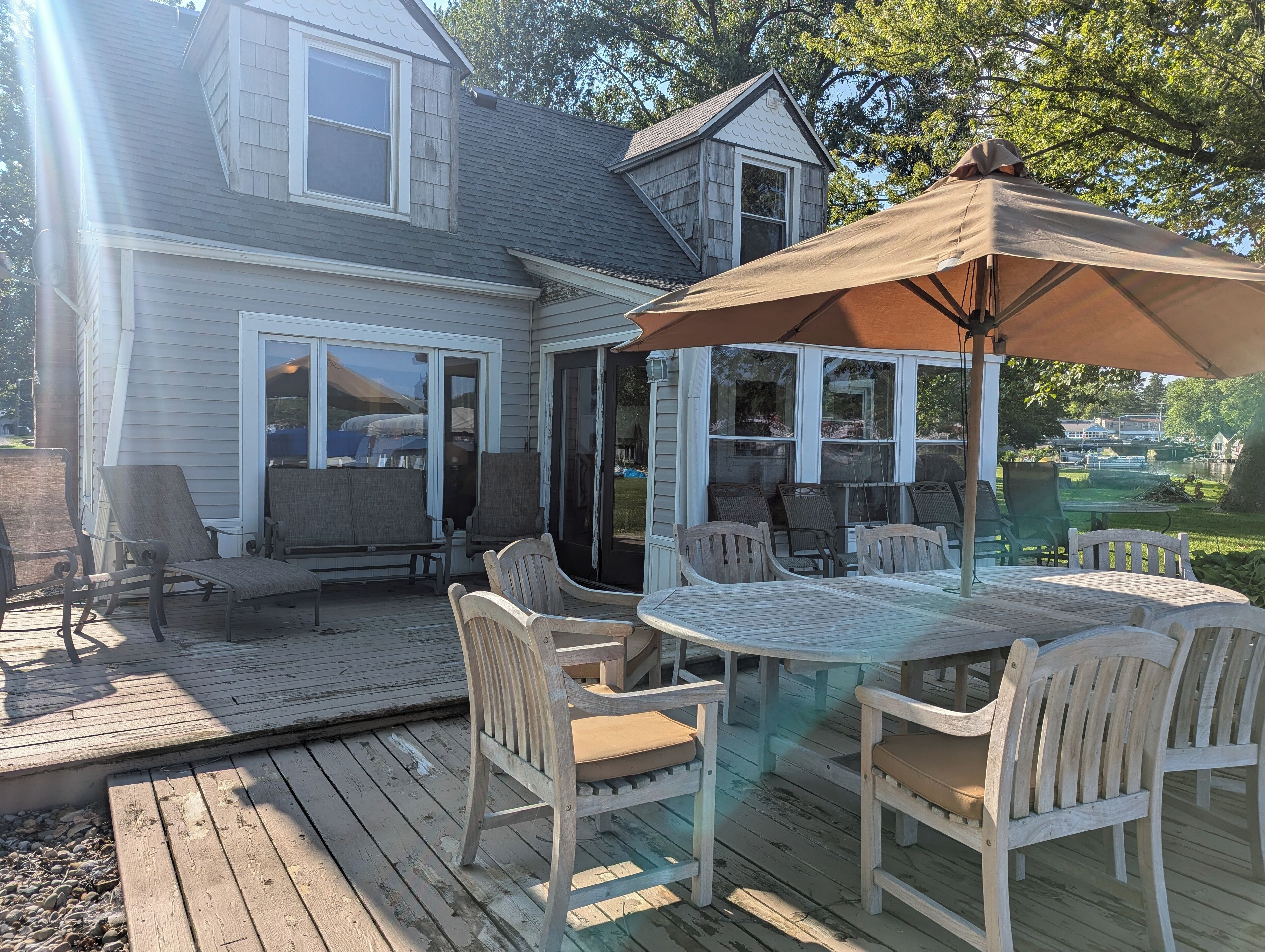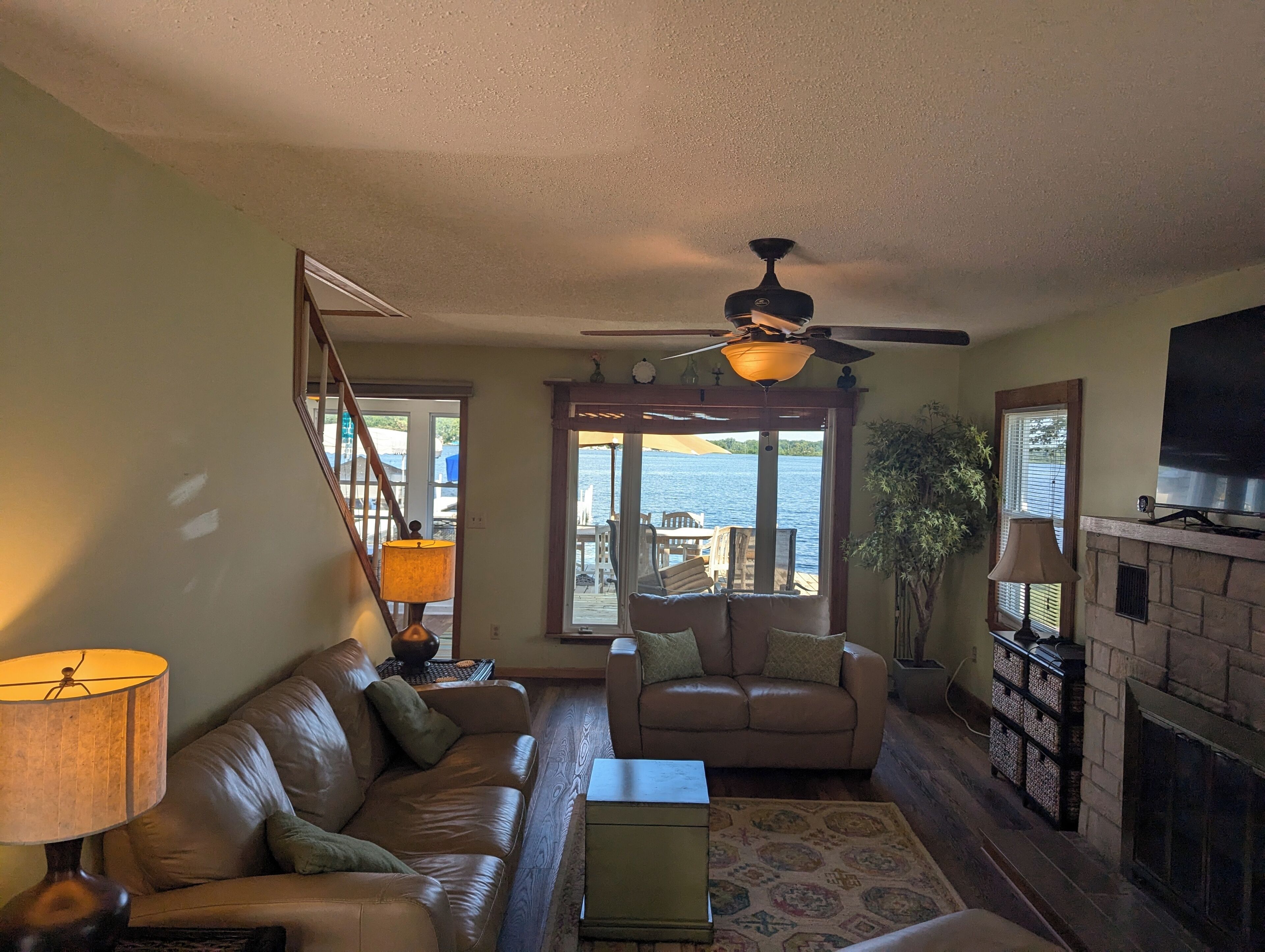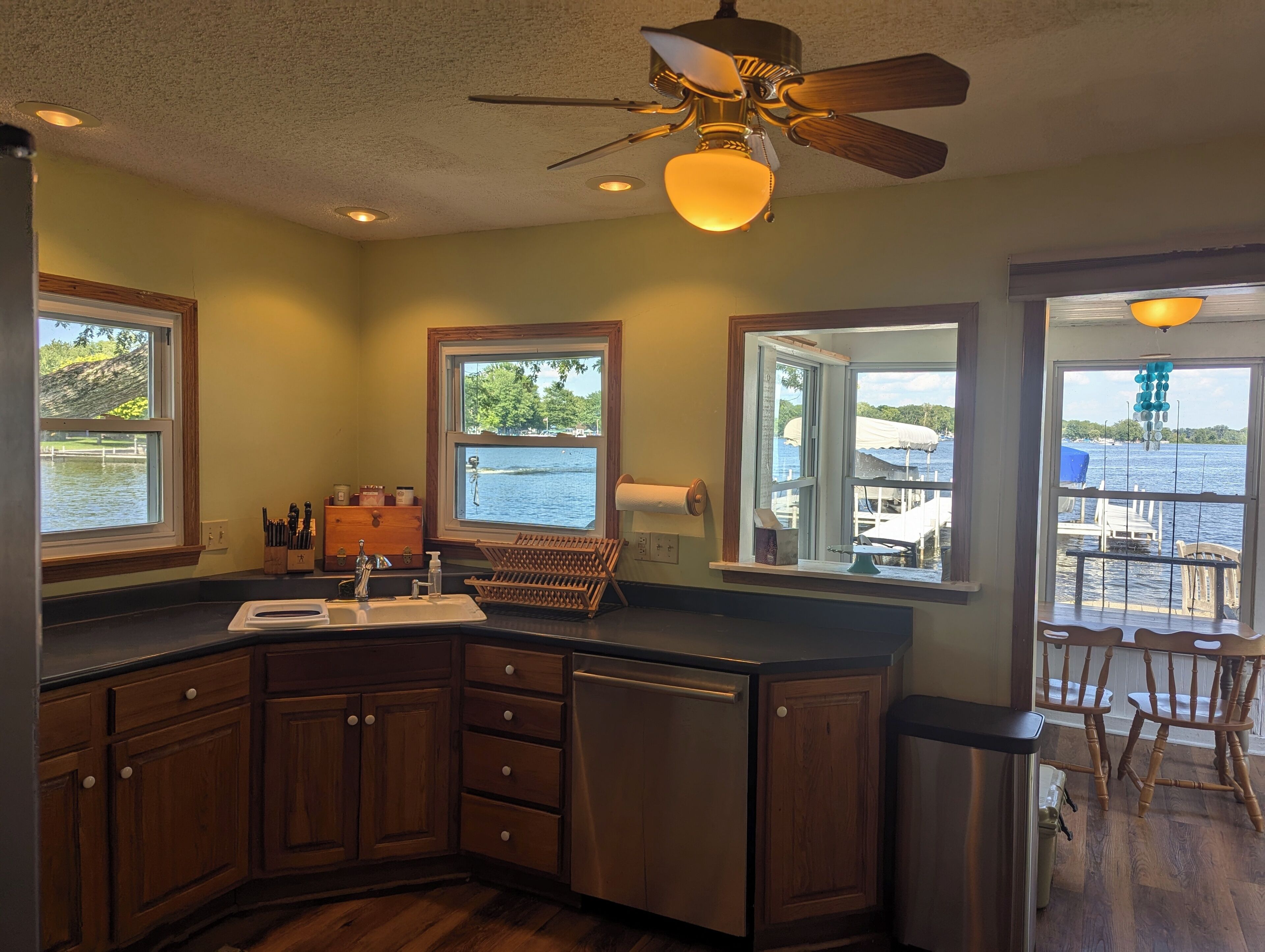 Wow the View!! Prime Location on Big Barbee Waterfront There is no better place on the chain with better accomodations to watch the boats as they pass between the lakes than this prime waterfront location from this brilliant 3-bedroom home between North Webster, Syracuse, and Warsaw. This is no cottage, it is a year-around home that offers a comfortable stay right on the lakefront of Big Barbee, which is the largest and only ski lake on the chain of seven lakes. If you are bringing your own boat, the pier has room for 2 more boats and WaveRunners (or Pontoon rental is an option). Everyone will find their perfect spot to unwind, whether it is lounging outside on the large deck with 8-person table and plenty of chairs, playing in the grassy side yard under a shady tree, dipping your toes in the cool water; or inside looking at the lake from the sunroom, gazing at the lake from the giant picture window in the living room, preparing a snack in the generous kitchen while looking out at the lake. Did we mention you can see the lake from nearly every window?! You won't give up the comforts of home because the house has air conditioning, WiFI, washer and dryer, and gas grill. End each night in one of the 3 bedrooms - the main level primary bedroom with queen bed and ensuite bathroom and 2 upstairs bedrooms each with double/twin bunk beds. Snacks and meals will be a joy to prepare in the well-appointed kitchen. Aside from the usual refrigerator, stove, and microwave, you will appreciate clean-up made easy by the whisper-quiet dishwasher. Enjoy morning coffee from the Keurig and keep extra drinks cold in the beverage fridge. Ready to venture out? This property is within easy walking distance to three local restaurants, Barbee Hotel, Danny's Sports Bar and Pizzaria, and Lake Life.Don't worry about extra packing - we have plenty of beach towels, a cooler, and life jackets for your use, as well as bath towels, paper products, and toiletries. For the kitchen feel free to use the Keurig, toaster, slow cooker, plates, bowls, cups, glassware, silverware, knives, pots and pans, cutting board, platters, kitchen utensils, basic spices, and cleaning supplies.For those who want an extra adventure, an eight-passenger pontoon boat is available to rent at an extra fee. Just send an inquiry!Whether you're exploring the city or simply relaxing indoors, this property is the ideal home away from home. We look forward to welcoming you to our place. 3 night minimum stay.