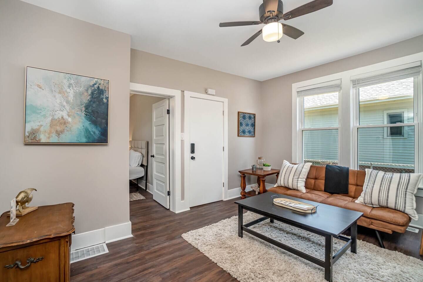 Great Lakes Downtown Duplex: 2 units in one! The perfect solution for two traveling families: 2 separate units in the same house, conveniently located near a variety of attractions! Recently renovated and decorated, these spaces are ready! Two miles from the sandy beaches, near tree-lined hiking trails in the nation's newest national park, casino, wineries, boat rentals, cafes, Michigan City Zoo, splash pad and park, outlet malls, & antique shops. This is the perfect getaway for up to 10 people who want to relax or adventure in nature!To avoid any confusion, potential guests should thoroughly read ALL information below before requesting to book. (We promise that the info below will better prepare you for your trip and answer 99% of your questions!) Thank you!HOUSE PERKS: --This rental includes TWO units within the same house: an upper unit and lower unit. Each unit has its own kitchen with a fridge/freezer, sink, stove, oven, microwave, toaster oven, blender & coffee maker. Essentials like plates, cups, cookware, utensils, & paper towel will be provided for your use. --Along with coffee, creamer and sweetener are provided.--Cooking spray, olive oil, salt/pepper are provided.--Each unit has its own bathroom. A hair dryer and showering essentials/bath towels are available.--All bedrooms have some form of dresser storage and hangers for clothing storage. There is also an iron and ironing board in each unit.--Small beach toys for kids and a large woven beach towel is provided for each guest.--A few board games are available for your use.--Guests can park up to four cars (two per unit) in the gravel lot beside the home.SLEEPING SET UP:Upper Unit sleeps max of 4 people: One bedroom (queen bed) and living area with one (full sized) futon. Please note that the futon is small and firm, and while it can fit two adults, it is most well suited for children.Lower Unit sleeps max of 6 people: One bedroom (queen bed), another bedroom (queen bed), and living area with one pull out couch. TECHNOLOGY:--A large, flat screen smart TV is hooked up in each living area, though we recommend the outdoors over the tube! ;)--High Speed Wifi is provided.--A washer/dryer is available for your use in the basement. (Note: This area is shared between both units)ADDITIONAL INFO:We welcome guests of all backgrounds! However, due to prior disrespectful renters and property damage, we will only be accepting booking requests from:--AirBnB users who are "verified" and who already have positive reviews from other hosts.--Renters that are above the age of 25.--Renters who are not bringing pets.--A maximum of 10 guests per reservation. Extra guests are not allowed.--We value our relationship with our neighbors, so events/gatherings/parties are not to be held by guests. In order to keep the unit in excellent condition for future guests, we are firm on these rules. We apologize for this inconvenience and thank you for your understanding.***Smoking is NOT allowed inside or around the property. If there is any evidence smoking occurred inside or within 50 feet of the property (smoke smell, ashes, paraphernalia, etc) there will be an additional $300 cleaning charge and/or loss of security deposit if one was collected.***Note that there are train tracks a few blocks away. Train schedules vary greatly so there is no telling how often you will hear a whistle while vacationing—Many of our guests have said they never heard it, some say their kids love watching it out the window, and others say they were bothered by it. We've provided sound makers in each room (and beside the pull out futons) for light sleepers. The vast majority of our guests do not complain of the train, but you are welcome to bring ear plugs for nighttime if you’re a light sleeper or if you’re concerned.***Note that if you are bringing infants/babies, the units are NOT baby-proofed. (Furniture is NOT secured to walls, outlet blockers are NOT included, cabinets/drawers are NOT locked, etc.) You assume responsibilities for all guests.***Note that all guests will have to climb steps up the front porch. Please also note that the steps inside the foyer which lead to the UPPER dunes unit are incredibly steep. (The duplex is historic and was built in the late 1800s.) If all guests in your party are NOT able-bodied, it will be difficult to access the upper unit. If you have non able-bodied guests staying with you, we recommend that they stay in the lower unit to avoid the steep steps.Other things to noteCHECK-IN INFO:--Guests who book will receive detailed check-in instructions and a key code for entry on the morning of their scheduled arrival. All of this will be communicated through AirBnB messenger.--Please note that Michigan City is on Central Standard Time (CST). Check-in is between 4 and 7 p.m.; guests must check out by 10 a.m. so that we can clean/prepare for our next renters before they arrive.--Our cancellation policy is moderate.Michigan City is a great vacation spot. A variety of activities are available for everyone, regardless of age/ability/interests. Favorite spots include restaurants/cafes: --Shoreline Brewery--Panini Panini--The Goblin & The Grocer--Lakeshore Coffee & Specialties--Hokkaido Sushi--Fish Camp--Zorn Brewery Grocery Stores nearby include: --Nature's Cupboard--Meijer--Walmart --Jewel (Chesterton)Things to do:--Michigan City Beaches--Michigan City Zoo--Michigan City splashpad park for kids--Michigan City Outlet Malls--Michigan City park (with weekly live music and jungle gym for kids)--Michigan City Skate Park--Blue Chip Casino--The nation's newest national park includes tons of additional beaches along Lake Michigan, and fourteen hiking trail systems at the Indiana Dunes. --May guests also enjoy visiting wineries and breweries throughout the region, horseback riding, as well as antiquing.*Please note that the neighborhoods throughout Michigan City are often transitional, and while our guests have not had any personal safety issues in the many 