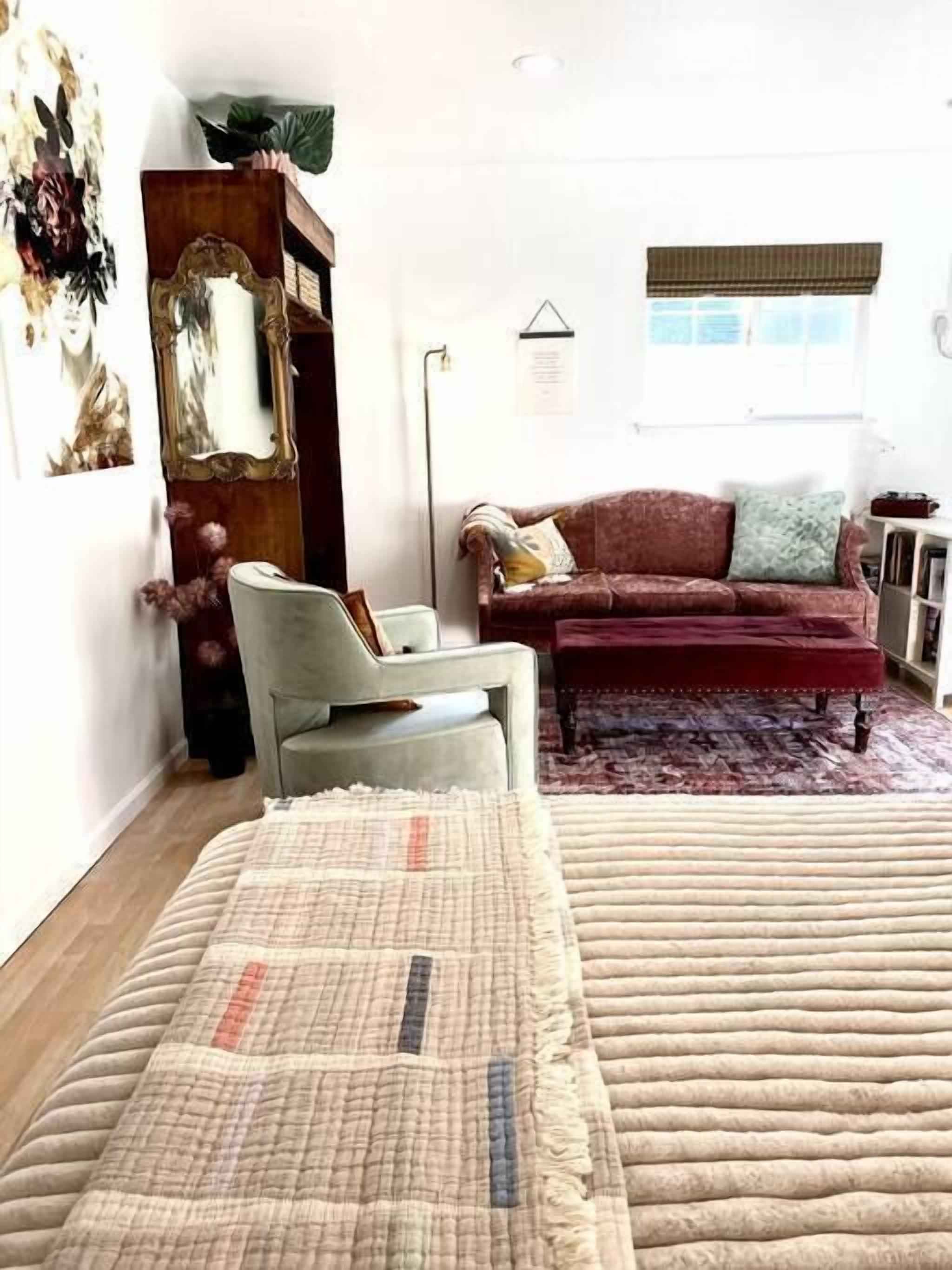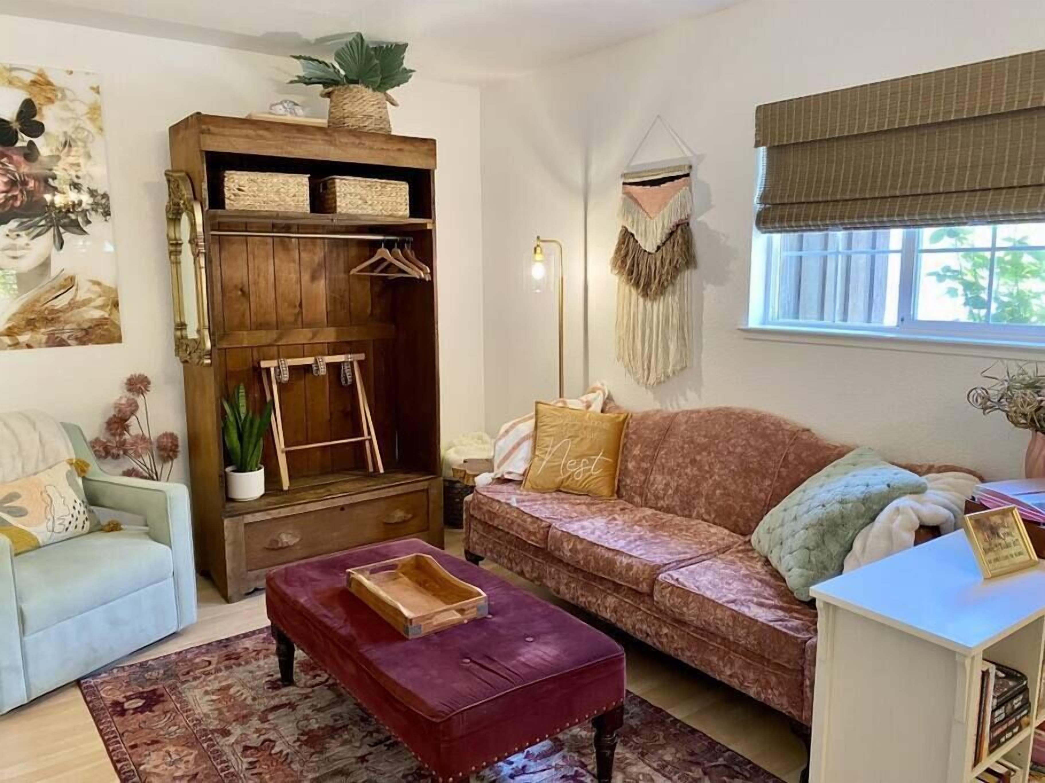 The Nest Cottage close to Historic Downtown Summary:Set in the heart of Historic Old Roseville, or as we like to say, “the best neighborhood in Roseville” this studio cottage is full of whimsical charm! The Nest is a warm and inviting private studio set in a friendly historic neighborhood. Immaculately clean, layered with soft and lush bedding, stylish touches and all the amenities to make you feel like you are on vacation, but also right at home. We celebrate diversity and hope to create a safe inclusive space for all travelers to relax.The Space:The Nest features a top quality queen mattress, soft memory foam topper, luxurious linens, layers of soft lush bedding and oh so many comfortable pillows! The bed is cushy and soft, so you might just melt into it and never want to leave. You will also enjoy the private bathroom with a pristine newly grouted standing shower stall and stocked with all the amenities you need to feel right at home. The beautifully curated sitting area offers gorgeous artwork, a comfortable plush couch, swivel chair for perfect TV viewing, vintage armoire for clothing storage, stocked bookshelves, record player with albums for you to enjoy as well as a smart TV that can be viewed from the comfort of the bed, sitting area or dining area. The smart TV has access for you to log in to your account with most of the popular streaming services. The sweet kitchen is filled with inviting personal touches, and all the tools you might need to prepare anything from your morning coffee to a cozy dinner for two. The dining area just off the kitchen with its beautifully handmade table is the perfect spot to enjoy that morning coffee, dinner for two or to use as a workspace. The Nest features the highest speed Wifi available in Roseville so you feel confident that you will be well connected for your work or streaming needs. We also have equipped the Nest with its own heating and cooling unit available for you to set at comfortable levels for you during your stay. It is not an ultra quiet unit, so there is some background white noise when operating. We do have a sleep sound machine and ear plugs to help you sleep better as well.Just inside the front entrance you will find our Welcome station. Here you will see your WIFI login info, guestbook, a quick easy guide with our contact information as well as our recommendations for things to do and places to see. In the drawers below we have stocked some fun games and puzzles for you to enjoy as well. We want you to feel at home so please feel free to open any unlocked drawers and cabinets and utilize anything you find there. Please just be kind and place things back where you found them for the next guests to use.We value quality and want our guests to feel cared for, therefore we provide quality high end products throughout our home to make your stay feel both luxurious and comfortable. Our goal is to provide you with an experience similar to what we would expect and appreciate when we travel. The Nest is a sweet little spot that is clean, safe, conveniently located and inviting. We hope you feel right at home here!Guest Access:The Nest has a separate dedicated entrance from the main house no shared spaces. Access to The Nest is off a SIDE STREET, adjacent to an alley, not the main street in the property address. It is important to be aware of this as your navigation will take you to the main house. Please respect our neighbors' privacy and DO NOT CONTACT THE RESIDENTS IN THE MAIN HOUSE.Guests will park on the side street directly in front of the entrance to the Nest for easy loading and unloading. The Nest is located just past the ALLEY, the yellow fire hydrant and before the large lemon tree. Look for the sign next to the entrance door that says ” Welcome to The Nest". There are a few steps leading up to the Nest from the sidewalk. Please do not park in the alley at any time, near the entrance to the front main house, or on the street listed in the property address. Only the residents in the MAIN HOUSE, NOT THE NEST, have access to the private backyard, please do not try to enter the backyard at any time. The Nest features a small outdoor sitting area at the entrance to the guest house but no access to the backyard. Inside The Nest, just off the bedroom area you will see double french doors with frosted privacy glass. These doors will remain locked with a keyed deadbolt and are not available to be opened at any time by guests as they lead to the private backyard of the main house. The Nest features windows in the sitting, dining and kitchen areas that provide lots of fresh air.Although there are a few steps up to the entrance from the sidewalk The Nest is a one story studio without indoor stairs. Worth noting for safety, between the dining area & bathroom, there is a very small step down into the sitting and bedroom area. Because the elevation change is so small it is important to be aware of it and take care. We have placed a low bookshelf there to act as both a room divider and reminder of this small step for your safety.The Neighborhood:Tucked away along tree-lined streets, historic homes, walking distance to Downtown and Old Historic Roseville featuring small business shops, restaurants and nightlife, nearby parks and creekside biking/walking trails, all making this location a real gem. The Nest is located in the most convenient and centralized location in Roseville. In our opinion some of the best features that are within walking distance include: Trader Joes Miner’s Ravine creekside biking/walking trail Royer Park- hosting Music in The Park during the summer months and much moreLincoln Estates Park- featuring the famous but sort of secret Roseville treasure- “the concrete slides”Downtown Roseville/ Vernon Street- tons of local small business shops, coffee shops, live music, on-stage theater productions, art galleries, restaurants and nightlife. In the summer Vernon Street is the home to Downtown Tuesday Nights, and Win