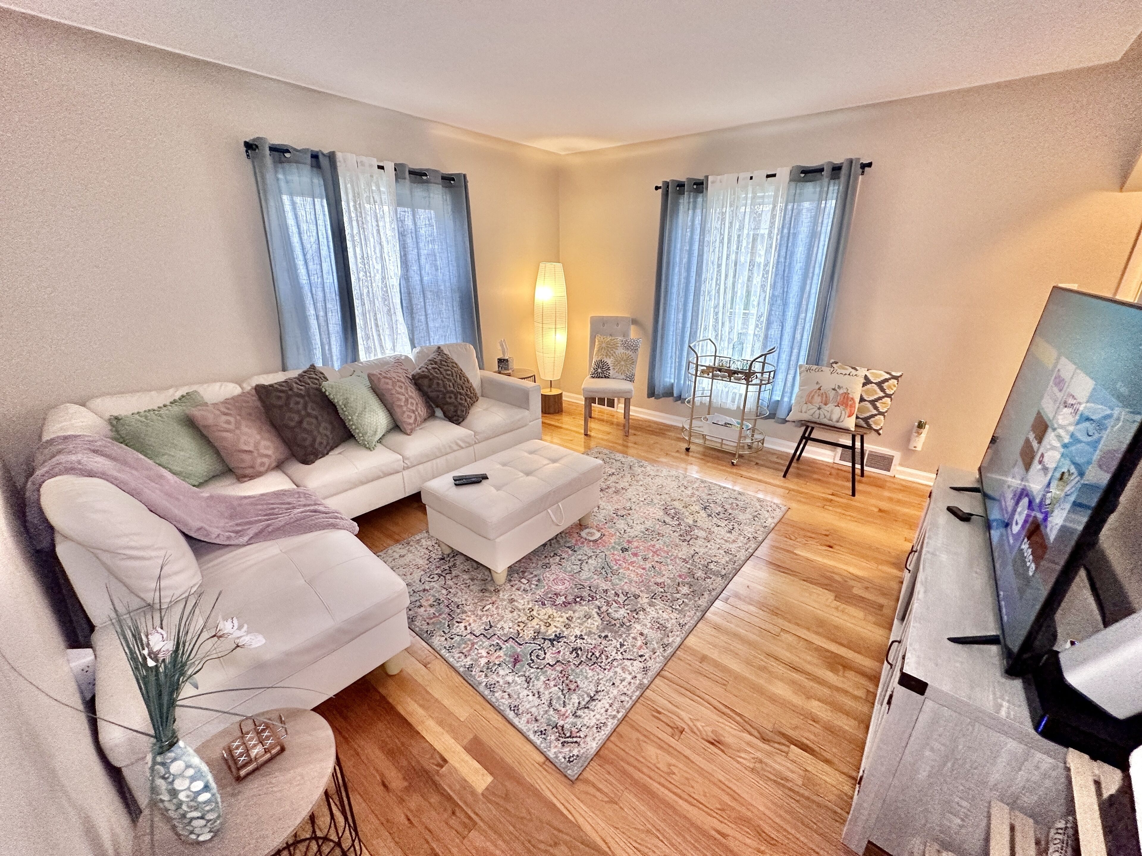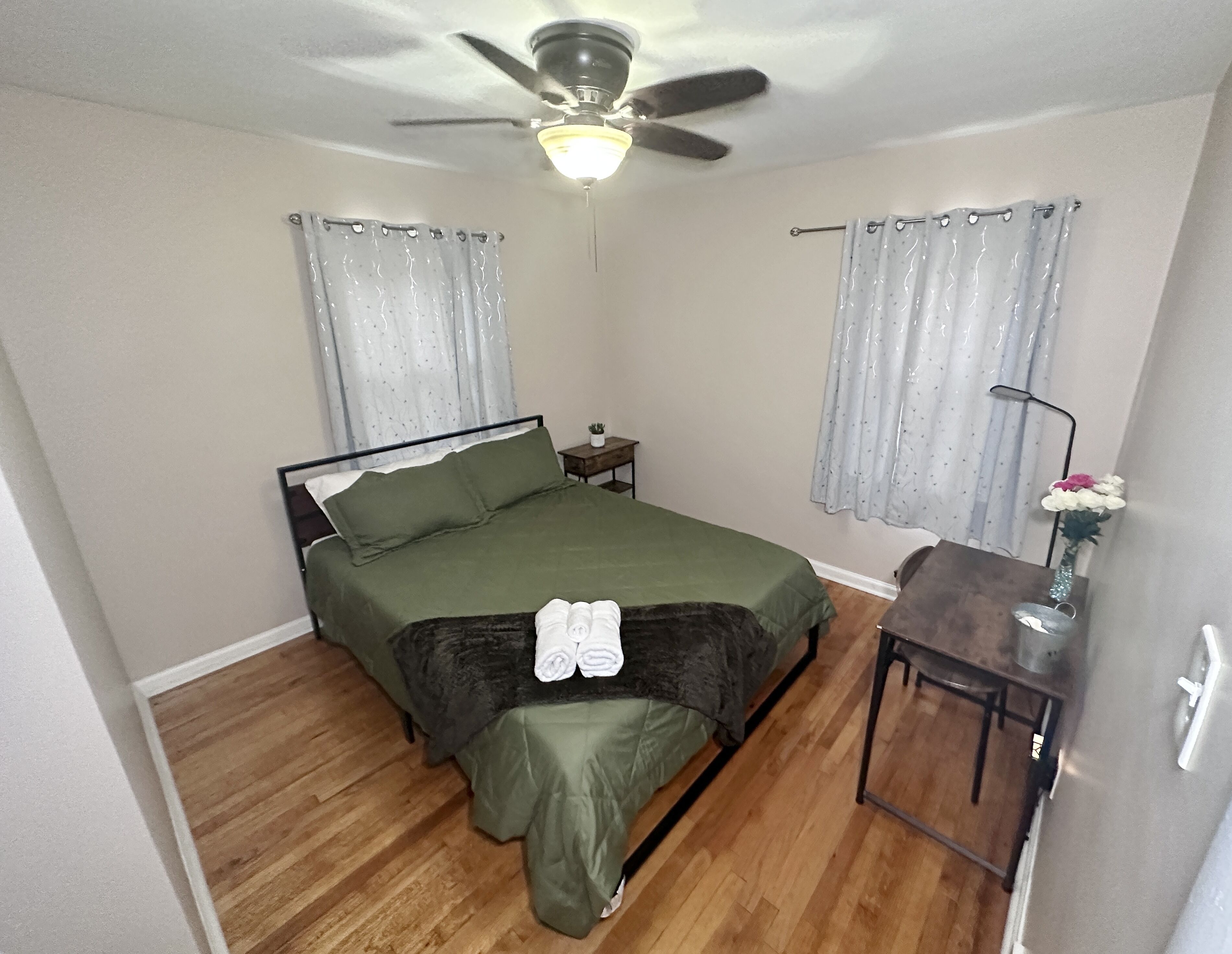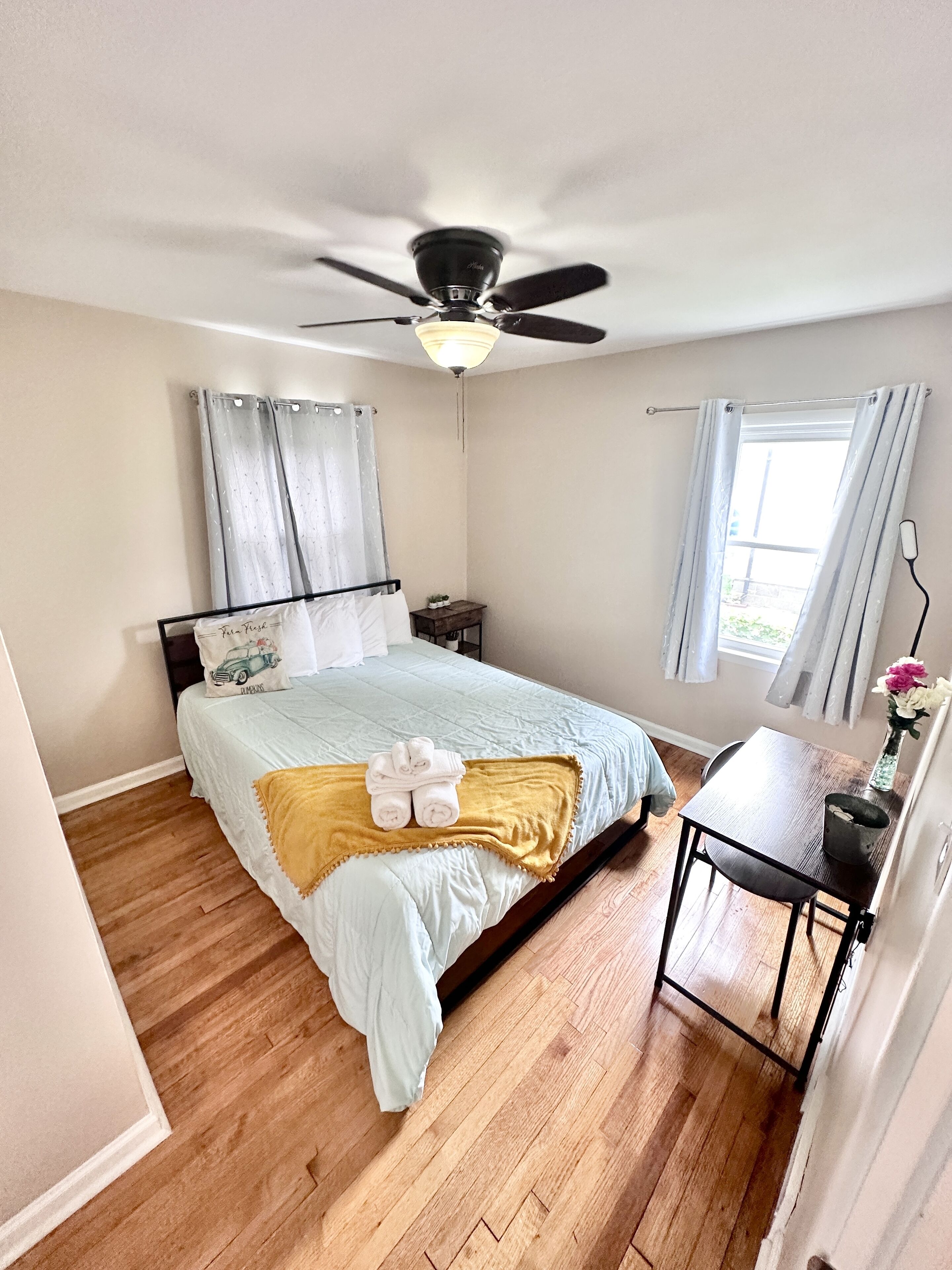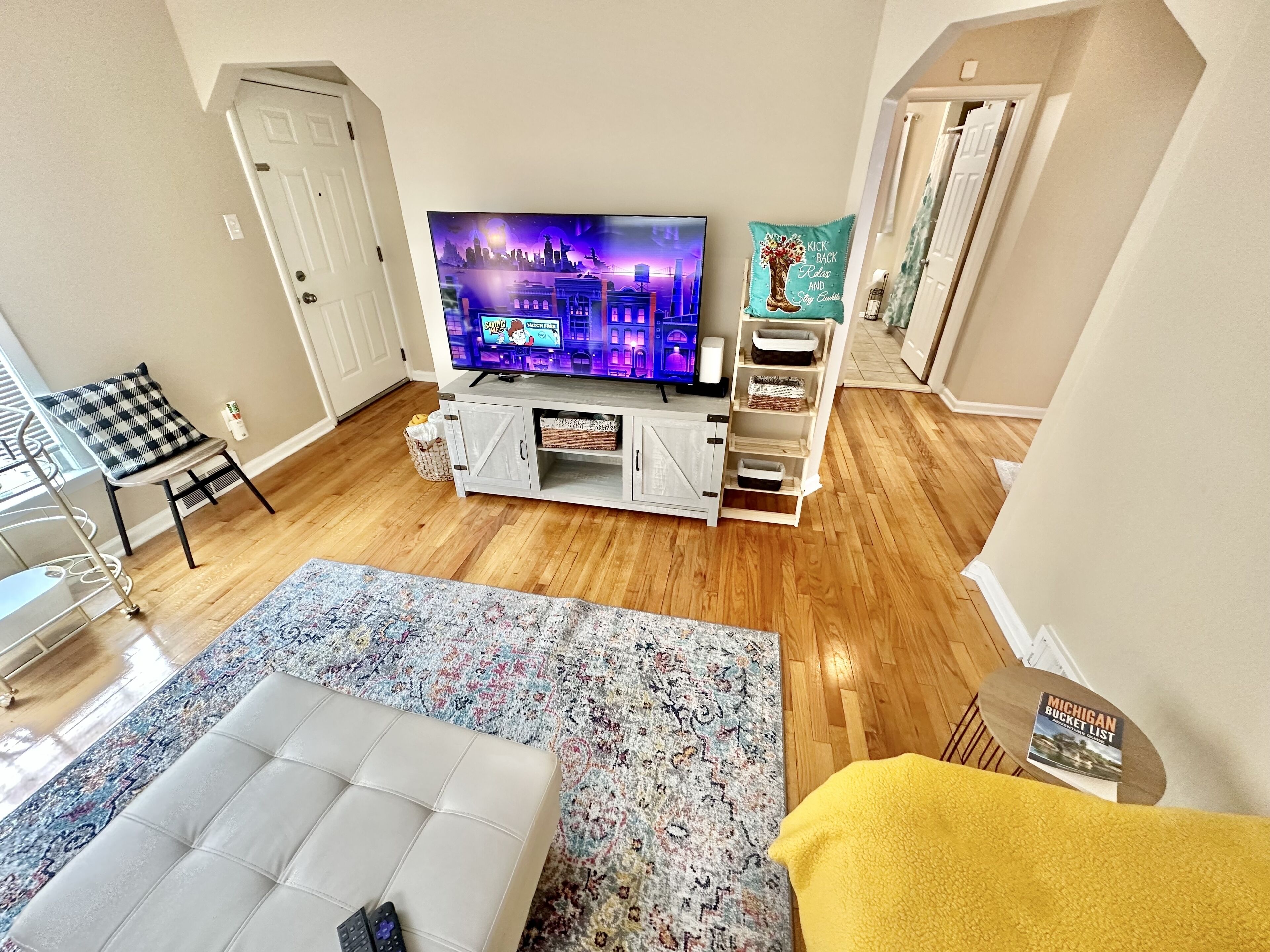 Centrally Located Farmhouse Bungalow - 58” Tv 600 wifi Check out this centrally located budget friendly Roseville Bungalow home that features 4 beds 3 bedrooms 1 bath 1167 ft2 bungalow w 600 mpb wifi and smart HD Ruku 58 in tv!Each bedroom also includes a dedicated office desk and chair. Home has a fully fenced yard for furry travel buddies!This home is also convienently located right by the i94 and i696 intersection where you will be 15 mins from downtown Detroit and Royal Oak and minutes from St Clair shores and Lake St Clair.Note: This property is a budget friendly bungalow centrally located in Roseville by the boarder of st Clair Shores. Because of the central location, one of the crossroads on the property is 12 Mile which is a major street so there will be some traffic or city noise. The property is within walking distance to restaurants, stores, and groceries as well as a quarter mile from i94 and a mile from i696.This is a centrally located 3 bed 1 bath 1000 ft2 bungalow near major cities and freeways downtown recreation areas and lakes!Extra large master bedroom with king bed upstairs, queen bed and twin bedroom on the main floor.*exterior of home is monitored with cameras/doorbells for safety, house has a smart lock for entry on back door with an assigned passcode during stay, house heating and cooling is programmed through a smart thermostat*Living room: features 58” RUKU 4K smart tv , modern sectional and matching ottoman, beverage cart and extra seating chairs as well as games for entertainmentKitchen: features fridge, freezer, range, microwave, tea kettle, k-cup coffee maker, basic kitchen and cooking supplies, corner table and bench with a complementary starter pack of coffee pods, sugar, and tea bags.Master bedroom: features a King size bed located upstairs on the 2nd floor with a dedicated desk, chair, duel night tables, duel clothes racks and hangersGuest bedroom 1: entry level facing main road/front of home features a queen memory foam bed with a dedicated desk, chair, night stand with charging outlets, lamp, closet and hangers.Guest bedroom 2: entry level facing back of home with 2 twin mattresses on a daybed frame (2nd mattress frame rolls out from under bed) with a dedicated desk, chair, lamp, nightstand, closet and hangers (note bedroom 2 is a main entry door/point off the back deck)Bathroom: stand up walk in tiled shower with a built in bench and handrail, towels, washcloths, hand towels, basic bulk shampoo conditioner and shower gel as well as blow dryer are available for usePatio: back patio and deck features outdoor rug, cushioned bench and seats, and industrial stoolsLaundry room: washer and dryer are in the basement for longer stays* All furnishings (including mattresses minus appliances) are newly purchased in 2022*