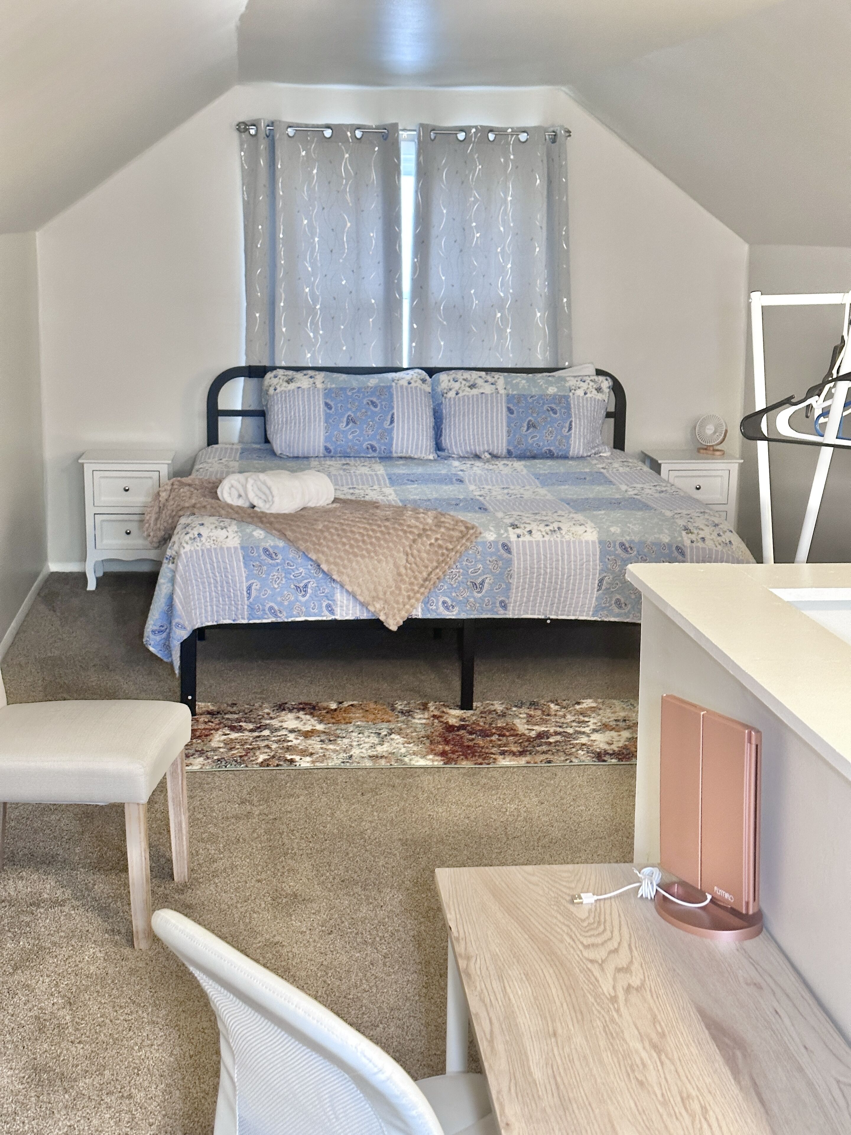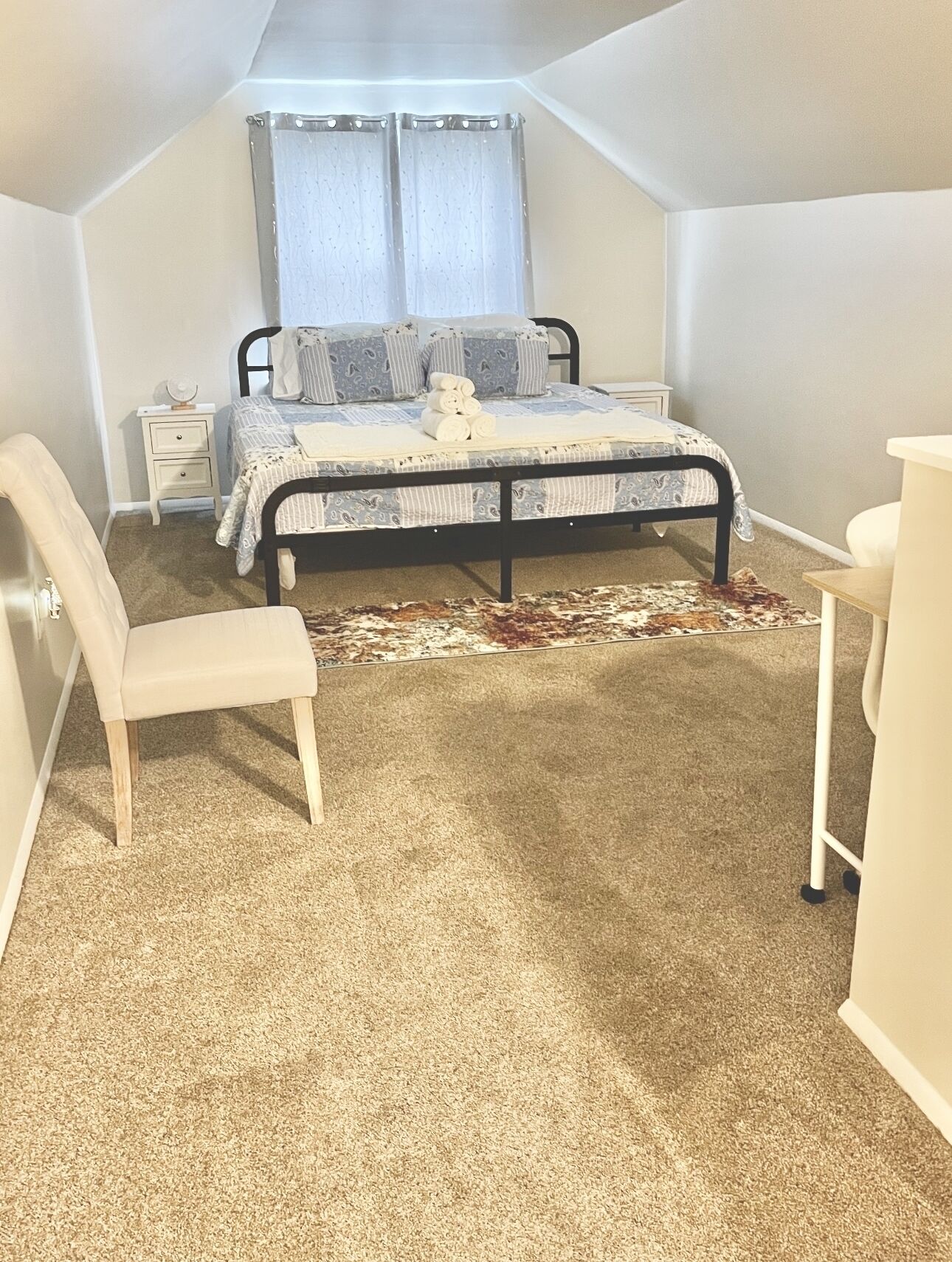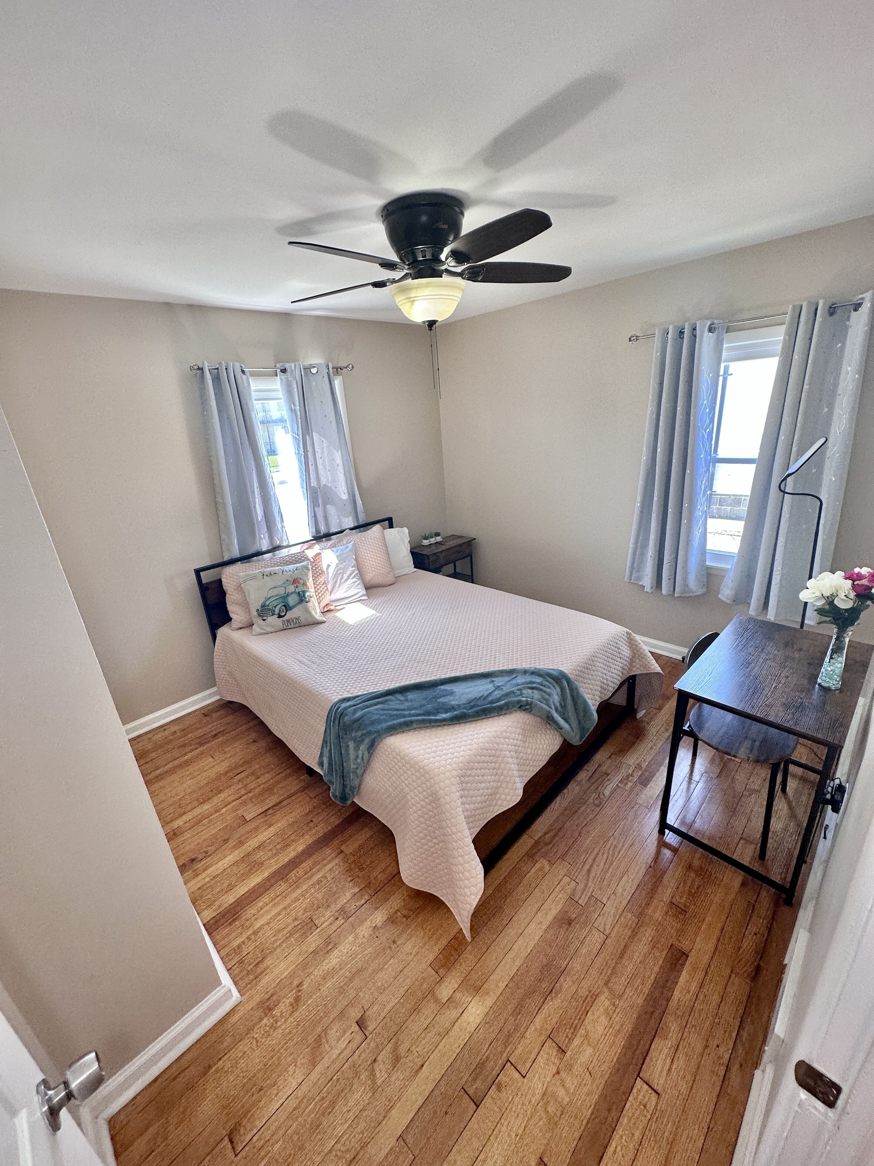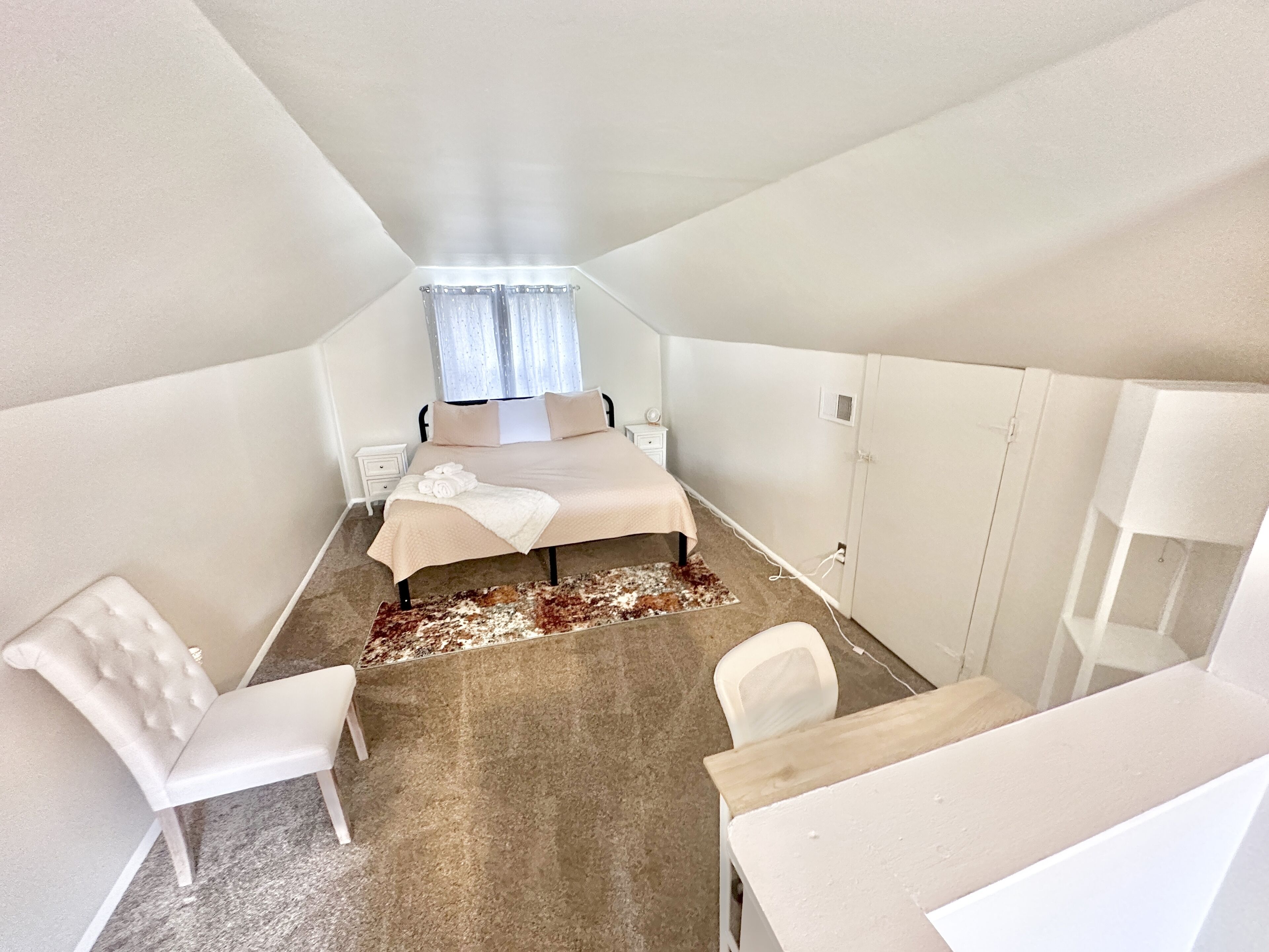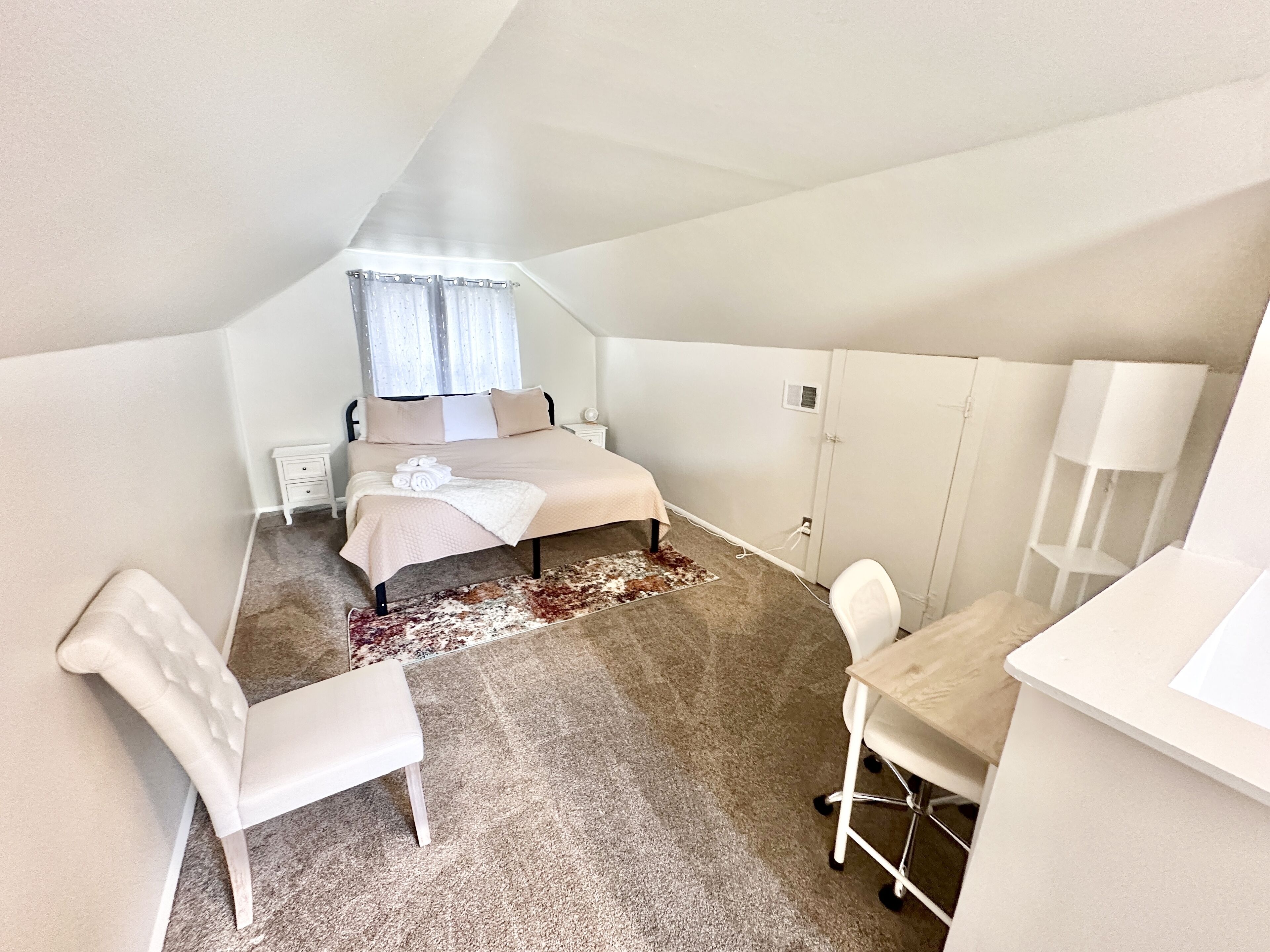 Centrally Located Farmhouse Bungalow - 58” Tv 600 wifi Check out this centrally located budget friendly Roseville Bungalow home that features 4 beds 3 bedrooms 1 bath 1167 ft2 bungalow w 600 mpb wifi and smart HD Ruku 58 in tv!Each bedroom also includes a dedicated office desk and chair. Home has a fully fenced yard for furry travel buddies!This home is also convienently located right by the i94 and i696 intersection where you will be 15 mins from downtown Detroit and Royal Oak and minutes from St Clair shores and Lake St Clair.Note: This property is a budget friendly bungalow centrally located in Roseville by the boarder of st Clair Shores. Because of the central location, one of the crossroads on the property is 12 Mile which is a major street so there will be some traffic or city noise. The property is within walking distance to restaurants, stores, and groceries as well as a quarter mile from i94 and a mile from i696.This is a centrally located 3 bed 1 bath 1000 ft2 bungalow near major cities and freeways downtown recreation areas and lakes!Extra large master bedroom with king bed upstairs, queen bed and twin bedroom on the main floor.*exterior of home is monitored with cameras/doorbells for safety, house has a smart lock for entry on back door with an assigned passcode during stay, house heating and cooling is programmed through a smart thermostat*Living room: features 58” RUKU 4K smart tv , modern sectional and matching ottoman, beverage cart and extra seating chairs as well as games for entertainmentKitchen: features fridge, freezer, range, microwave, tea kettle, k-cup coffee maker, basic kitchen and cooking supplies, corner table and bench with a complementary starter pack of coffee pods, sugar, and tea bags.Master bedroom: features a King size bed located upstairs on the 2nd floor with a dedicated desk, chair, duel night tables, duel clothes racks and hangersGuest bedroom 1: entry level facing main road/front of home features a queen memory foam bed with a dedicated desk, chair, night stand with charging outlets, lamp, closet and hangers.Guest bedroom 2: entry level facing back of home with 2 twin mattresses on a daybed frame (2nd mattress frame rolls out from under bed) with a dedicated desk, chair, lamp, nightstand, closet and hangers (note bedroom 2 is a main entry door/point off the back deck)Bathroom: stand up walk in tiled shower with a built in bench and handrail, towels, washcloths, hand towels, basic bulk shampoo conditioner and shower gel as well as blow dryer are available for usePatio: back patio and deck features outdoor rug, cushioned bench and seats, and industrial stoolsLaundry room: washer and dryer are in the basement for longer stays* All furnishings (including mattresses minus appliances) are newly purchased in 2022*