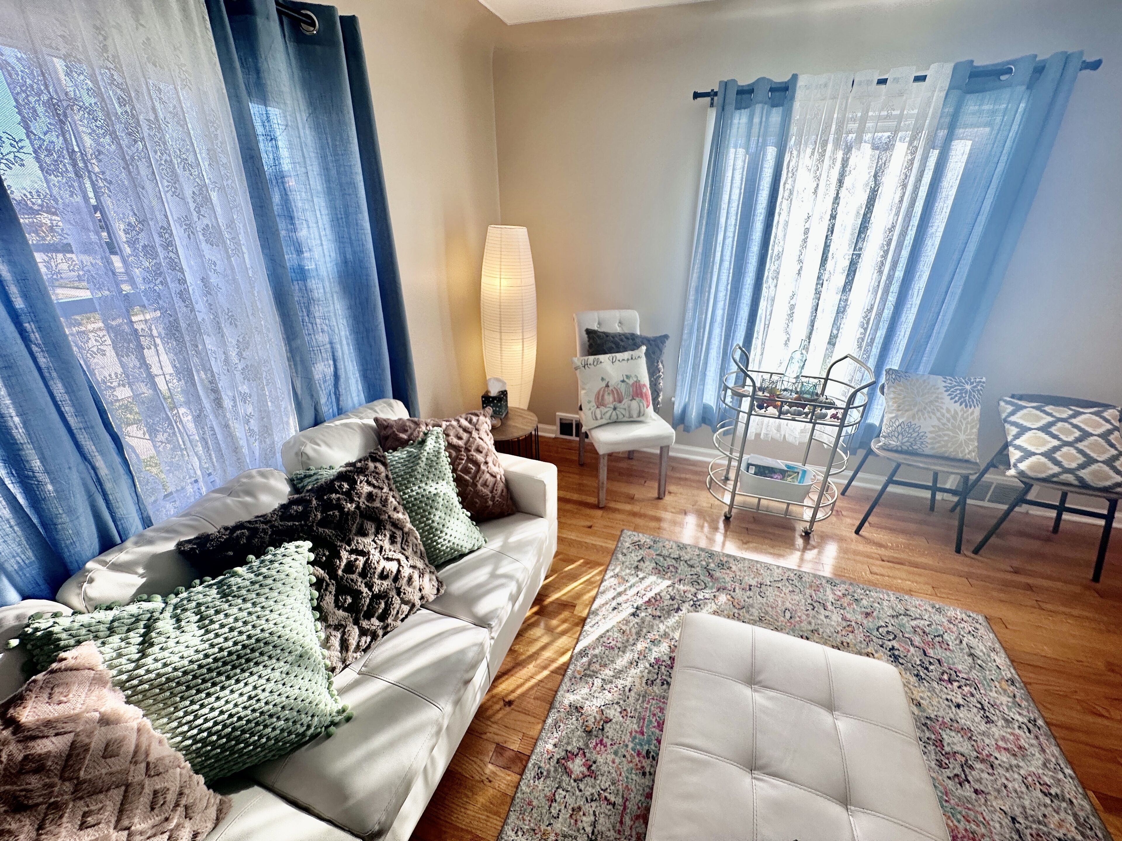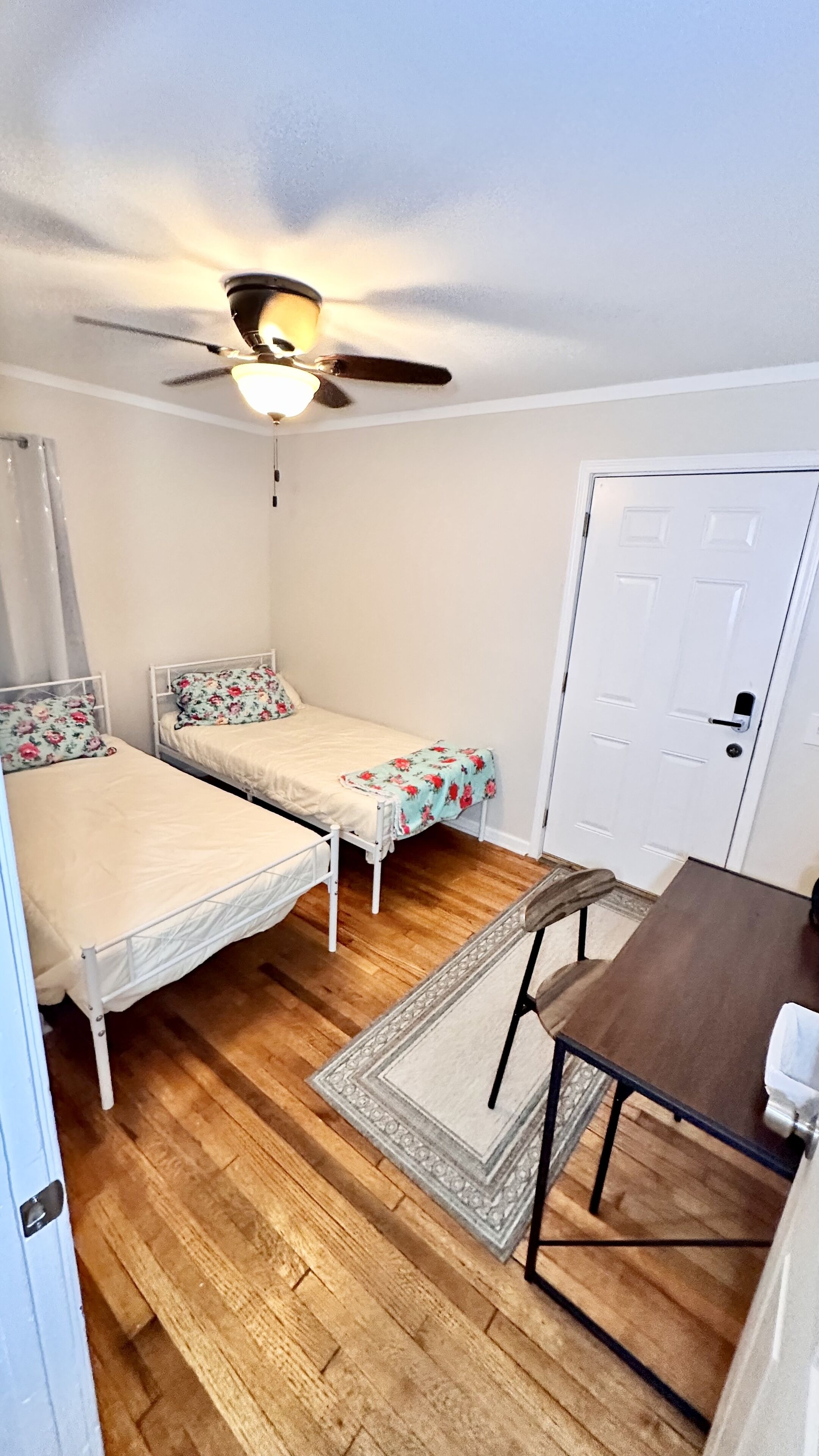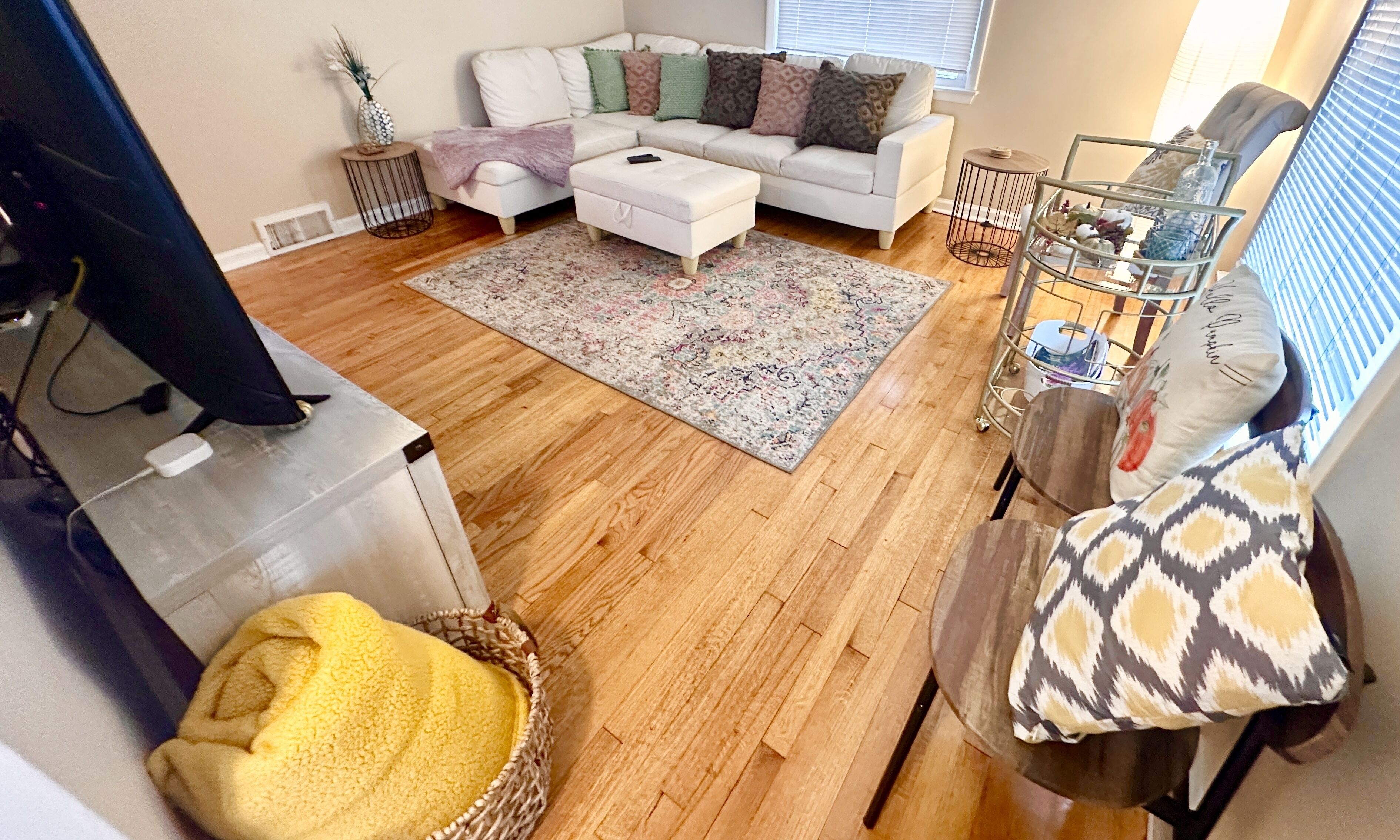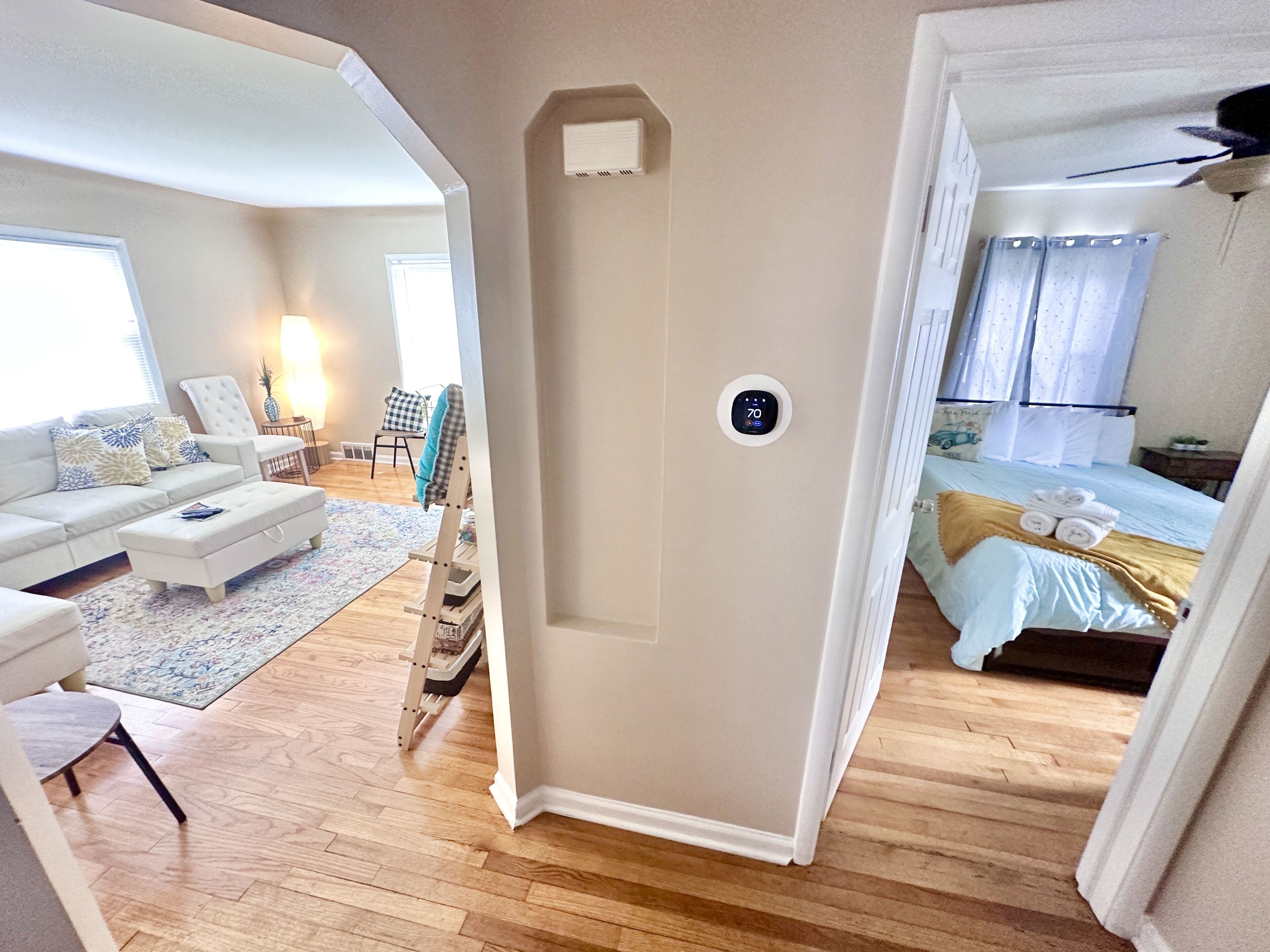 Centrally Located Farmhouse Bungalow - 58” Tv 600 wifi Check out this centrally located budget friendly Roseville Bungalow home that features 4 beds 3 bedrooms 1 bath 1167 ft2 bungalow w 600 mpb wifi and smart HD Ruku 58 in tv!Each bedroom also includes a dedicated office desk and chair. Home has a fully fenced yard for furry travel buddies!This home is also convienently located right by the i94 and i696 intersection where you will be 15 mins from downtown Detroit and Royal Oak and minutes from St Clair shores and Lake St Clair.Note: This property is a budget friendly bungalow centrally located in Roseville by the boarder of st Clair Shores. Because of the central location, one of the crossroads on the property is 12 Mile which is a major street so there will be some traffic or city noise. The property is within walking distance to restaurants, stores, and groceries as well as a quarter mile from i94 and a mile from i696.This is a centrally located 3 bed 1 bath 1000 ft2 bungalow near major cities and freeways downtown recreation areas and lakes!Extra large master bedroom with king bed upstairs, queen bed and twin bedroom on the main floor.*exterior of home is monitored with cameras/doorbells for safety, house has a smart lock for entry on back door with an assigned passcode during stay, house heating and cooling is programmed through a smart thermostat*Living room: features 58” RUKU 4K smart tv , modern sectional and matching ottoman, beverage cart and extra seating chairs as well as games for entertainmentKitchen: features fridge, freezer, range, microwave, tea kettle, k-cup coffee maker, basic kitchen and cooking supplies, corner table and bench with a complementary starter pack of coffee pods, sugar, and tea bags.Master bedroom: features a King size bed located upstairs on the 2nd floor with a dedicated desk, chair, duel night tables, duel clothes racks and hangersGuest bedroom 1: entry level facing main road/front of home features a queen memory foam bed with a dedicated desk, chair, night stand with charging outlets, lamp, closet and hangers.Guest bedroom 2: entry level facing back of home with 2 twin mattresses on a daybed frame (2nd mattress frame rolls out from under bed) with a dedicated desk, chair, lamp, nightstand, closet and hangers (note bedroom 2 is a main entry door/point off the back deck)Bathroom: stand up walk in tiled shower with a built in bench and handrail, towels, washcloths, hand towels, basic bulk shampoo conditioner and shower gel as well as blow dryer are available for usePatio: back patio and deck features outdoor rug, cushioned bench and seats, and industrial stoolsLaundry room: washer and dryer are in the basement for longer stays* All furnishings (including mattresses minus appliances) are newly purchased in 2022*