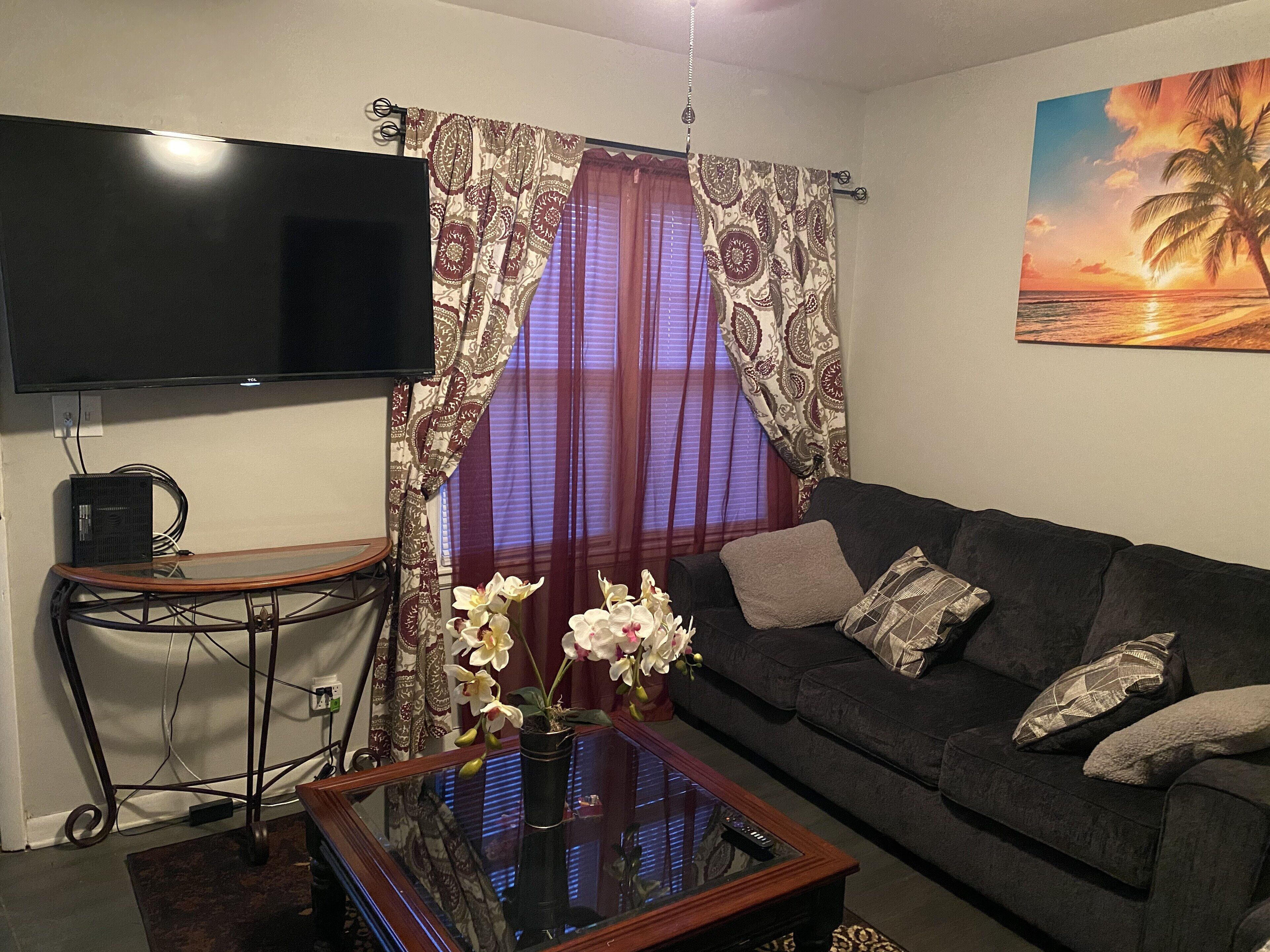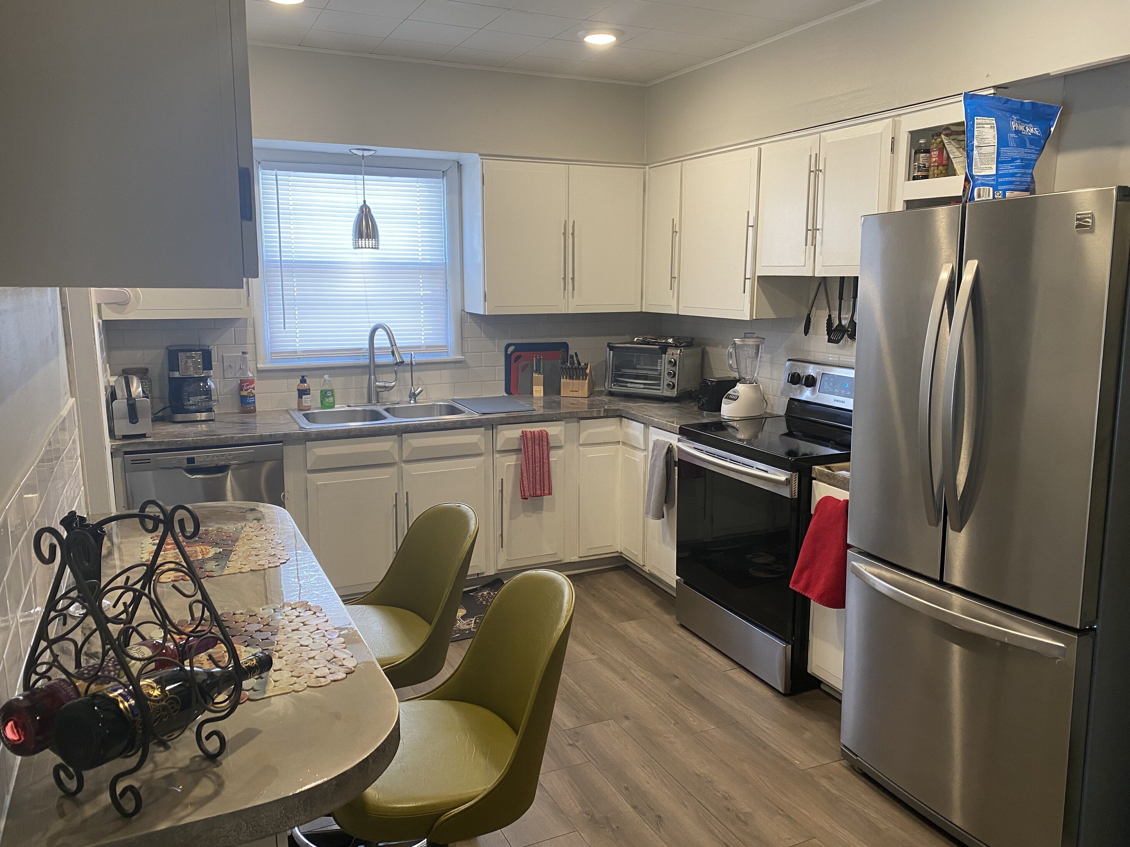 Great location - 4 bedroom in quiet area This beautiful home located in a safe and quiet community offers classic charm with modern amenities, with restaurants and convenience stores nearby. The master bedroom has a king bed, fireplace, and love seat. The other 3 bedrooms have queen beds and walk in closets. It has a kitchen with a modern stove, refrigerator, and dishwasher. A laundry room with washer, dryer, and iron. It offers central air conditioning and heating. An air purifier system, a water purifying system for the whole house