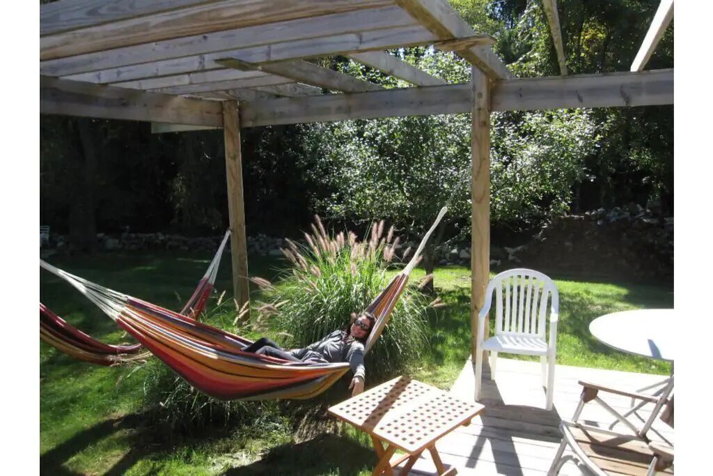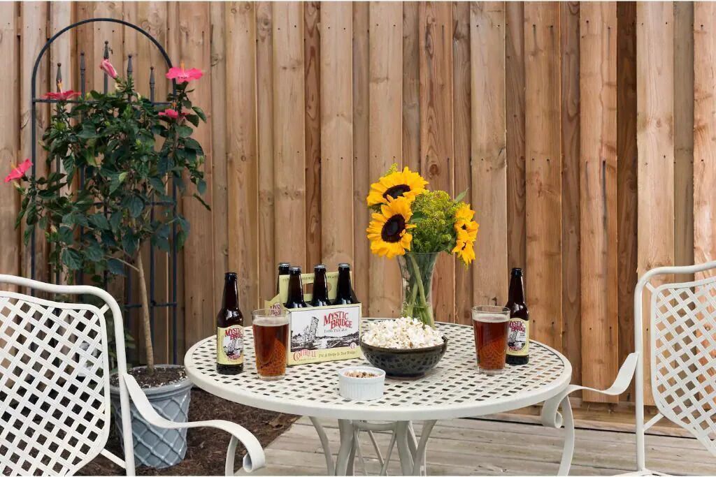 Cozy Pet-Friendly Cottage near Mystic, Connecticut Experience the peace and natural beauty of the Lantern Hill Valley, just 6 miles from Old Mystic, down a lovely country road. The Cottage features a perfect two-person bedroom, a private bathroom, and a rear fenced-in garden courtyard. The Cottage and its lovely courtyard garden are exclusively yours. It's separate from the main house on the property.This boutique property with 6+ woodland acres will enchant with its lush gardens and big open lawn with a mini fruit orchard. We're nestled on a charming country road leading to Old Mystic, passing farms, ponds, and the forested valley of Lantern Hill. Nearby ponds are perfect for fishing, canoeing, and swimming, while Lantern Hill offers stunning views of the Mystic River and Fishers Island Sound. Hike our woodland trails, including the one to the top of Lantern Hill.Outdoor amenities that you can enjoy include a covered outdoor lounge, hammock, firepit, and propane grill. We're proud to be 'Connecticut Green Lodging' certified, prioritizing sustainability and the beauty of nature in all we do - from gourmet breakfasts made with local ingredients to eco-friendly bath amenities and electric vehicle charging stations.The Cottage is well-equipped whether you decide to stay 2 days or 2 weeks. It includes a queen-size bed with Tuft & Needle mattress, deluxe linens, plush towels and bath robes, super fast wifi, microwave, a medium-sized refrigerator, hairdryer, iron, electronic safe, heat and air conditioning, and EO brand organic bath products. A daily cooked-to-order breakfast with organic options (special diets welcome) is included in the price of your stay. Breakfast is served from 8 AM-10 AM and can be enjoyed in the dining room or delivered to your Cottage. For pet owners: A pet fee applies, which is additional to the room rate. We invite you to bring up to two well-behaved, non-destructive pets. We expect that your pet(s) will not do any damage to the property. If your pet creates any damage inside or outside of the Cottage, you will be responsible for any incurred repair/replacement costs. Pets must be controlled by you at all times, and not create excessive noise, either from barking or whining. Guests are expected to bag their pet's waste.