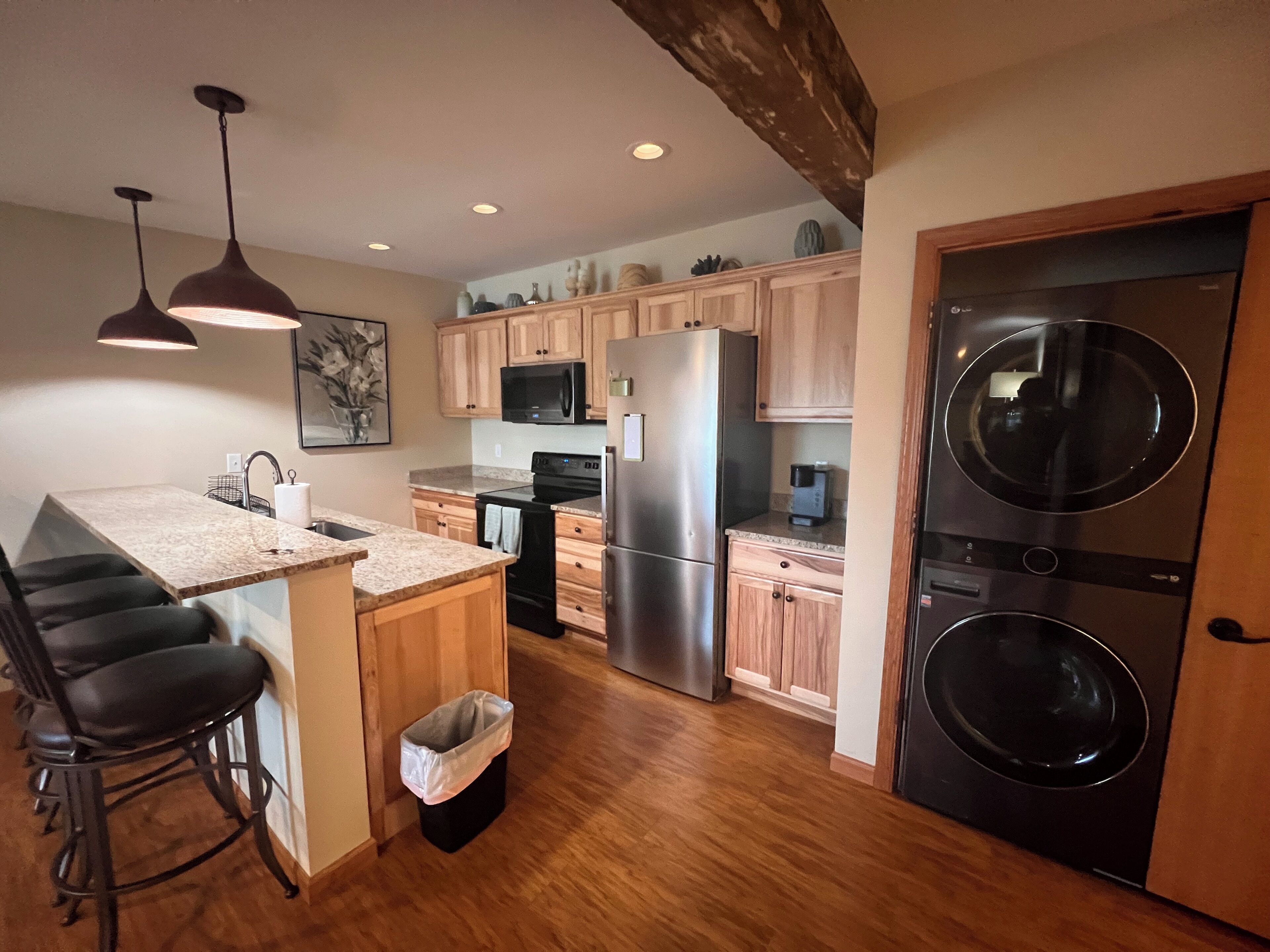 Beautiful apartment overlooking Lake Wallace. Bring your boat! Your home away from home in West Bend with 1 bedroom overlooking Wallace Lake. Enjoy your morning coffee or evening wine on your private patio. This adorable apartment is the perfect retreat for guests seeking a soothing getaway. The bedroom features king bed, ensuring a restful night's sleep. You'll find all the essentials you need, including AC, a hair dryer, WiFi, heating, and a washing machine. The bathroom is equipped with a hair dryer as well. Whether you're exploring the city or simply relaxing indoors, this charming apartment provides everything you need for a delightful stay. Theres a wonderful restaurant right downstairs, and you are welcome to park your boat at our pier. We're happy to assist with any questions while you stay at our apartment.