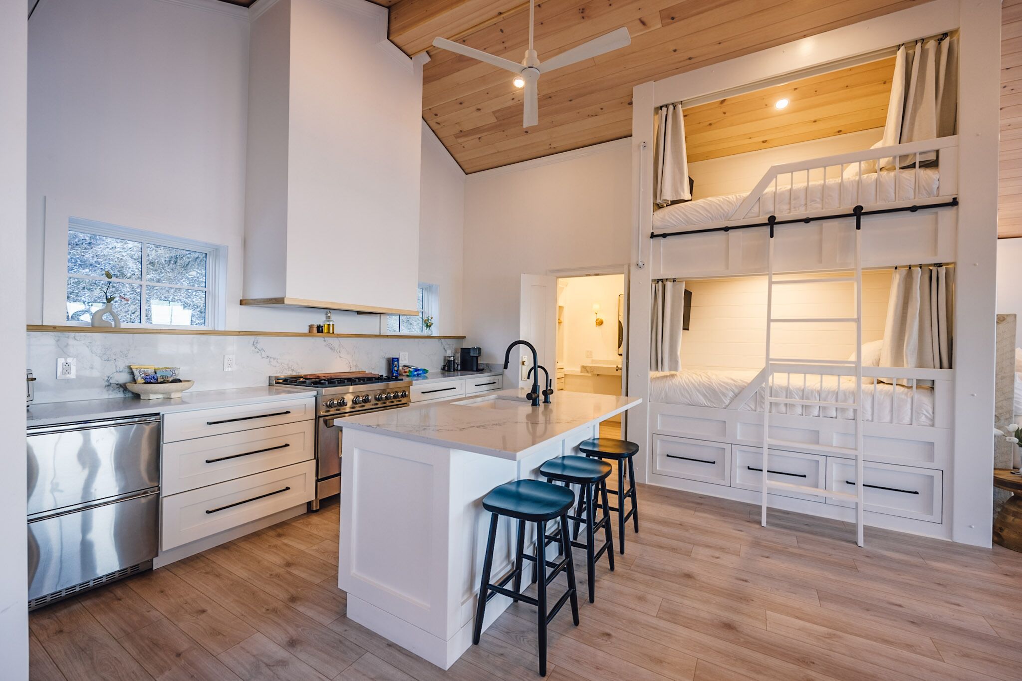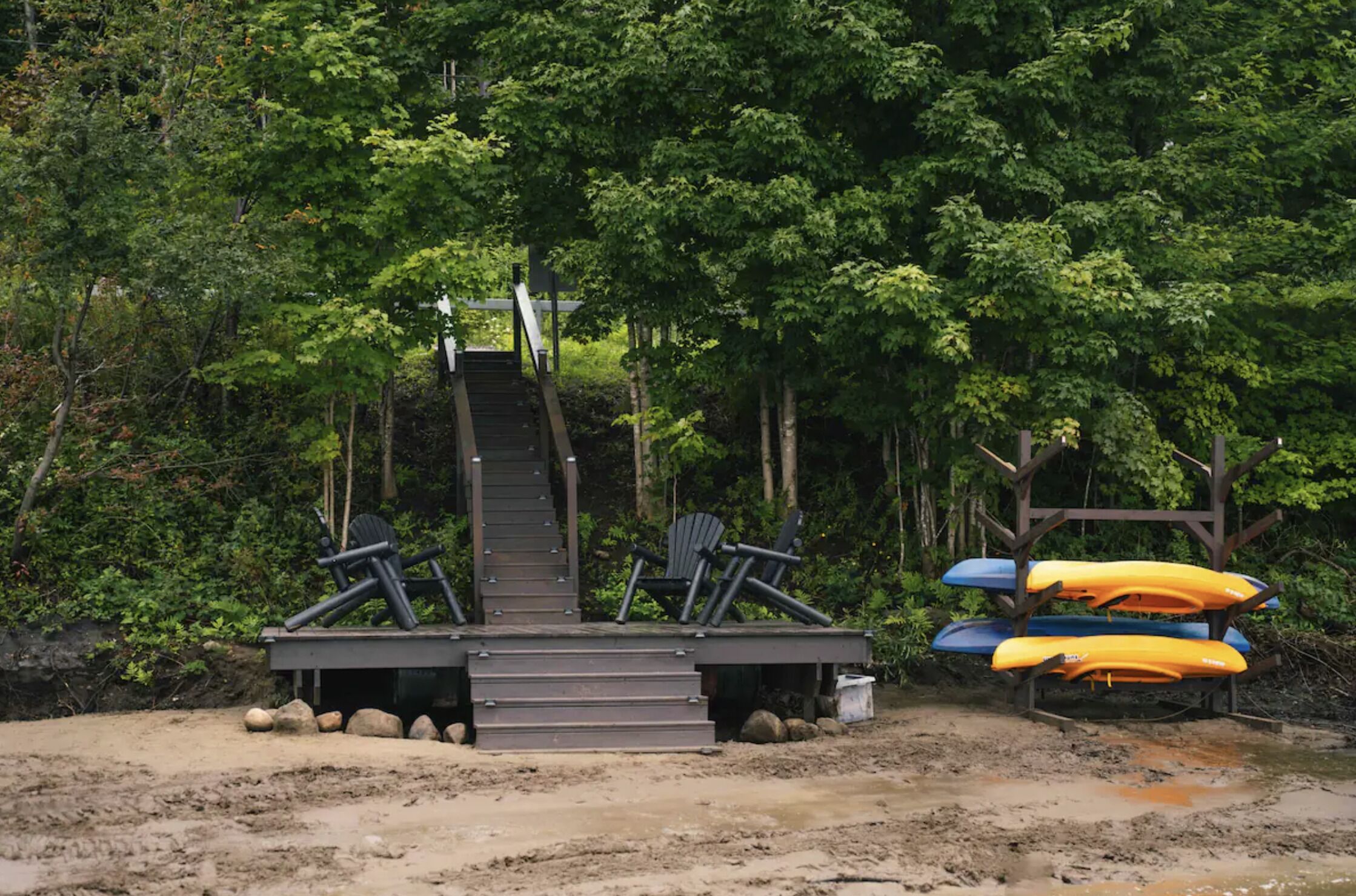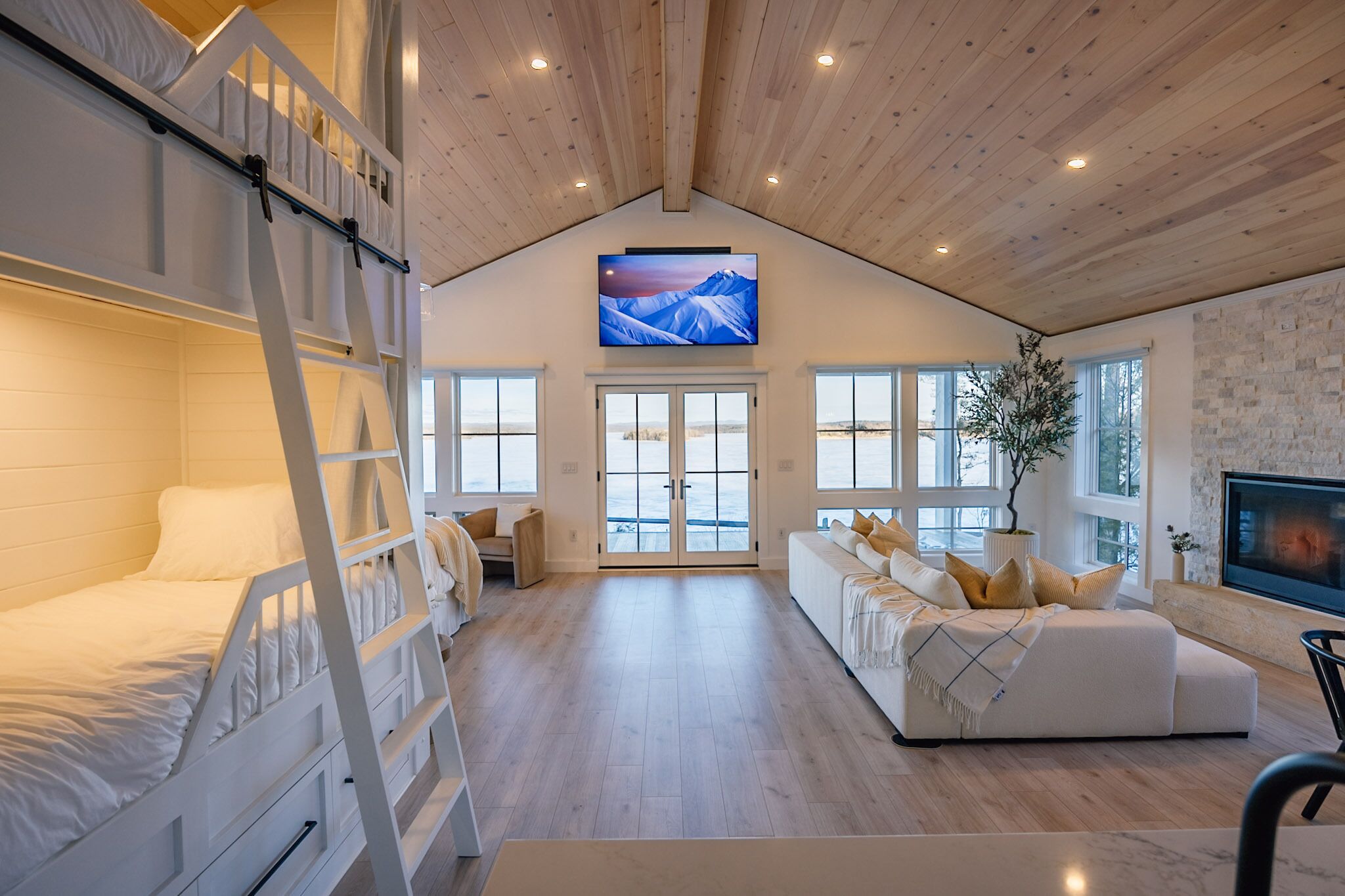 ADIRONDACK LUXURY LAKEFRONT VILLA WITH HOTUB (NEW BUILD) This luxurious property features floor to ceiling Marvin windows providing stunning lake views. Brand new, professionally decorated home is ideal for entertaining, long term stays or simply enjoying a romantic stay.The all-white modern interior boasts high-end appliances and fixtures making your stay a true luxury escape. Master bed with high end ‘TheCompanyStore’ bedding to give you the best night sleep. Two Custom XL bunk beds each boasting its own TV. The laundry room holds washer/dryer, built-in dresser storage and ‘California Closets’ jewelry organizer. White sofas and indoor fireplace add to the beauty of the Villa.Gourmet kitchen with 6 burner Zline gas stove, convection oven, built in fridge/freezer drawers and an Insta Hot water faucet for tea lovers. Nesspresso and vertuo cups are also provided! The kitchen is stocked with everything you need and more!The Spa bathroom shines with white tiles, floating custom vanity, smart auto flush toilet, gorgeous large walk in shower and gilded mirror.This amazing pet-friendly and kid-friendly property is located on a hill with its own private driveway. Private, well-lit stairs lead you to the spectacular new Lake Villa. Relax on the beautiful front deck with built-in hot tub and outdoor propane fireplace overlooking the glorious lake and mountain scenery!