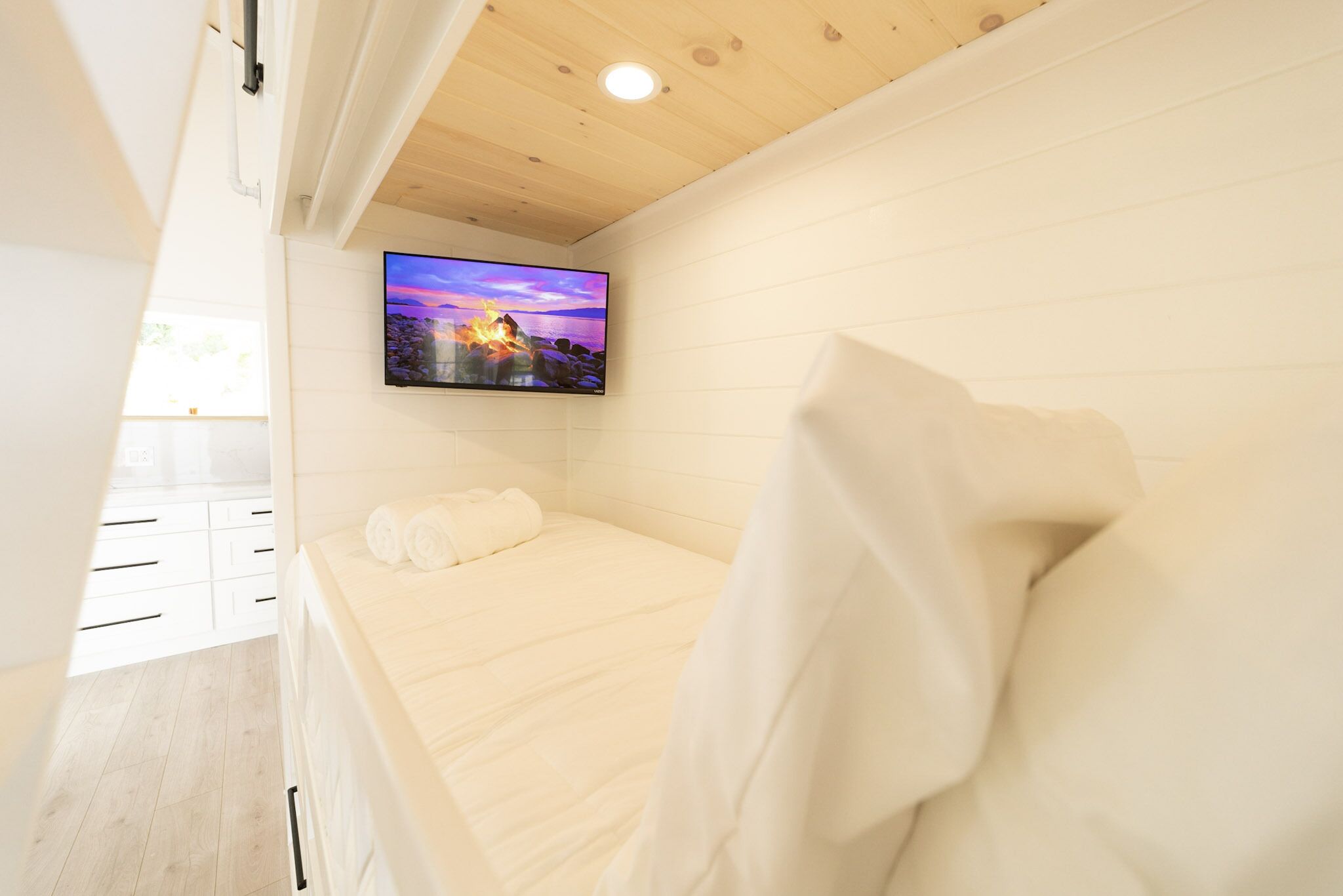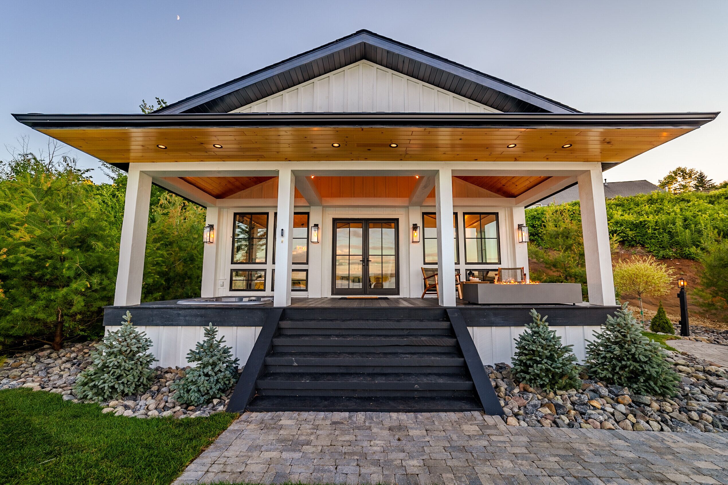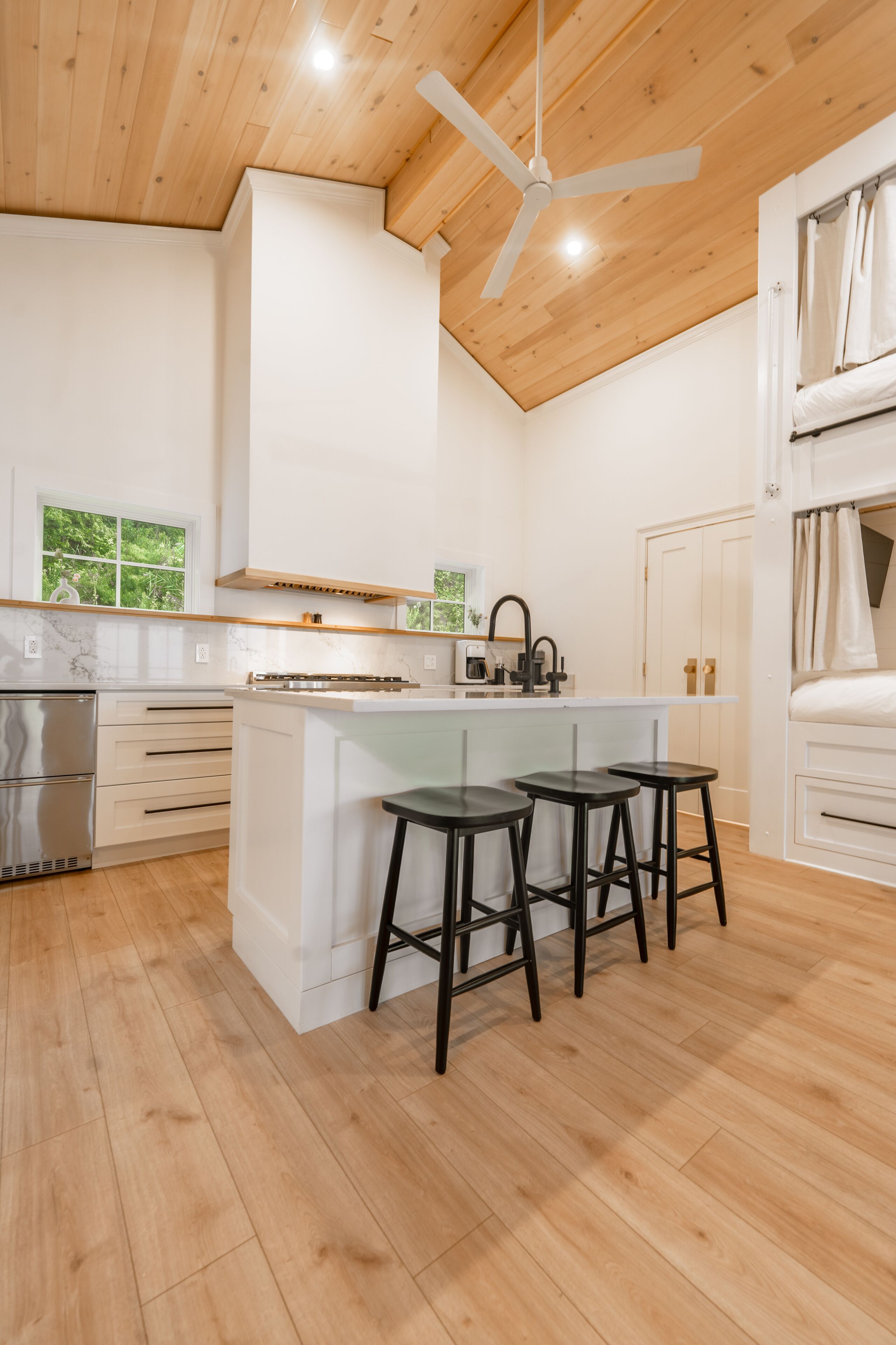 ADIRONDACK LUXURY LAKEFRONT VILLA WITH HOTUB (NEW BUILD) This luxurious property features floor to ceiling Marvin windows providing stunning lake views. Brand new, professionally decorated home is ideal for entertaining, long term stays or simply enjoying a romantic stay.The all-white modern interior boasts high-end appliances and fixtures making your stay a true luxury escape. Master bed with high end ‘TheCompanyStore’ bedding to give you the best night sleep. Two Custom XL bunk beds each boasting its own TV. The laundry room holds washer/dryer, built-in dresser storage and ‘California Closets’ jewelry organizer. White sofas and indoor fireplace add to the beauty of the Villa.Gourmet kitchen with 6 burner Zline gas stove, convection oven, built in fridge/freezer drawers and an Insta Hot water faucet for tea lovers. Nesspresso and vertuo cups are also provided! The kitchen is stocked with everything you need and more!The Spa bathroom shines with white tiles, floating custom vanity, smart auto flush toilet, gorgeous large walk in shower and gilded mirror.This amazing pet-friendly and kid-friendly property is located on a hill with its own private driveway. Private, well-lit stairs lead you to the spectacular new Lake Villa. Relax on the beautiful front deck with built-in hot tub and outdoor propane fireplace overlooking the glorious lake and mountain scenery!