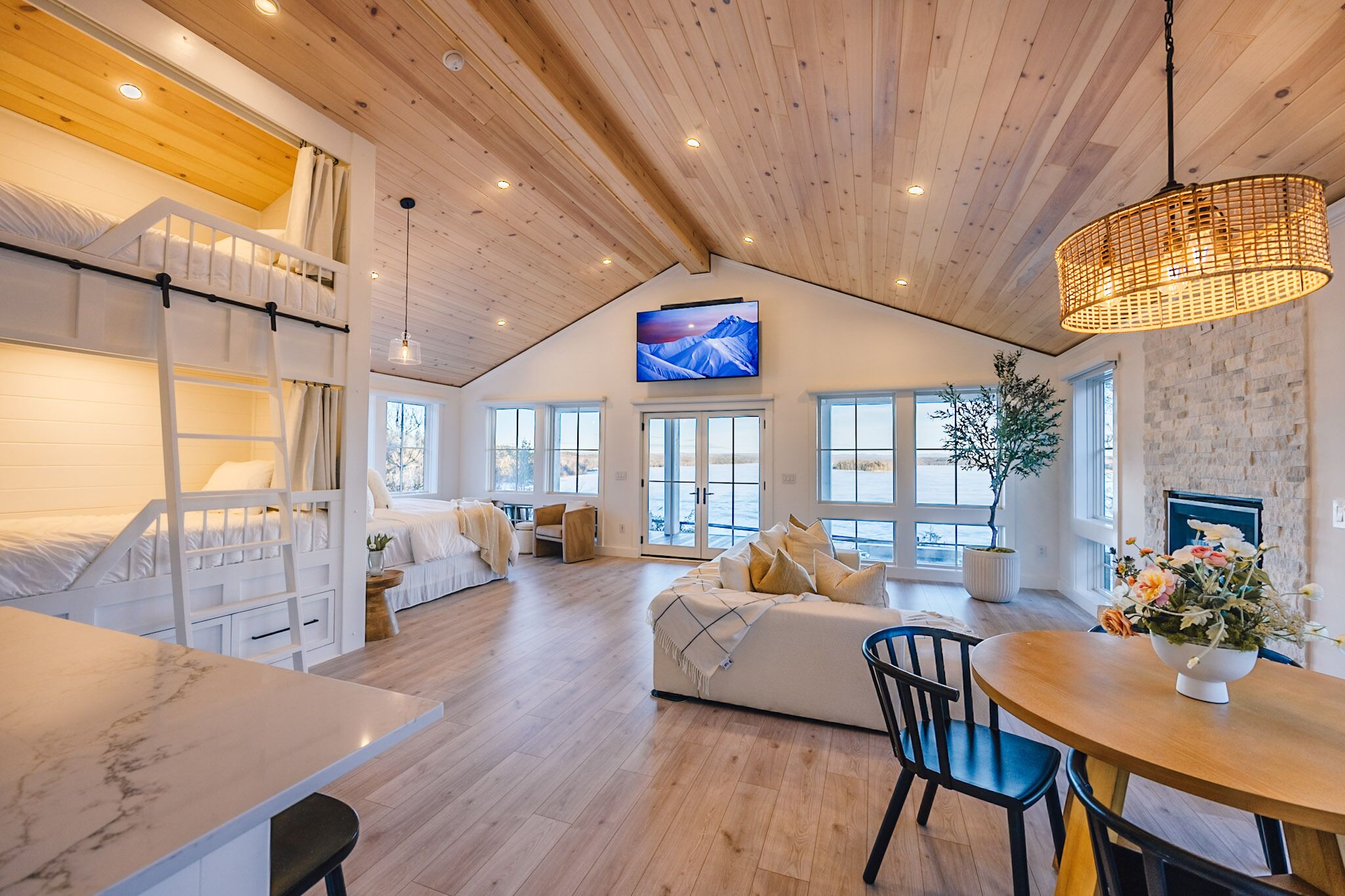 ADIRONDACK LUXURY LAKEFRONT VILLA WITH HOTUB (NEW BUILD) This luxurious property features floor to ceiling Marvin windows providing stunning lake views. Brand new, professionally decorated home is ideal for entertaining, long term stays or simply enjoying a romantic stay.The all-white modern interior boasts high-end appliances and fixtures making your stay a true luxury escape. Master bed with hi...