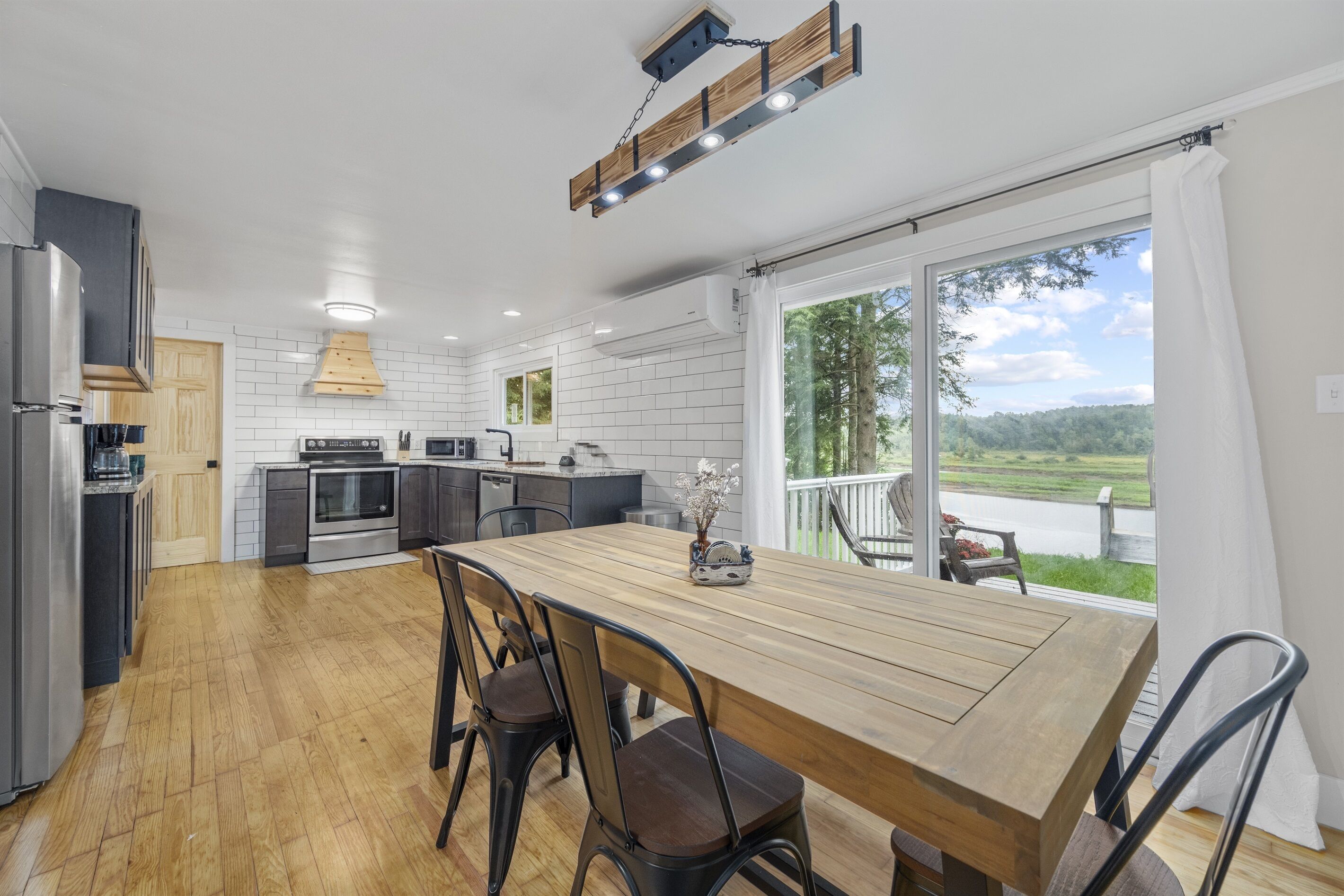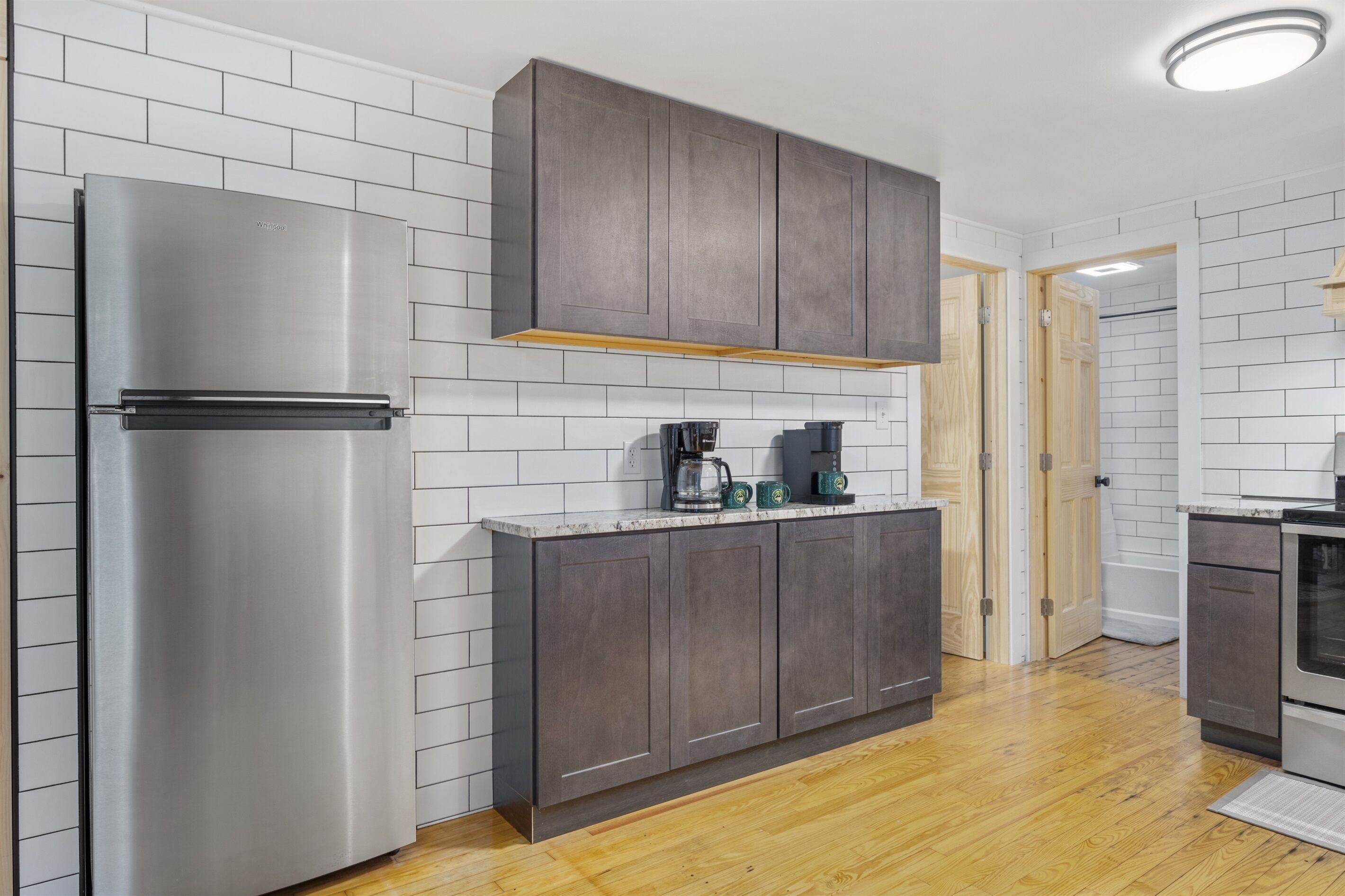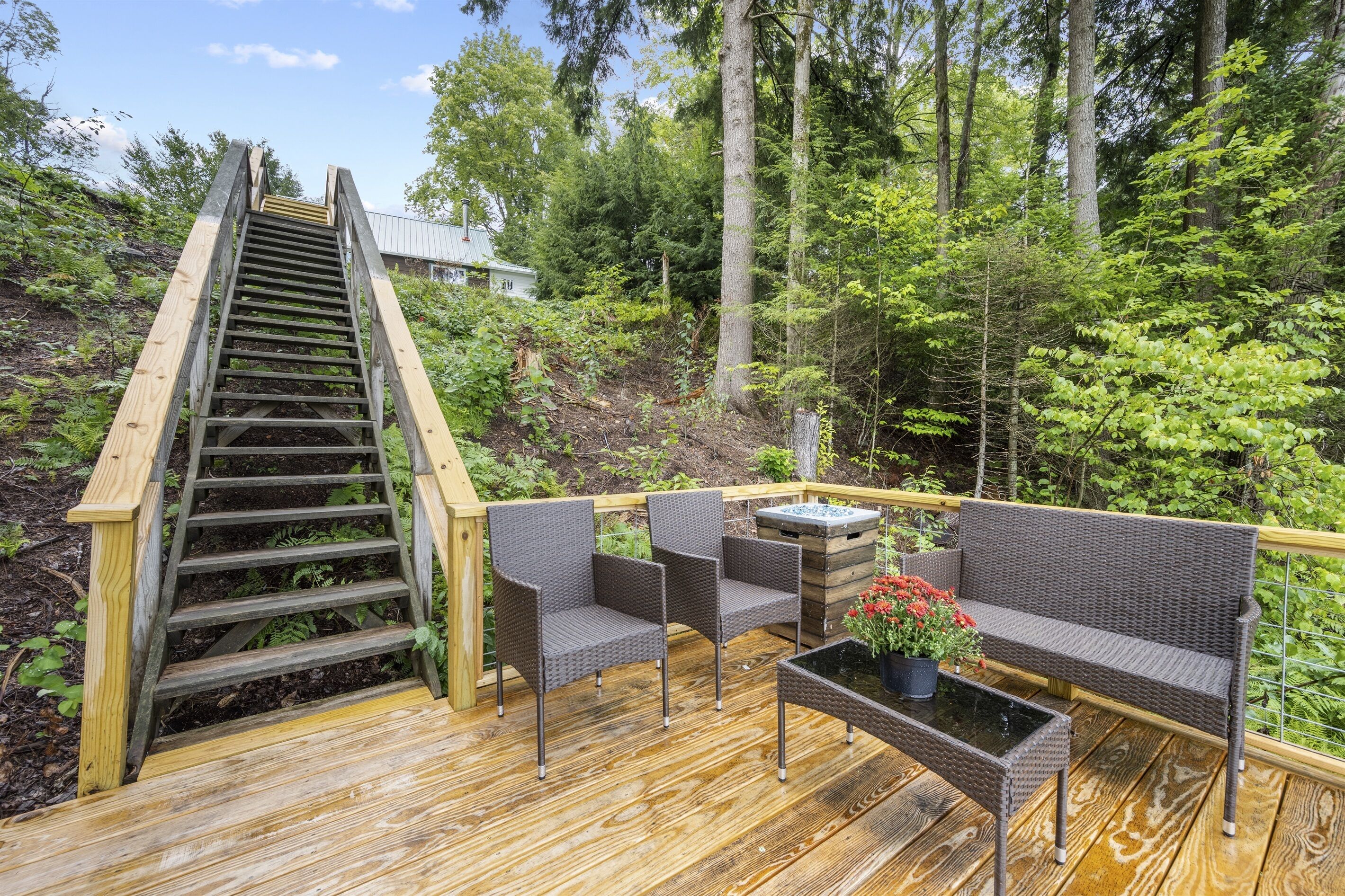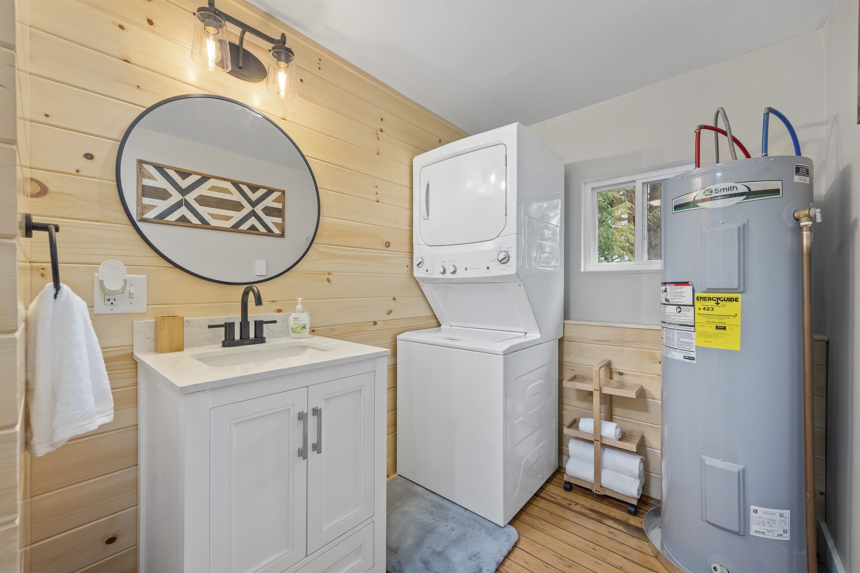 Waterfront Modern-Adirondack Cabin Take in the beautiful Adirondack Park waterfront views while enjoying modern luxuries at this updated lakefront home. Enjoy 100' of private water frontage and a beautiful deck that overlooks the most serene part of Hinckley where boating traffic is minimal and wildlife spotting is optimal. In addition, take advantage of the easy access to the main body of water just feet away. Enjoy a lakefront stay in what we like to call a "Modern-Adirondack" setting. Our sliding glass door offers a spectacular view of the water right from the dining room table. There are two deck spaces: one off the dining area, and the other overlooking the water. If you're coming for the water, take out a complimentary kayak, or try our canoe. If relaxing is your vibe, take in the view year-round and start a fire in the our fire pit. More of an adventure seeker? This part of the Adirondack Park is steps (or pedals) away from both hiking and mountain biking trails. We didn't forget about our winter lovers either! Enjoy local snowmobile trails (which are some of the best in Upstate New York), hit a snowshoe loop or go cross country skiing all within minutes of our cabin. Cozy and comfortable with luxury updates in the kitchen and bathroom, this cabin will give you and your guests the perfect time away from it all. With three (3) bedrooms the cabin accommodates six (6) overnight guests and has plenty of outdoor space to enjoy the water with family and friends. Bedroom #1 is downstairs with a queen bed. Bedroom #2 is upstairs with a full bed Bedroom #3 is upstairs with two twin beds. Looking for an extended stay or working remotely? We have got you covered with both a washer and dryer for laundry. Parking is limited to four (4) vehicles.