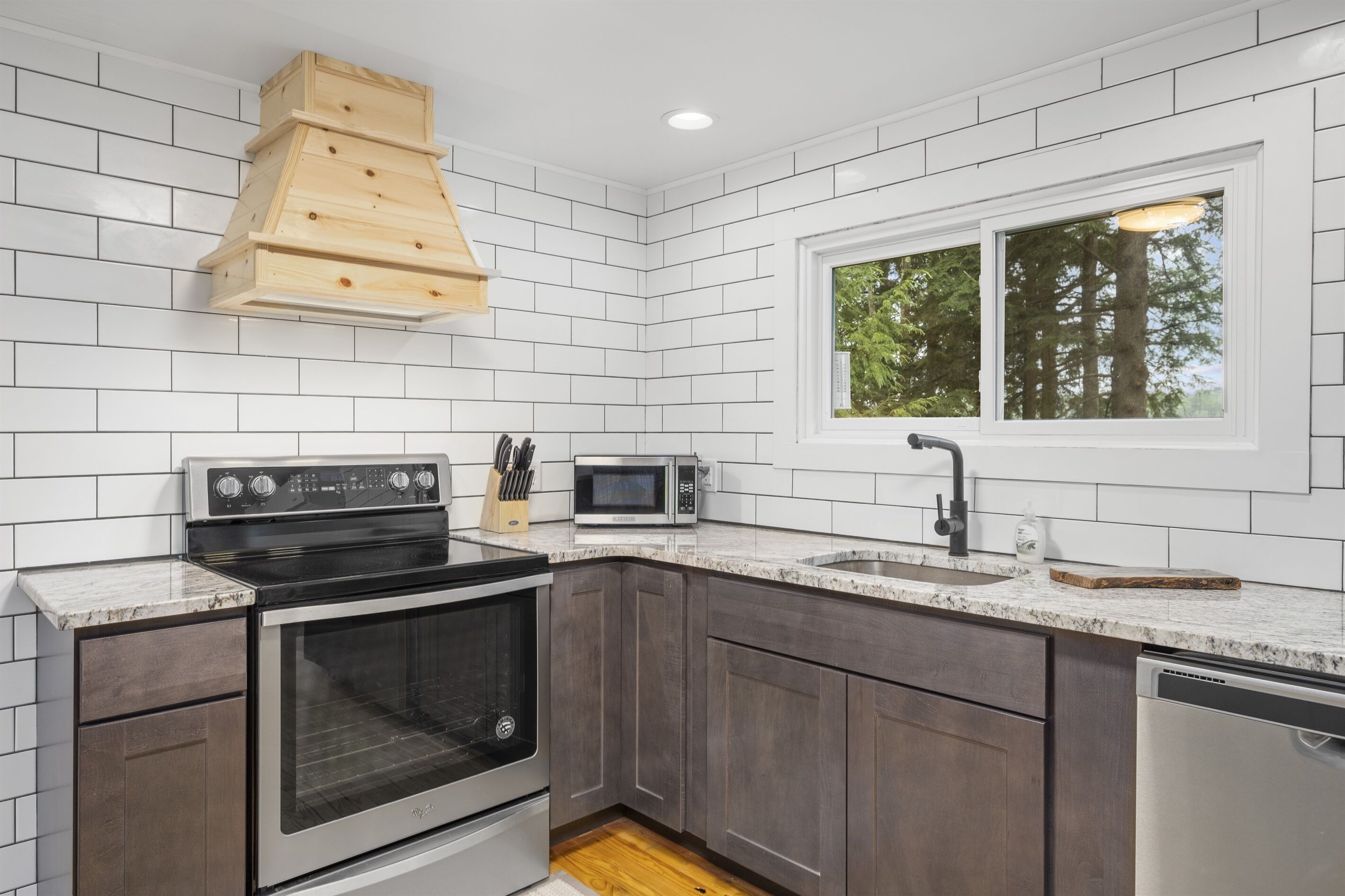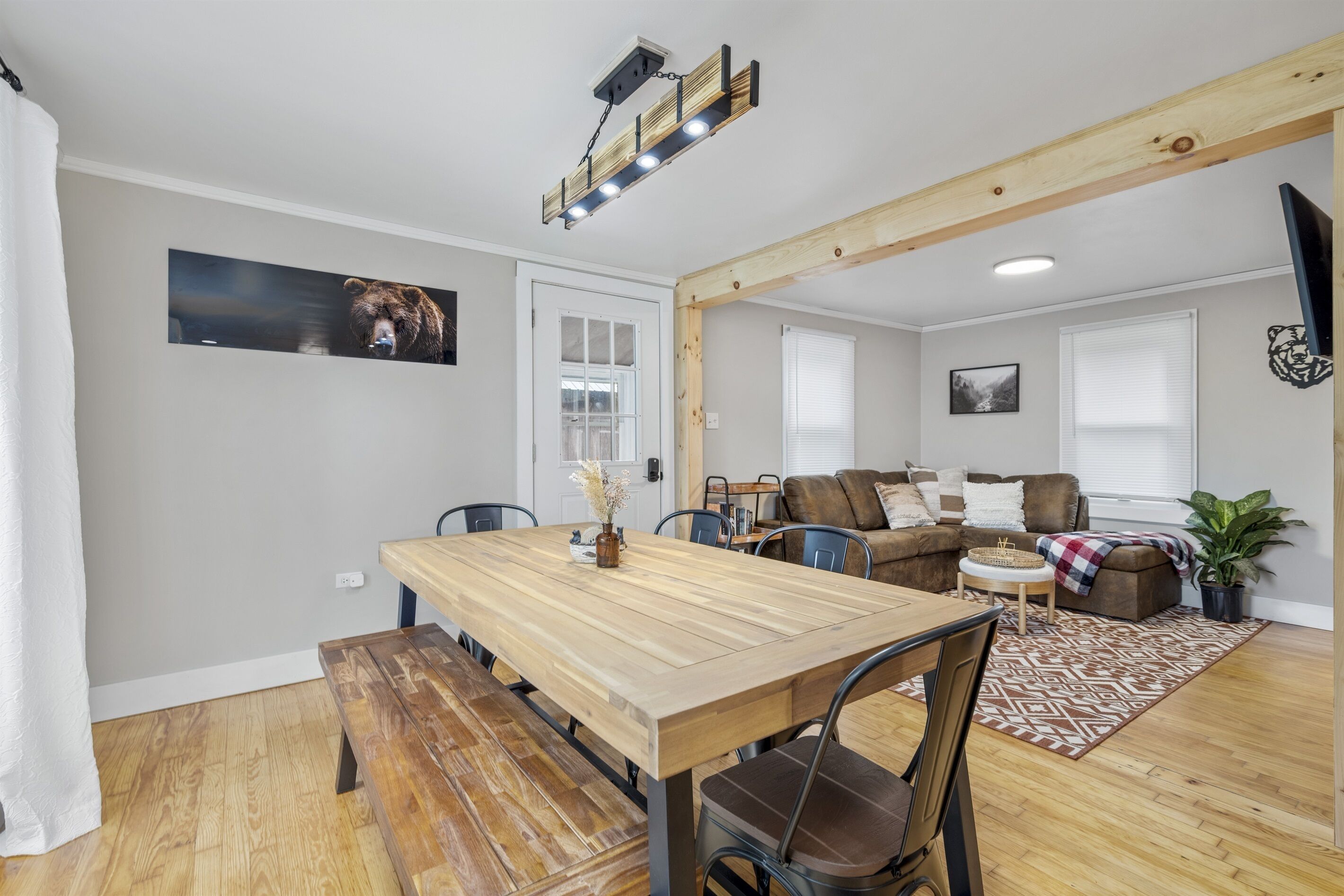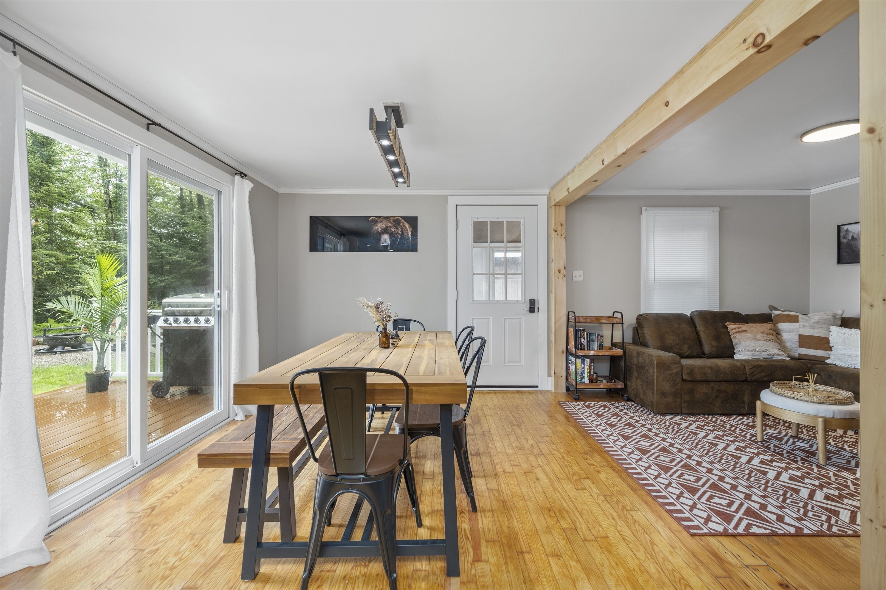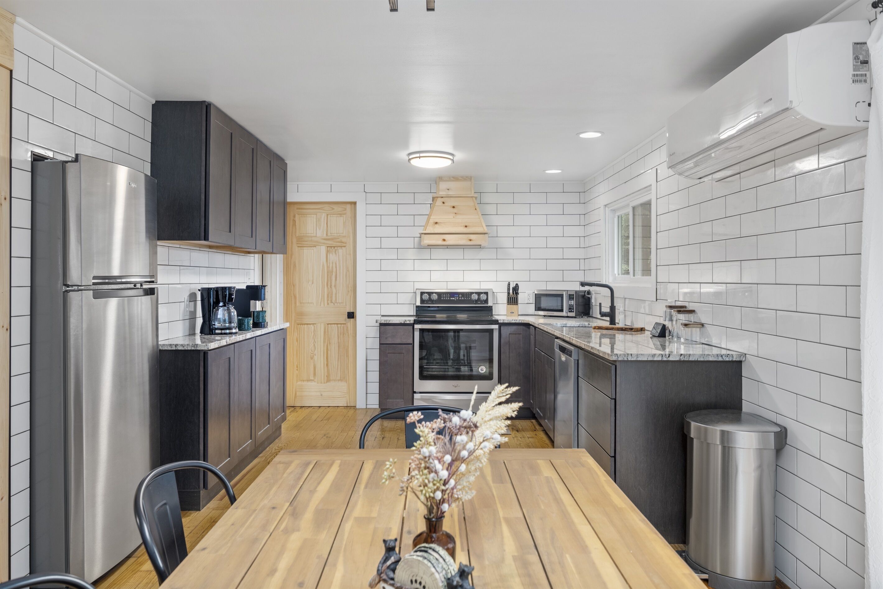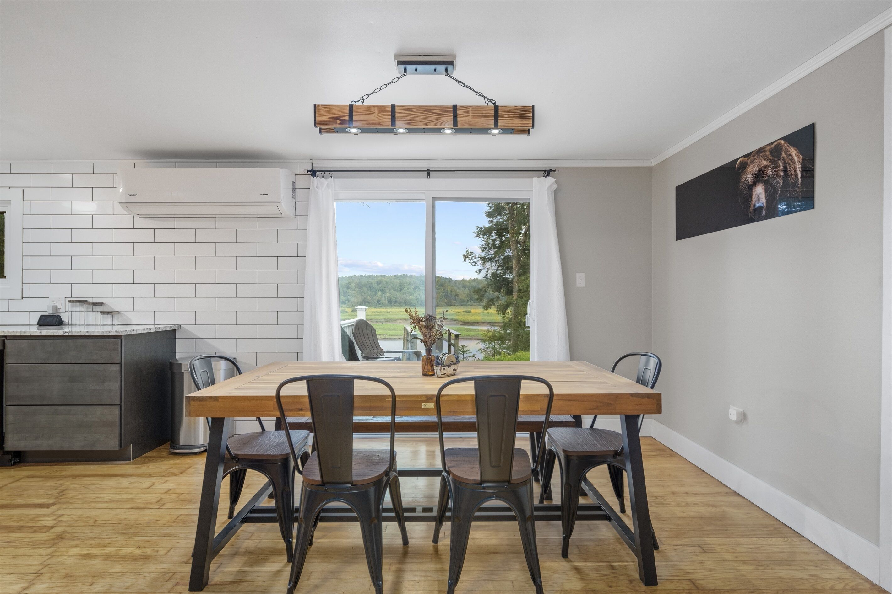 Waterfront Modern-Adirondack Cabin Take in the beautiful Adirondack Park waterfront views while enjoying modern luxuries at this updated lakefront home. Enjoy 100' of private water frontage and a beautiful deck that overlooks the most serene part of Hinckley where boating traffic is minimal and wildlife spotting is optimal. In addition, take advantage of the easy access to the main body of water just feet away. Enjoy a lakefront stay in what we like to call a "Modern-Adirondack" setting. Our sliding glass door offers a spectacular view of the water right from the dining room table. There are two deck spaces: one off the dining area, and the other overlooking the water. If you're coming for the water, take out a complimentary kayak, or try our canoe. If relaxing is your vibe, take in the view year-round and start a fire in the our fire pit. More of an adventure seeker? This part of the Adirondack Park is steps (or pedals) away from both hiking and mountain biking trails. We didn't forget about our winter lovers either! Enjoy local snowmobile trails (which are some of the best in Upstate New York), hit a snowshoe loop or go cross country skiing all within minutes of our cabin. Cozy and comfortable with luxury updates in the kitchen and bathroom, this cabin will give you and your guests the perfect time away from it all. With three (3) bedrooms the cabin accommodates six (6) overnight guests and has plenty of outdoor space to enjoy the water with family and friends. Bedroom #1 is downstairs with a queen bed. Bedroom #2 is upstairs with a full bed Bedroom #3 is upstairs with two twin beds. Looking for an extended stay or working remotely? We have got you covered with both a washer and dryer for laundry. Parking is limited to four (4) vehicles.