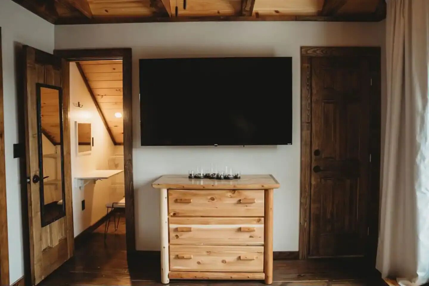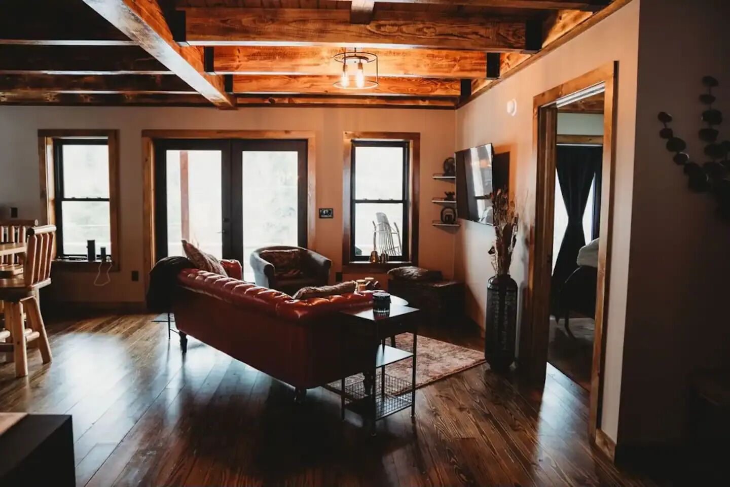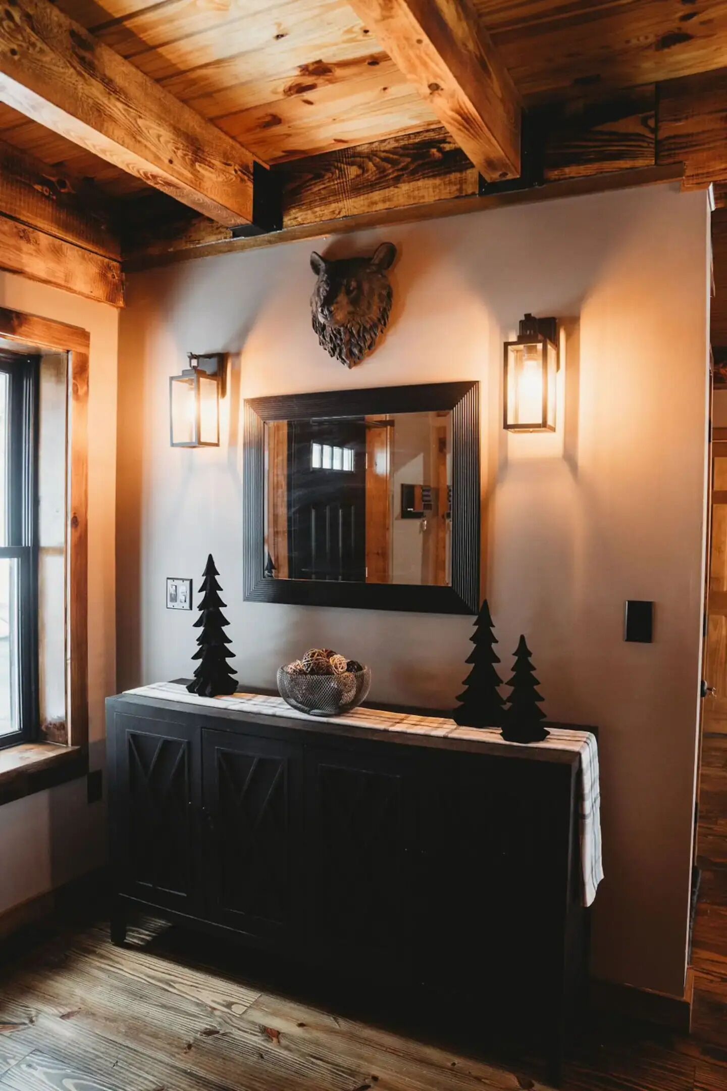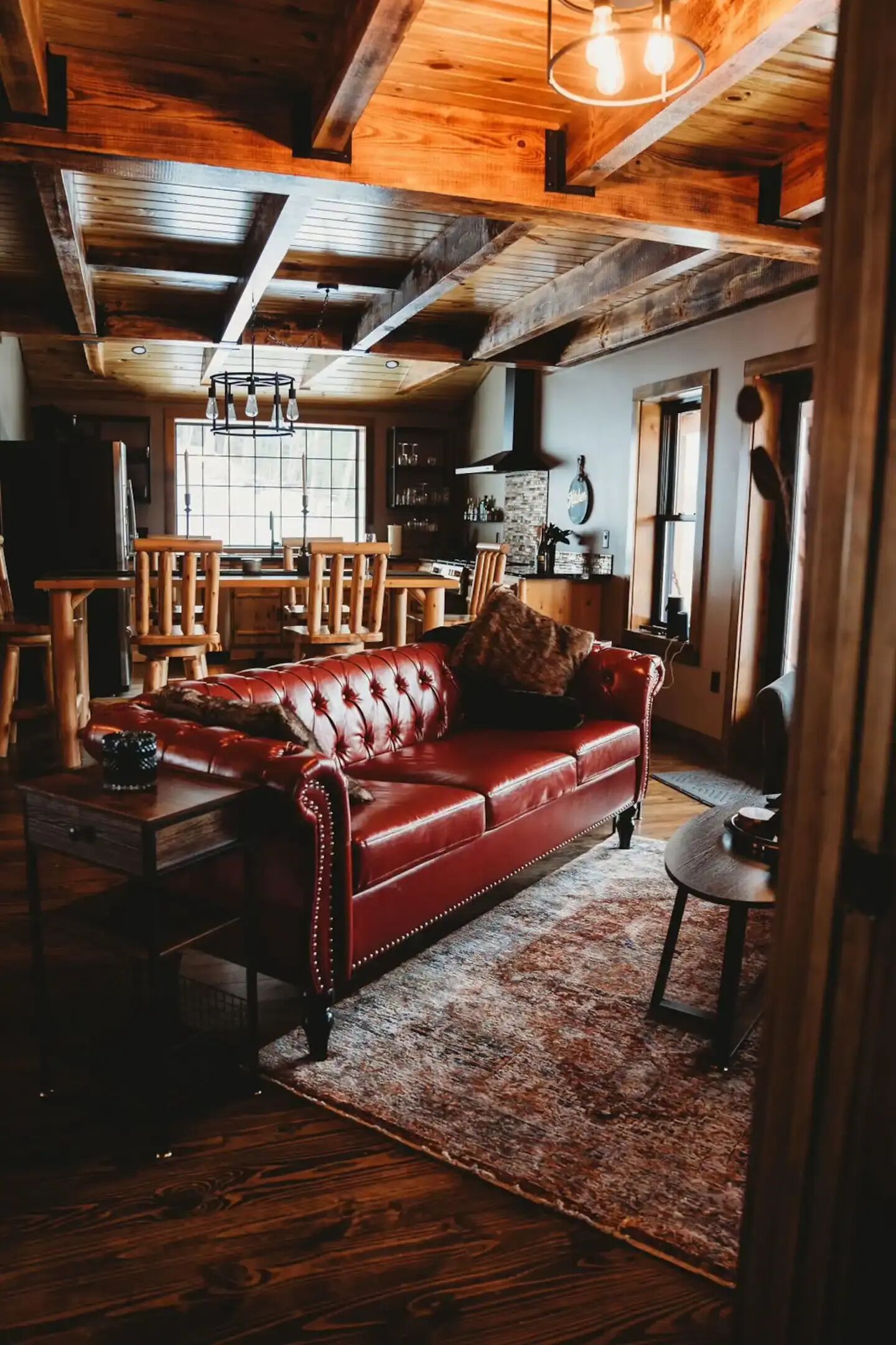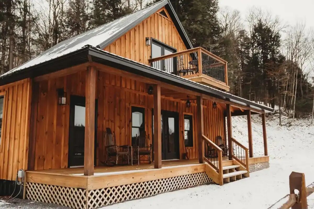 Luxury cabin on private drive Start your next adventure and step into The Den on Bear View Drive, our picturesque 3-bedroom cabin in the rolling landscape of the Adirondacks, where you’ll be greeted with incredible views. Our carefully designed cabin is the quintessential outdoor getaway, central to many of the adventures found in the Adirondacks. Perfect for family fun, steps from Hinkley Lake, short commute to two different Ski resorts, located on the C4B snowmobile Trail, and other activities for up to 7 guests!The spaceFirst floor: is an open concept so you can enjoy the rough cut exposed lumber beams! Beautiful Full kitchen with all modern amenities! Stylish den area to enjoy lounging around watching your favorite programs. Nice size bedroom with a queen bed! Full bathroom and stand up shower.Second floor: very nice size loft area with a bunk bed and trundle underneath. Full bathroom. Large bedroom with king bed, walk in closet outfitted with a beauty vanity and full length mirror. Yes guys now the queen of the castle won’t be hogging up the bathroom while you rush to make your event! Right off the master is the upstairs patio with a cute little bistro set to enjoy the picturesque surrounding landscape!Exterior: located on 2 acres of rolling terrain. giant back porch with BBQ gas grill. Wood fired fire pit (wood provided). Situated on a private drive so you can enjoy nature strolls and see what the great outdoors has to offer.Guest access2 acres of private property with an open yard. Private driveway.