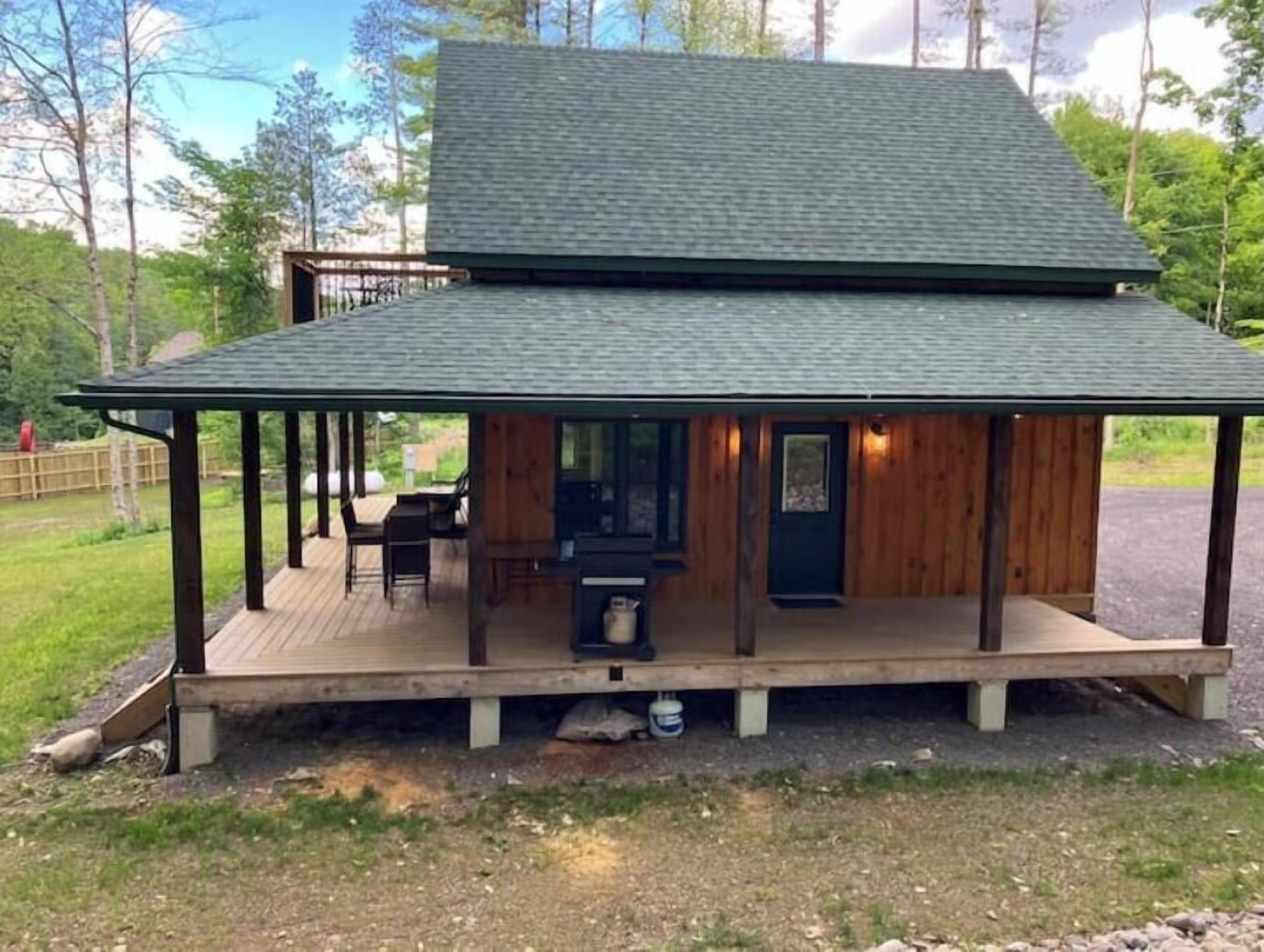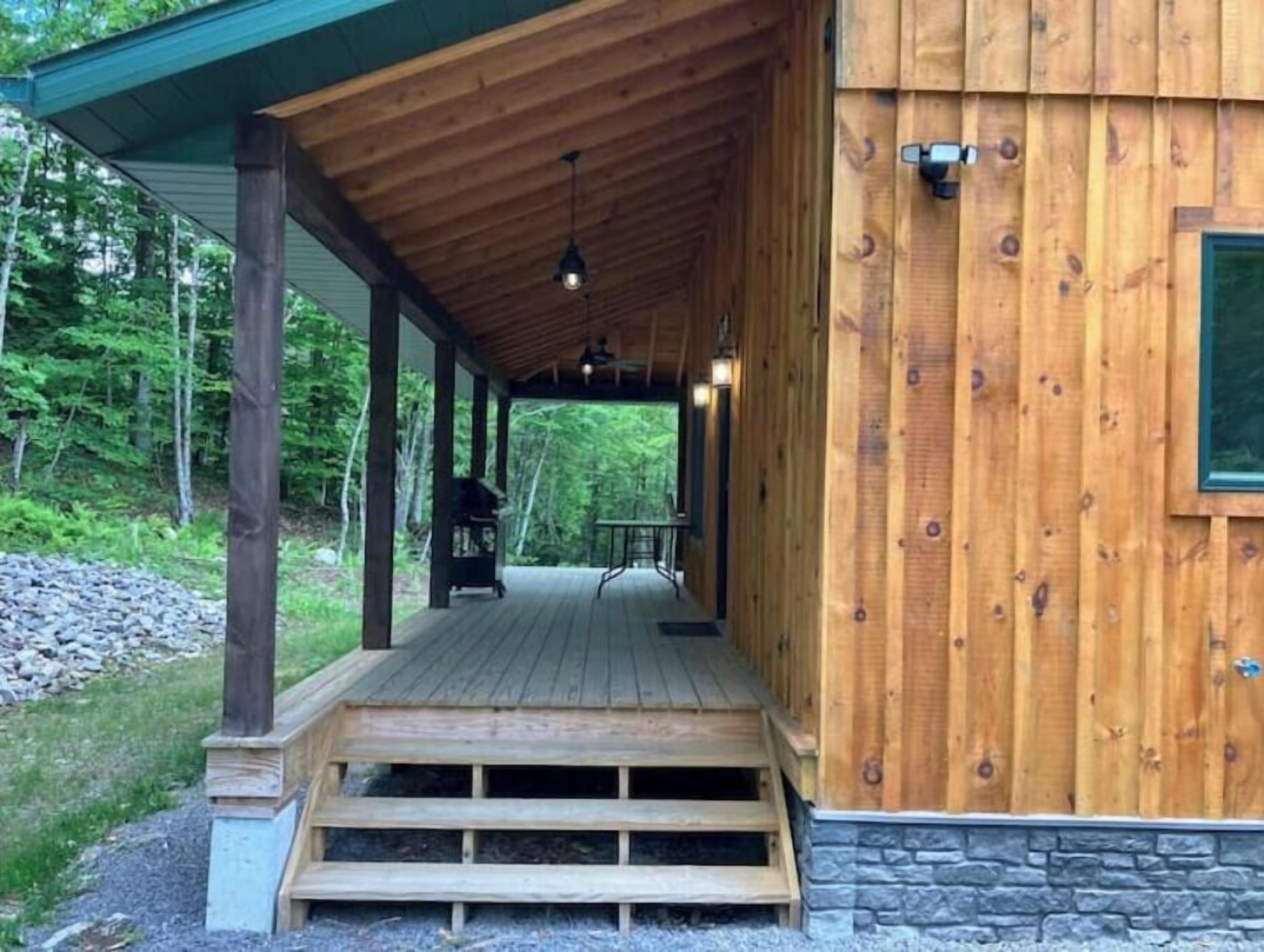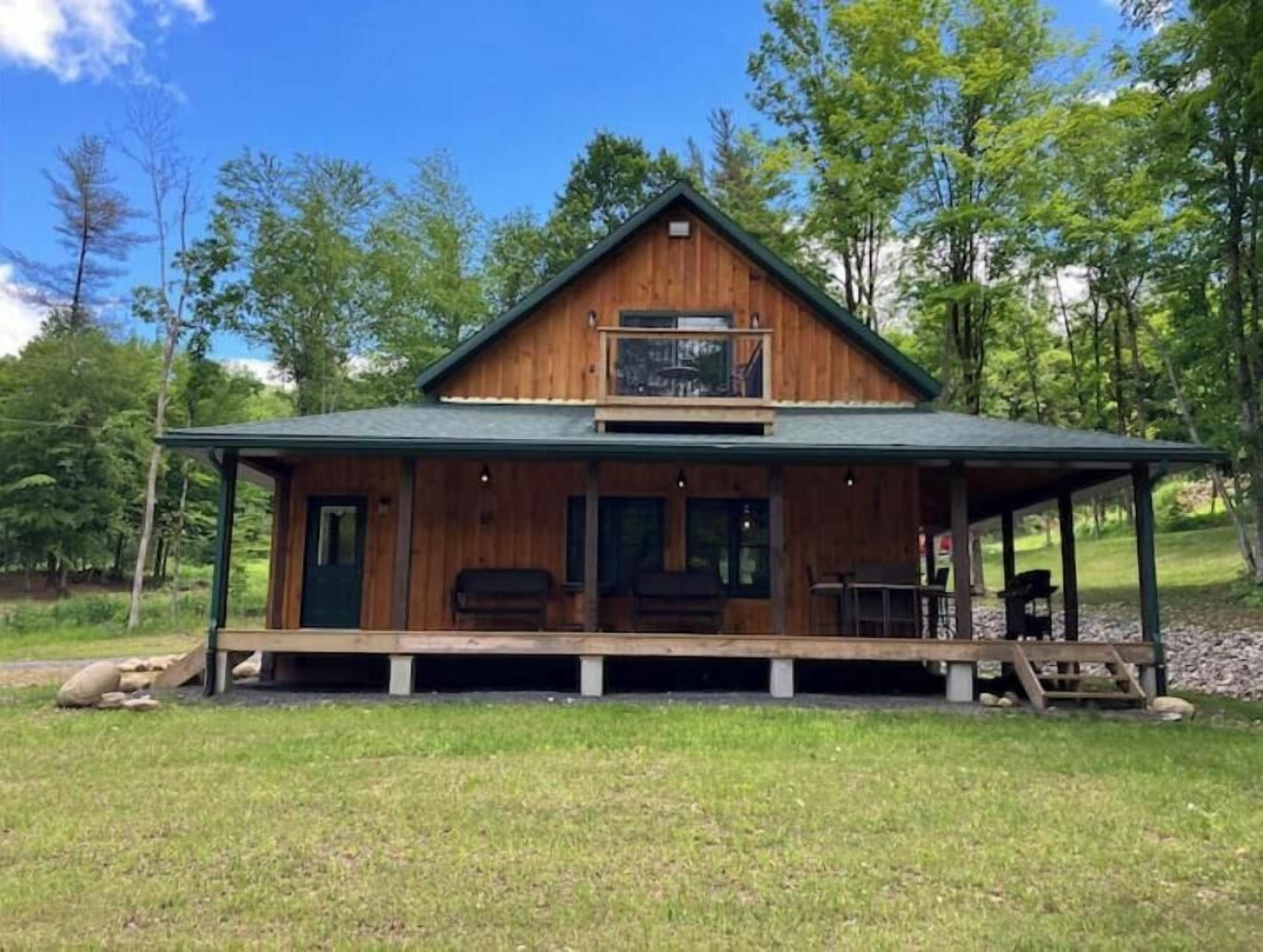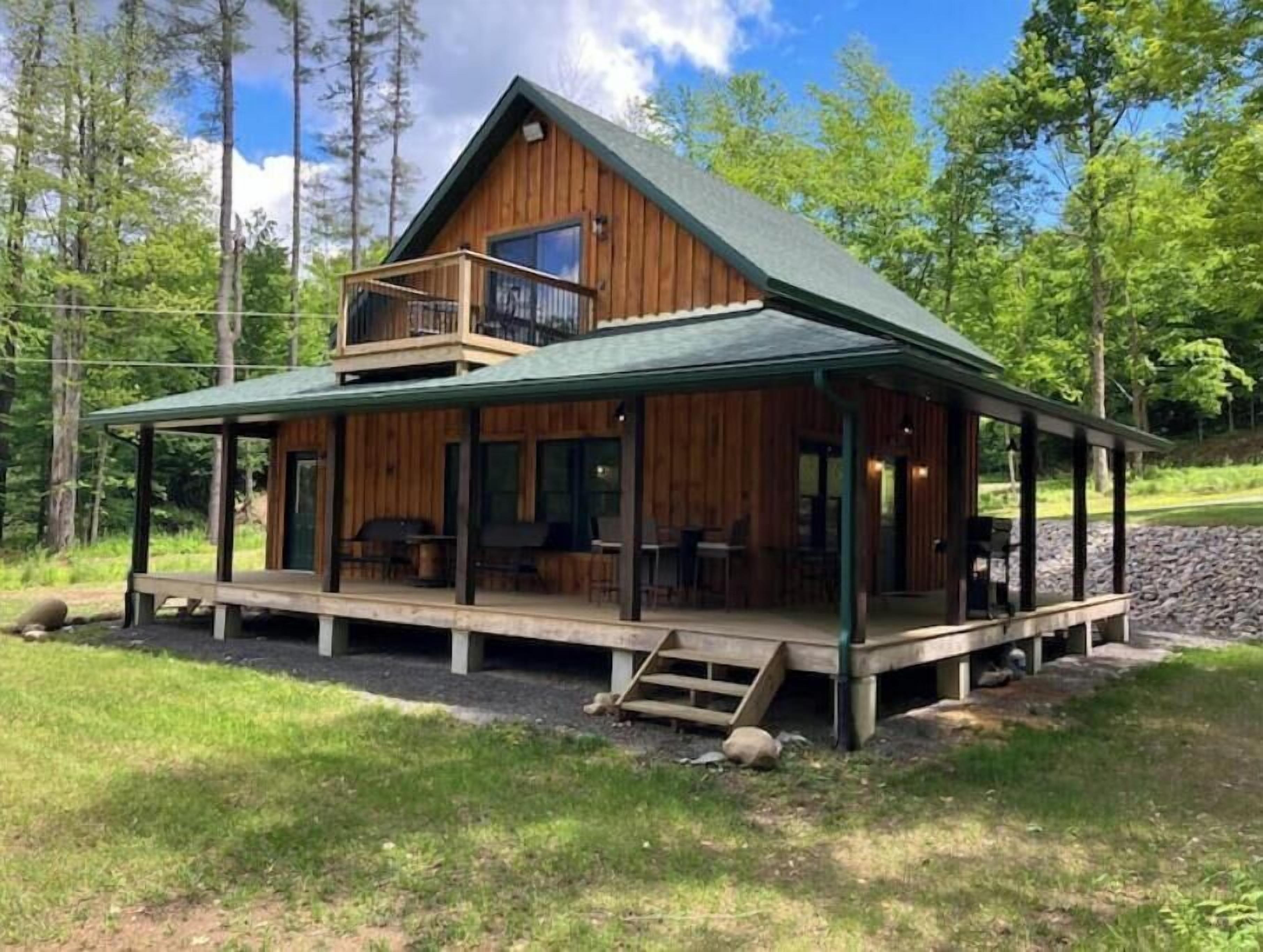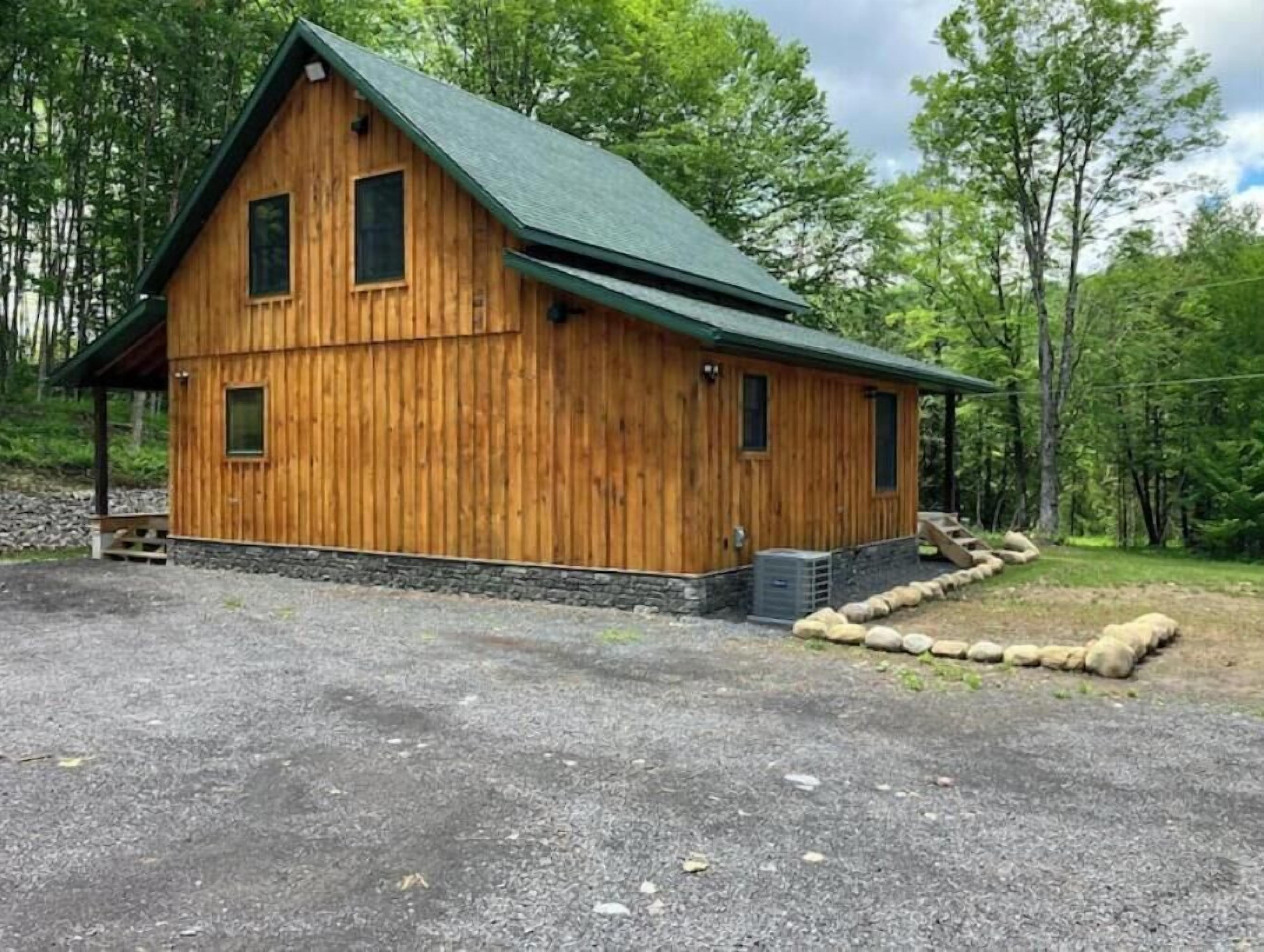 Creekside Cabin with Lake Access , Brand new build !!! About this spaceKick back and relax in this brand new built rustic adirondack themed cabin (spring 2024). Open floor plan with custom beams & knotty pine thoughout. Sleeps 6 with 2 bedrooms & sleeper sofa. 2 full bathrooms , Big screen smart tv's in both bedrooms & livingroom. Stunning hickory kitchen , spacious wrap around porch , outdoor fire pit , propane grill. Private lake access (hinckley resevoir) , bring your boat or jetskis or use our kayaks & pedal boat. Public boat launch is 1/4 mile down the road.The spaceNew build !!! 2 bedroom & 2 full bathrooms , master bedroom has a king size bed , 2nd bedroom has a queen size bed , livingroom has a queen size pull out sleeper sofa , dowstairs full bathroom has a full size shower with a double vanity , upstairs bathroom has a full size shower with a single vanity. Wrap around front porch with a propane grill , outdoor bar & patio furniture. Outdoor firepit. Master bedroom balcony has a 2 person outdoor patio set overlooking the creek for quiet evenings or morning coffee. Full kitchen with full size appliances & a small breakast/coffee bar. Full size dinning room table with self storing leaf for more room. Bring your boat or jetskis as this property has private lake access on beautiful crystal clear hinckley resevoir with a spot to put your favorite watercraft (public boat launch 1/4 mile down the road) , if you don't bring your own you can use our provided pedal boat or kayak. Just minutes away by vehicle , boat or kayak from the ever so popular Rocky's on the lake bar & restaurant. Public new york state beach just minutes away across the lake. This property is located right on new york state snowmobile trail c4 , you can ride your snowmobile right from the front door to tug hill or old forge !!!! Also many side by side/atv trails , biking & hiking trails accessible directly from this cabin.