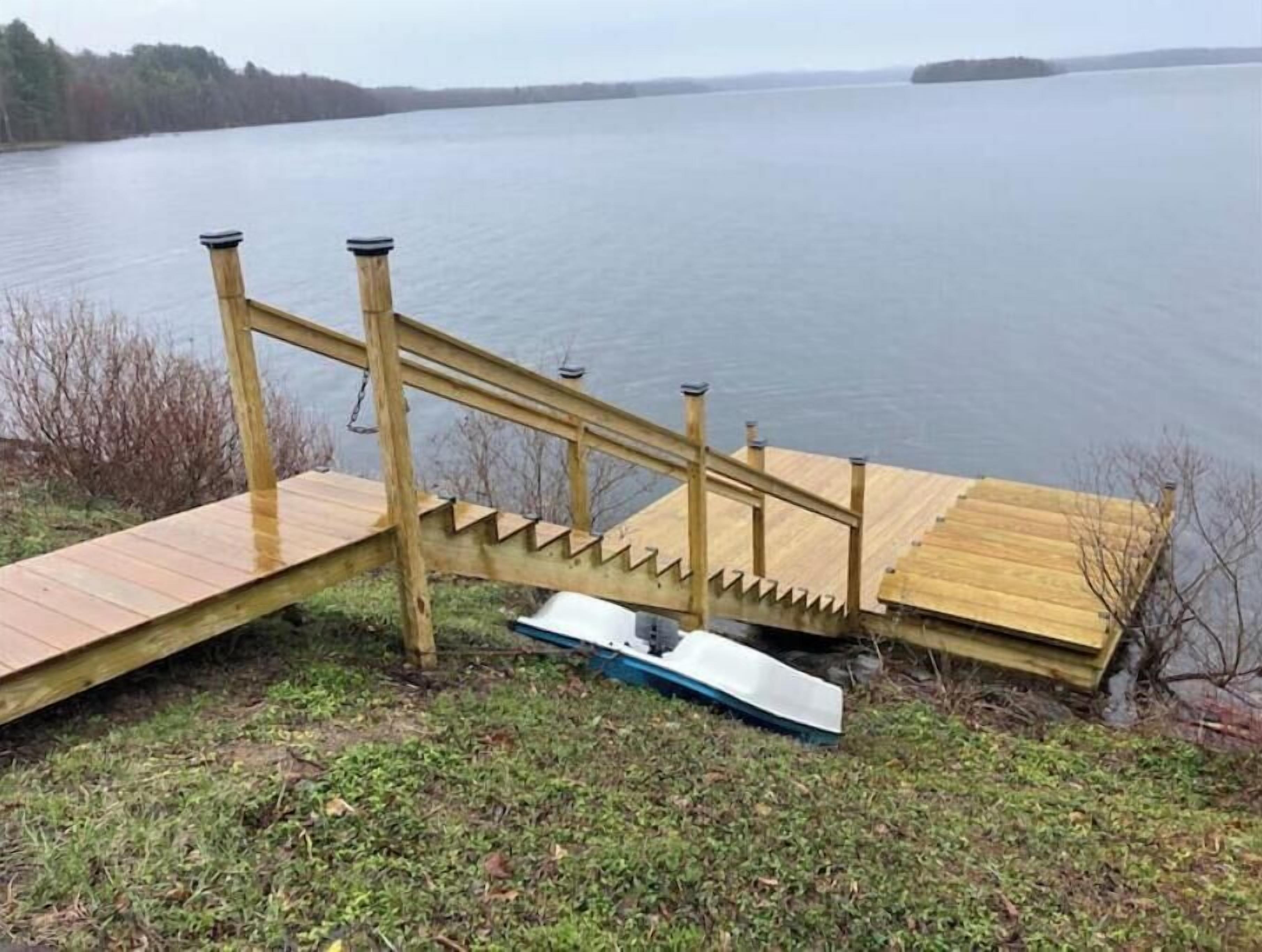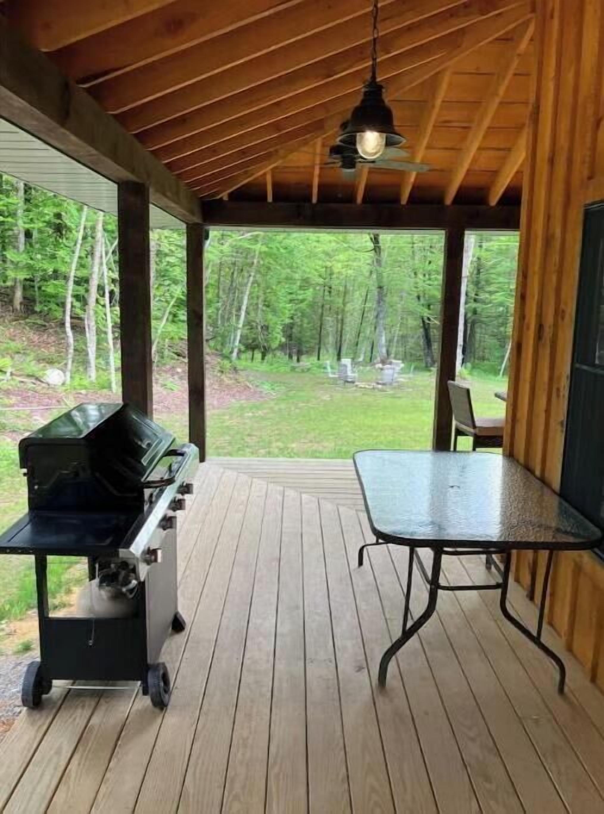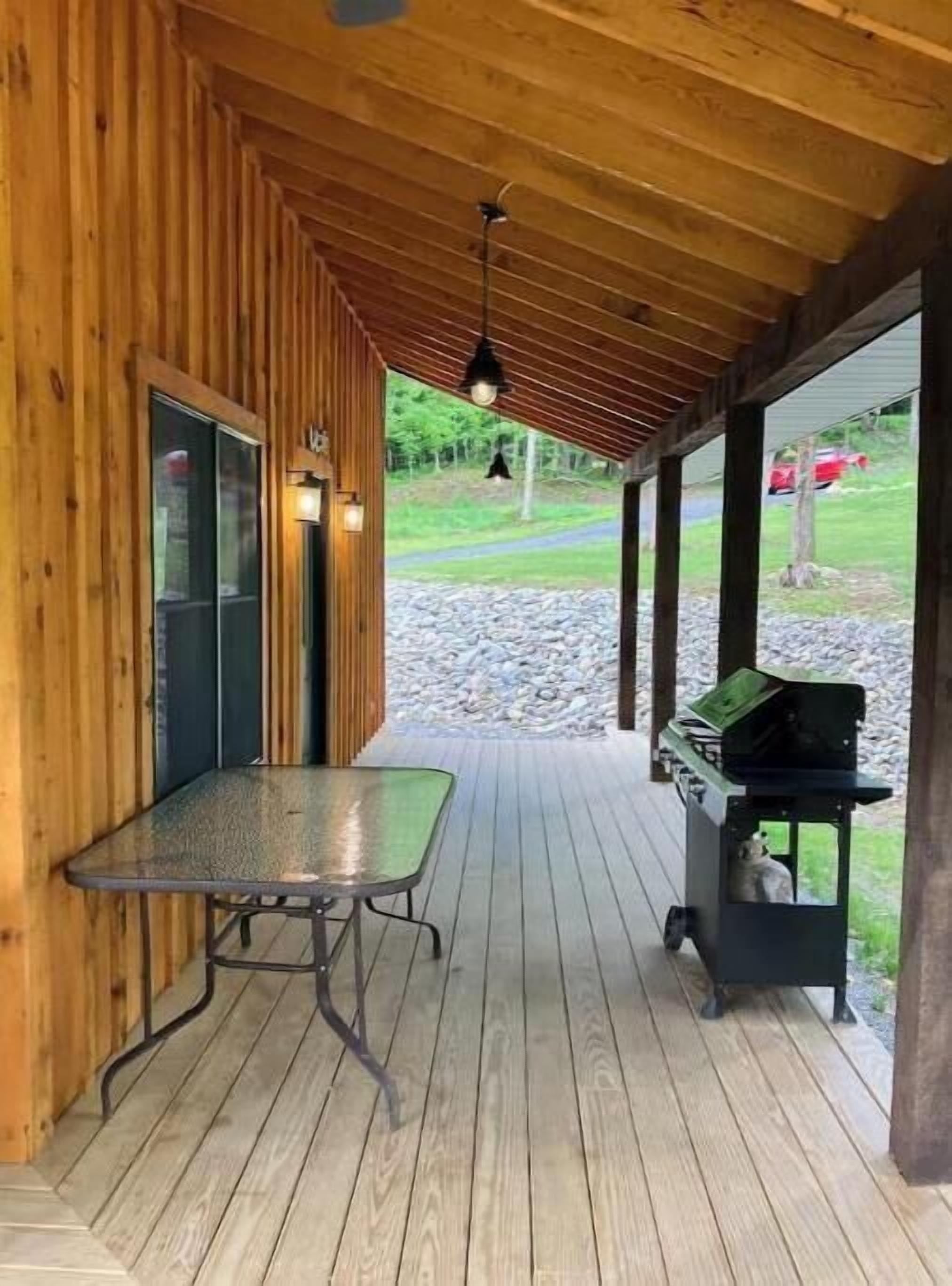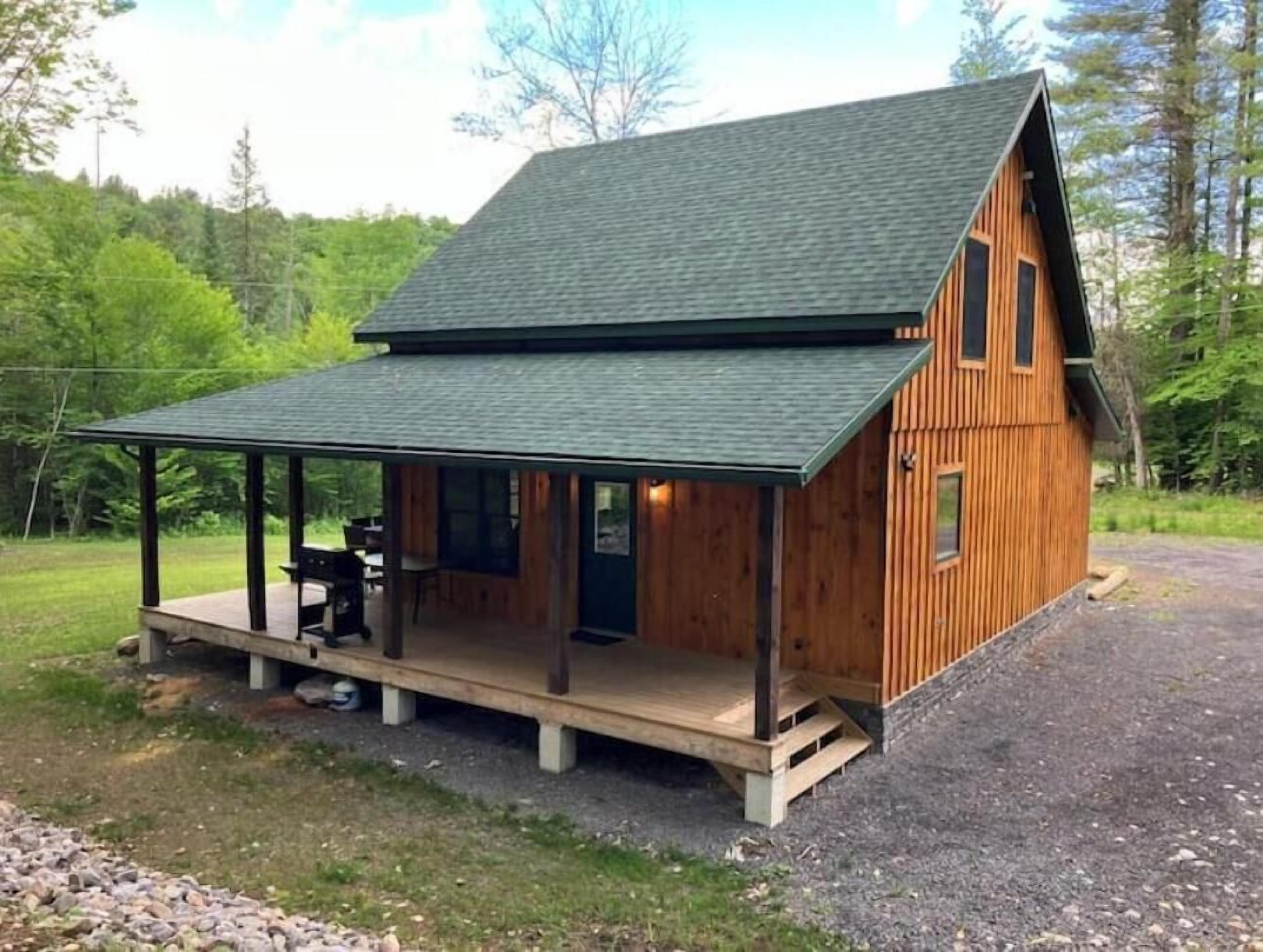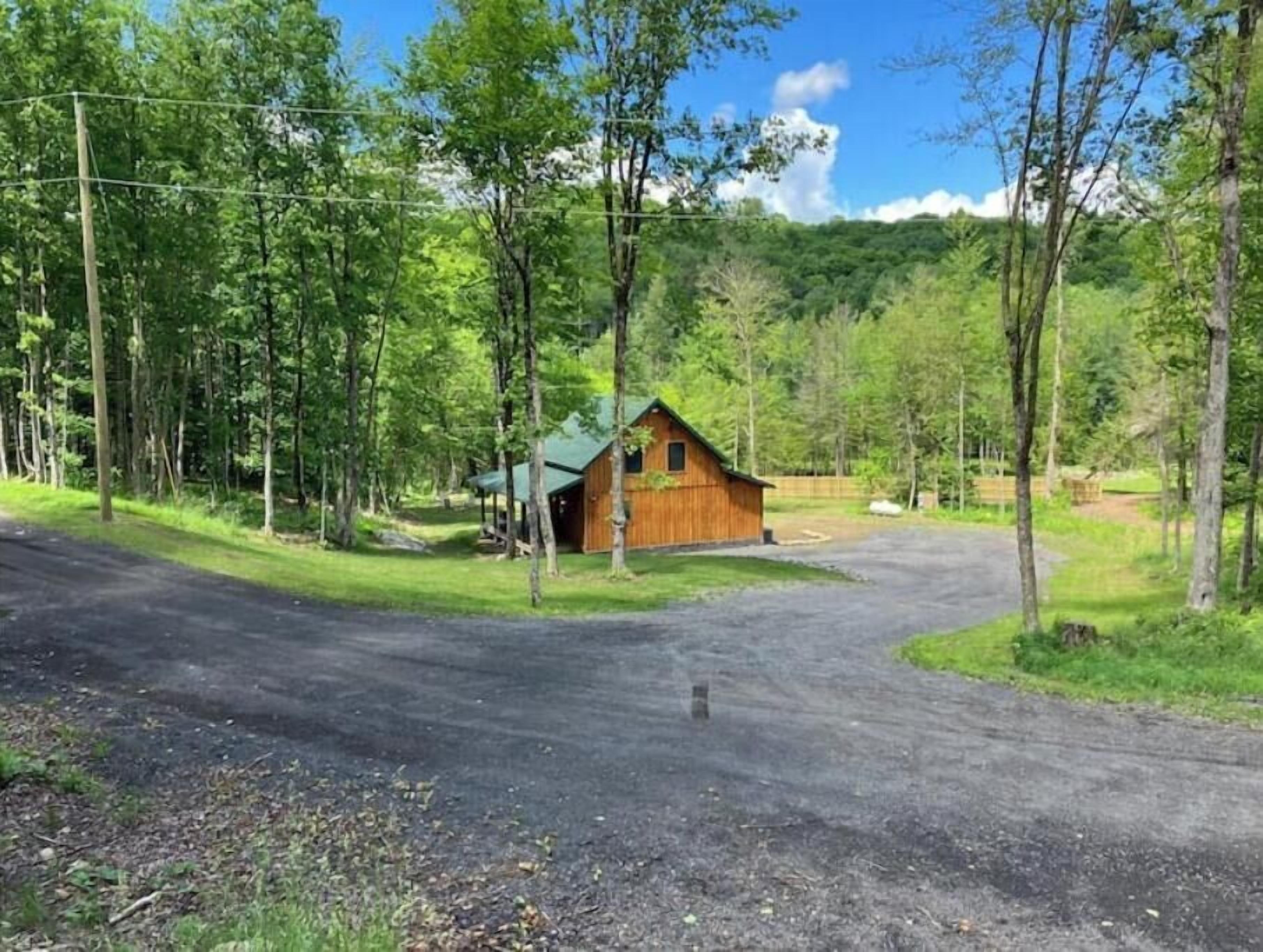Creekside Cabin with Lake Access , Brand new build !!! About this spaceKick back and relax in this brand new built rustic adirondack themed cabin (spring 2024). Open floor plan with custom beams & knotty pine thoughout. Sleeps 6 with 2 bedrooms & sleeper sofa. 2 full bathrooms , Big screen smart tv's in both bedrooms & livingroom. Stunning hickory kitchen , spacious wrap around porch , outdoor fire pit , propane grill. Private lake access (hinckley resevoir) , bring your boat or jetskis or use our kayaks & pedal boat. Public boat launch is 1/4 mile down the road.The spaceNew build !!! 2 bedroom & 2 full bathrooms , master bedroom has a king size bed , 2nd bedroom has a queen size bed , livingroom has a queen size pull out sleeper sofa , dowstairs full bathroom has a full size shower with a double vanity , upstairs bathroom has a full size shower with a single vanity. Wrap around front porch with a propane grill , outdoor bar & patio furniture. Outdoor firepit. Master bedroom balcony has a 2 person outdoor patio set overlooking the creek for quiet evenings or morning coffee. Full kitchen with full size appliances & a small breakast/coffee bar. Full size dinning room table with self storing leaf for more room. Bring your boat or jetskis as this property has private lake access on beautiful crystal clear hinckley resevoir with a spot to put your favorite watercraft (public boat launch 1/4 mile down the road) , if you don't bring your own you can use our provided pedal boat or kayak. Just minutes away by vehicle , boat or kayak from the ever so popular Rocky's on the lake bar & restaurant. Public new york state beach just minutes away across the lake. This property is located right on new york state snowmobile trail c4 , you can ride your snowmobile right from the front door to tug hill or old forge !!!! Also many side by side/atv trails , biking & hiking trails accessible directly from this cabin.