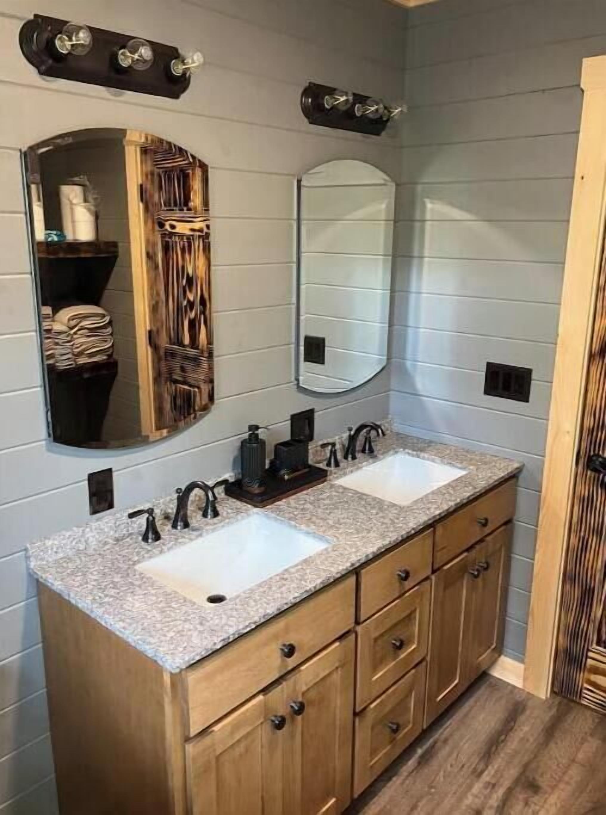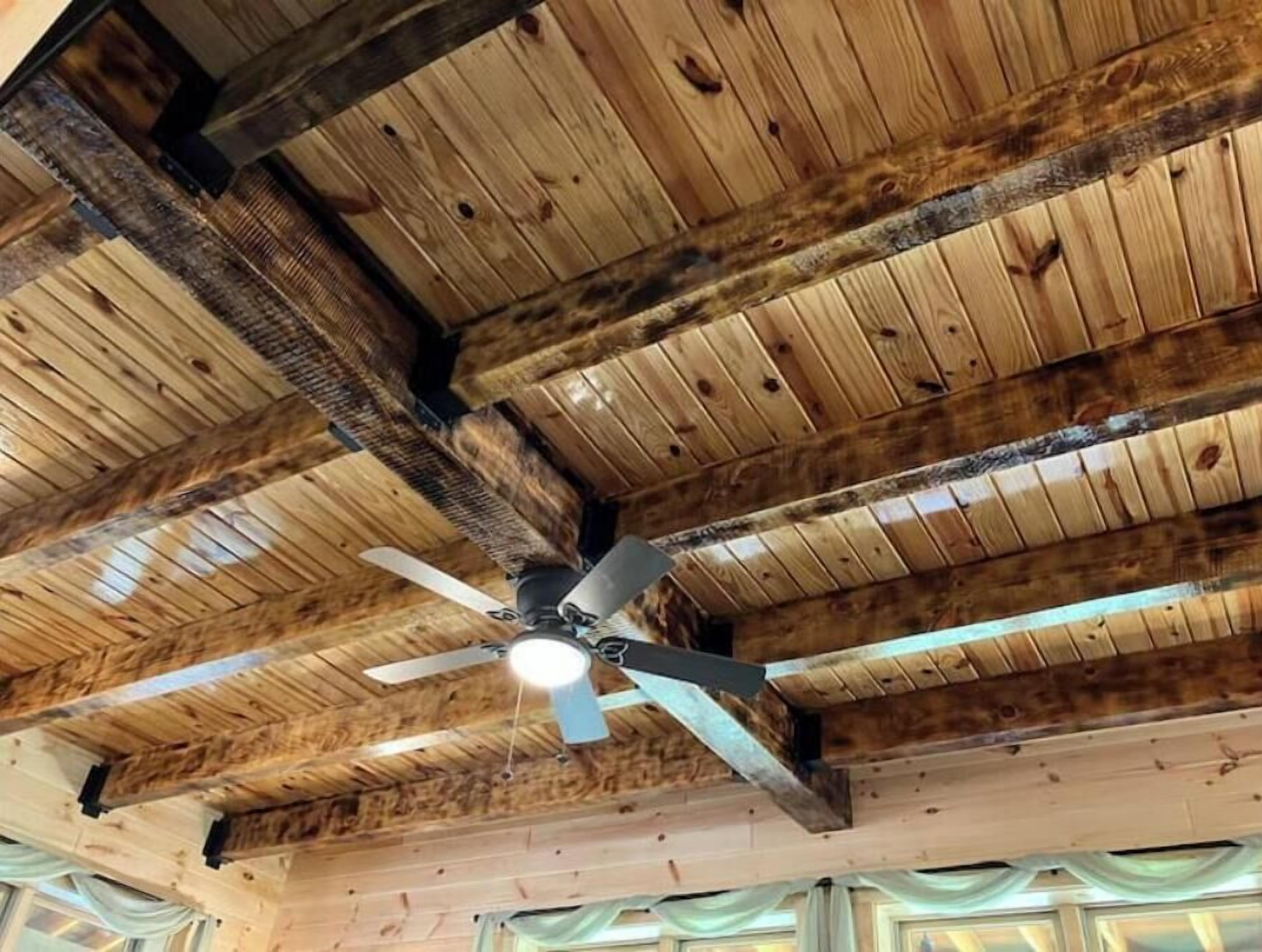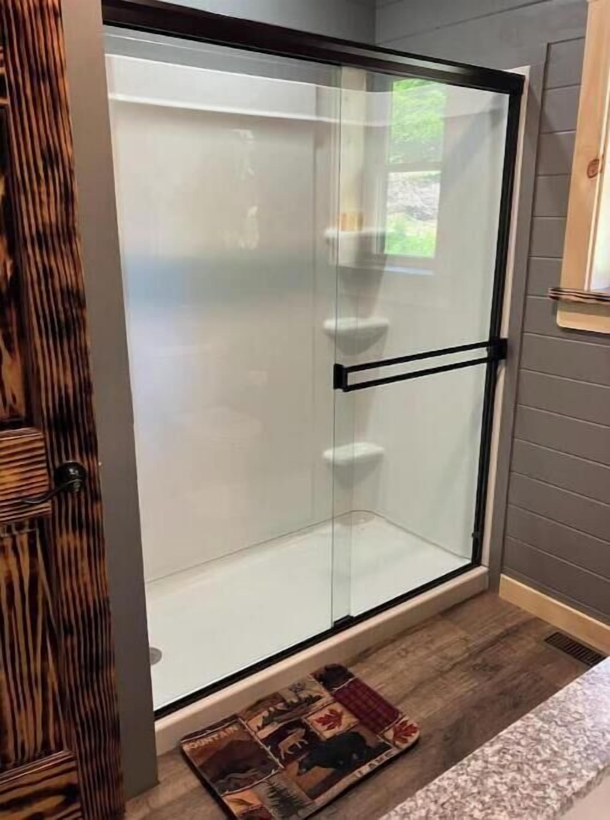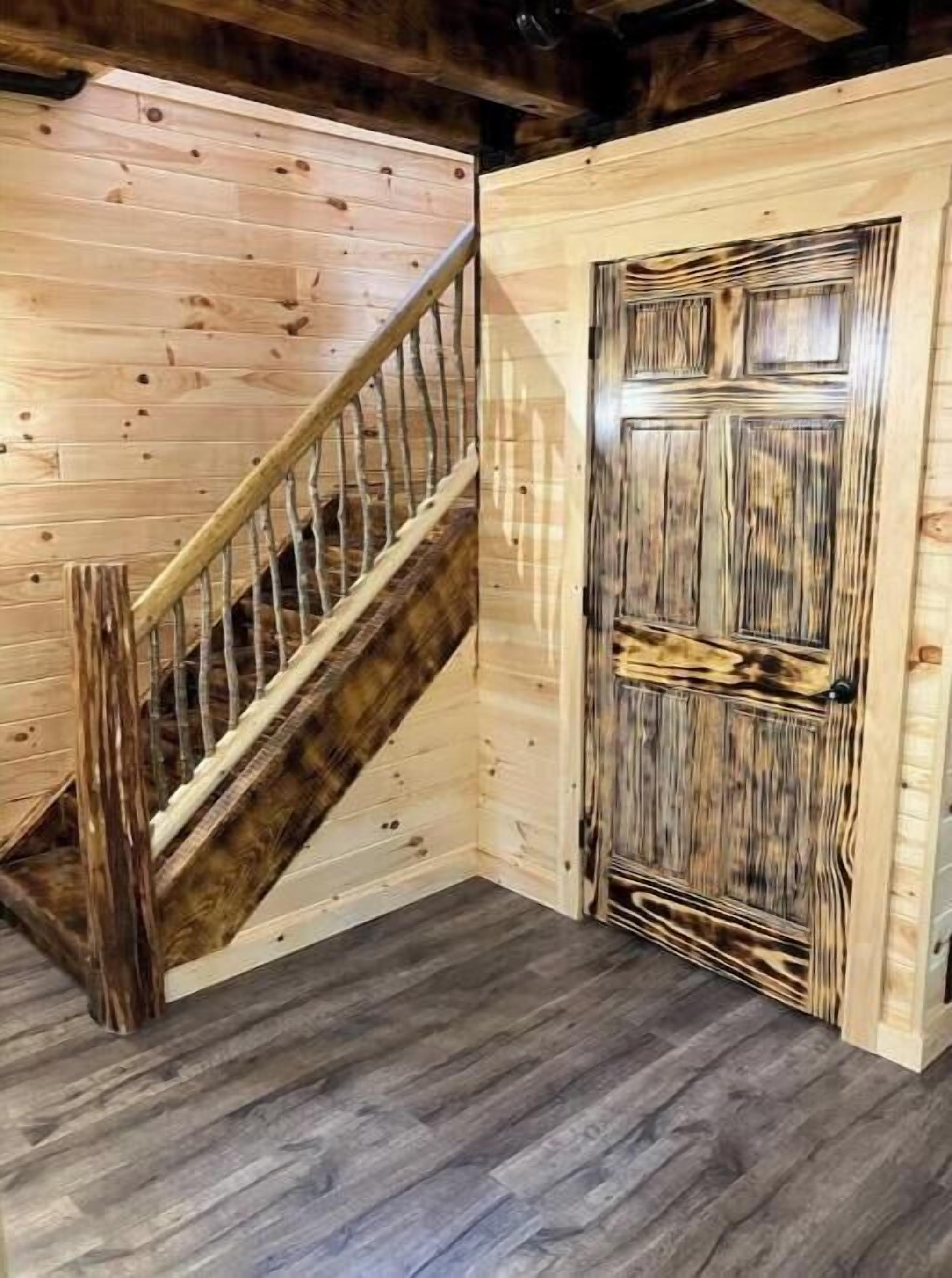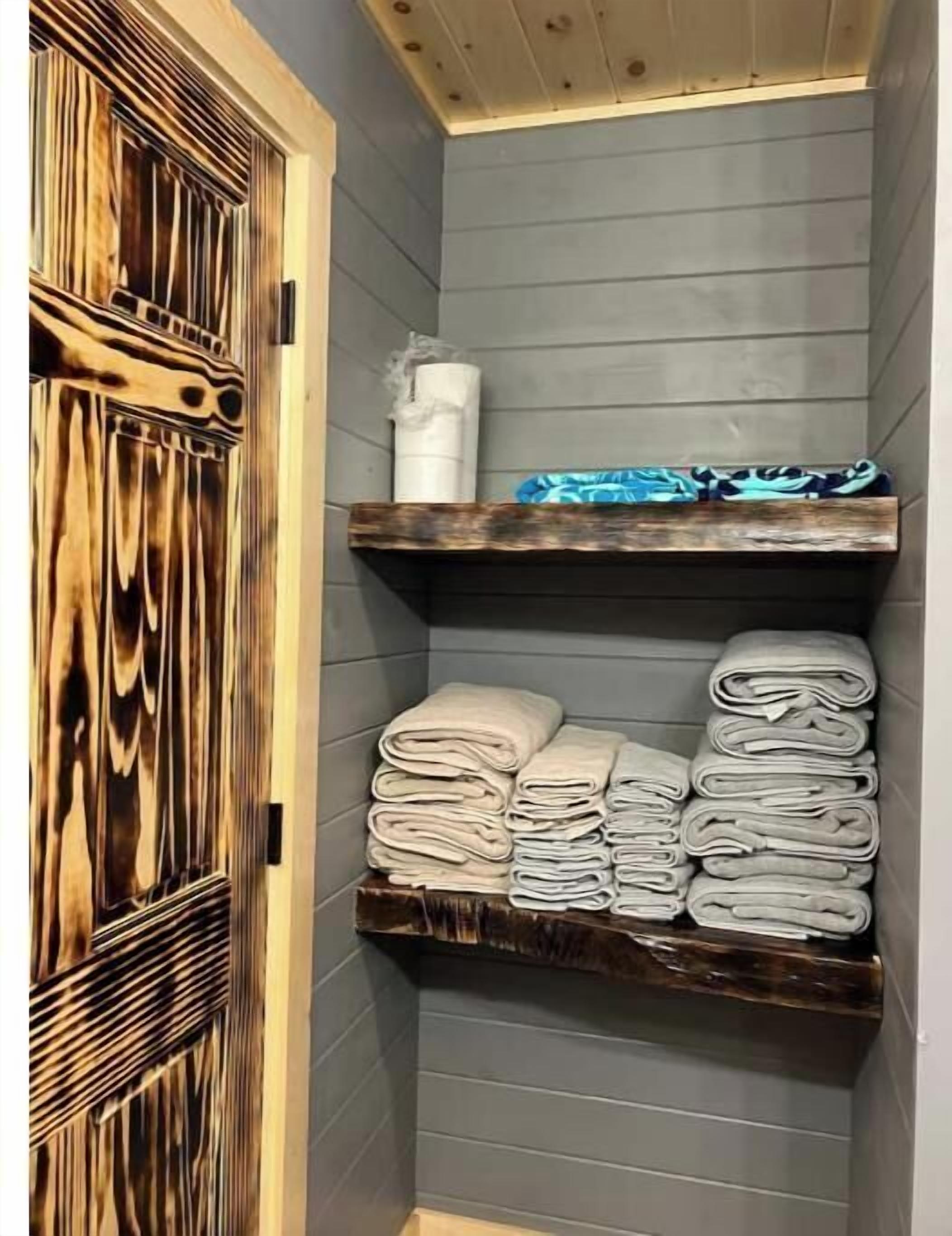 Creekside Cabin with Lake Access , Brand new build !!! About this spaceKick back and relax in this brand new built rustic adirondack themed cabin (spring 2024). Open floor plan with custom beams & knotty pine thoughout. Sleeps 6 with 2 bedrooms & sleeper sofa. 2 full bathrooms , Big screen smart tv's in both bedrooms & livingroom. Stunning hickory kitchen , spacious wrap around porch , outdoor fir...