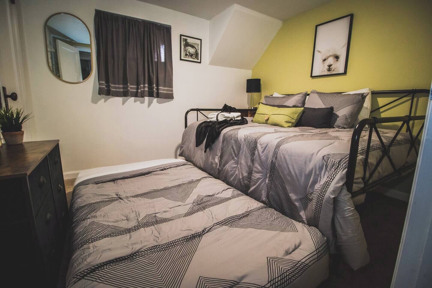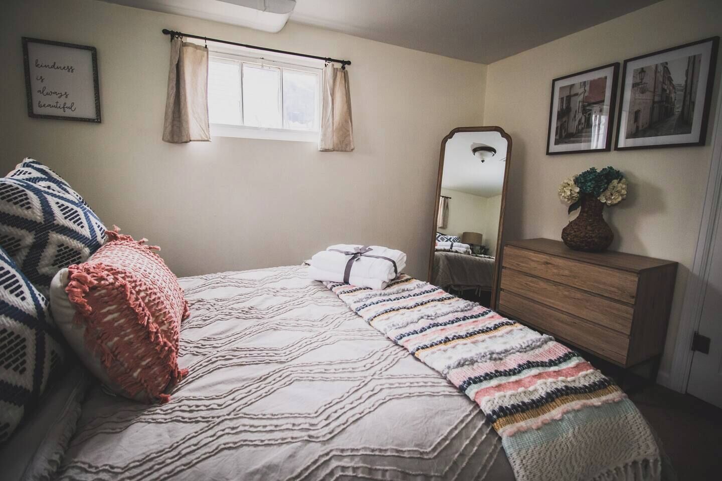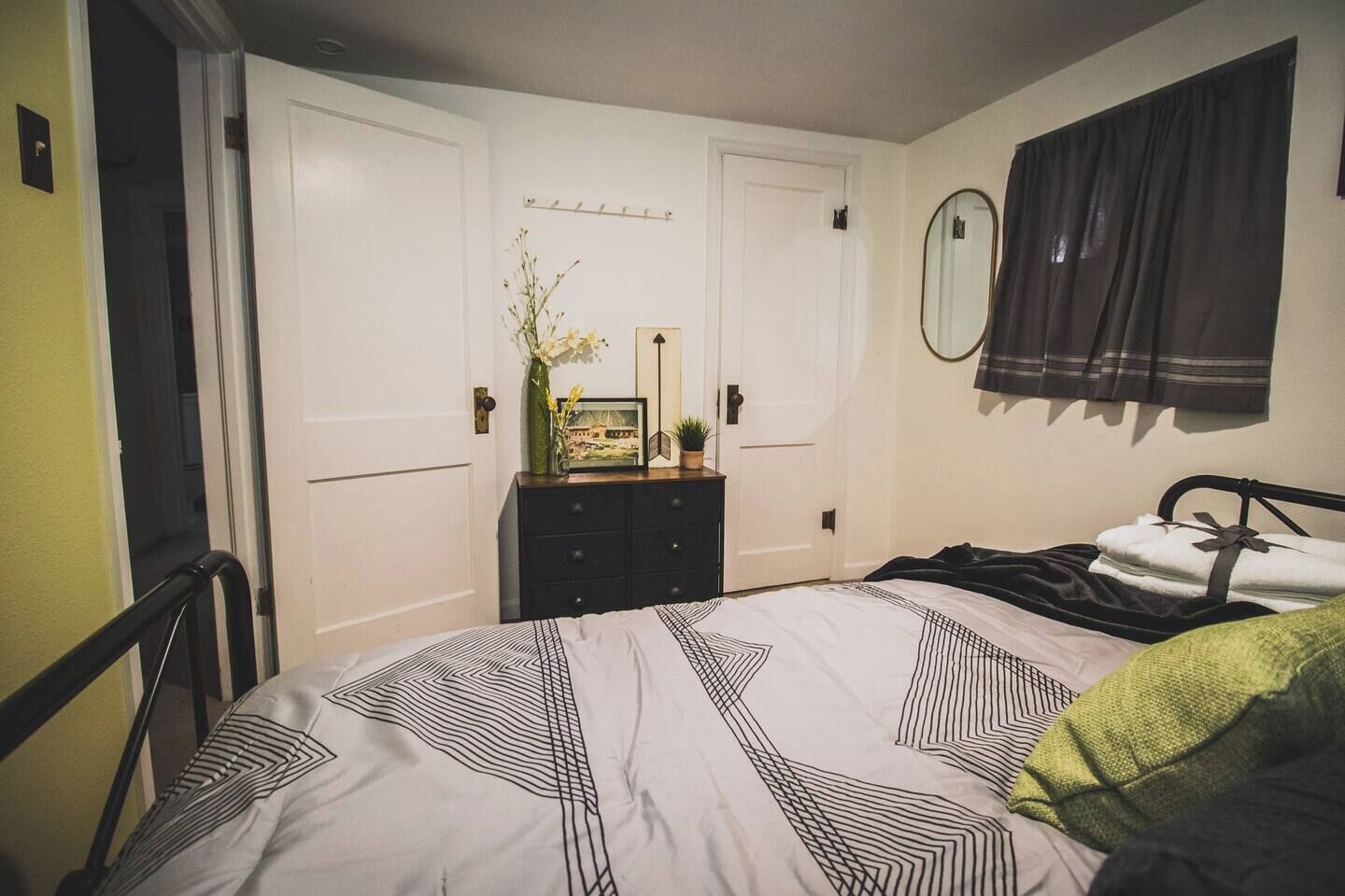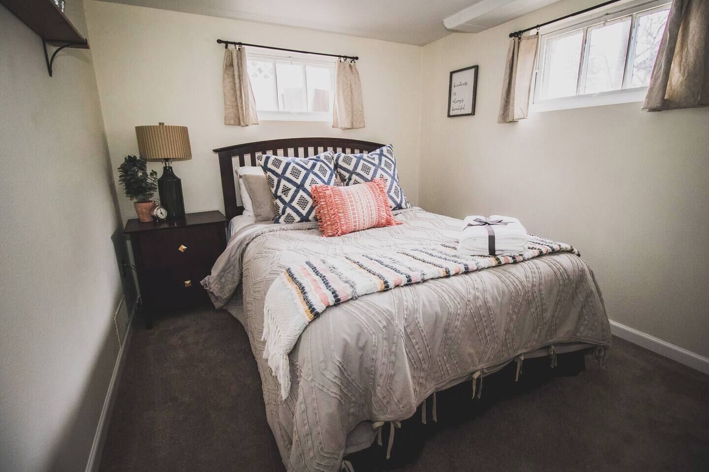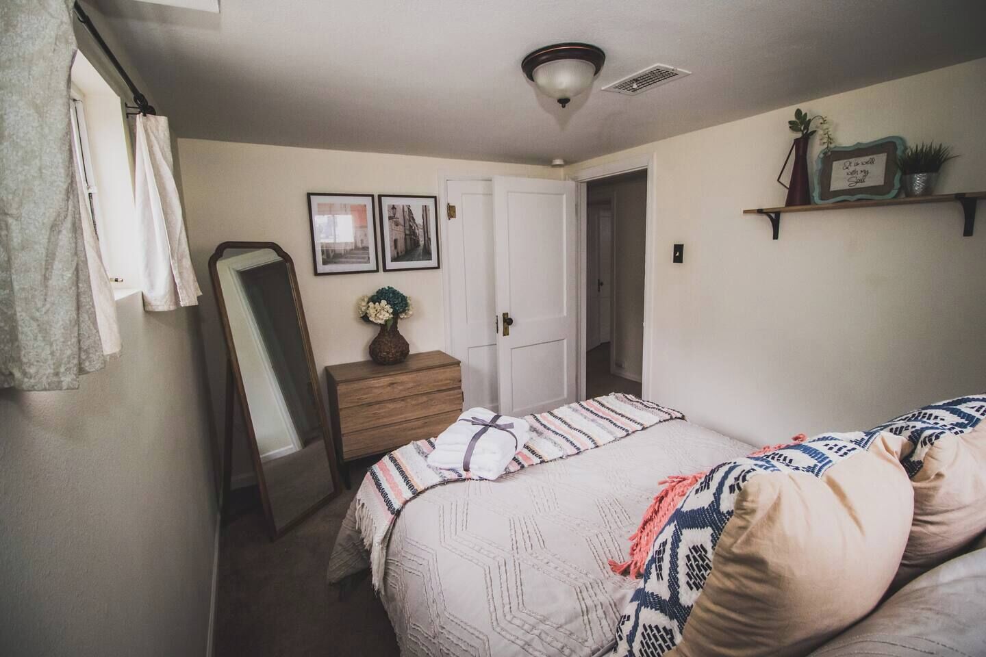 Charming cottage near UNC; Perfect for your family Charming 1940s Vintage Home in the Heart of Greeley [𝗖𝗢𝗡𝗖𝗜𝗘𝗥𝗚𝗘 𝗦𝗘𝗥𝗩𝗜𝗖𝗘𝗦 𝗣𝗥𝗢𝗩𝗜𝗗𝗘𝗗 𝗔𝗧 𝗧𝗛𝗜𝗦 𝗟𝗢𝗖𝗔𝗧𝗜𝗢𝗡 - inquire about list of services!]Step into the charm and character of this vintage 1940s home, situated on a picturesque, tree-lined street in the heart of Greeley. This inviting home is perfect for up to ten guests, yet cozy enough for a romantic getaway for two. Whether you’re sipping coffee on the back porch or exploring the vibrant downtown Greeley with its local restaurants and breweries, this home offers everything you need for a tranquil and comfortable stay.Guests will have full access to the entire house, complete with detailed check-in instructions and a smart lock with keypad for easy access. Our local hosts and co-hosts are always nearby, ready to assist with any needs you may have during your stay.This home, built in 1940, has a few charming quirks that add to its character. The downstairs bedrooms and living areas are accessed through the laundry room, which we’ve tried to make as pleasant as possible. The front door may need a firm push to close completely, and some interior doors require a bit of effort to latch. The stairs to the basement are a bit steep, and the downstairs living area has a lower ceiling due to ductwork, so tall guests should watch their heads. We take your health and safety seriously, ensuring that our cleaners disinfect all high-touch surfaces, such as light switches and doorknobs, after every booking. **Interested in staying with us for more than 30 days? Feel free to reach out for pricing and direction for booking with us.**𝗗𝗜𝗦𝗖𝗟𝗔𝗜𝗠𝗘𝗥𝗦:- A link will be sent to you after booking to securely enter your credit card number directly with our property management company.- The renter agreement must be signed within 72 hours of booking.- Must be 25+ years old to reserve Brick & Balcony Greeley Retreat.- This property is professionally managed by Urbanize.𝗧𝗛𝗜𝗡𝗚𝗦 𝗡𝗘𝗔𝗥𝗕𝗬:Located just two blocks from UNC and a short walk to Glenmere Park, you’ll find plenty to explore nearby. Downtown Greeley is only 0.8 miles away, while Island Grove Regional Park and the Colorado Model Railroad Museum are just a bit further at 1.8 miles and 1.2 miles, respectively. For those looking to venture beyond Greeley, the Centerra Shopping Center is a 15-mile drive, Old Town Fort Collins is 23 miles away, and Estes Park and Rocky Mountain National Park are within 43 and 52 miles, respectively.Our home is nestled in the historical Cranford neighborhood, known for its unique, beautiful old homes and its close proximity to Glenmere Park, one of the most beautiful spots in Greeley. You can also enjoy a short stroll to Margie's and The Blue Mug, two of our favorite coffee shops. With grocery stores and a city bus stop just a short drive away, convenience is at your doorstep.Book your stay now and experience the perfect blend of vintage charm and modern comfort in this delightful bungalow!
