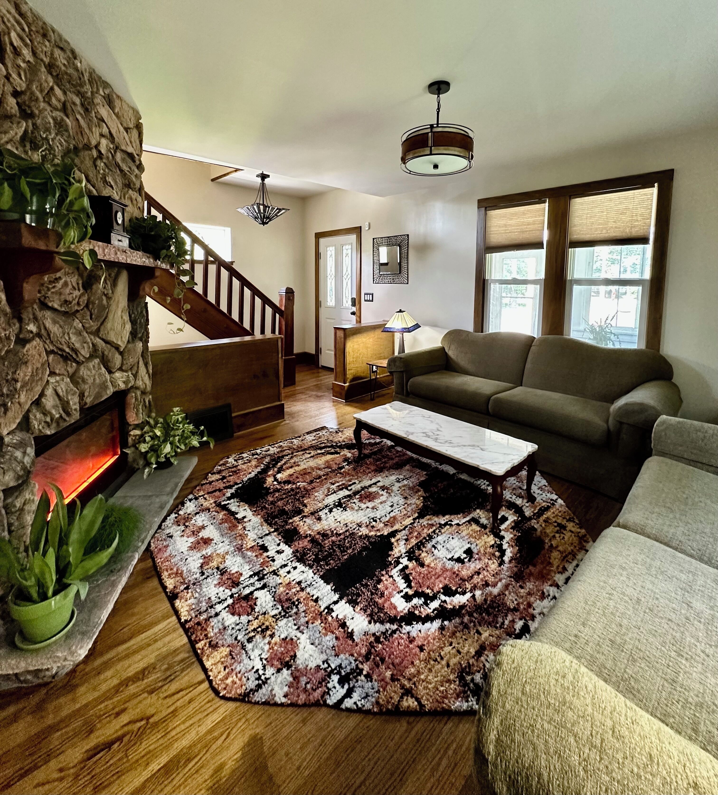 The Getsi: Two blocks from IWU - Discount for extended stays This is two blocks from the Illinois Wesleyan University Welcome Center.A few blocks from IWU football field!Minutes away:Carl HospitalISUTrain StationUptown NormalTheaterDowntown Bloomington & Grossinger Colosseum are just 5 minutes away.The spaceThis is an incredibly cozy space. Everything in the house is brand new and recently renovat...