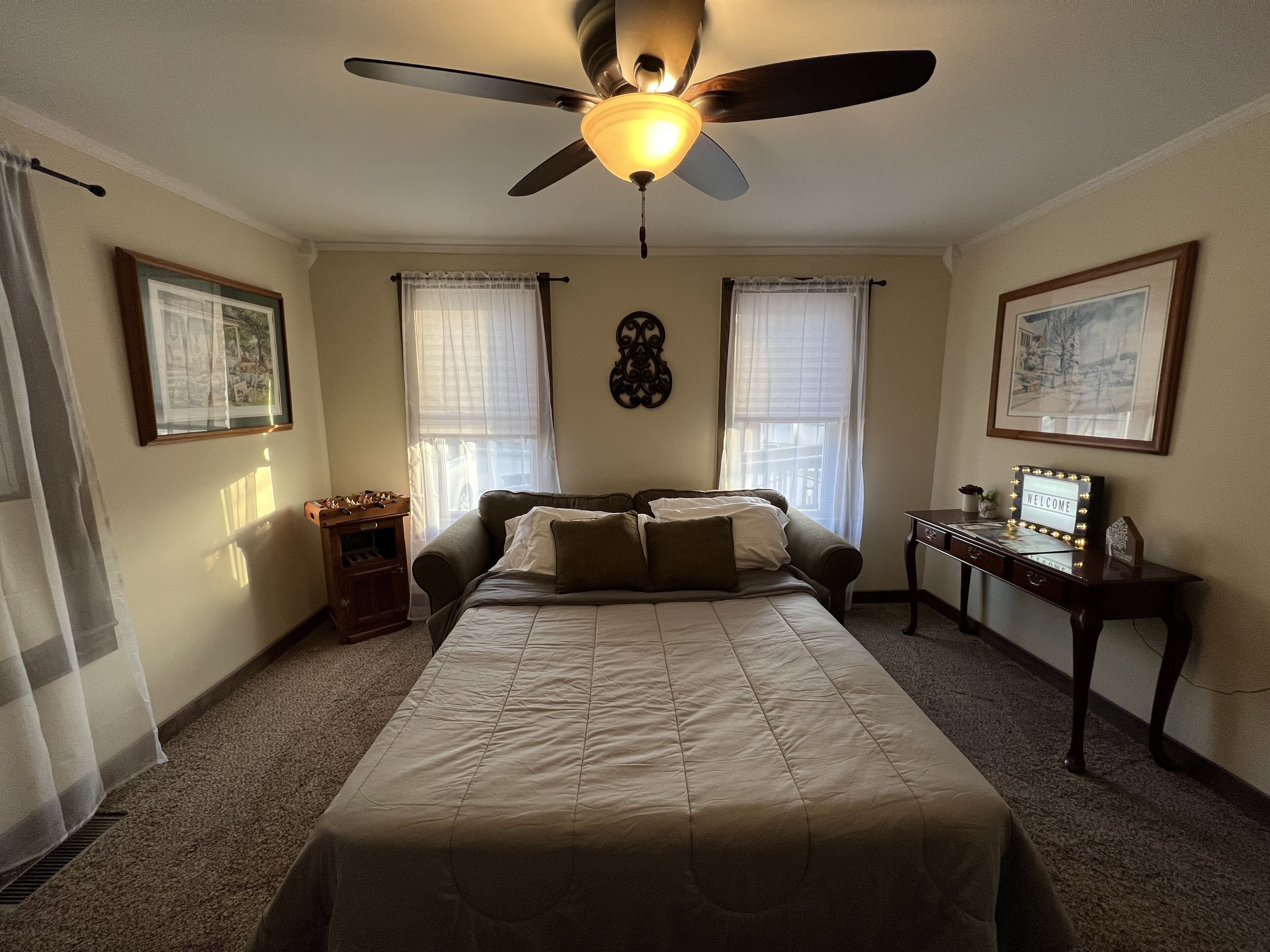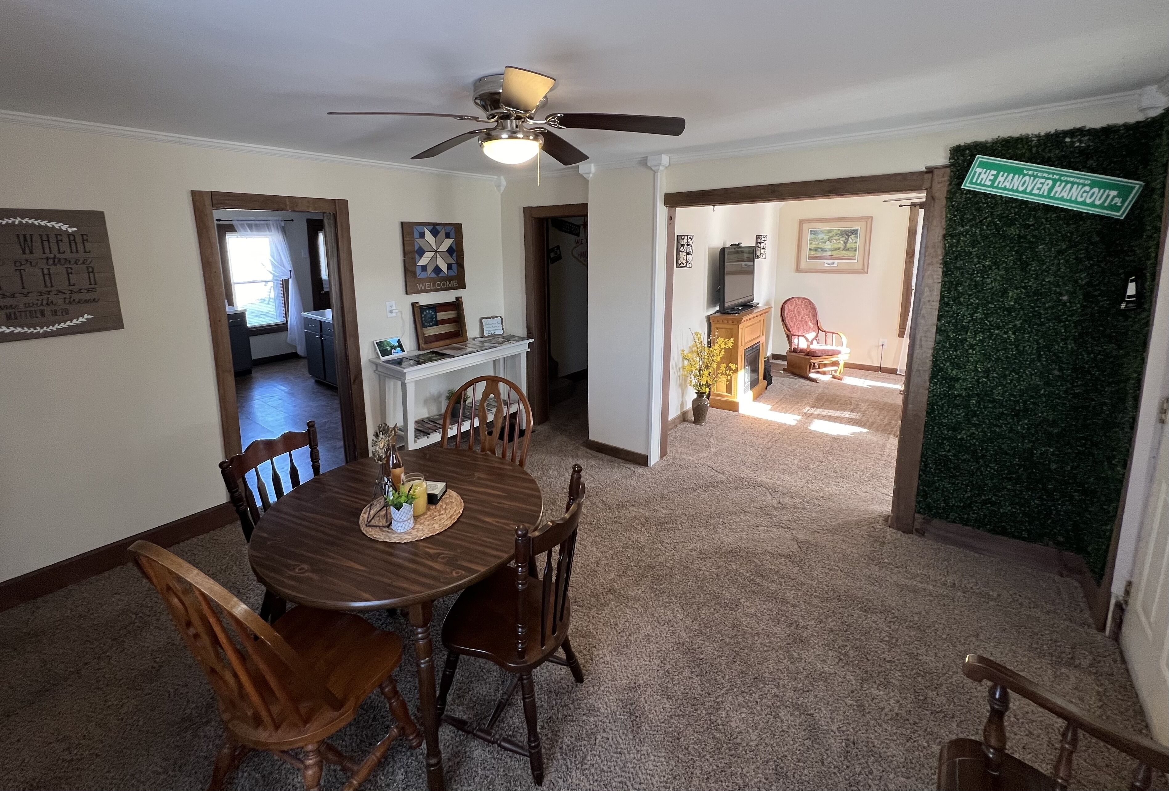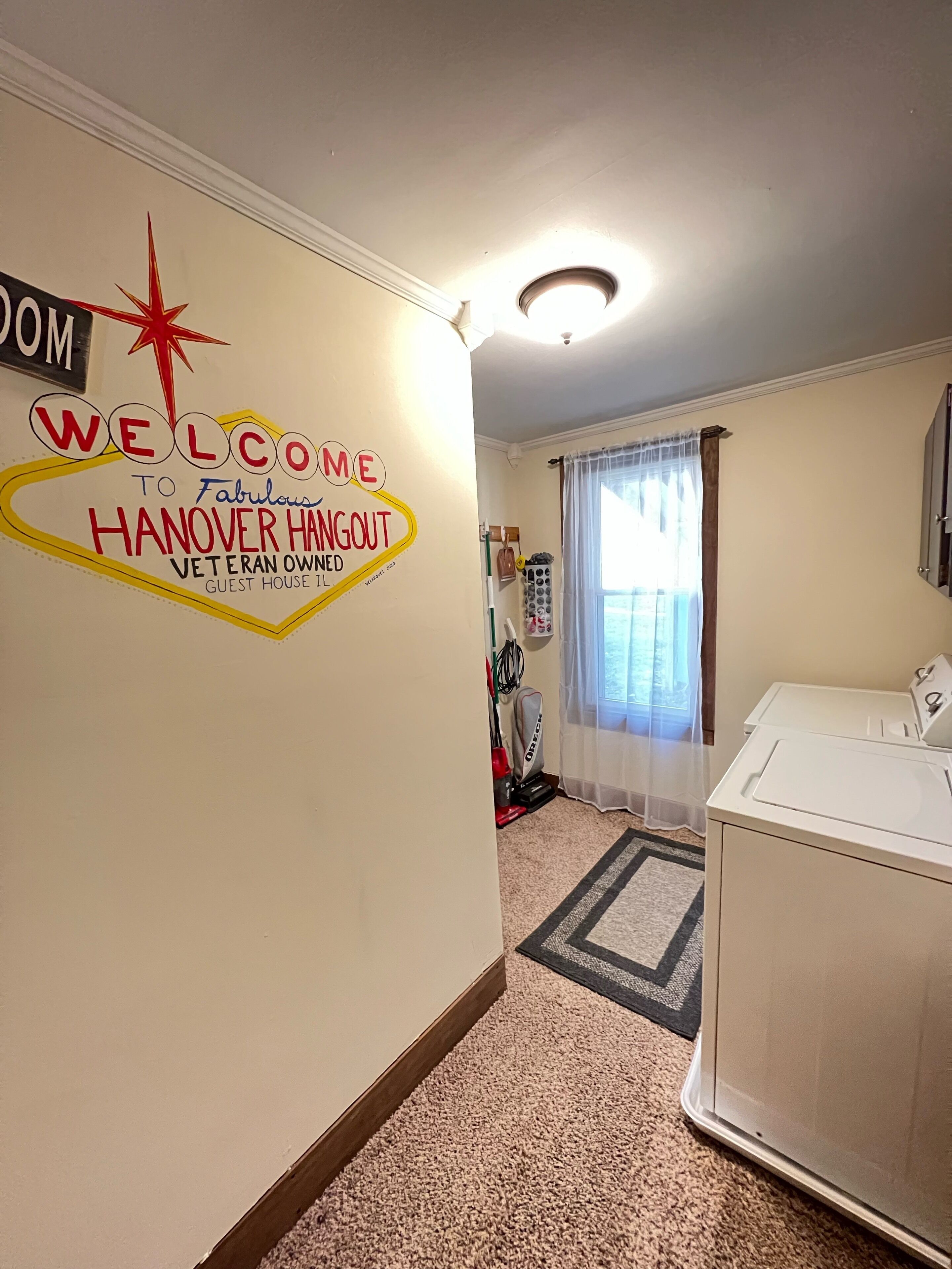 The (Veteran Owned) Hanover Hangout Guesthouse - cozy cottage w/ privacy + fun A wonderful cozy vacation rental! Located: 55 min. to Platteville WI40 min. to Dubuque IA20 min. to downtown Galena15 min. to downtown Savanna IL14 min. to Chestnut Mountain12 min. to Palisades State Park9 min. to Fergedaboudit Vineyard and Winery4 min. to Rocky Waters Vineyard and WineryRECENTLY RENOVATED HOME THROUGHOUT! Comes complete with Queen sized bed PLUS 2nd bedroom 2 beds(TWIN) and PULL OUT BED, and for a total of 4 beds, 1 bathroom, stocked kitchen ready with stove, microwave, refrigerator, pans, silverware, dishes, cooking utensils, coffee maker, and more! Laundry in the home! 2 blu-ray players with HUNDREDS of DVD & Blu-ray movies along with 3 TV’s (2 with apple TV’s) and INTERNET INCLUDED, board games, and other activities! USB outlets available in the bedroom and living room. Laundry in the home. Quiet neighborhood just minutes to all sorts of fun and activities! Starter pack included of toilet paper, paper towels, coffee, creamer, sugar, salt & pepper, oil, etc. Provided. Nearby activities include: horseback riding, zip lining at the Territory in galena, shopping, dining and exploring history in downtown galena, Dubuque offers 2 casinos, shopping, riverfront dining, waterpark, River museum (great for kids), crystal lake cave,and more! Chestnut mountain features the alpine slide in the summer, zip lining, and skiing in the winter! Visit “franks finds” in Savanna IL along with Palisades State Park, Havencrest Mansion, and Poopys biker bar!Be advised there is a video doorbell present. Obstruction to doorbell is not allowed.